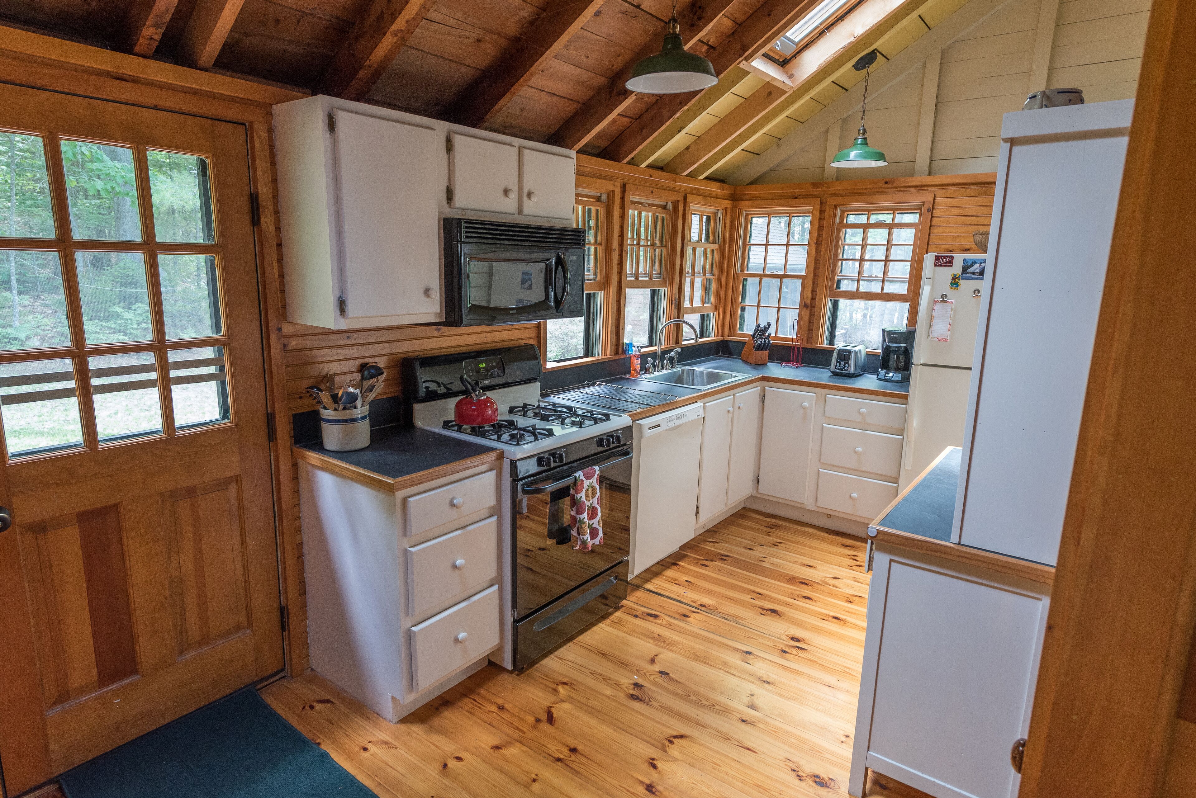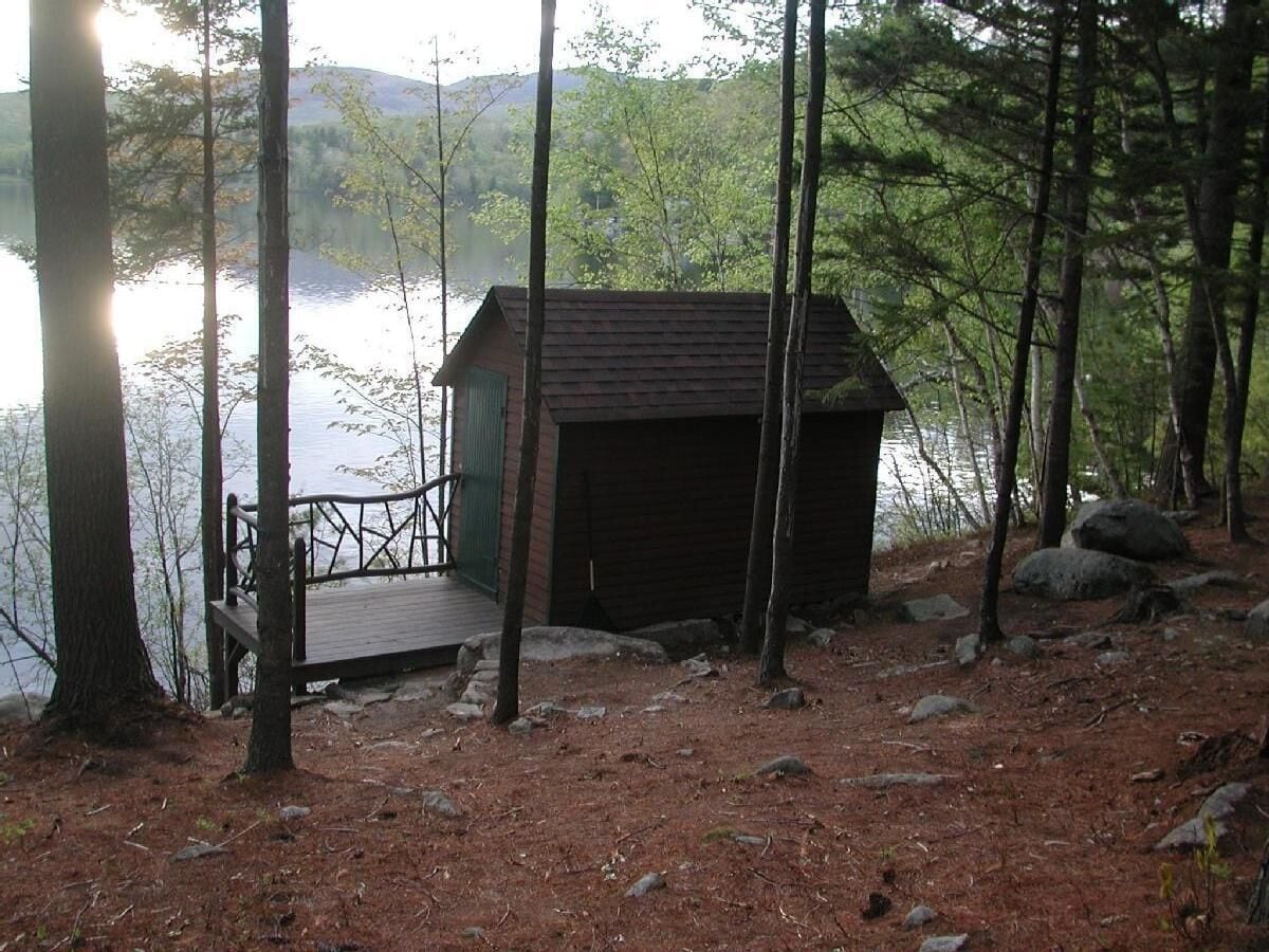 “Sunset Lodge” a Maine lakefront cottage with charming guest house Built in 1919 and updated to provide all modern amenities while preserving the historic feel of a true Maine “camp,” this private end-of-the-road cottage sleeps 6 and features a first floor bedroom, den/guest room, airy sleeping loft, new eat-in kitchen, open dining/living room, updated bathroom with original claw foot tub/shower, sun porch and outdoor porch. The water’s edge renovated “pump house” provides a perfect rainy day playhouse or additional sleeping space for 2. The Guest House, which sleeps 4 more, is available for an additional $500 per week. It provides the extra space to comfortably include another family, grandparents, in-laws or just a chance to spread out a bit and have an extra bath and porch. A private dock, plus a sandy entry down a short path, and canoe and kayaks are yours to enjoy all the pristine Howard Pond has to offer - boating, trout and salmon fishing, swimming or just lazing on the dock . Sunset Lodge basks in the sun all day and catches the final rays and dramatic sunsets. The nearby Mahoosuc and White Mountains provide world-class hiking while the Androscoggin River in Hanover village offers outstanding fly and spin fishing for trout and bass. Guide services available for a float down the Androscoggin or other outdoor adventures. Just 1 ½ hours from Portland and 20 minutes to Bethel (fine dining, shopping, groceries, movies) this accessible yet secluded vacation spot will take you thousands of miles and 100 years from your everyday life.