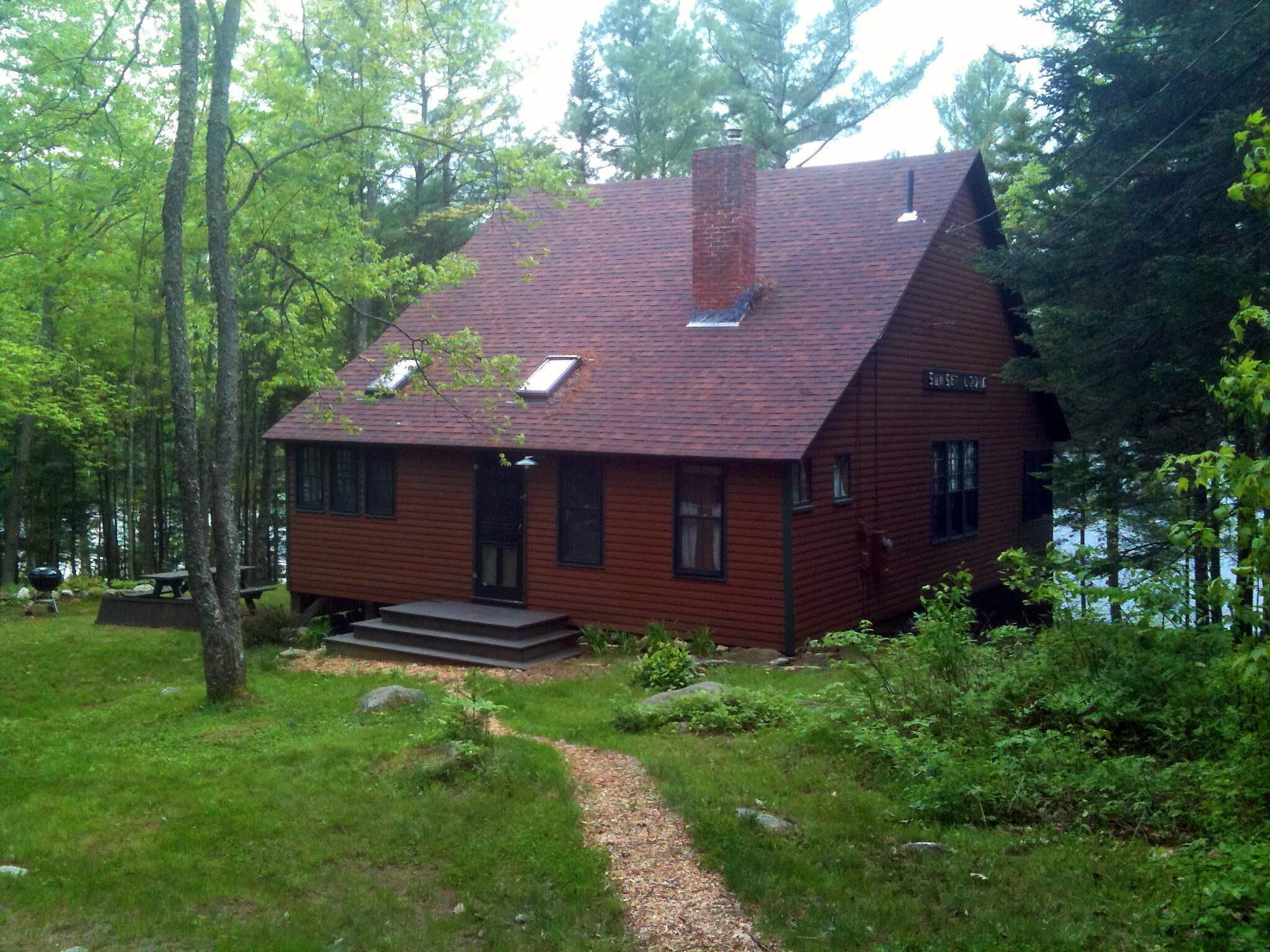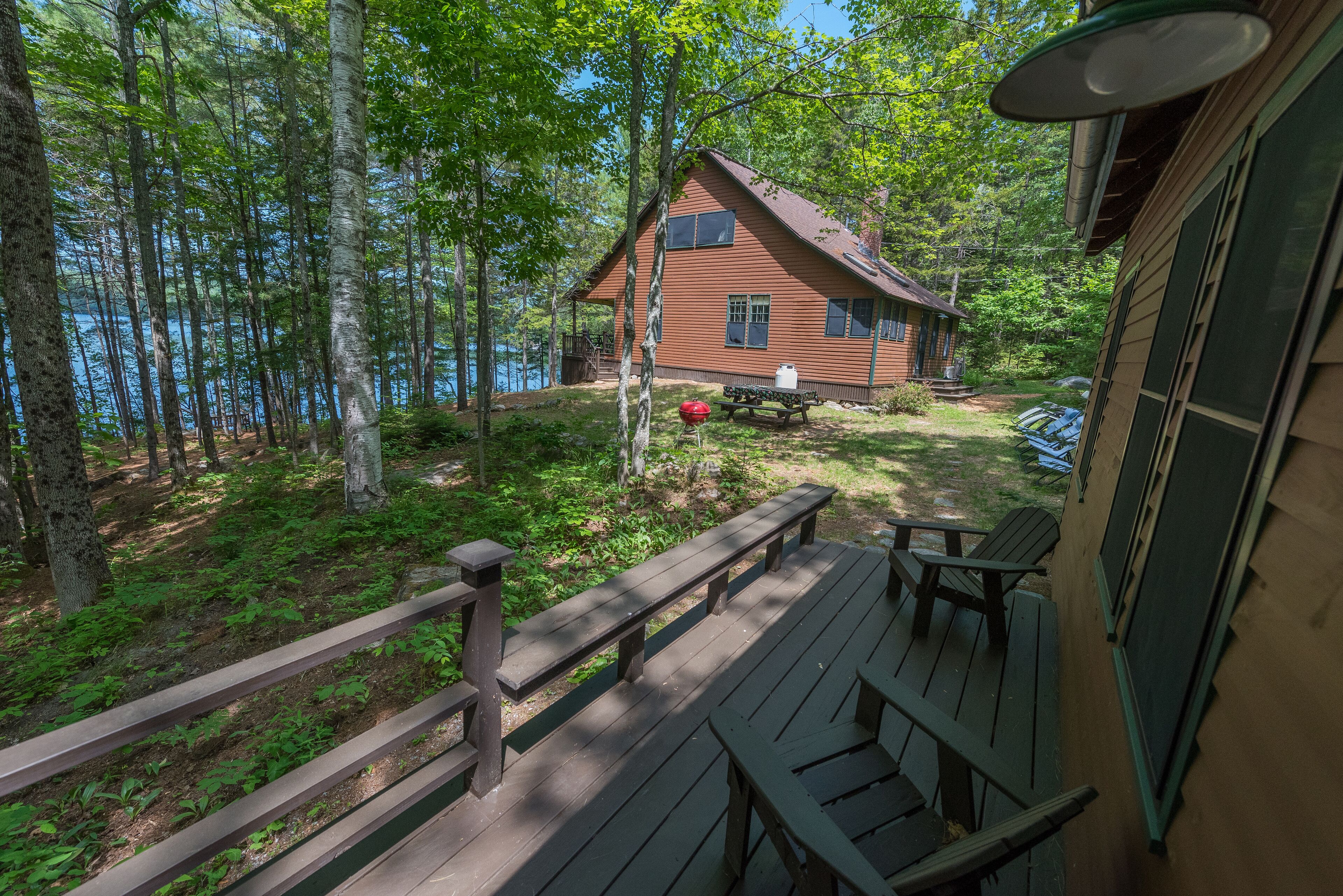 “Sunset Lodge” a Maine lakefront cottage with charming guest house Built in 1919 and updated to provide all modern amenities while preserving the historic feel of a true Maine “camp,” this private end-of-the-road cottage sleeps 6 and features a first floor bedroom, den/guest room, airy sleeping loft, new eat-in kitchen, open dining/living room, updated bathroom with original claw foot tub/showe...
