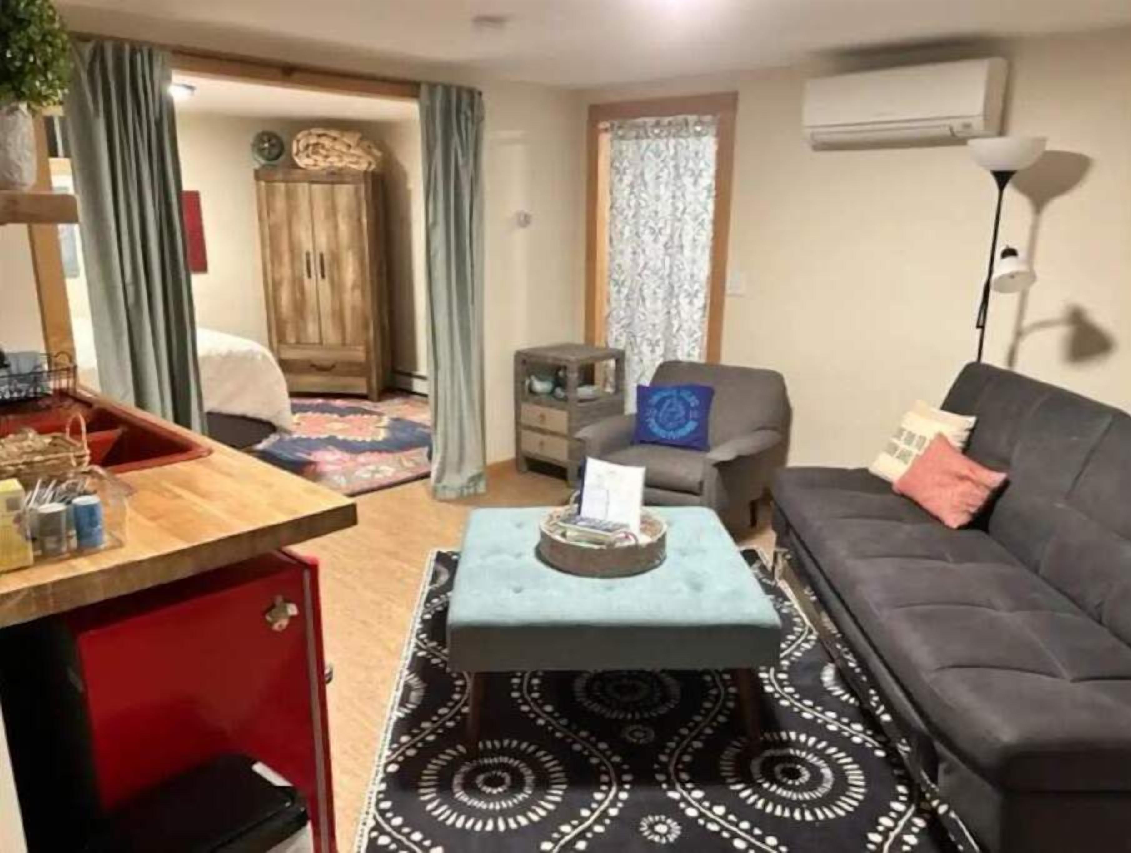 Private apartment in-town Hanover and near DHMC About this spaceEnjoy easy access to everything from this perfectly located home base. Your apartment has a private entrance and is a quick walk to Dartmouth, the shops and restaurants of Hanover, and the Coop supermarket. 5-minute drive to Dartmouth-Hitchcock Memorial Hospital.Kitchenette with mini-fridge, toaster oven, microwave, kettle, single burner plug-in cooktop.Bedroom has queen-size bed.Queen-size pull-out couch in living space.No car needed