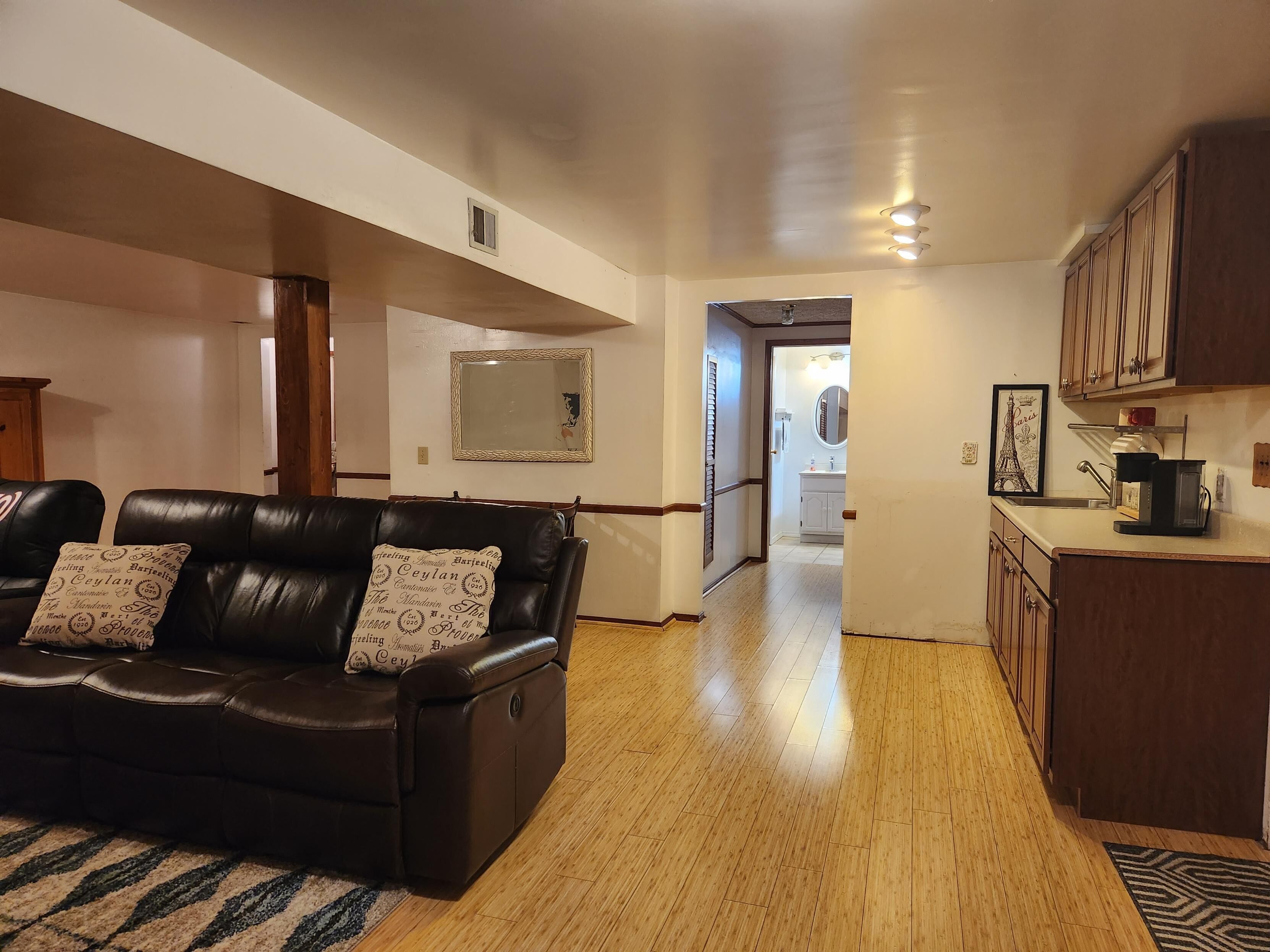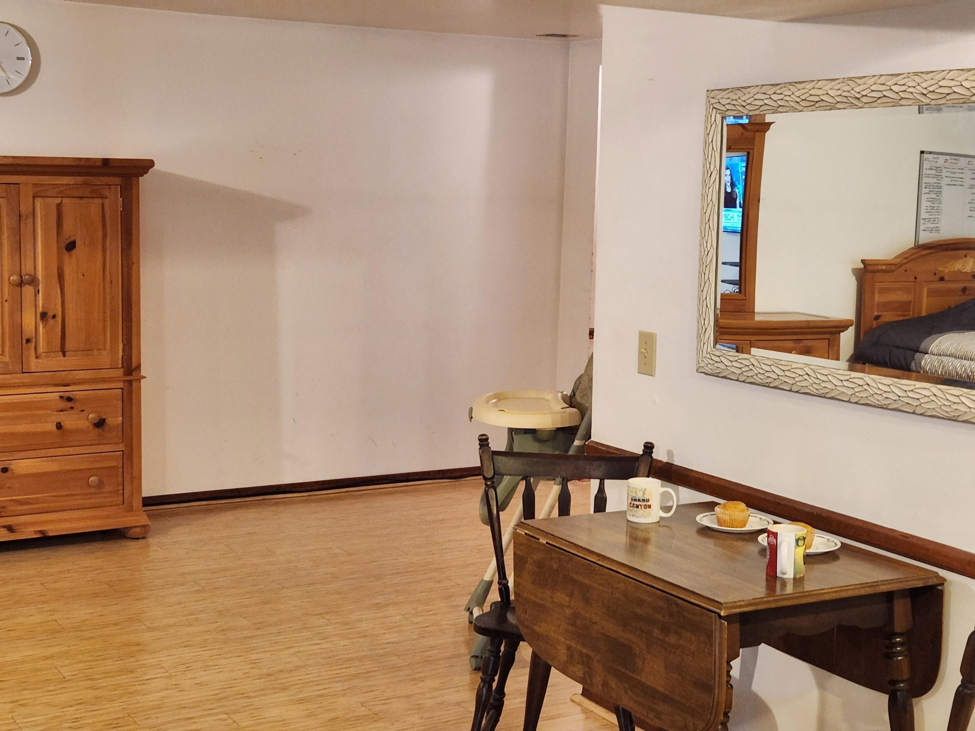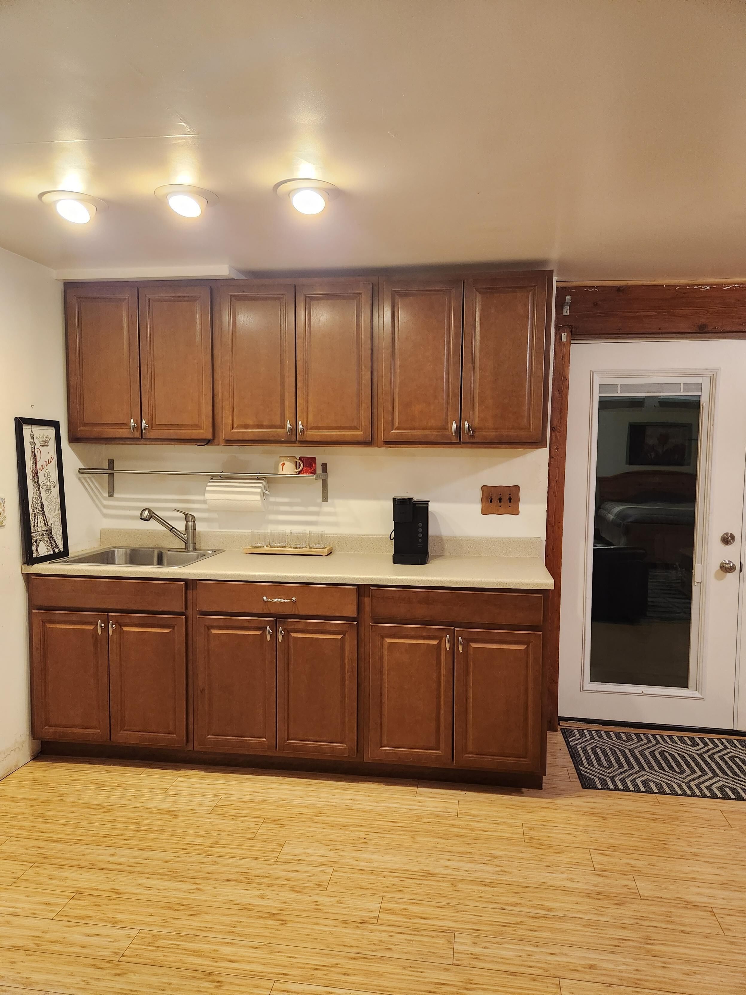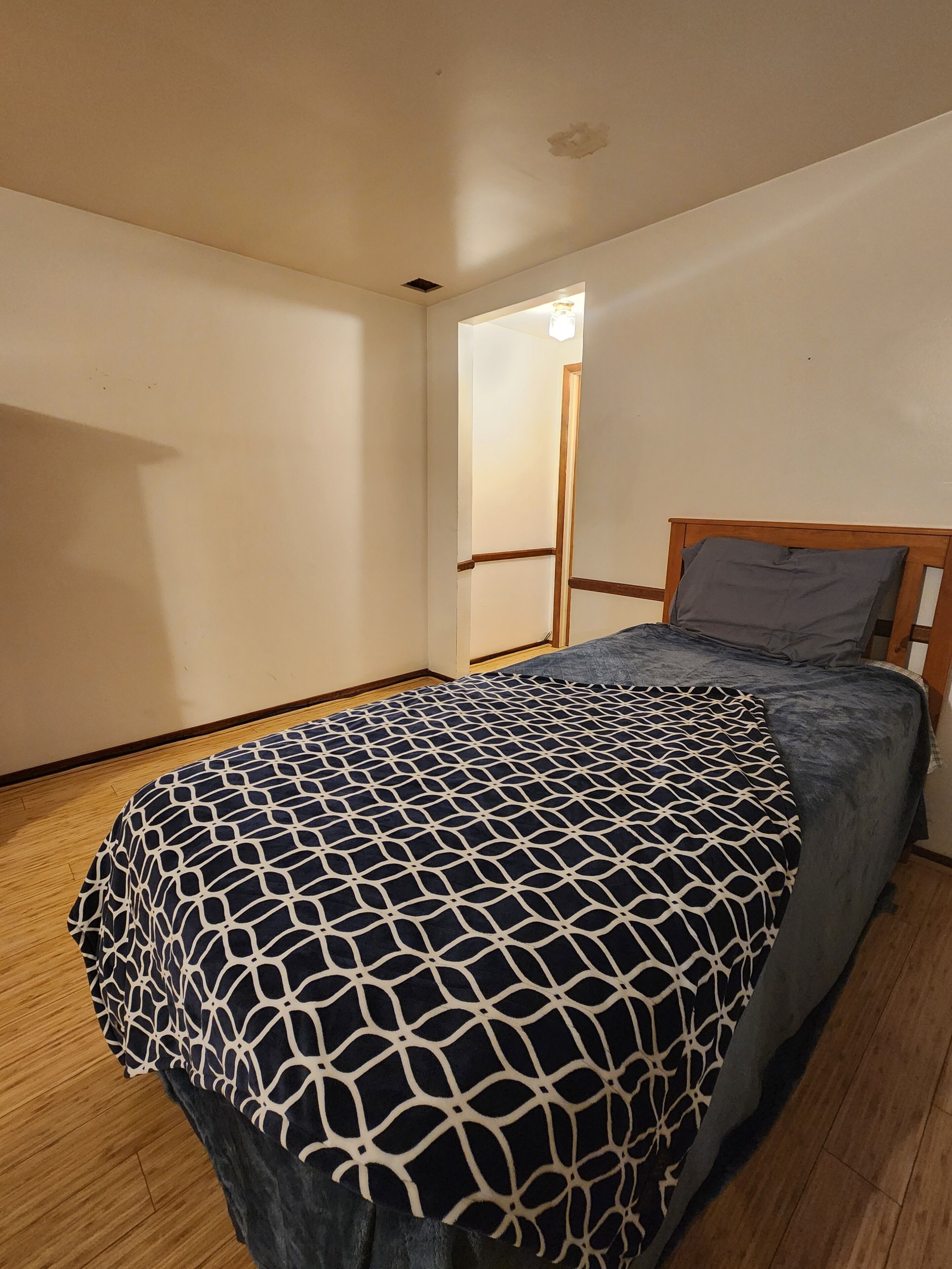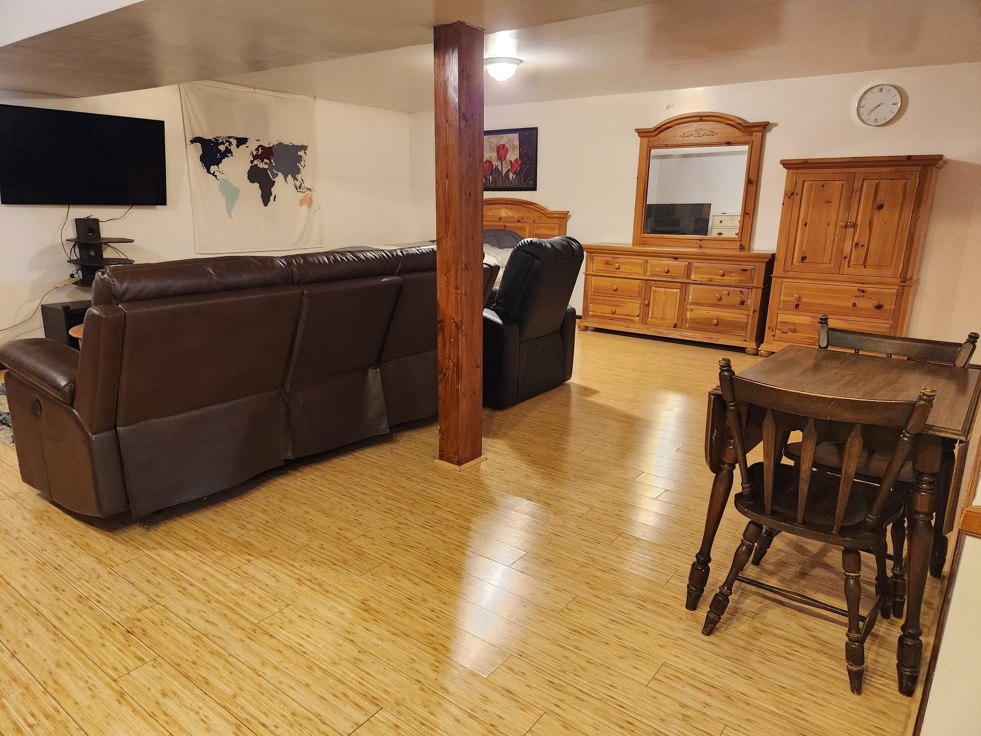 Studio w/3 beds, 1 Queen, two twin, couch, pellet stove, full amenities, shower. Spacious 900 sq foot private entrance basement with pellet stove, queen size bed, two single beds, couch, dresser and drawer, small table for eating or coffee, 55-inch LG TV with cable and streaming options, Keurig coffee maker with coffee provided. Leather couch, highchair, hairdryer, towels and linens provided, bat...