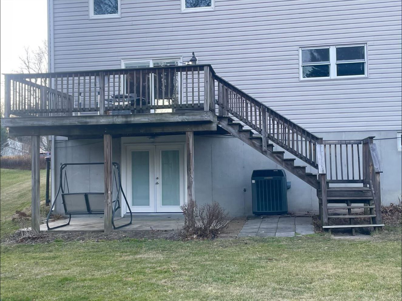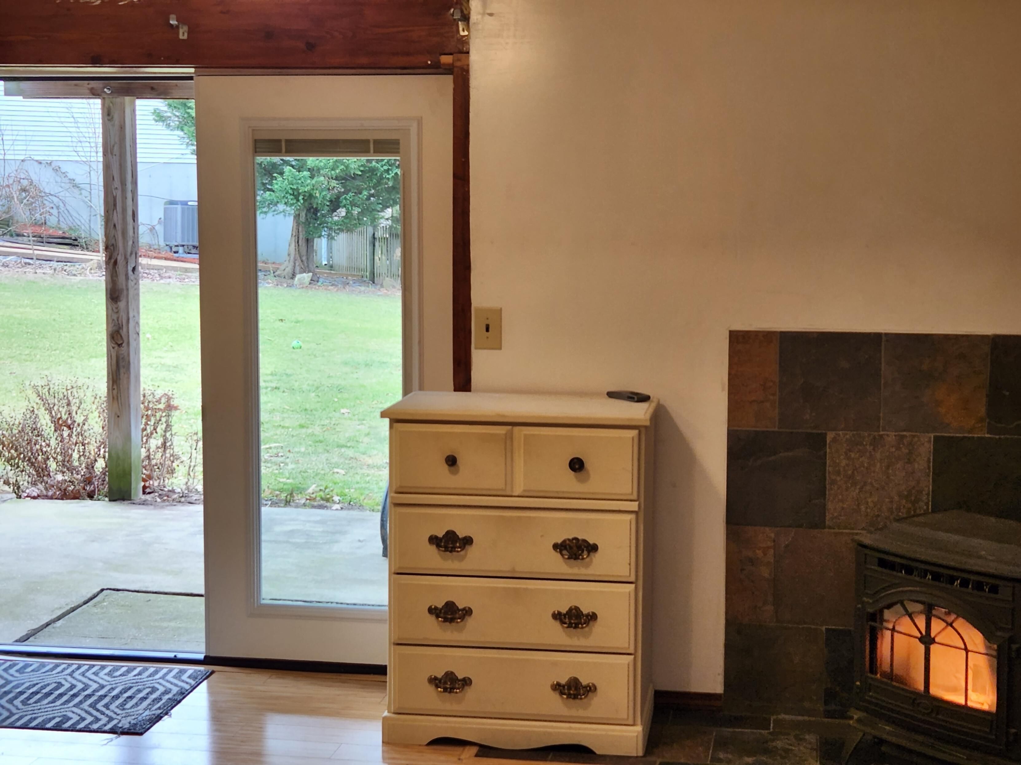 Studio w/3 beds, 1 Queen, two twin, couch, pellet stove, full amenities, shower. Spacious 900 sq foot private entrance basement with pellet stove, queen size bed, two single beds, couch, dresser and drawer, small table for eating or coffee, 55-inch LG TV with cable and streaming options, Keurig coffee maker with coffee provided. Leather couch, highchair, hairdryer, towels and linens provided, bathroom with sink, toilet and walk in shower, as well. Swing on the back patio, flowers in abundance, Community Yard of the Year winner 23 straight years in a row.