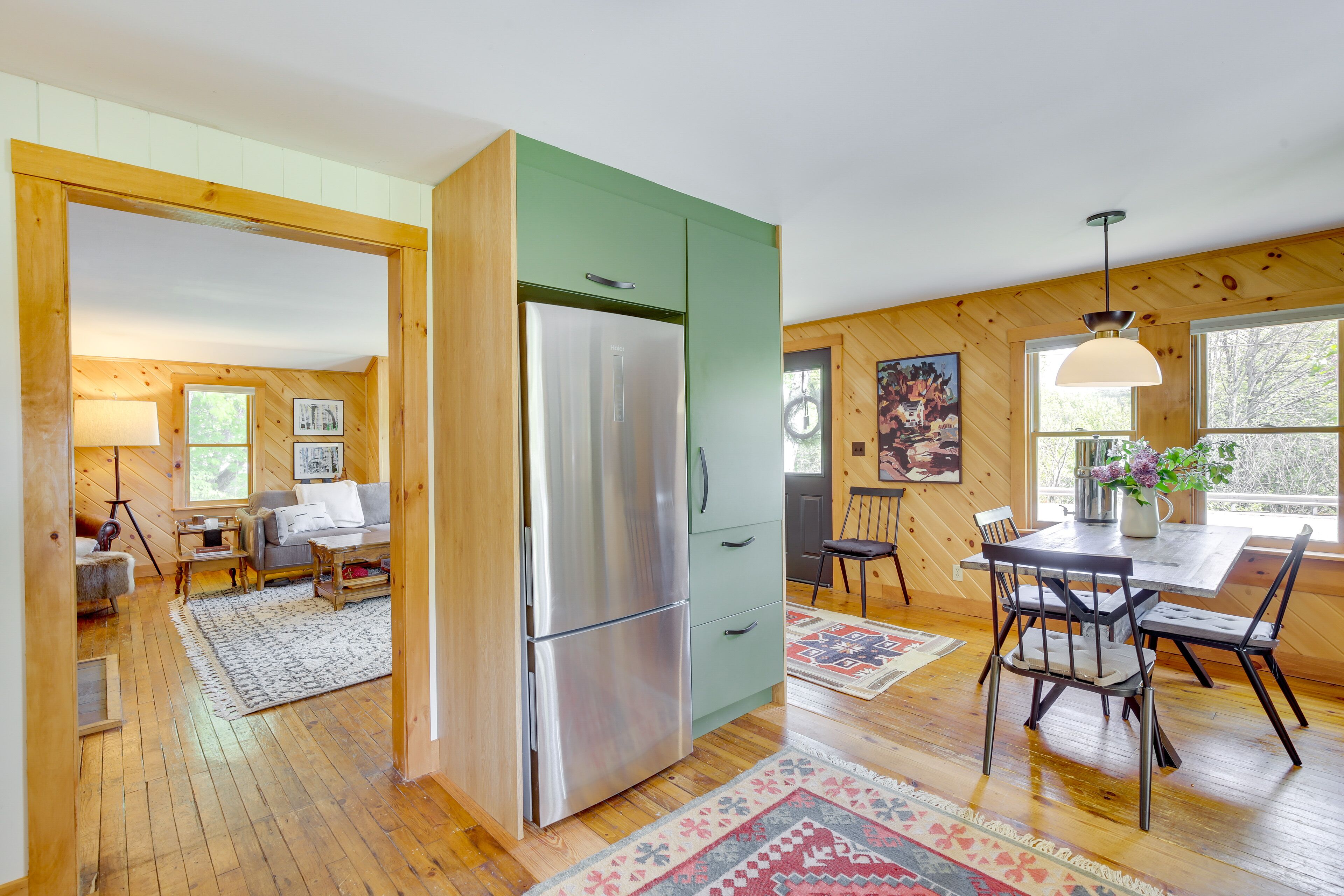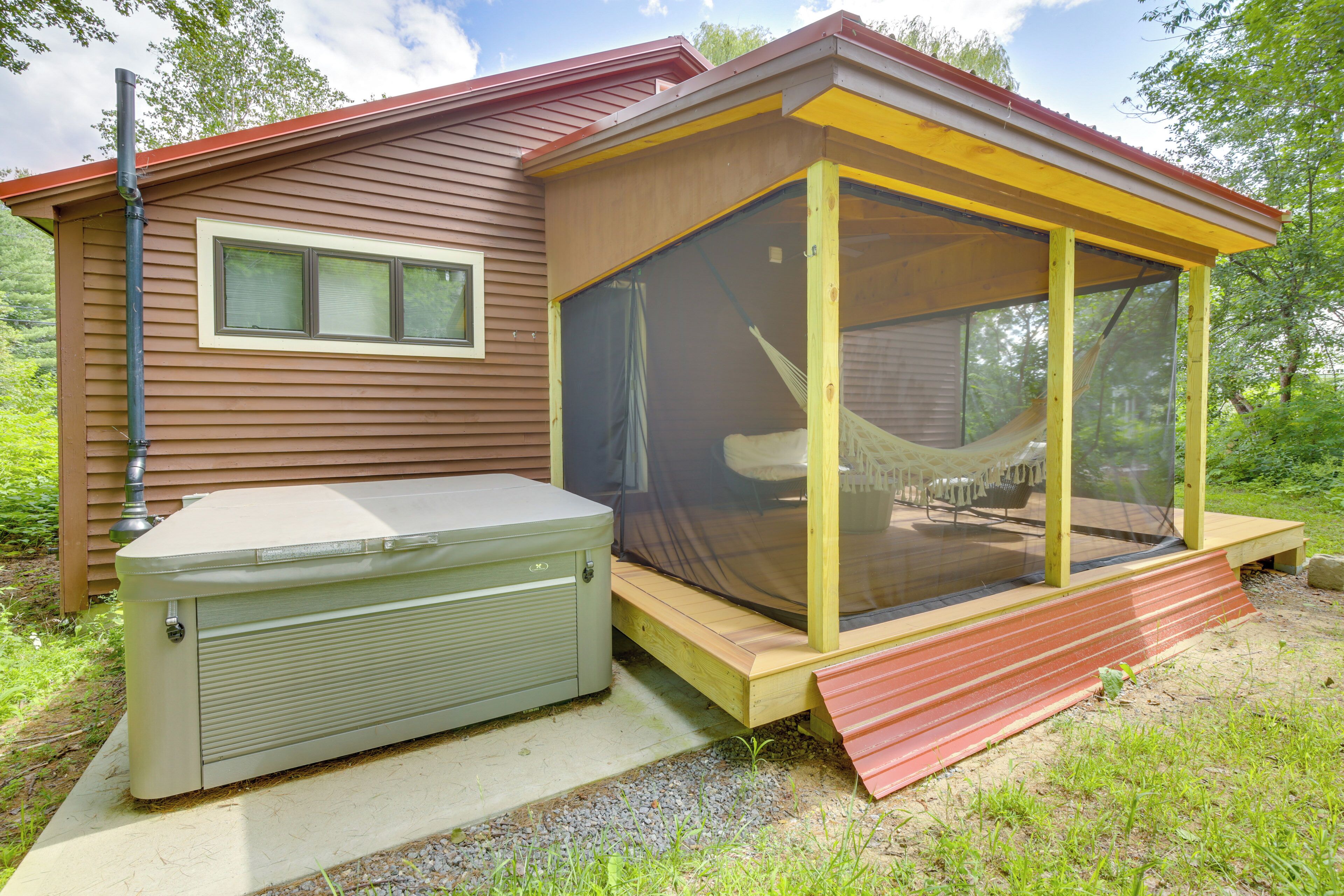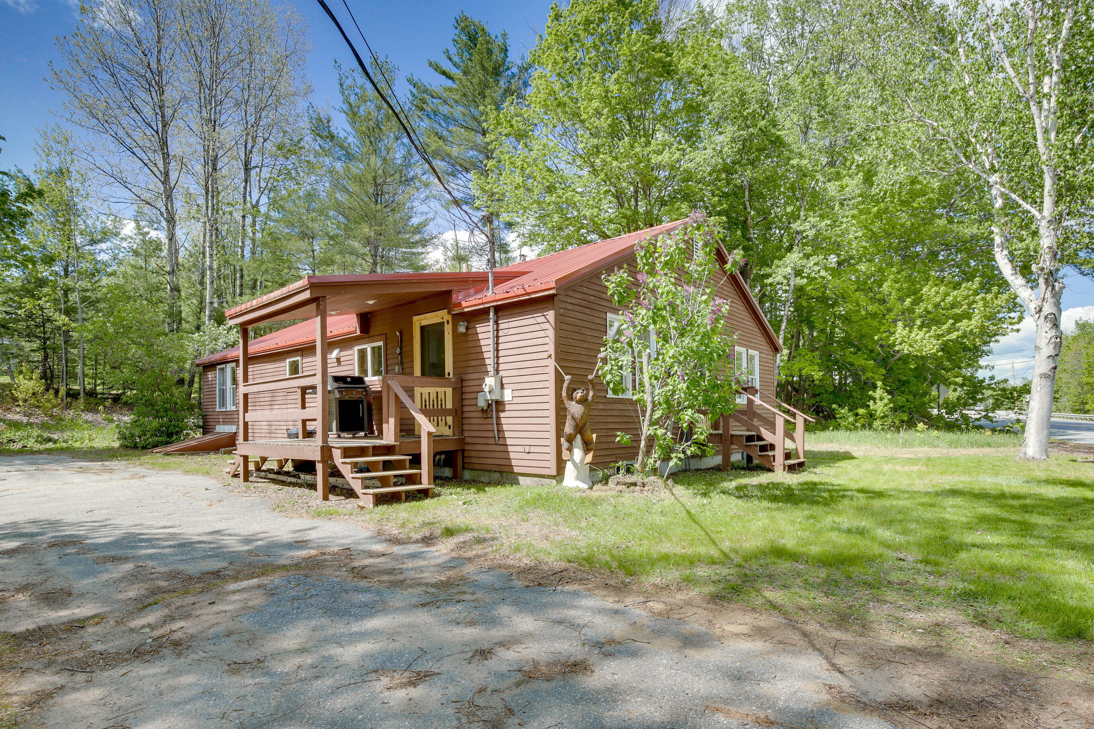 Gorgeous Sunday River Cabin w/ Saltwater Hot Tub! Traditional cozy cabin meets chic mid-century modern abode at this 3-bedroom, 1-bath vacation rental in Hanover, Maine. Within a short drive, choose to shred the slopes in winter, admire breathtaking foliage in autumn, or maybe visit in summer and hike, swim, and hunt for wild blueberries. When the day's adventures are complete, come home to warm up with a soak in the hot tub, a drink on the deck, or snuggles around the wood-burning fire. Regardless, this modern mountain cabin is sure to please.-- THE PROPERTY --Pet Friendly w/ Fee (2 Pets Max) | Short Drive to Sunday River & Grafton Notch State ParkBedroom 1: King Bed | Bedroom 2: Queen Bed, Twin Bed | Bedroom 3: Queen BedCABIN FEATURES: 2 cable TVs, wood-burning stove, dining table, remote workspace, books, board games, modern mountain cabin decorOUTDOOR AMENITIES: Private screened deck w/ lounge seating, gas grill (propane provided), saltwater hot tubCHEF’S KITCHEN: Cooking basics, stainless steel appliances, spices, dishware & flatware, Crockpot, blender, drip coffee makerGENERAL: Free WiFi (5G), washer/dryer, towels/linens, complimentary toiletries, hair dryerFAQ: Pet fee (paid pre-trip), access only by stairs, no A/CPARKING: Driveway (4 vehicles), RV/trailer parking-- THE LOCATION --WINTER RECREATION: Sunday River Resort (10 miles), Inland Woods & Trials (11 miles), Mt. Abram Ski Area & Bike Park (12 miles), Black Mountain of Maine (15 miles)SUMMER ADVENTURE: Rumford Whitecap Mountain Preserve (5 miles), Step Falls Preserve (13 miles), Grafton Notch State Park (15 miles), Mahoosuc Public Reserved Land (17 miles), Mt. Blue State Park (30 miles)ALL-SEASON FUN: Maine Mineral & Gem Museum (11 miles), The Gem Theater (11 miles), Sunday River Bridge (11 miles), Museums of the Bethel Historical Society (12 miles)AIRPORTS: Augusta State Airport (60 miles), Portland International Jetport (70 miles)-- REST EASY WITH US --Evolve makes it easy to find and book properties you’ll never want to leave. You can relax knowing that our properties will always be ready for you and that we’ll answer the phone 24/7. Even better, if anything is off about your stay, we’ll make it right. You can count on our homes and our people to make you feel welcome--because we know what vacation means to you.-- POLICIES --- No smoking - Pet friendly with a $75 fee (+ taxes & fees, 2 pets max)- No events, parties, or large gatherings - Must be at least 25 years old to book- Additional fees and taxes may apply- Photo ID may be required upon check-in- NOTE: The property requires stairs to access- NOTE: The property does not have air conditioning