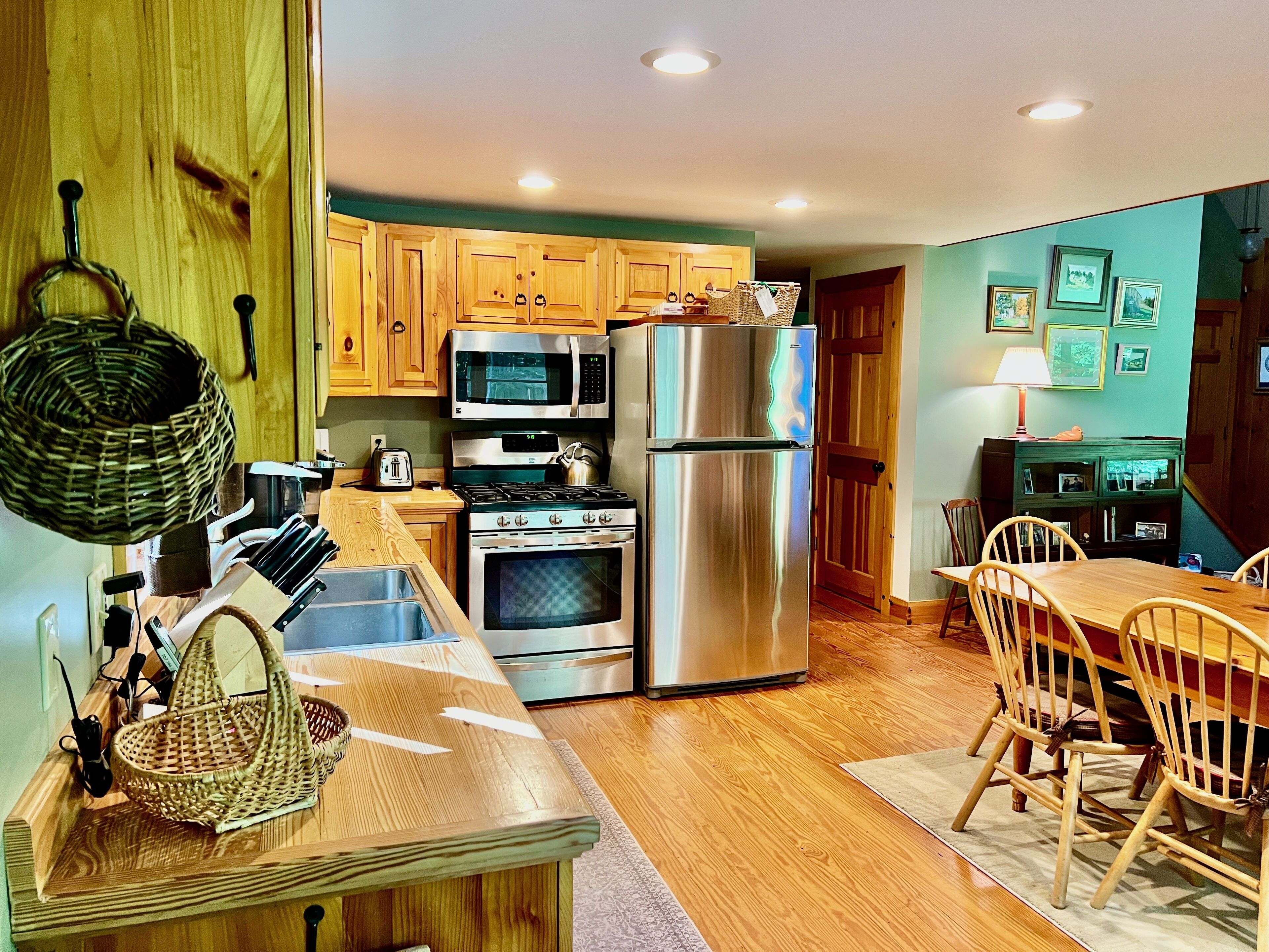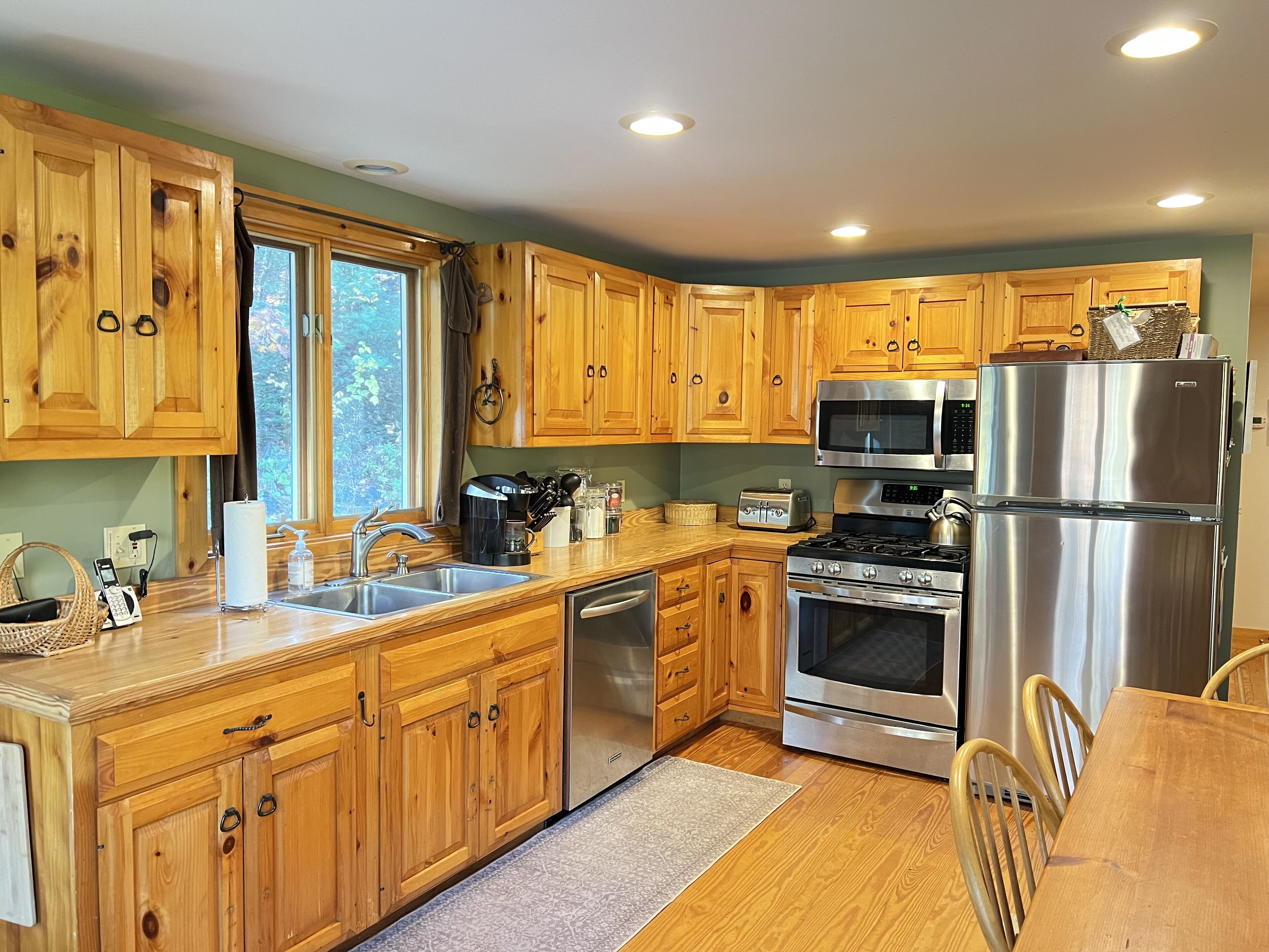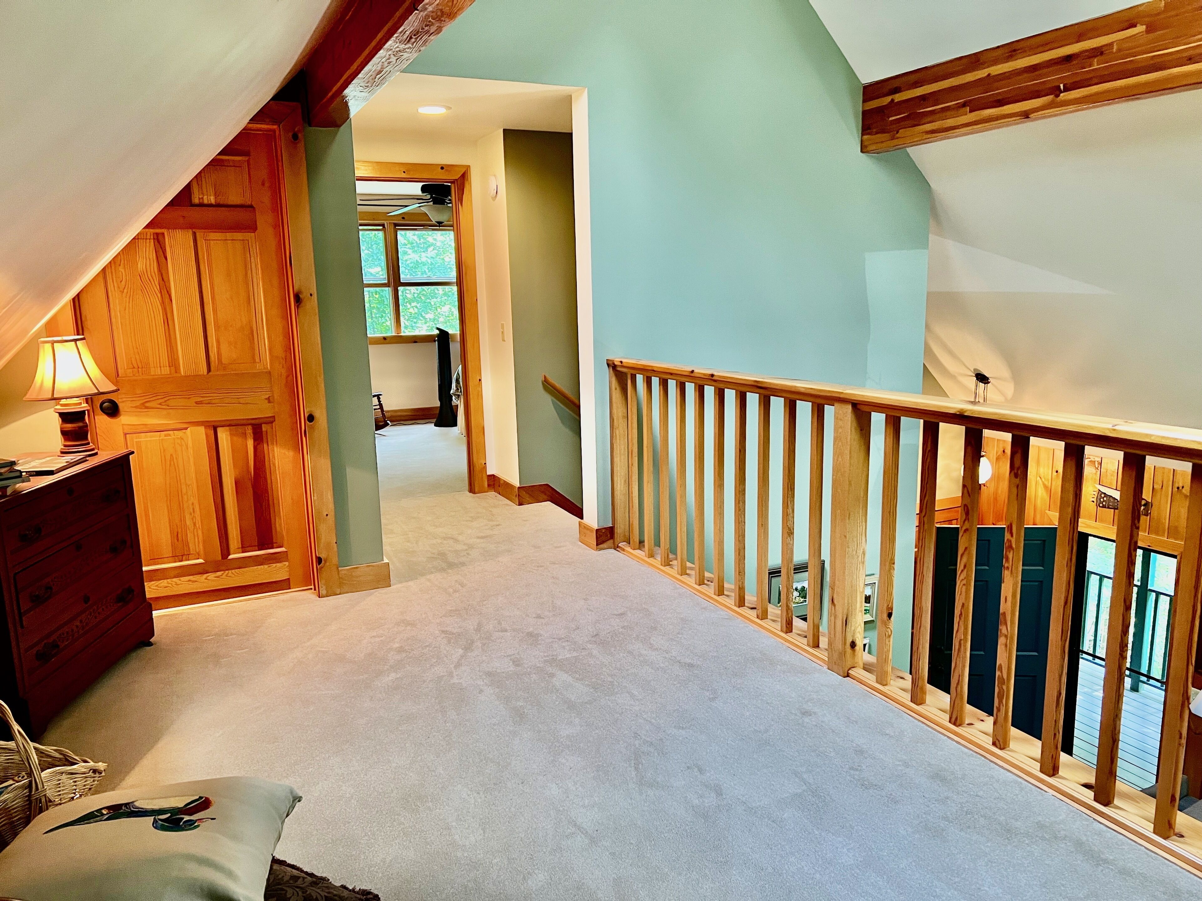 Charming Private Vacation Home - 15 Minutes to Sunday River The House on the Hill will not be available for reservations 2024 because of restorations due to a plumbing leak. Check back with us for 2025.This charming private retreat is nestled among Maples, Birches, and Firs with a view of Howard Pond. The tastefully decorated three-bedroom, two-bath cottage sleeps six with two queen beds and two twin beds. The inviting open living/dining/kitchen features a vaulted cathedral ceiling with roof windows that allow light to fill the home. The 6' pine dining table accommodates everyone. The primary suite with the adjoining loft living area is located on the second floor. The pine paneling, cabinets, and pine wood floors add to the warmth and ambiance of this Maine woods retreat. There will be the slightest sigh (ahh) of approval and excitement as you enter this gracious, welcoming environment. This is a place that can restore your soul. After a day full of activity, you can sit by the fire and watch the leaves or the snowflakes fall. Relax and while away the hours in the rocking chairs on the 8'wide farmers' porch that spans the front of the house.Howard Pond is a pristine Maine pond that prohibits noisy watercraft and is home to a loon family. There is a public swimming area and a dock near the dam. Adventurous hiking --including the Appalachian Trail & other hikes in the White mountains-- and quiet walks are just outside your door. You may even see a moose!Downhill and cross-country skiing, snowshoeing, ice skating, snowmobiling is all within 10 or 15 minutes of the house. The Sunday River Golf Club is one of the premier courses in New England. The Bethel Inn and Country Club also provides a challenging 18-hole course.Minutes away from the Androscoggin River, canoeing, kayaking, and guided trips are within easy access.Keywords: skiing, snowboarding, cross-country skiing, golfing, house, canoeing, hiking, swimming, fishing, relaxing, private, romantic, non-smoking, charming, cottage