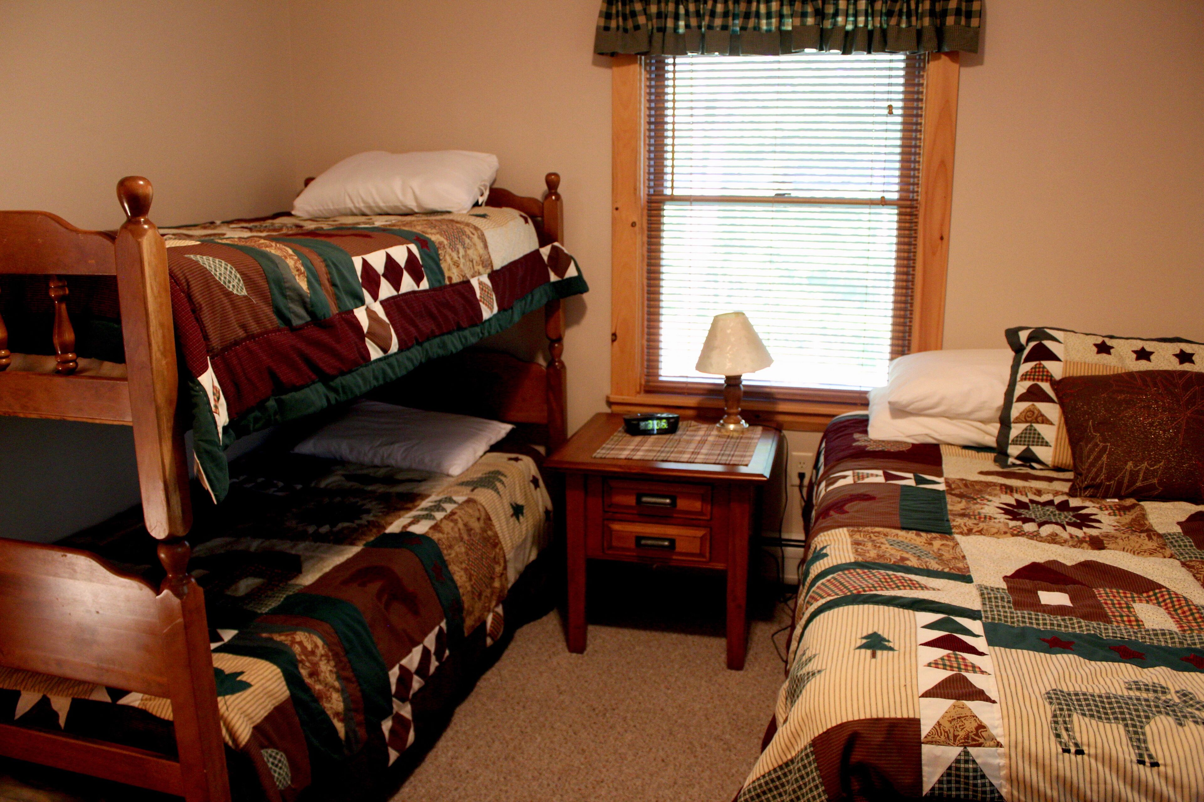 Sunday River Ski Resort, Newry, ME - On Howard Pond - Affordable You and your family are going to LOVE the feel of this cozy, well equipped home for your vacation. Everything you'll need to make your stay comfortable is right at your fingertips. Please check the reviews, and judge for yourself.The master bedroom has a warm, comfortable feeling with a new queen bed and plenty of space. The three windows make the views over Howard Pond spectacular. The second bedroom has a queen bed and a set of twin bunk beds, also with plenty of space. You bring your own sheets, but all other bedding is there including pillows. (I will provide sheets upon request) The full bath has an oversized shower with a seat for comfort. All towels are included. The eat in kitchen is fully equipped with a dishwasher, microwave, keurig, and all other comforts of home. The large living room has comfortable furniture and an open concept. Wood accents the home from floor to ceiling. You have a private balcony which overlooks Howard Pond for relaxing with your glass of wine or coffee. The dimmers on the overhead lights help you set the mood your looking for.This home is very quiet and peaceful after a long day of hiking, shopping, site seeing, biking, skiing, riding or snowmobiling. Cable and wifi are included.The home sits above a two car garage. We use the garage by entering via the garage door opener giving you a private entrance thru the hallway. We park our cars in the garage (as well as our snowblower) and may need to enter during your stay, so you may hear the garage door open periodically. No pets and no smokers allowed.Thank You, Tracey and Paul