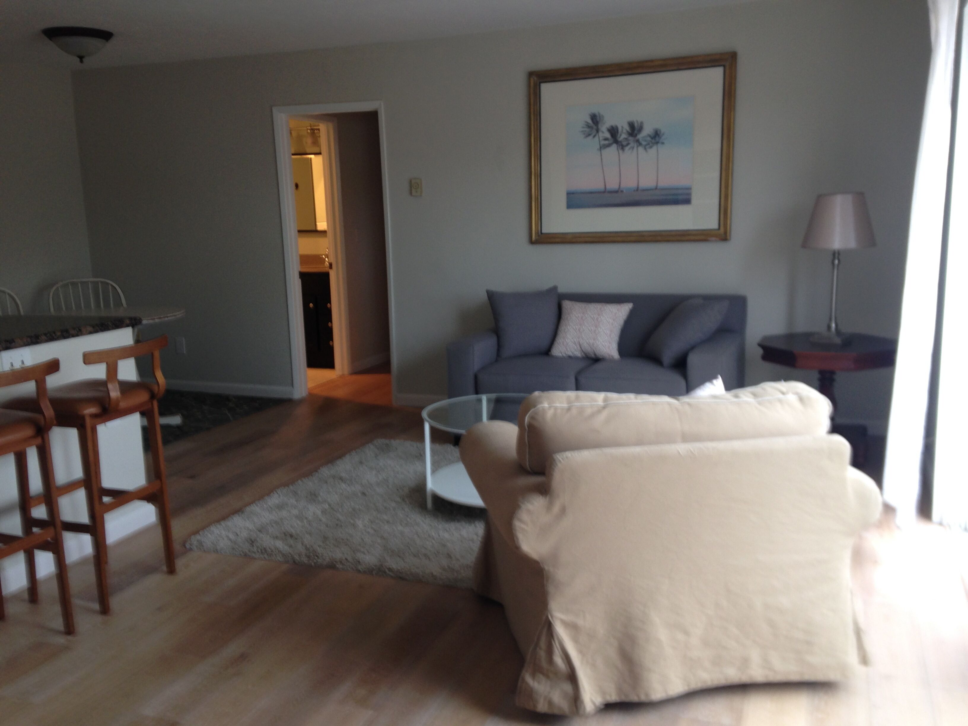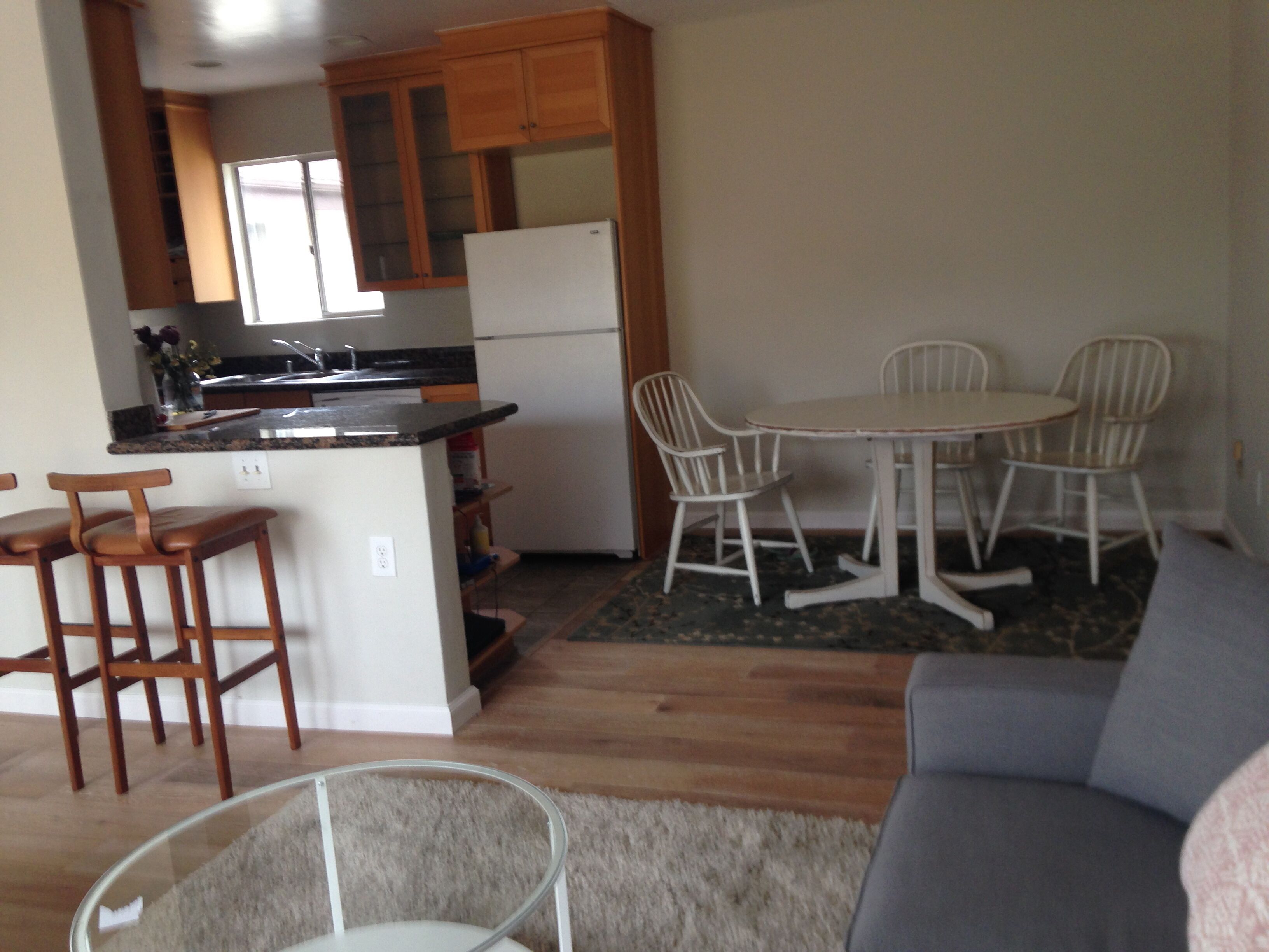 2 bd. Condo one block from Ferry Landing, shops, groceries, restaurants, cafes Sunny 2 bedroom, 1.5 bath condo. Brand new hardwood floors, updated kitchen and baths. Ideally situated close to the San Diego Bay, one block from the Ferry Landing. Walk to bayside dining and shopping within minutes. Laundry. Balcony off living room with peak view of downtown San Diego. One off street parking spot. Some storage for bikes or surfboards. Ideal for a couple or small family. Sleeps up to four. Second floor unit is up one flight of stairs.