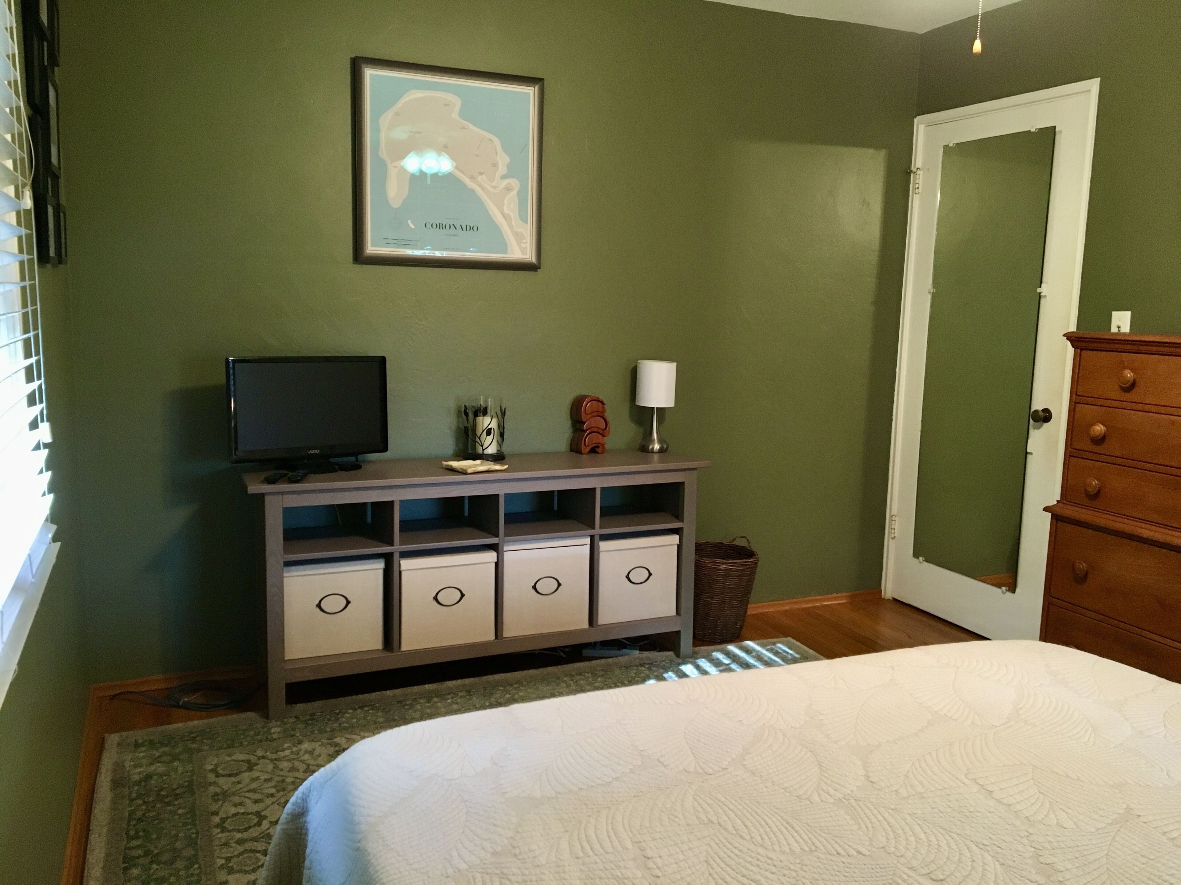 Coronado Bayside Family Home Enjoy our bayside home as we have for 50 years. Comfortable and fully equipped, this would be a perfect respite for a family or couples. The home is walking distance from restaurants, shopping, cafes, beaches and the iconic San Diego skyline.Step into the front patio and enter a private garden to enjoy at your leasure. Complete outdoor furniture in both front and back patios. Firepit for evening cocktails and grill for backyard barbecues.Our home features warm hardwood and tile floors. Air conditioning, forced air furnace, custom, counters, cabinetry and fixtures. Three bedrooms with lots of closet space, canned lighting and ceiling fans.There are three roku equipped televisions with Netflix, Hulu, Disney, and HBO. Most sports channels as well. There is a streaming monitor in one bedroom as well. Wifi, office desk and printer.The kitchen has most every pot, pan and appliance you may need. Dacor gas range, electric oven and microwave.Most spices and staples in pantry for your use. Coffee maker, coffee grinder, electric kettle, InstaPot, mixer, electric griddle, food storage containers.Separate dining area with service for six. Kitchen table for four. The home and gardens are lovely, but you will most likely be out and about in charming Coronado. Walk to several children's beaches or bike to the world famous Coronado Beach and Hotel Del Coronado. Bike paths throughout the town make this a cyclists dream. Two waterfront parks are a short walk and there are bike, kayak and jets rentals for further exploration of our idyllic village.