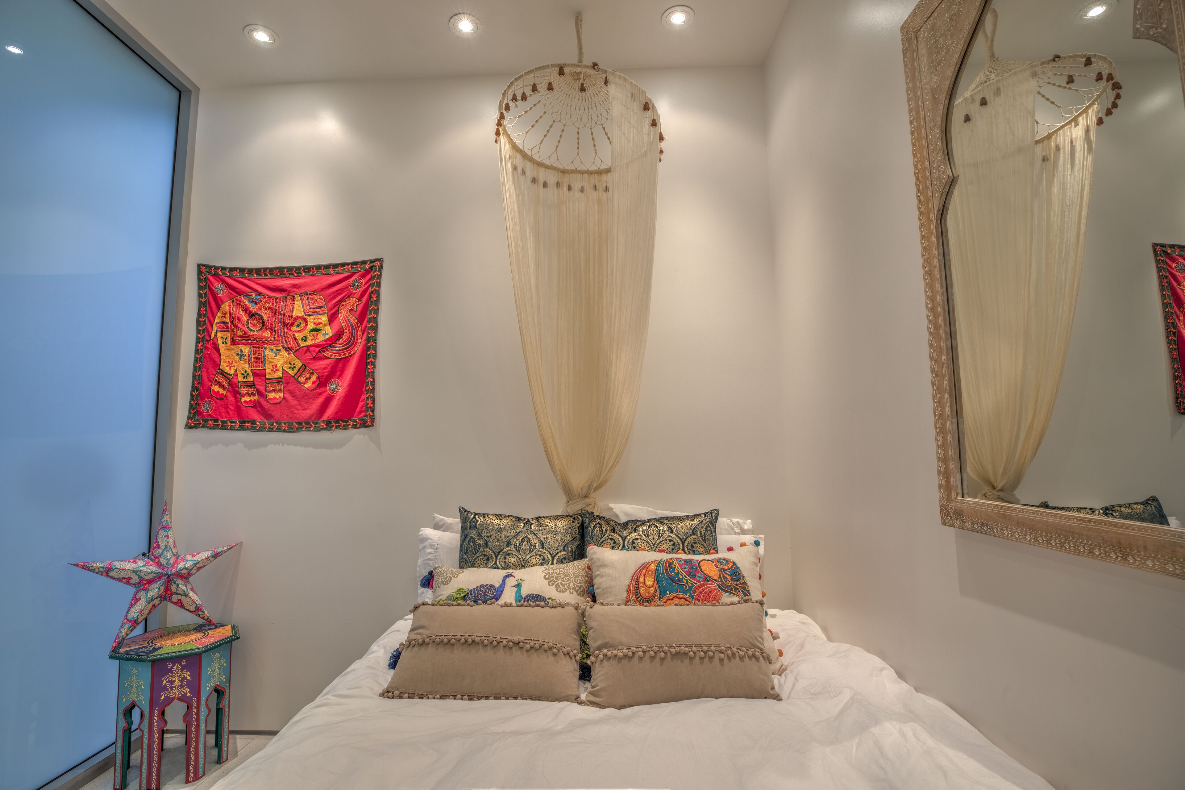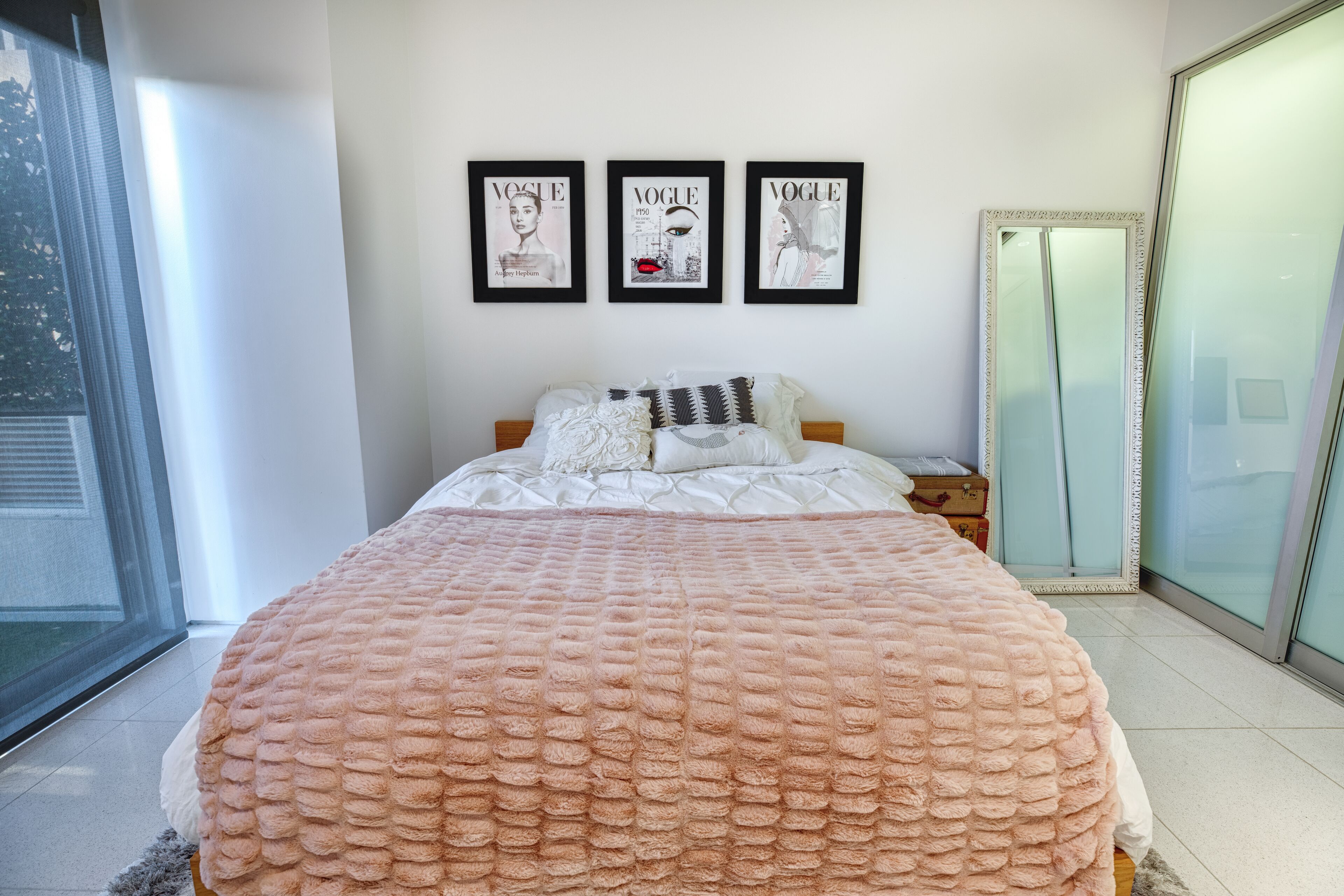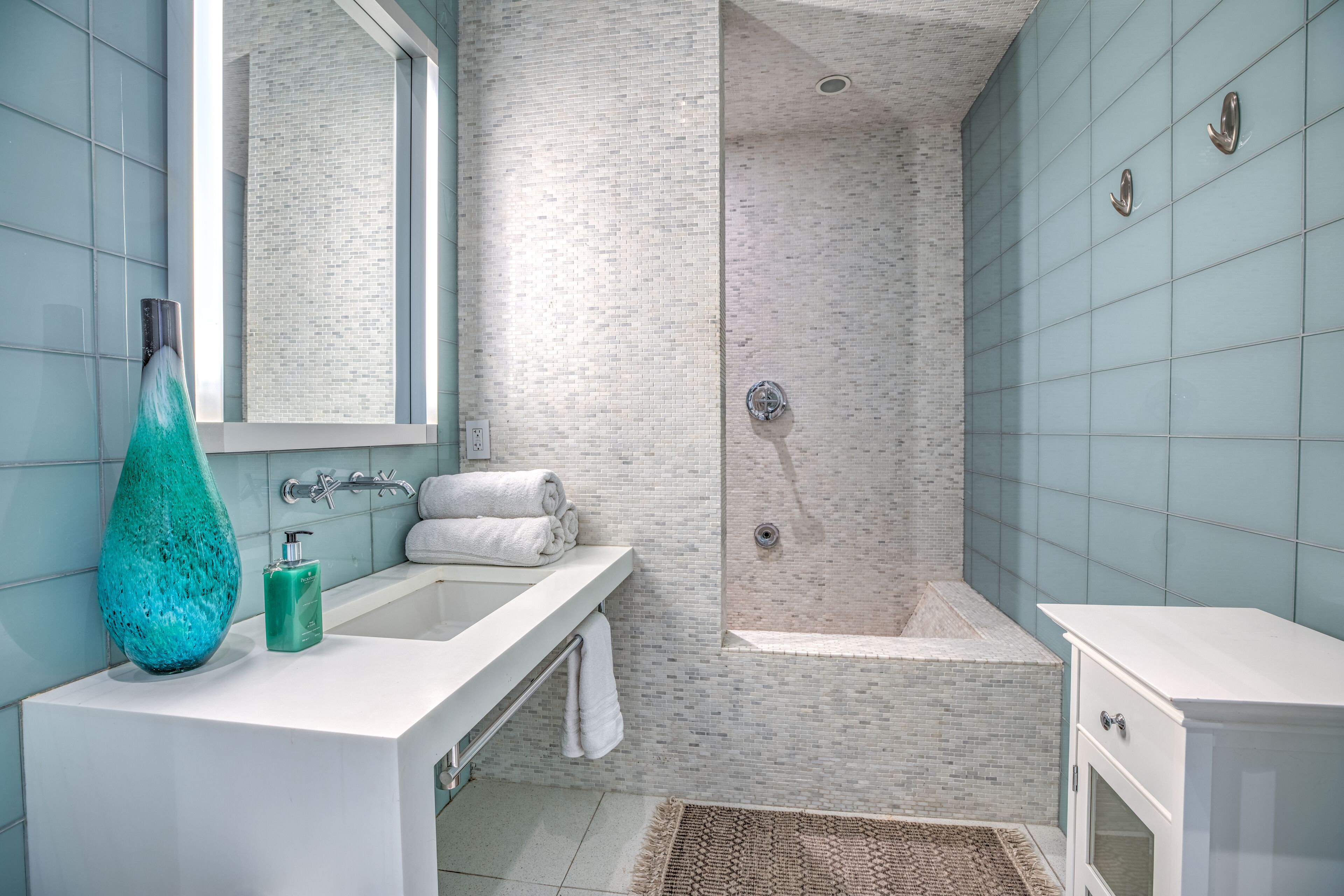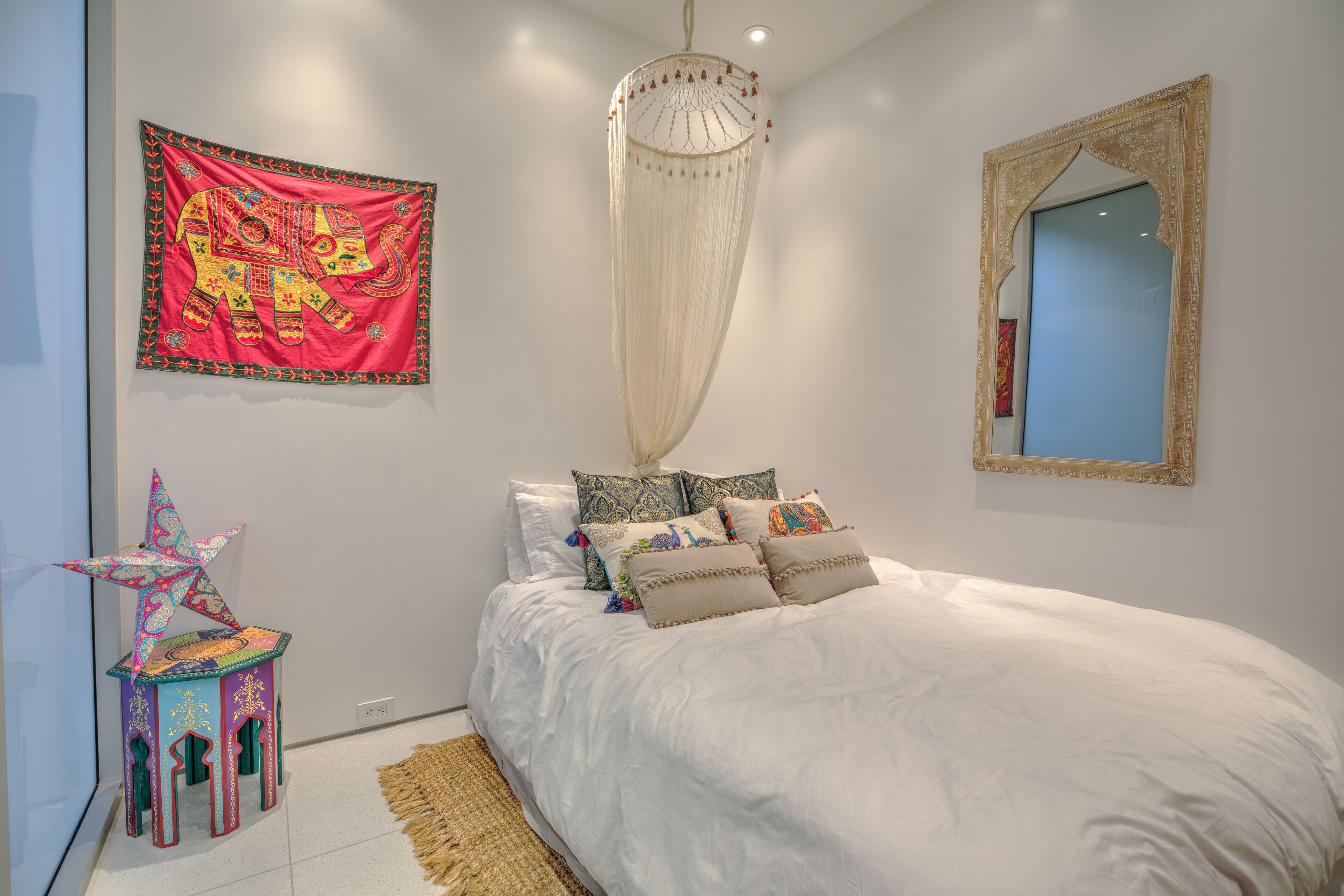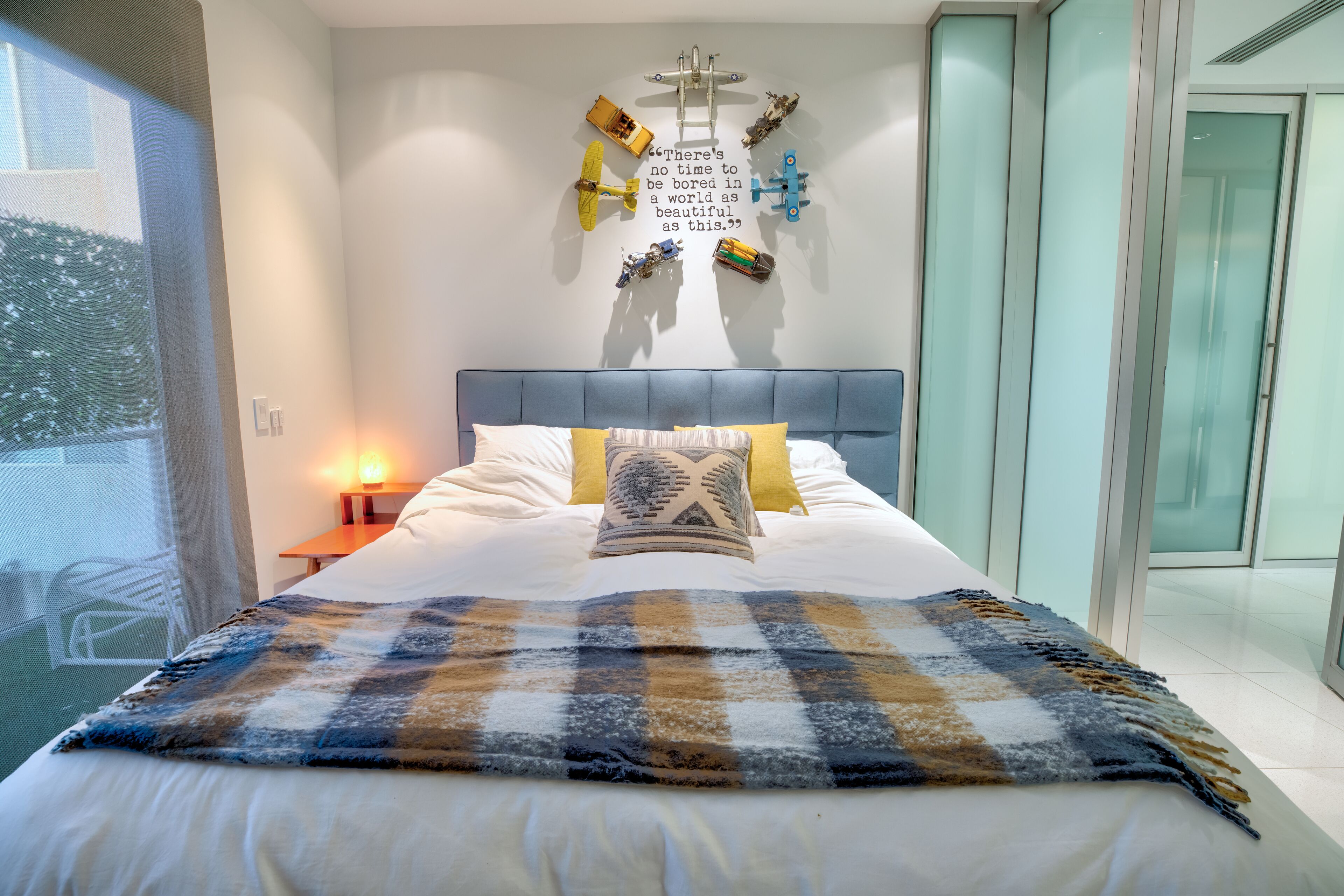 The Glass Haus Ultra Modern Luxury Retreat on Coronado Island Exquisite modern luxury on Coronado Island! Steps from bayside beach, parks, sushi, a market and so much more. An architectural and design masterpiece with sliding glass walls and glass floors! Enjoy true luxury living with constant captivating views of the San Diego skyline, the San Diego Bay, the Coronado Bridge and fireworks! Steps to the ferry to Convention Center, Gas Lamp & Seaport Village. Ride one of our beach cruiser bikes to the Surf or walk across the street for a Paddle on the Bay.Walk up the sleek formal entry that leads to the second floor foyer and spectacular floating stairway. Delight in the open living space, high ceilings, white granite tile, and floor to ceiling glass walls that completely open for an indoor/outdoor lanai living experience. The living area features a custom floor to ceiling warming fireplace, integrated flat screen with Apple TV, Blue-Ray and sound system with Bluetooth and Auxiliary capabilities. Don't forget to look through the Starfire glass floor at your friends and family on the lower levels!Enjoy the gourmet chef's kitchen complete with dual ovens, a wonderful gathering island, kitchen TV, and grain matched solid walnut cabinets. Sit down for dinner and spectacular views from the custom designed dining room table (seats 10 comfortably). The living/dining area space flows to a fabulous finished grassy patio area, floating water fountain & botanical feature.Continue up to the fourth level roof top which offers 360' panoramic views of the entire Island, City/Coronado Bridge/Coronado Shores/Point Loma/Mission Bay. Soak in the Jacuzzi Spa while simultaneously watching ships float by and the beautiful sunset. The rooftop is a tranquil spa-like space with outdoor lounge bed, complete outdoor kitchen & grill perfect for entertaining, outdoor bar seating, outdoor couch, wood floor tiles, and a portable Sonos sound system.The large bedrooms on the second floor have spacious closet systems. The guest bath features beautiful Italian tile tub and shower. Full size washer/dryer on second level for your convenience. The Master Bedroom features artistic 1" glass swinging doors, custom designer bath with large steam shower and tub, and large custom walk-in closet.Kids and adults alike will love the movie room/game room on the first floor! Equipped with surround sound stereo system, 70 inch TV, foosball, ping-pong, air hockey tables, queen size murphy bed and full bathroom. Parking is simple with a secured private parking space in gated rear courtyard (plus plenty of street parking). Double entrances both from street front and rear courtyard.With the attention to detail in the custom design, finishes, and pop art pieces throughout our home, you are sure to love your stay!Please follow on Instagram @the_glass_haus_coronado to see more pics and updates