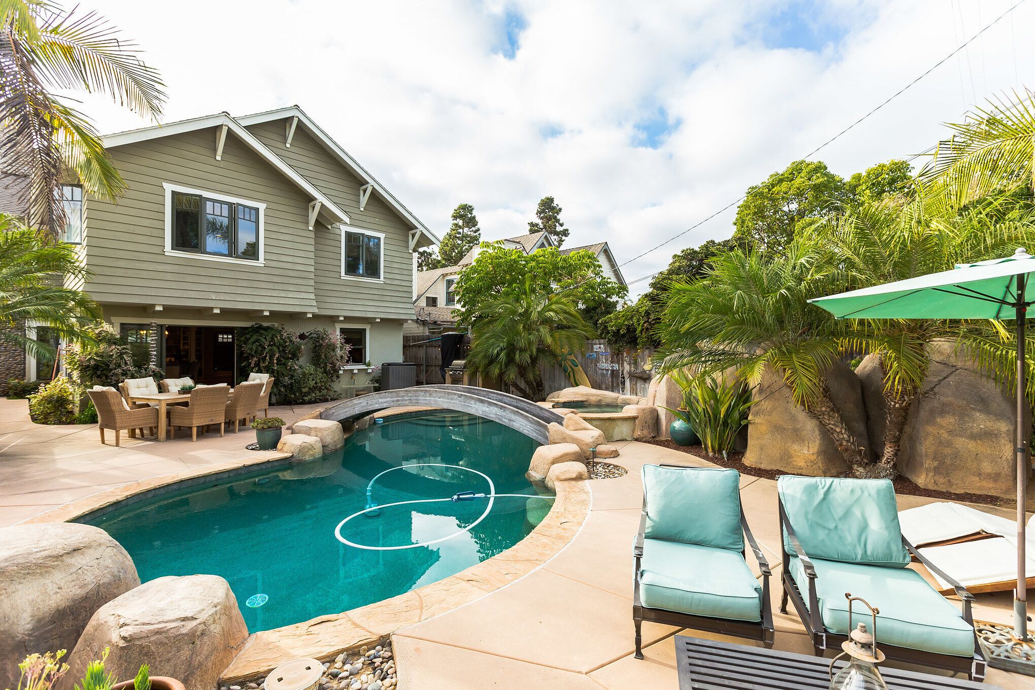 Beautiful Custom Home with Pool in Coronado Village Our beautiful custom built, 3 story home is located on one of Coronado's premier streets.Enjoy our fabulous open kitchen/ dining area ( dinner table seats 10+), perfect for entertaining. Open the French doors to the beautifully landscaped backyard with outdoor living area, and built in BBQ area, take a dip in our aquamarine pebble-bottom pool...