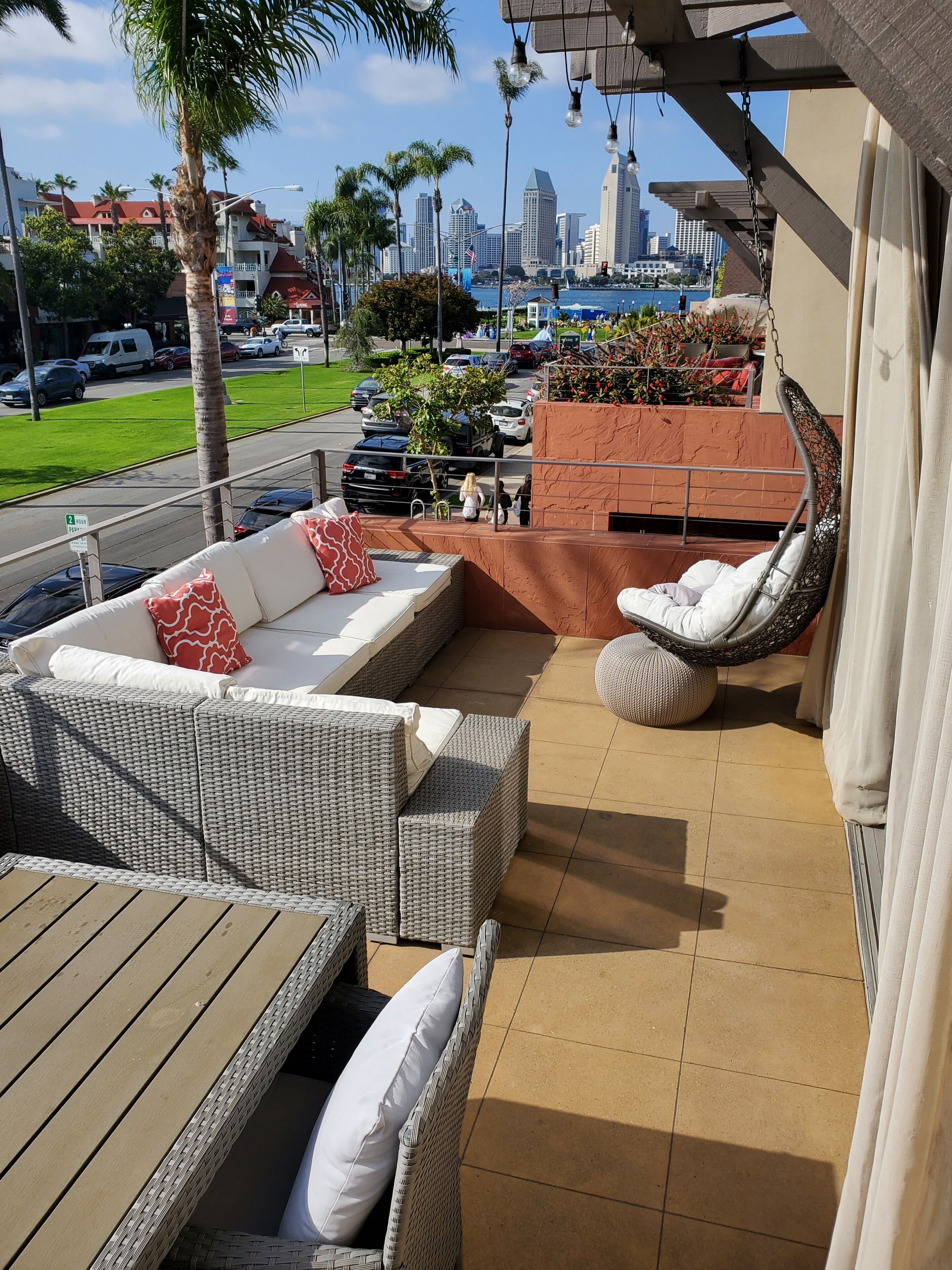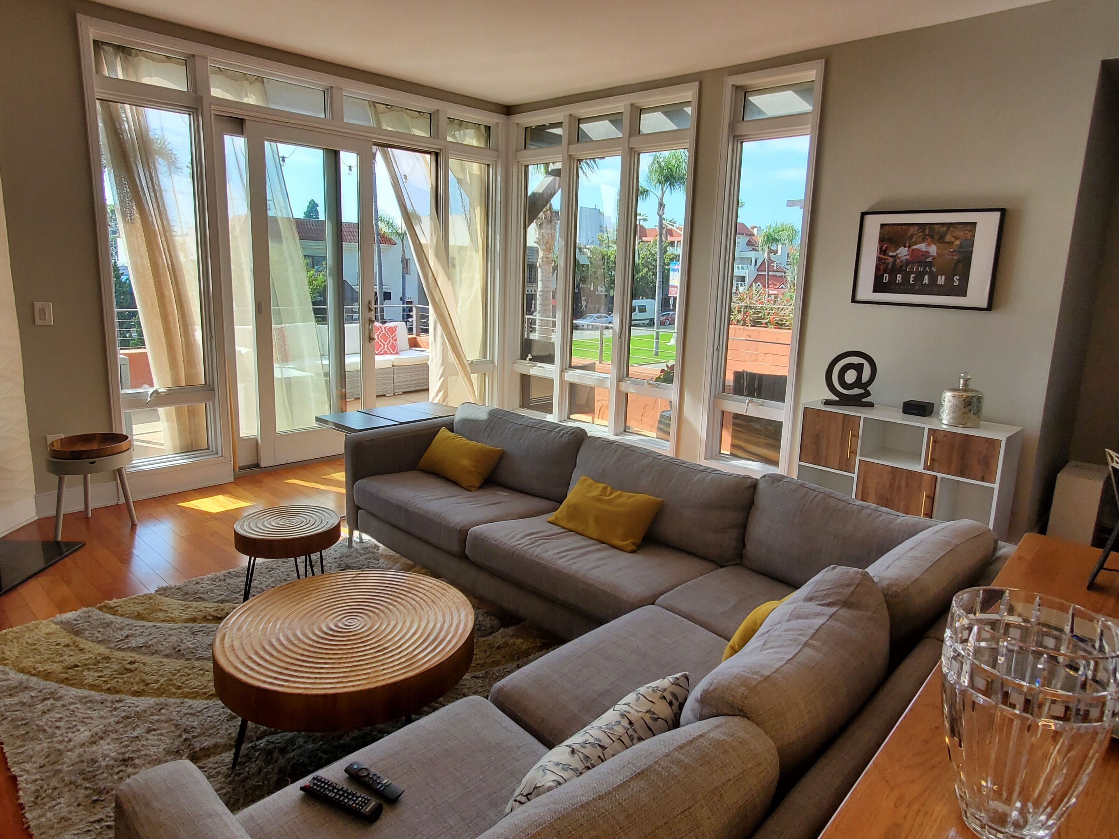 Stylish condo next to Ferry Landing This stylish condo is spacious and has views of the ocean from the balcony. It's just steps from Ferry Landing, a bike ride from the Del and a ferry ride from Downtown San Diego. Obviously, it comes equipped with high speed wifi, filtered water, fireplace, and everything you would expect from a Coronado home.