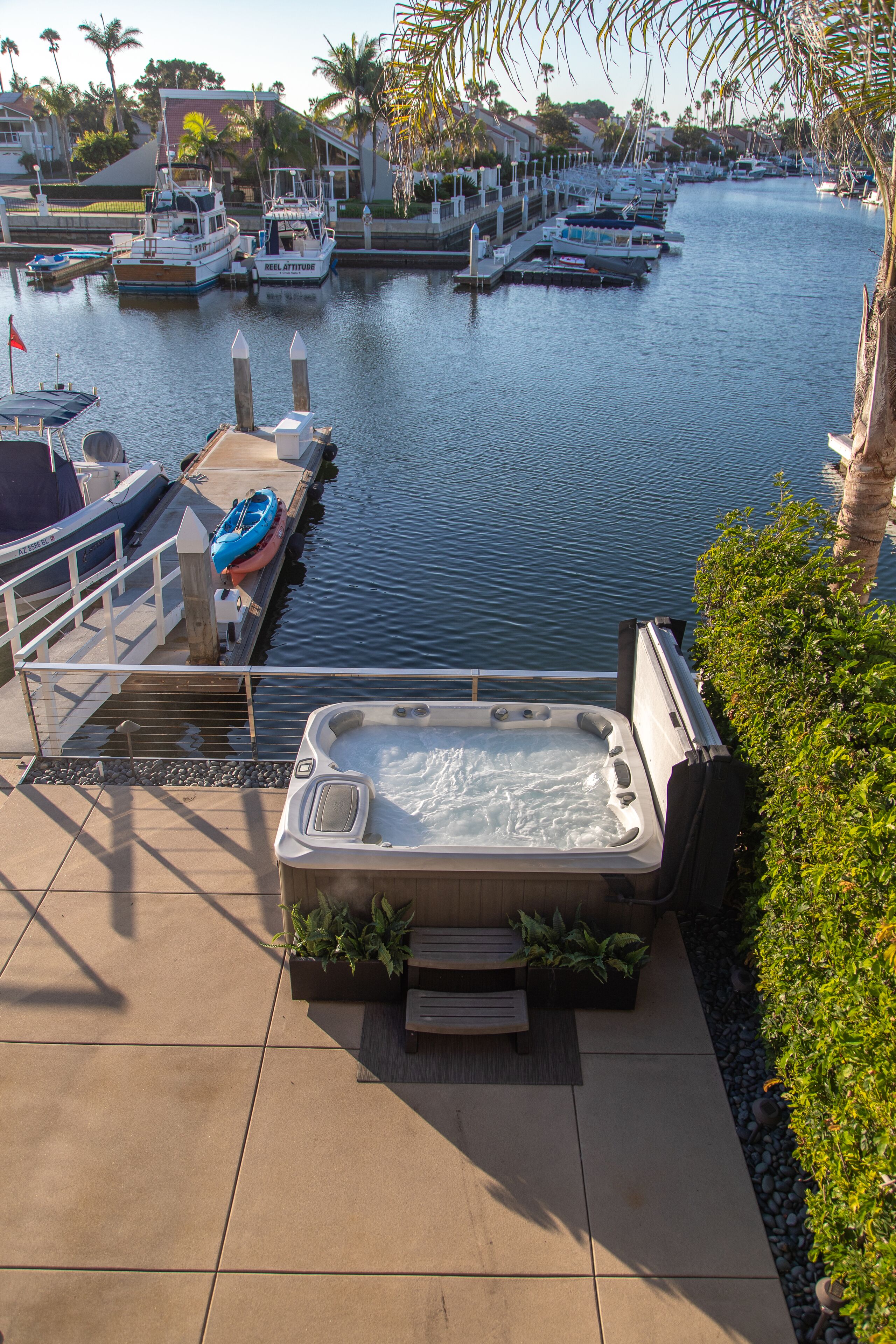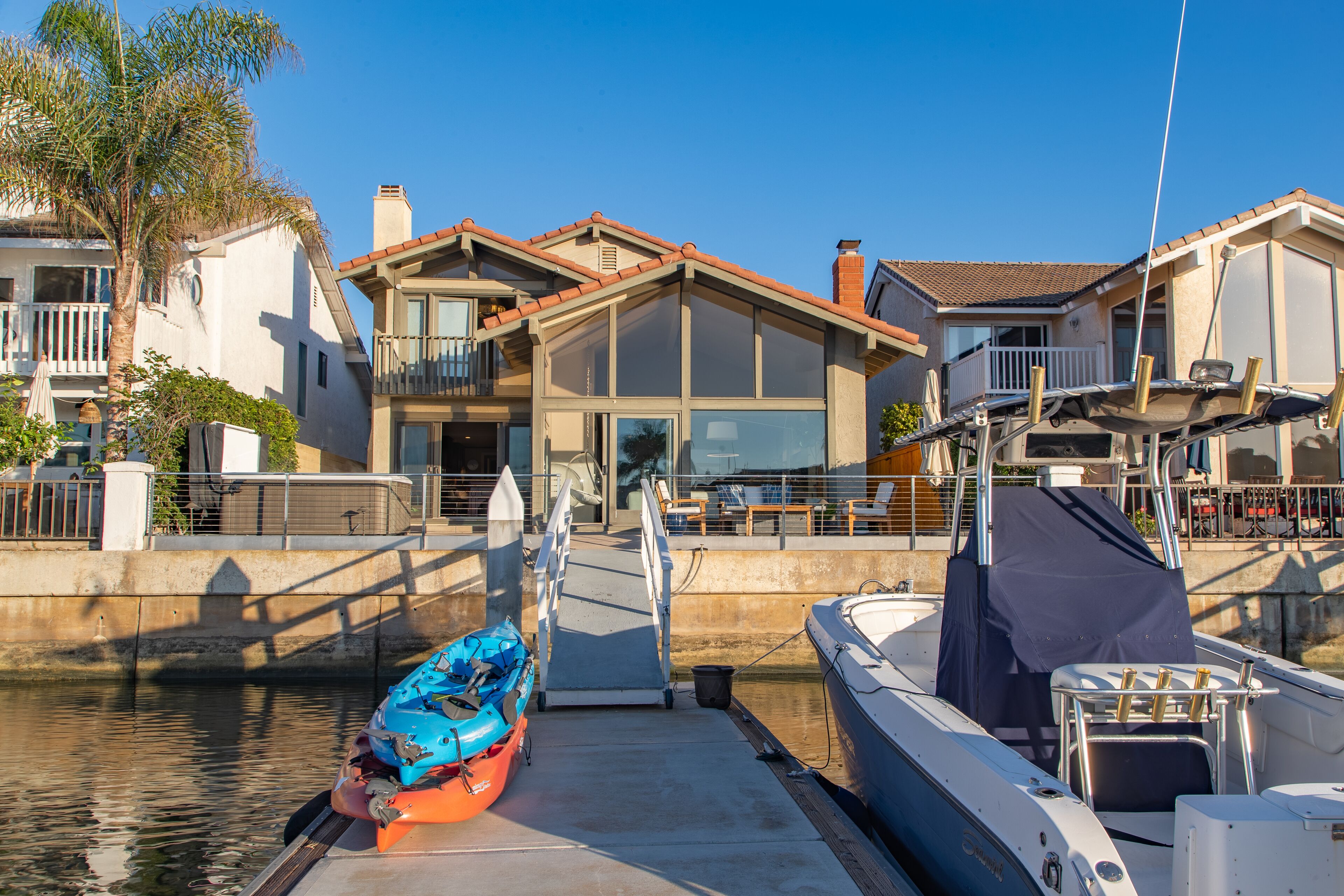 Welcome to Paradise on the Water We hope you enjoy our home on the water as much as we do. Beautiful water-front property with your very own private boat Dock that hosts up to a 59’ boat. Enjoy views of the Cays waterways from the Master bedroom and the entire downstairs area along with soft sea breezes or simply walk across the street to one of California’s prettiest beaches on the famous Coronado Island and catch some surf. Enjoy a cold drink in the Jacuzzi while watching incredible sunsets, or simply head to downtown Coronado for some of California’s best dining in the Safest, Cleanest city in California. The house has undergone new flooring upgrades, a master bath and downstairs bath remodel. Unfortunately, the kitchen, guest bath and exterior does show her age, and thanks to the salt air mother nature adds to her “patina charm”. Even with her blemishes we tried to make the home feel like a vacation from the minute you enter the house. Contemporary furniture, multiple TV’s, pool table, indoor fireplace, outdoor fire pit, jacuzzi and all on the water, it’s hard to beat. 2 car garage, 2 bikes, 2 Kayaks and street parking. (more photos of the house coming soon)