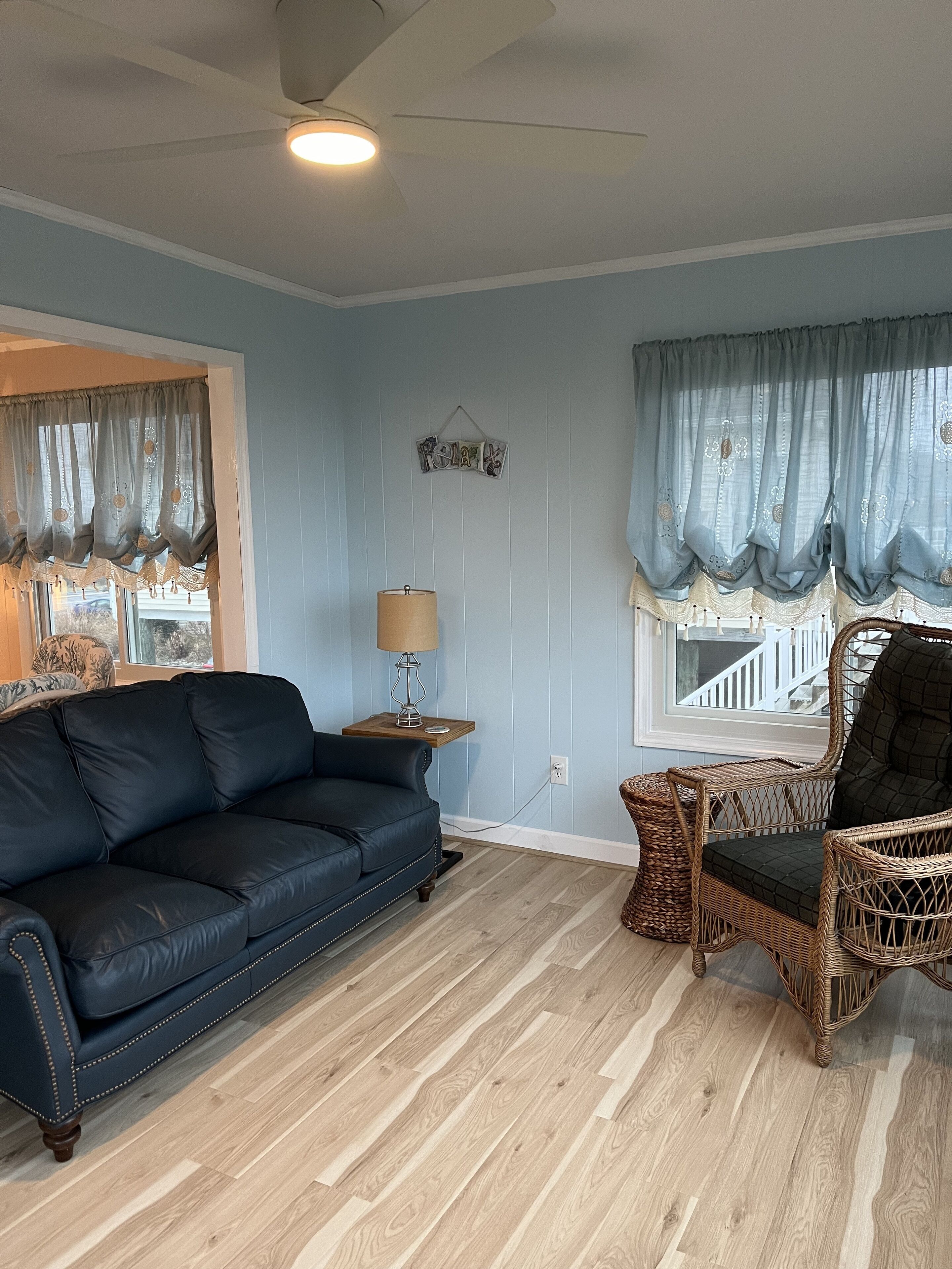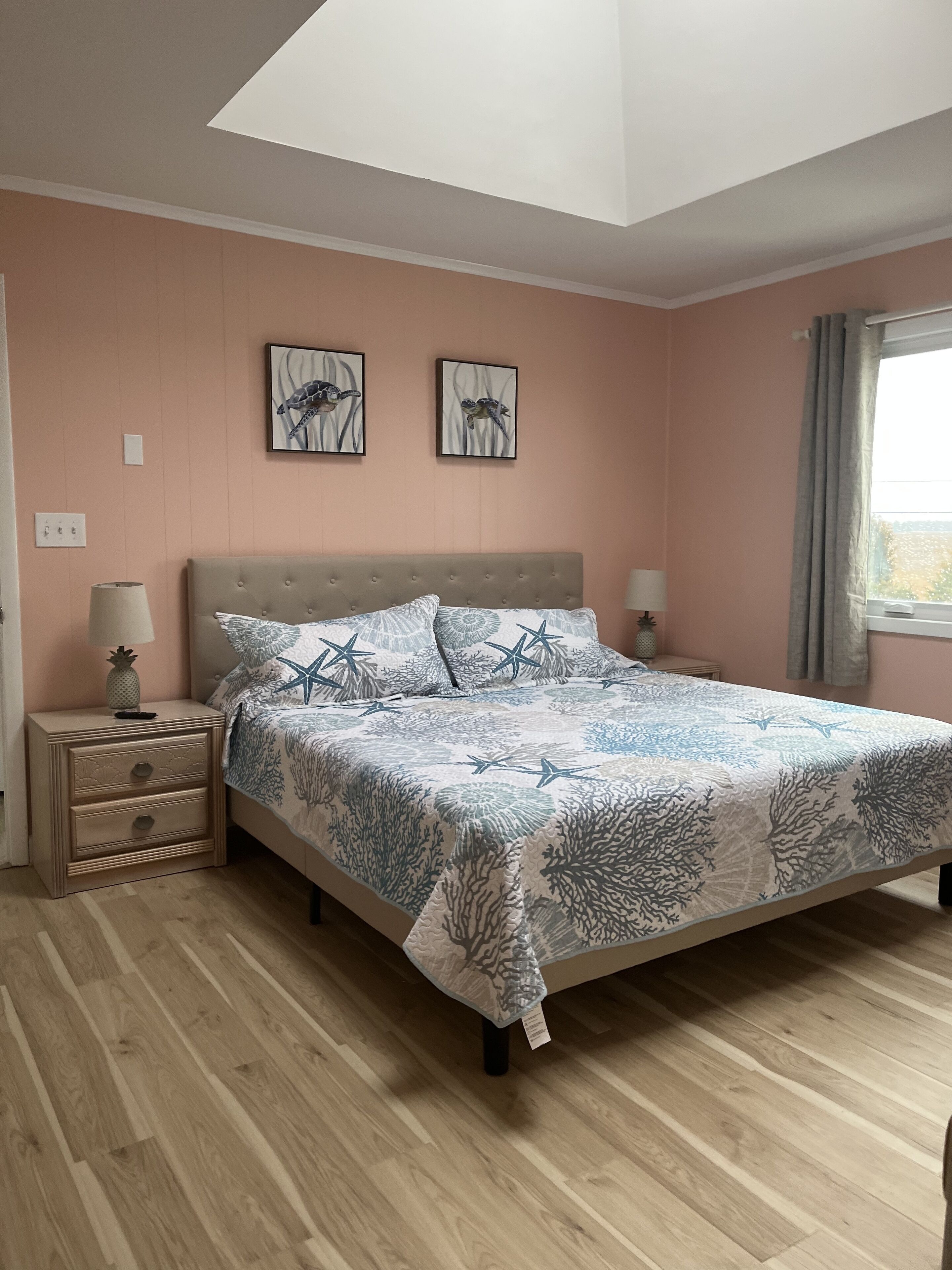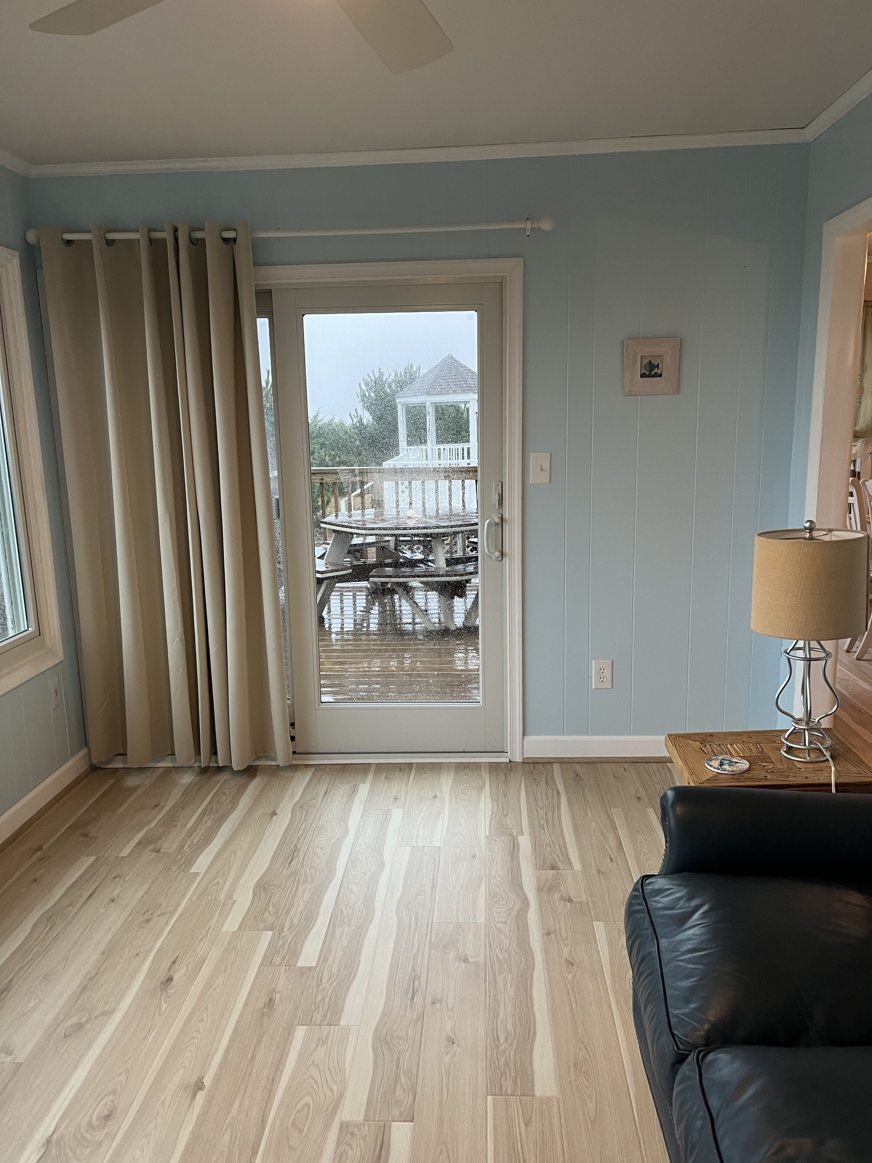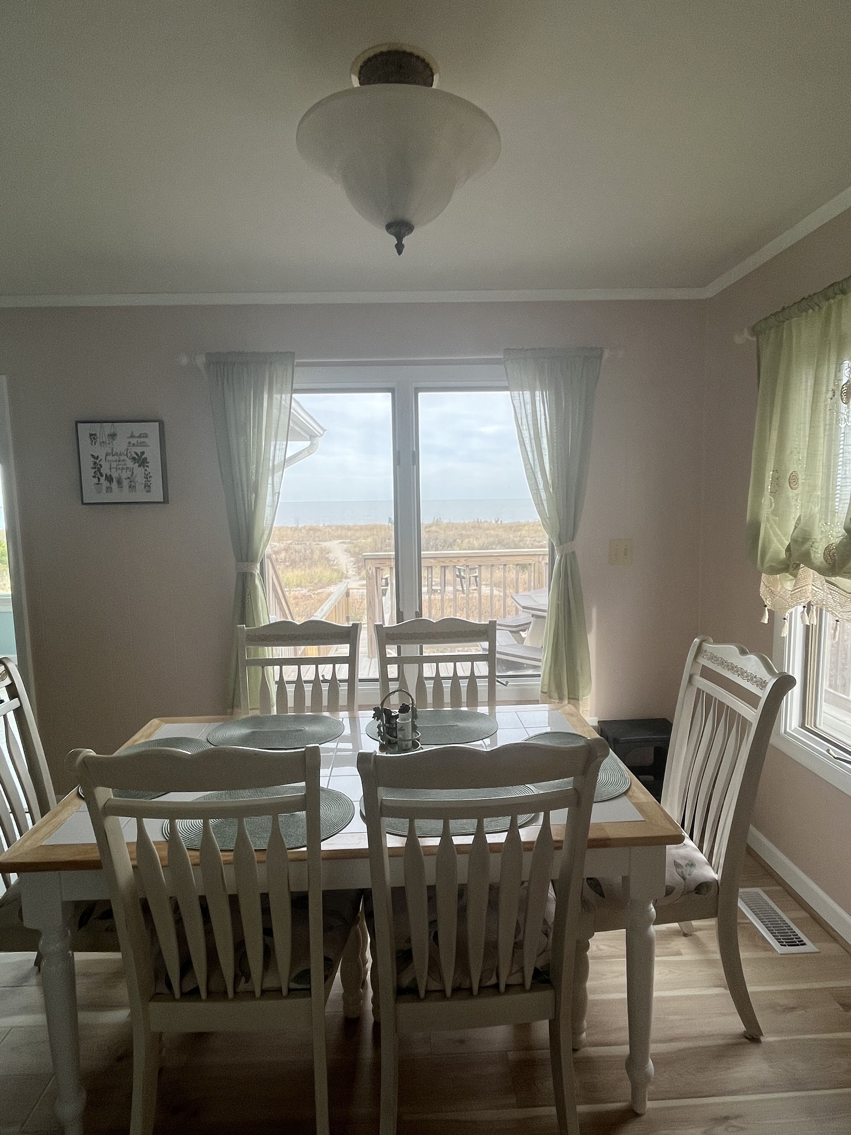 Slaughter Beach Renovated 2023 Wonderful Views Beach Front, Fenced area for Pets Delightful small beach house. Second year as a rental, lovely updates to entire house, comfortable furnishings and Bay views for miles! Fenced area for dogs.We are Premier Hosts with our other Vrbo property at nearby Prime Hook Beach which is north of Lewes, DE. Relax and enjoy the 14 miles or so open water of the Delaware Bay out your windows. Waterfront deck with picnic table with lots of seating. Watch the ships at night anchored out in the Bay with their lights on. Enjoy the balmy breezes.So you know, we do not furnish sheets and towels but have them available as rentals. Also, we have a pet fee of $100 per pet and we have an enclosed area with 3 foot high fencing for them to do their business. We have dogs as members of our family. If you plan to bring a boat we would appreciate it if it ison the smaller size as we just had another layer of gravel put on our driveway and heavy vehicles don't do well..Thank you for considering our house at 503 Bay Ave..