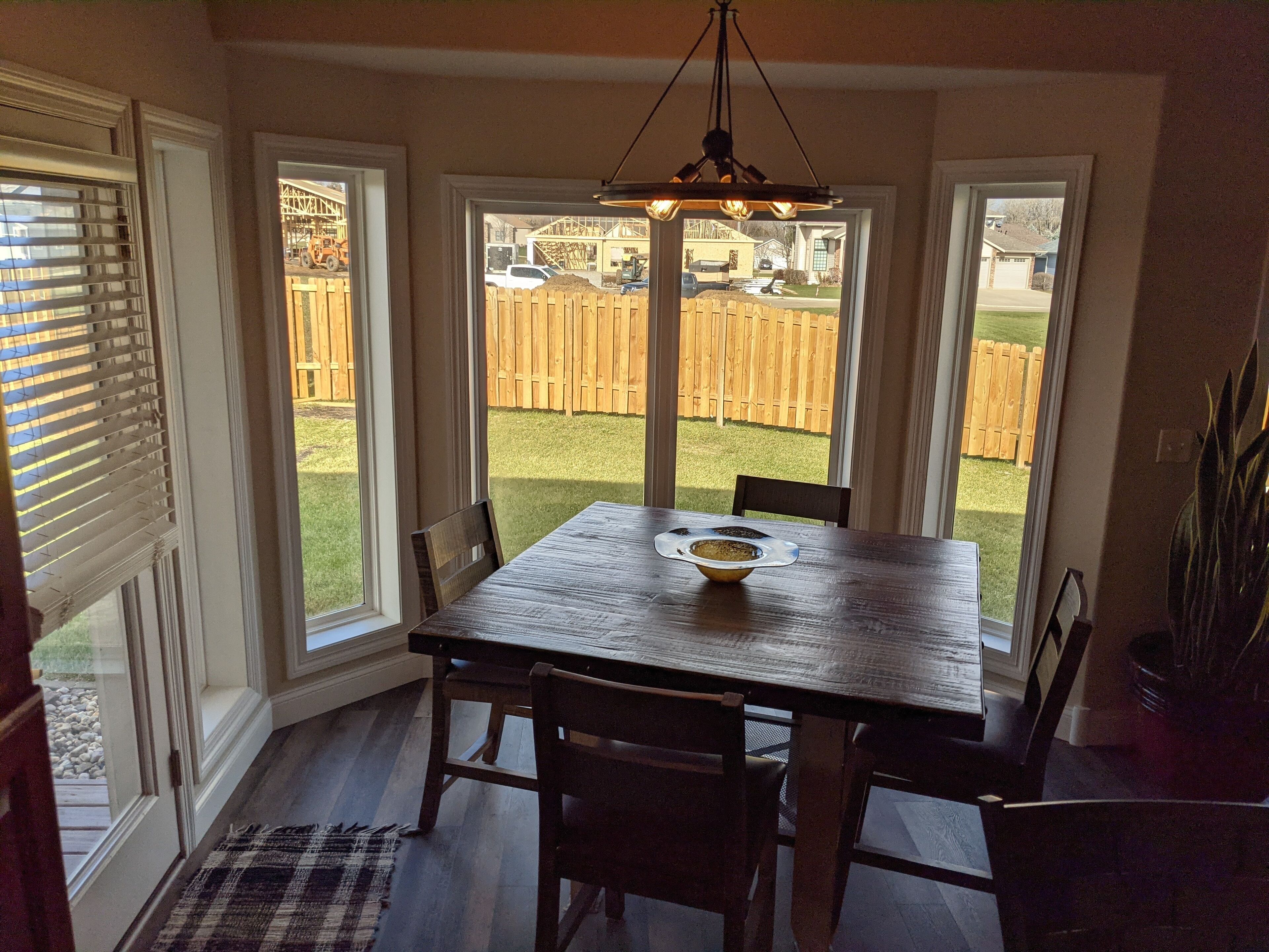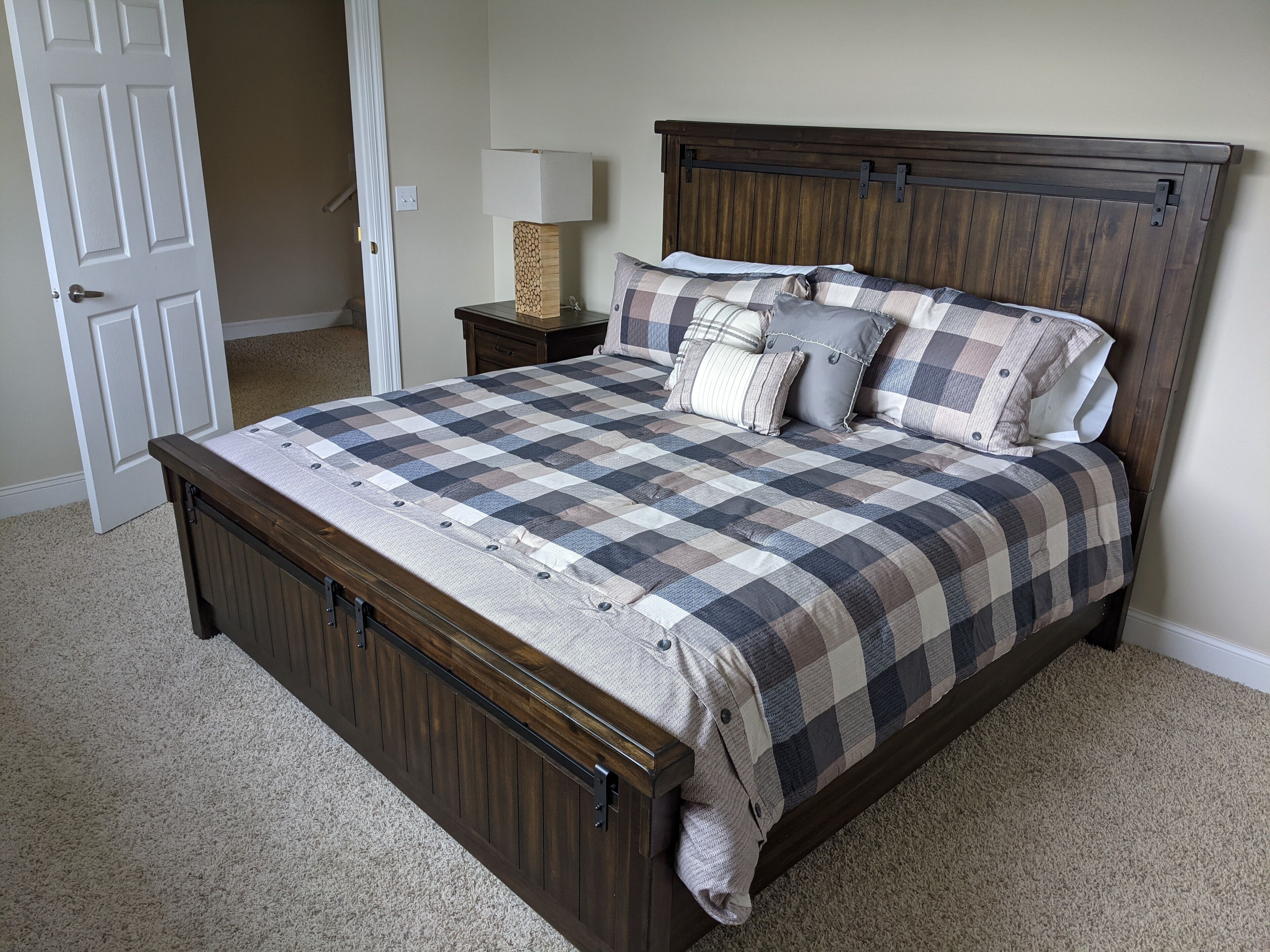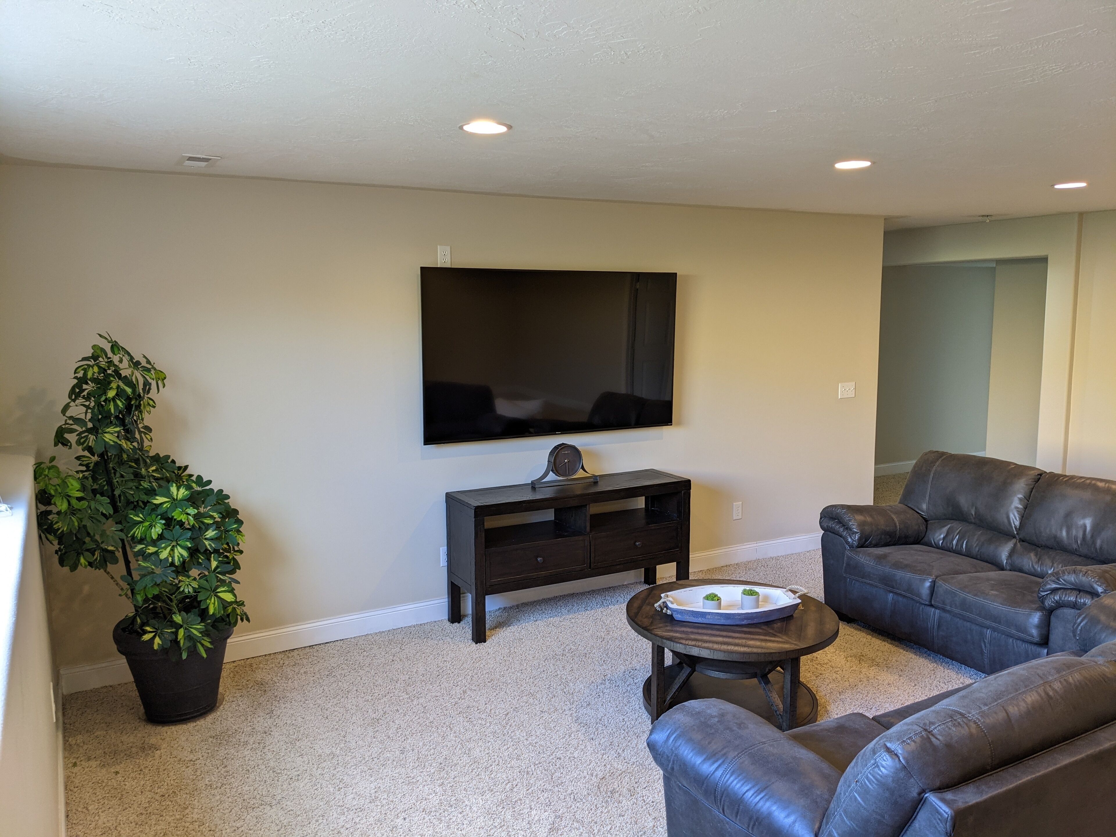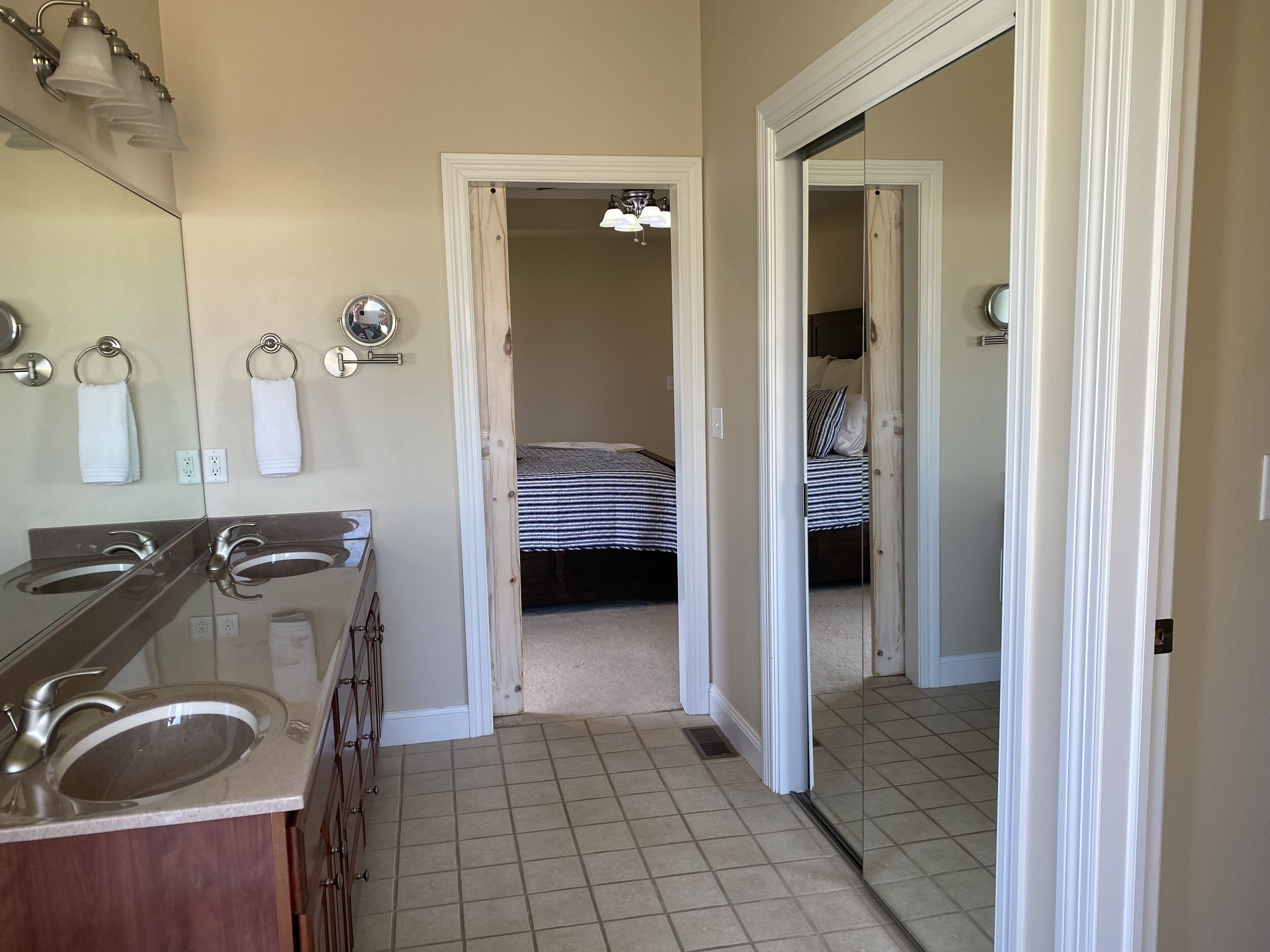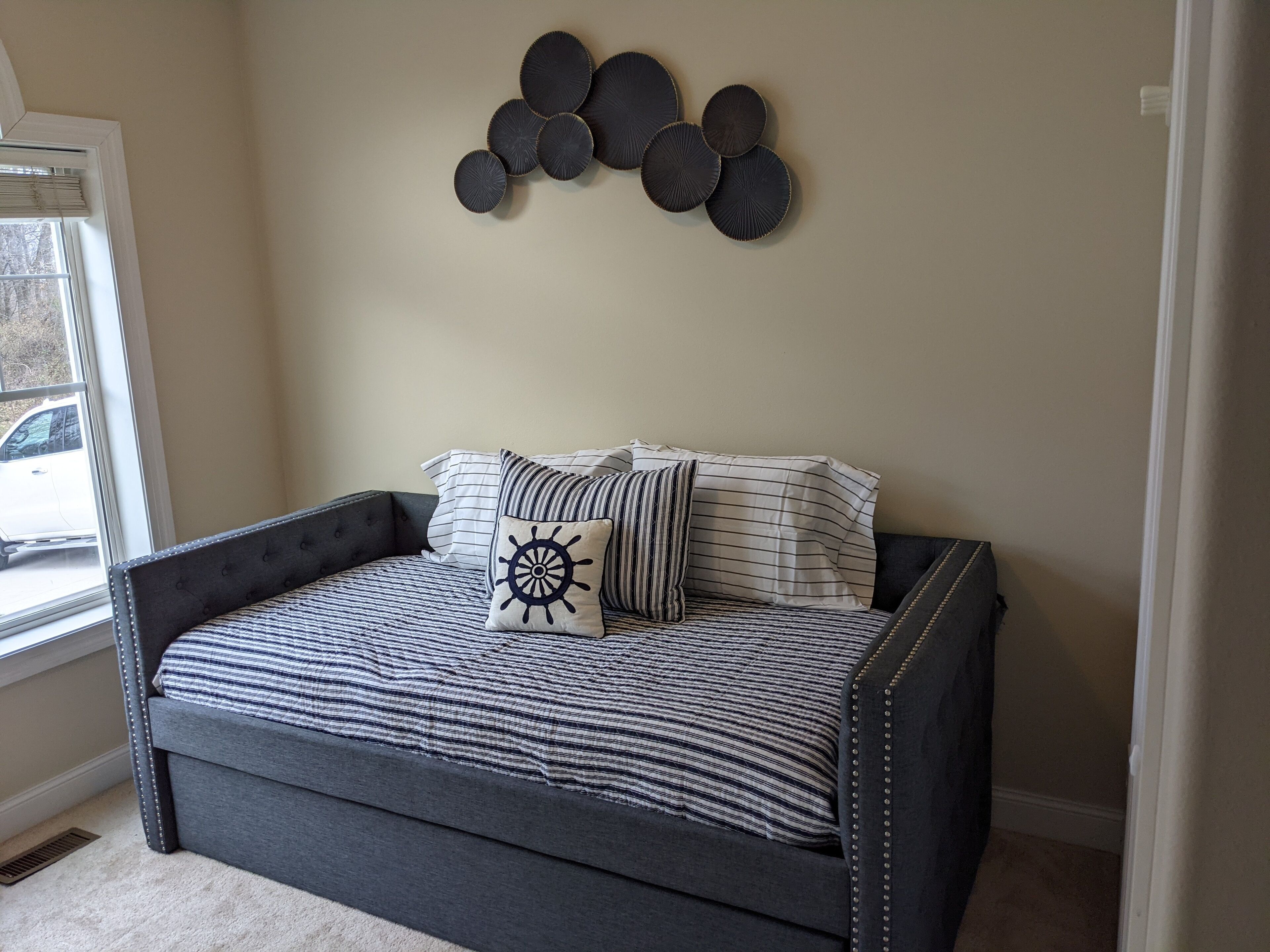 Large Family Home Large family home situated along the entrance to Emerson Bay State Park. Completely re-furnished (2005 built) home with new flooring, all new furniture, beds and décor. Lightning fast wireless internet with brand new 75" Roku T.V.s upstairs and down. Flat screen T.V.'s in the bedrooms as well. Fenced in backyard for guest privacy with two charcoal grills. For your safety and ours, there is a Google Nest Video Doorbell and is the only camera on the premises. Master bedroom (king bed) includes master bath with double sinks and jacuzzi tub with walk-in closet and private bathroom with shower. Second upper level bedroom has a queen bed with huge closet and dresser with nightstand. Third upper level bedroom has a day bed with trundle and also a closet. Lower level features another bedroom with King bed and large closet. Fifth bedroom in lower level features two bunk beds with three full beds and one twin. Both upper and lower level family rooms include couch and loveseat along with coffee & end tables. Large kitchen island and nice dining table allow for entertainment as well as a dedicated office perfect for catching up with work back home or even for kids to play board games. Located in a newer development with many new homes being built.Located on the west side of West Lake Okoboji, this property includes direct access to the Iowa Great Lakes Bike trail as it runs along the property frontage. No need to drive to a trailhead, just hop on your bike and you are on your way!Lake access - State Park is one block down the street via bike/walking trail. Take your doggie on a beautiful nature walk into the state park, send the kiddos down to the beach, bring your boat to launch for a day on the water. Ice Fishing? This the perfect location for access to the highly sought after Emerson Bay Bluegill action!