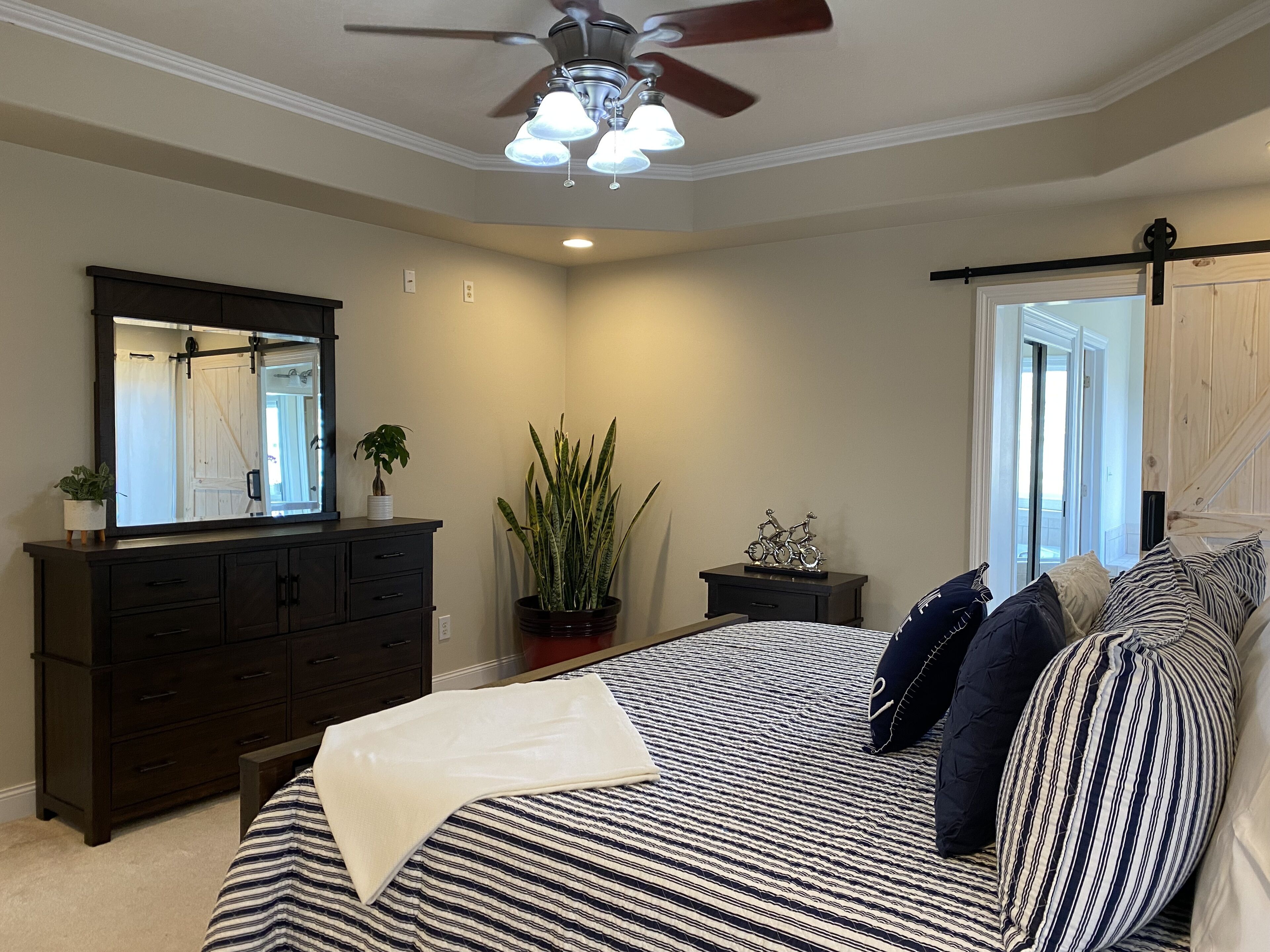 Large Family Home Large family home situated along the entrance to Emerson Bay State Park. Completely re-furnished (2005 built) home with new flooring, all new furniture, beds and décor. Lightning fast wireless internet with brand new 75" Roku T.V.s upstairs and down. Flat screen T.V.'s in the bedrooms as well. Fenced in backyard for guest privacy with two charcoal grills. For your safety and our...