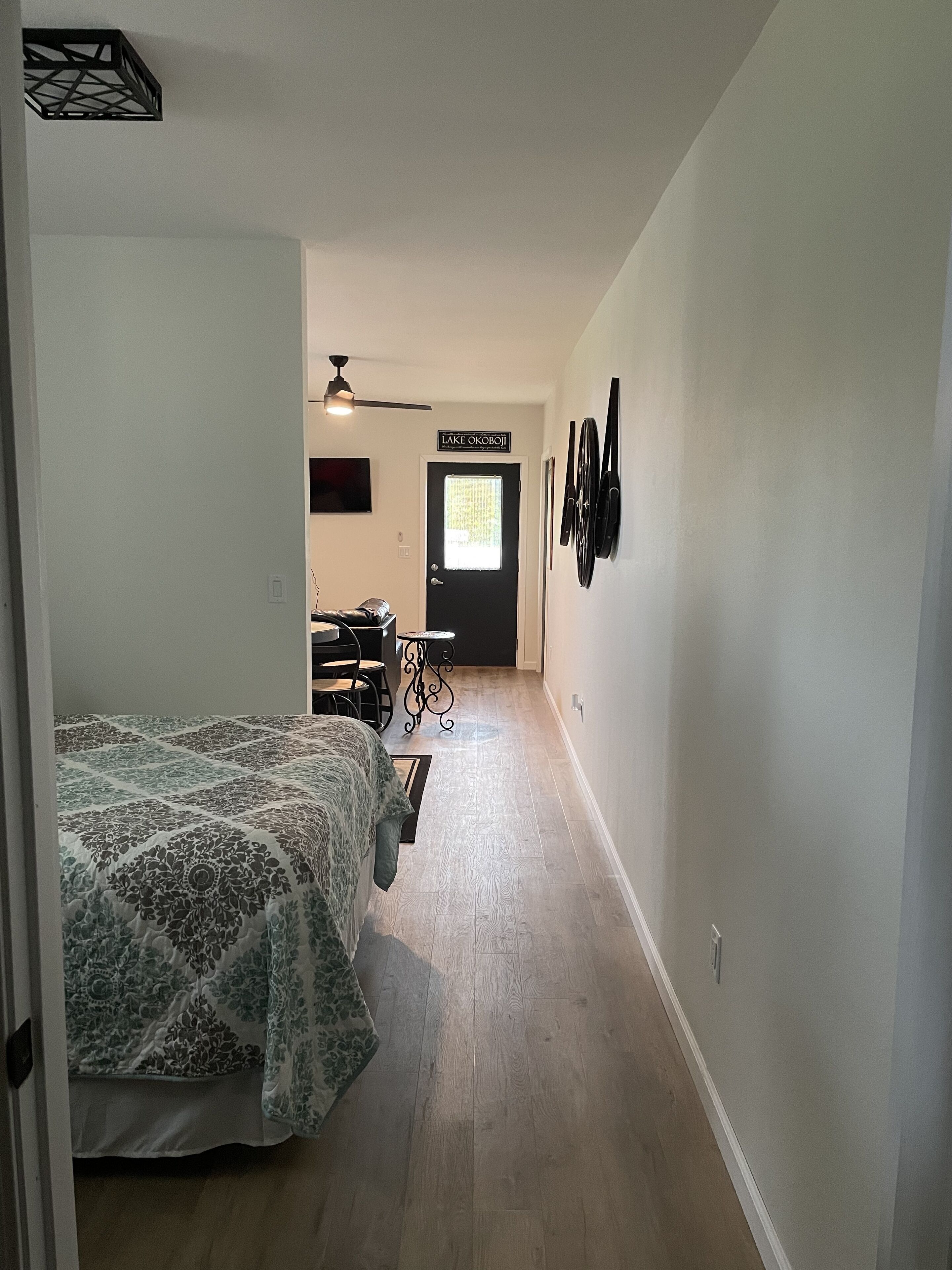 Boji Cottage - Charmer 4 blocks from Miller's Bay! A short walk or drive from Miller's Bay on West Okoboji Lake, fishing, boating access, Pub 19 Restaurant, this 1-bedroom cottage is nestled next to a playground and tennis/basketball court. This newly finished guest quarters sleeps 2 in a queen bed and 1 adult or 2 children on a couch, shower, tv, mini-fridge, coffee maker, and microwave. Minute...