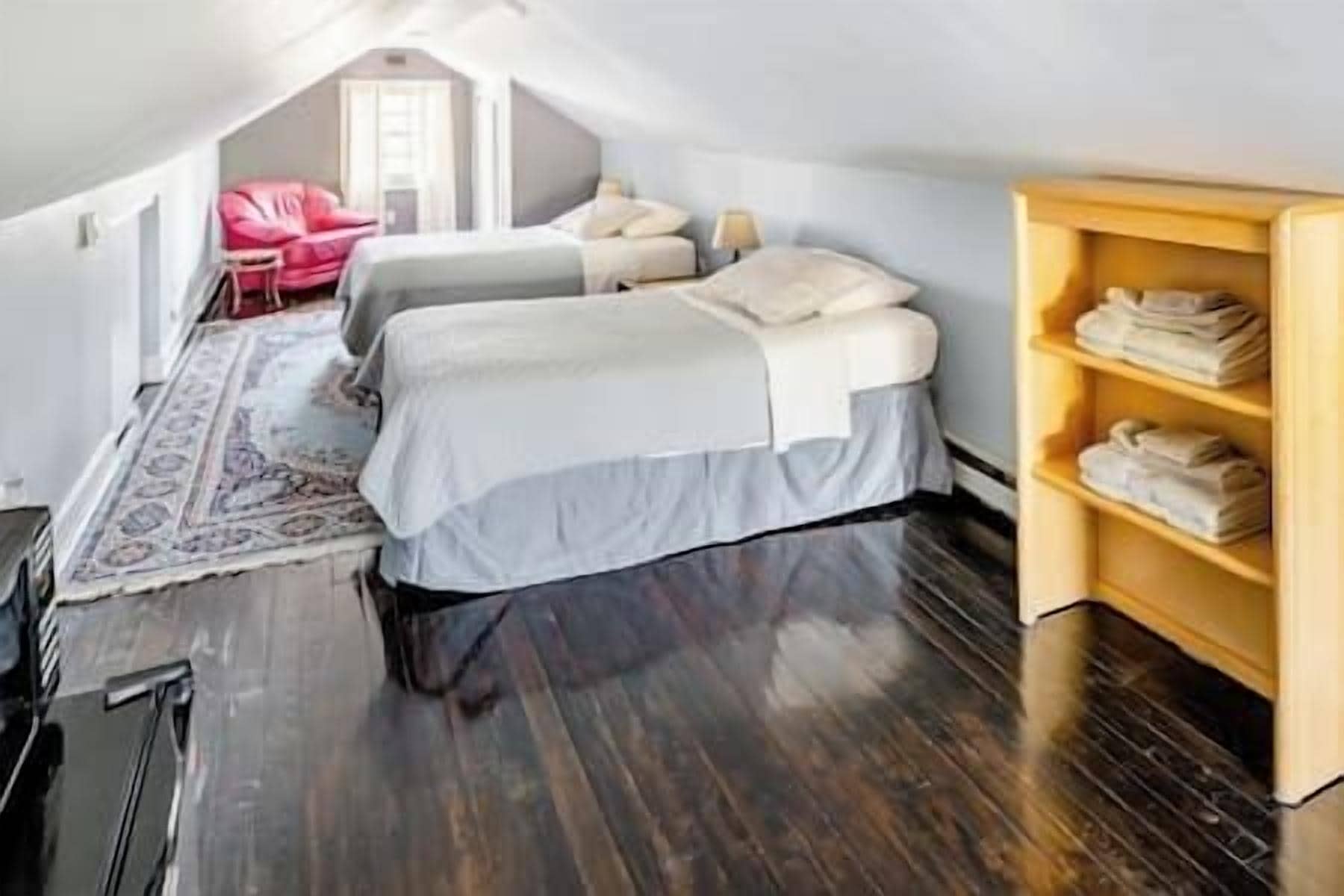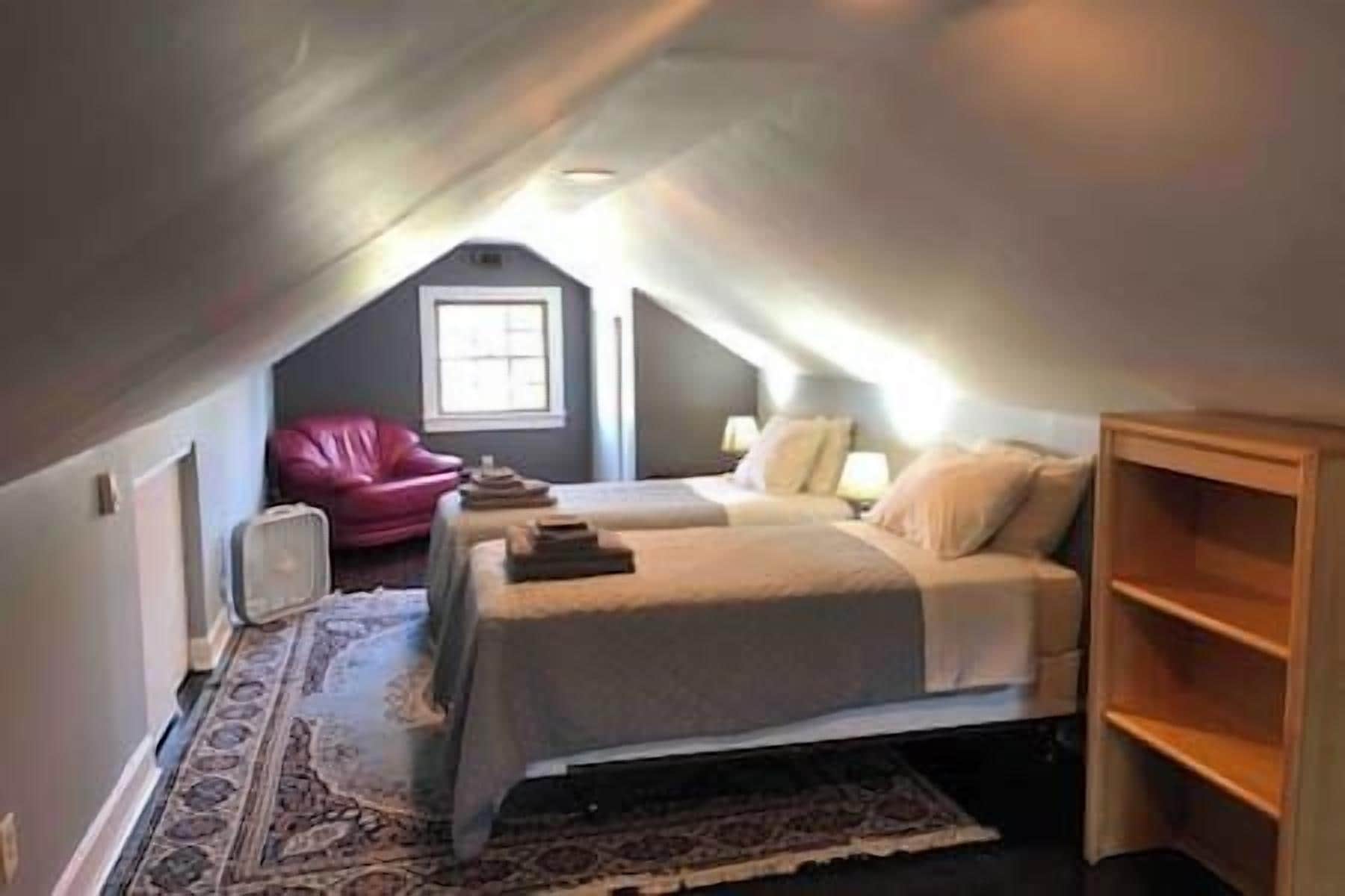 Finished Attic Space-Minutes to Hiking in Milford! Cute finished attic space with all the amenities for a wonderful stay! You will enjoy your own large private room with 2 twin bed , the price room is for one person ,but is for two the additional 30 per night, mini-fridge, closet, reading chair, side table, desk and lamp. Downstairs are the shared areas including the living room with TV, dining ar...