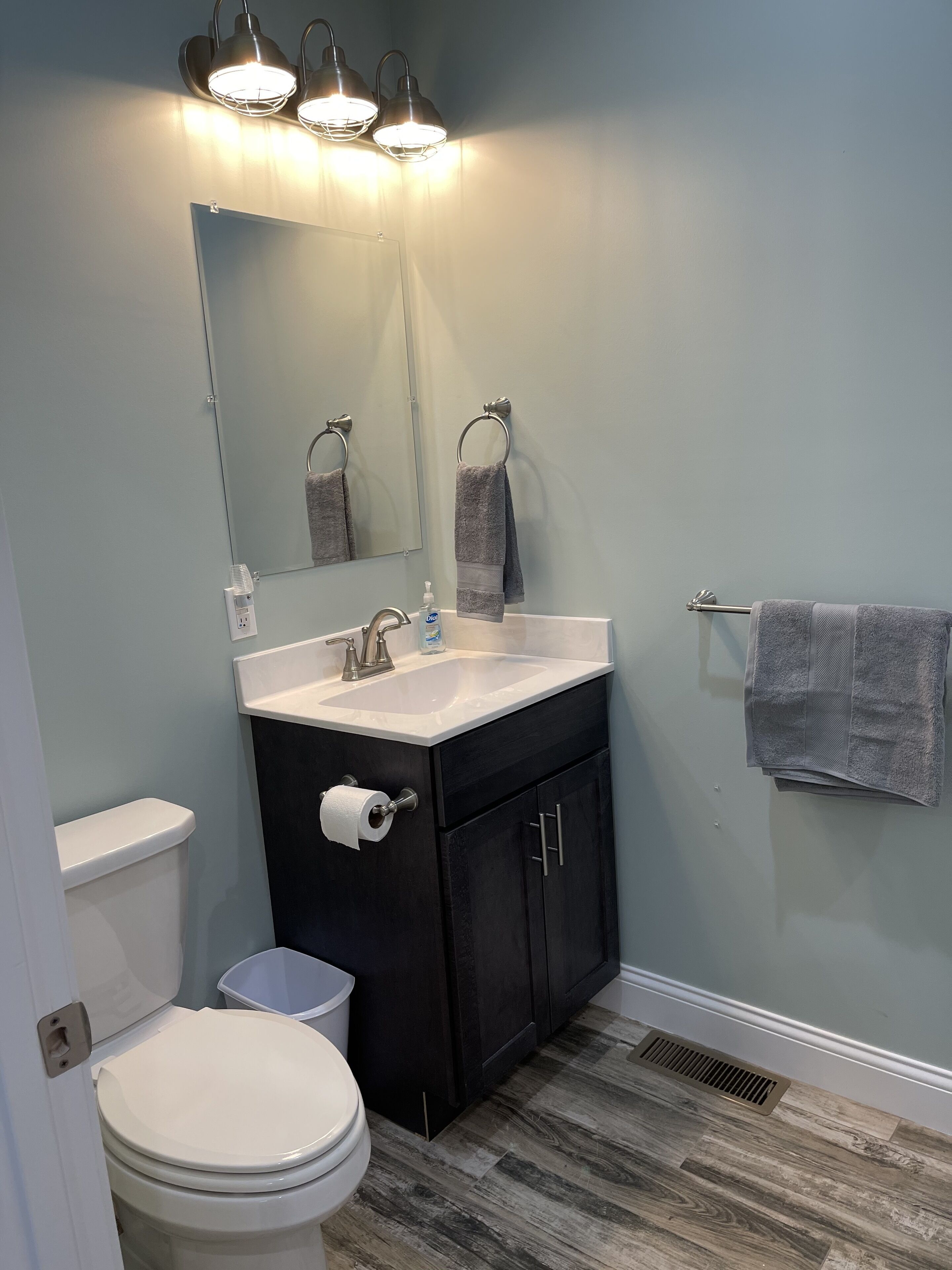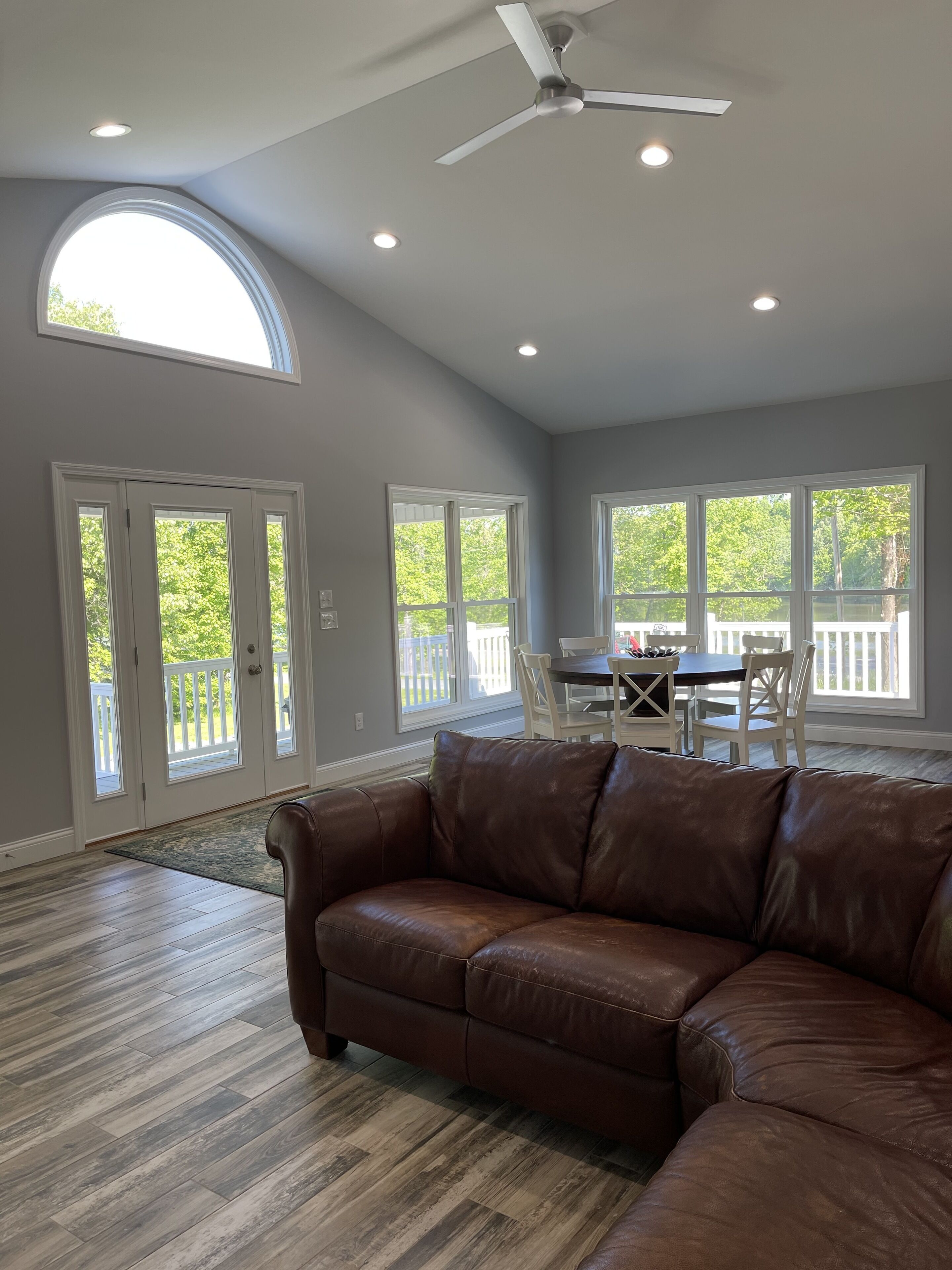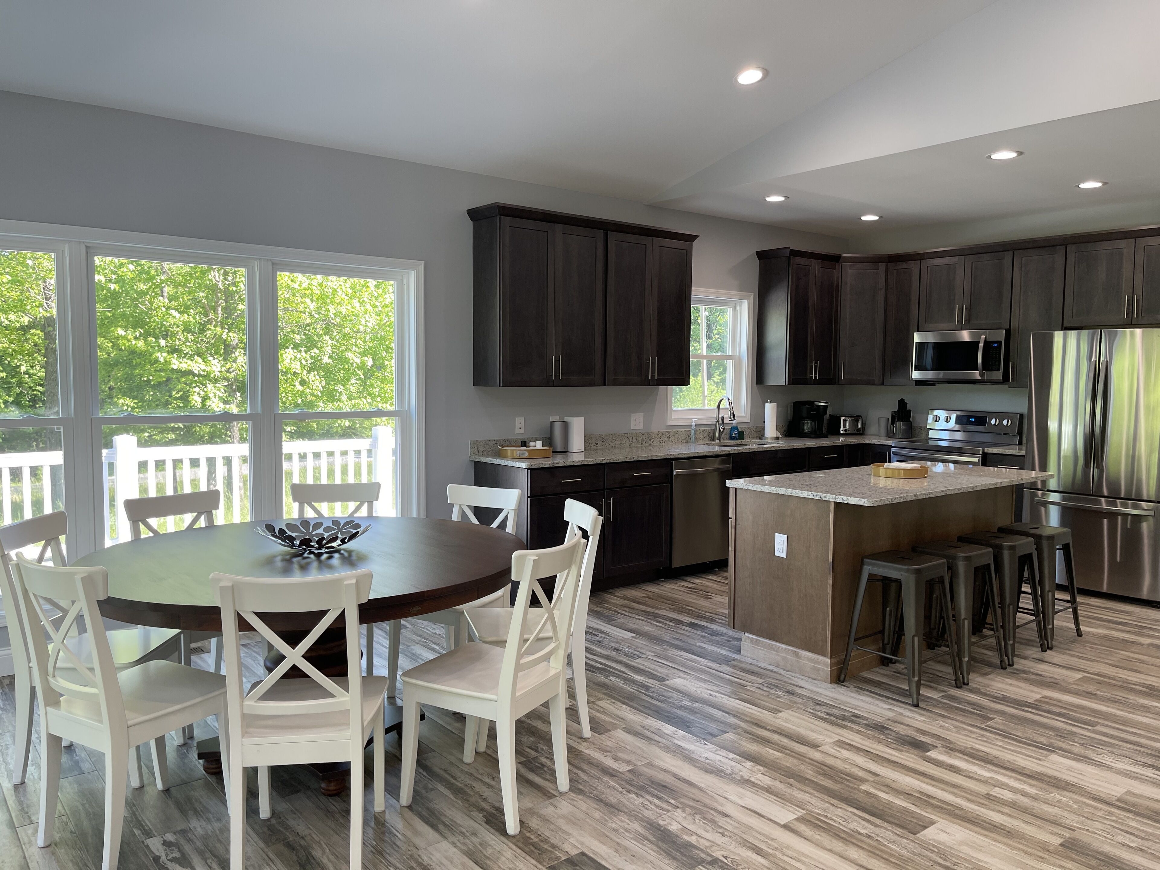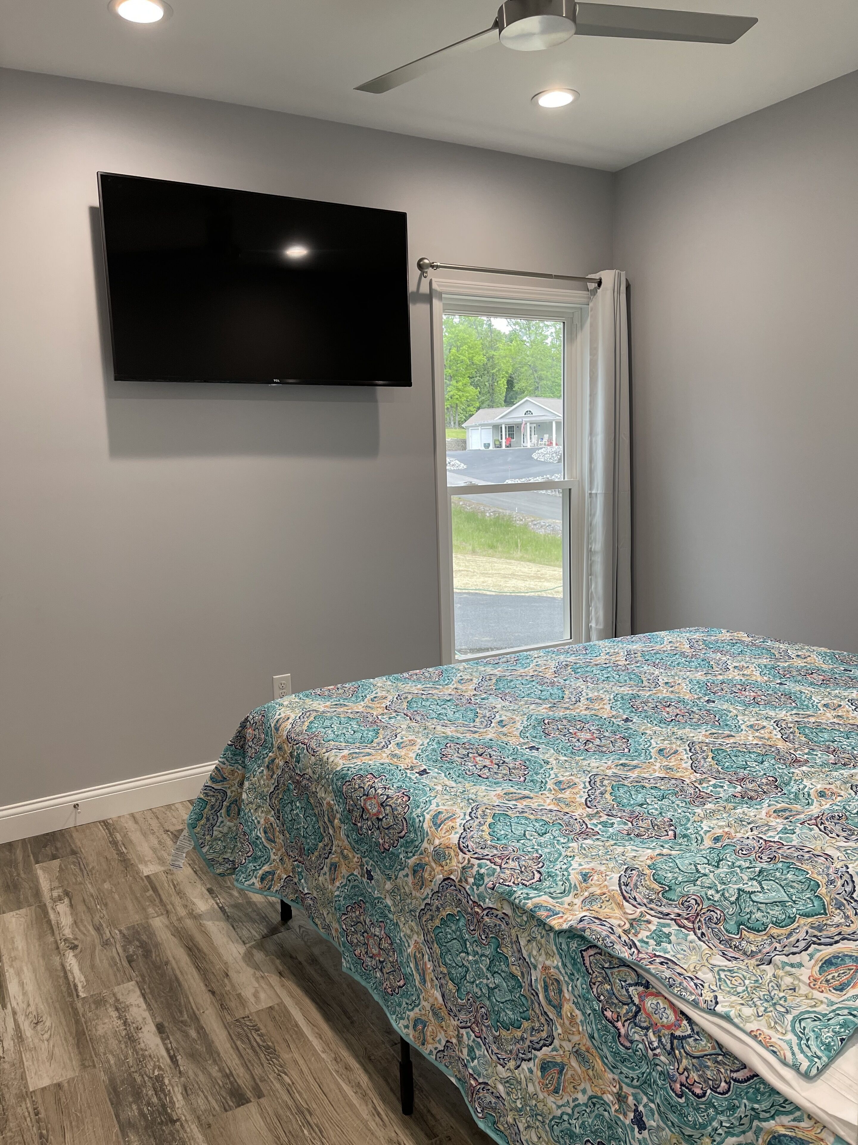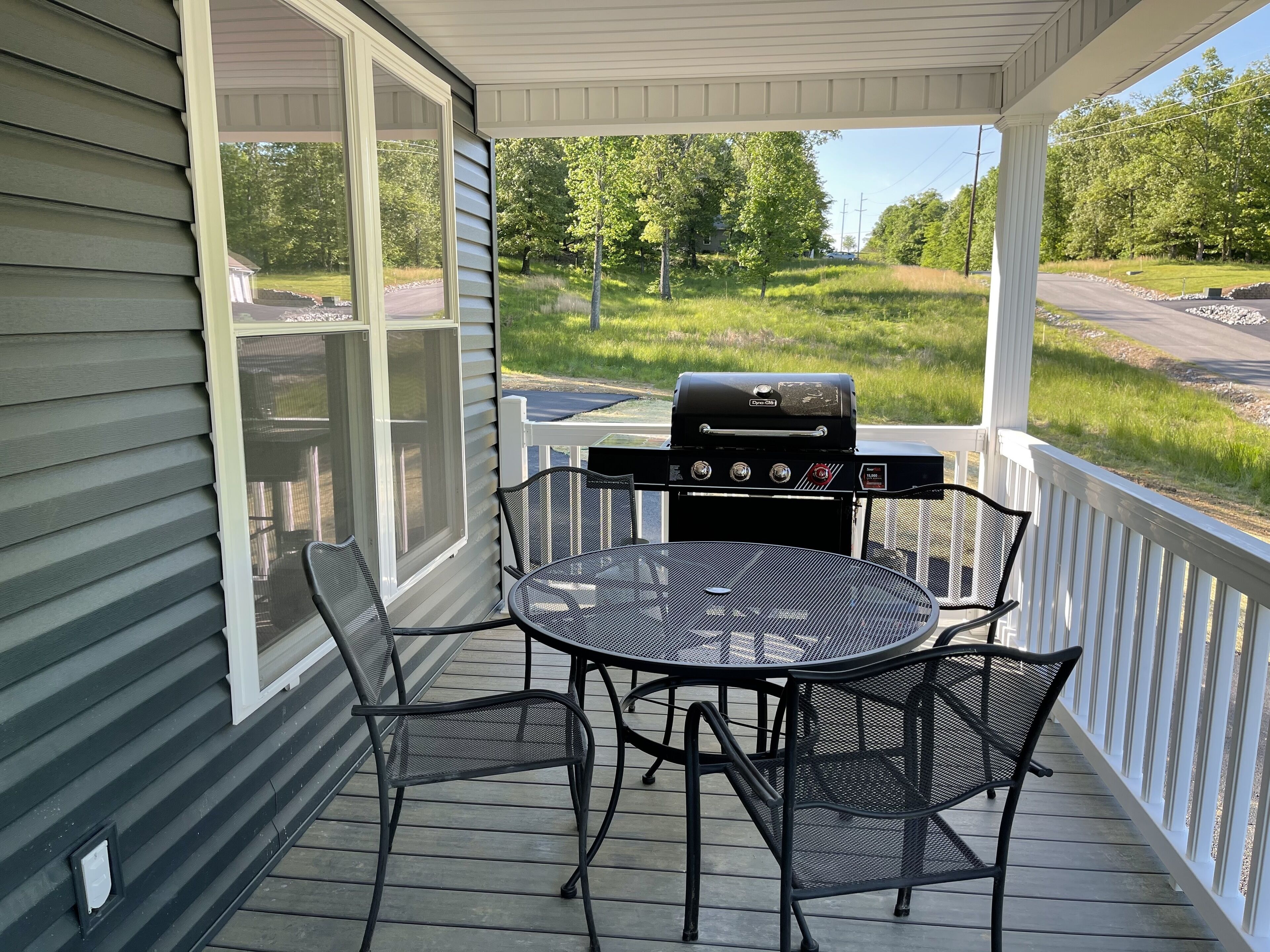 Built in 2021 - 5 BR/4 BA Lakefront in Grand Rivers -The Only City on Both Lakes This new lakefront cottage constructed in 2021 is on a small bluff with year round views of Kentucky-Barkley Lake in a private wooded setting in the quaint Little Lake Village subdivision in downtown Grand Rivers. The one-level cottage is finished in high quality, coastal cottage architectural style and has many upgrades including 6 foot tall Pella windows, porcelain tile that looks like wood and 9 to 13 foot ceilings in all rooms. The lakehouse borders Little Lake Park and is naturally connected to the lake and surrounding woods through an 800 square foot outdoor sun deck and covered porch all with composite decking and white railing overlooking the lake. The lakehouse is perfect for 4 couples plus 8 kids or 5 couples having 3 bedrooms that are en suites with king beds and their own private full bath room. The 4th bedroom has a king bed and shares a common hall full bath while the the 5th bedroom is great for kids and has 1 queen, 2 full and 2 single beds. Modern amenities include unlimited AT&T U-verse Internet Wi-Fi with speeds up to 30 Mbps, 6 wall-mounted 4K TVs (75" / 55") with free YouTube Live TV, Netflix, Amazon Prime, Disney+, HBO Max, Hulu, ESPN+, washer and dryer, a fully-equipped kitchen/750-sq.-ft. great room with 13 foot vaulted ceilings and 10 different 6 foot tall Pella windows overlooking the lake and dimmable LED can lighting in all rooms.The large master bedroom suite has a separate shower and tub and double vanity sink and walk-in closet / separate ventilated crib room. Porcelain tile that looks like weathered wood is in every inch of all interior floors and is thorougly cleaned and sanitized between each stay.This is a perfect location for a large family getaway, vacation with several families, retreat, business trip, fishermen and boaters. There is a very large driveway with a pull-through semi-circle drive perfect for vehicles and boat trailers near the street that can accommodate over 10 vehicles and / or boats and has multiple outdoor electric hook-ups to charge boat batteries.The owner has 2 other lakehouses with nearly identical floor plans 100 yards away (VRBO #242128 and #1035898) and can be rented in conjunction with this listing and can jointly accommodate up to 50 people for very large gatherings.Picturesque Grand Rivers: Grand Rivers is located between 218,000-acre Kentucky Lake and Lake Barkley, the nation's largest man-made body of water. In 2009, Grand Rivers was named the 8th best small town in the South by Southern Living Magazine. The main entrance to 180,000 acre Land Between the Lakes National Recreation Area with 500 miles of hiking and biking trails is 1 mile from the lakehouse.The cottage overlooks the Grand Rivers Walking Trail which runs under a large canopy of old growth hardwood beside the back part of Green Turtle Bay on Lake Barkley, which the locals refer to as Little Lake. Adjacent Little Lake Park offers a newly constructed children’s playground, free Saturday night concerts in the summer with live bands, and periodic outdoor festivals and car shows. November through early January, Grand Rivers is at its best with its festival of lights that extends to the lakehouse along Little Lake Park as well as Horse drawn carriage rides and of course Santa at Patti's!The cottage is a short walk to everything in Grand Rivers including Green Turtle Bay Marina & Lighthouse Landing Sailboat Marina (where motor boat, jet ski and sailboat rentals are available), Patti’s 1880s Settlement, T Lawson's Pub, Thirsty Turtle Tavern, Craig's Dairy Dream, Cabin Pizza, the Branson-style Badget Village Playhouse Theater, Village Market & Café grocery store, Village Liquors, antique and other retail stores, mini-golf, rock-wall climbing and much more.Downtown Grand Rivers, KY – 1 minute or a 1/3 of a mile walkLand Between the Lakes National Recreation Area – 3 minutes, 1 mile (180,000 acres of hiking, biking and walking trails, planetarium, bison and elk range, Homeplace, etc.)Paducah, KY – 30 minutes, 27 milesEvansville, IN - 1.5 hours, 100 milesNashville, TN – 1.5 hours, 115 milesCape Girardeau, MO – 1.5 hours, 92 milesMemphis, TN – 3 hours, 190 milesSt. Louis, MO – 3 hours, 200 milesLouisville, KY – 3 hours, 200 milesIndianapolis, IN – 4 hours, 275 milesChicago, IL – 6 hours, 398 miles