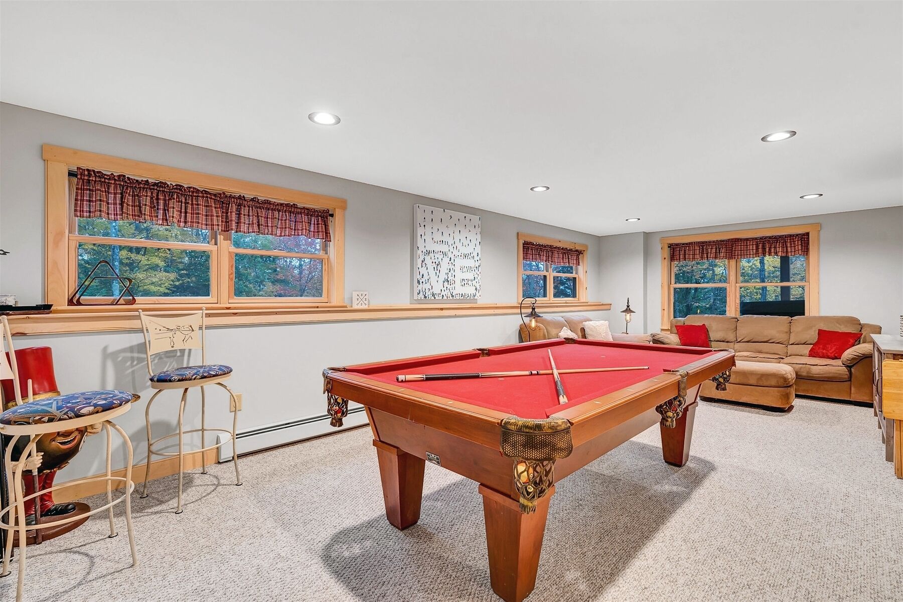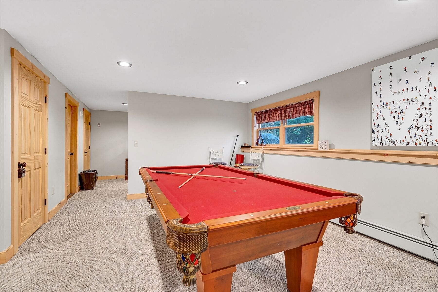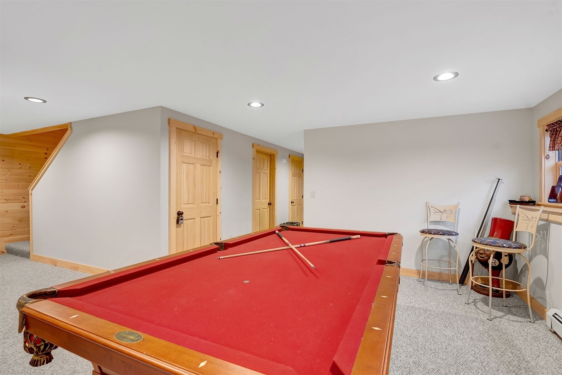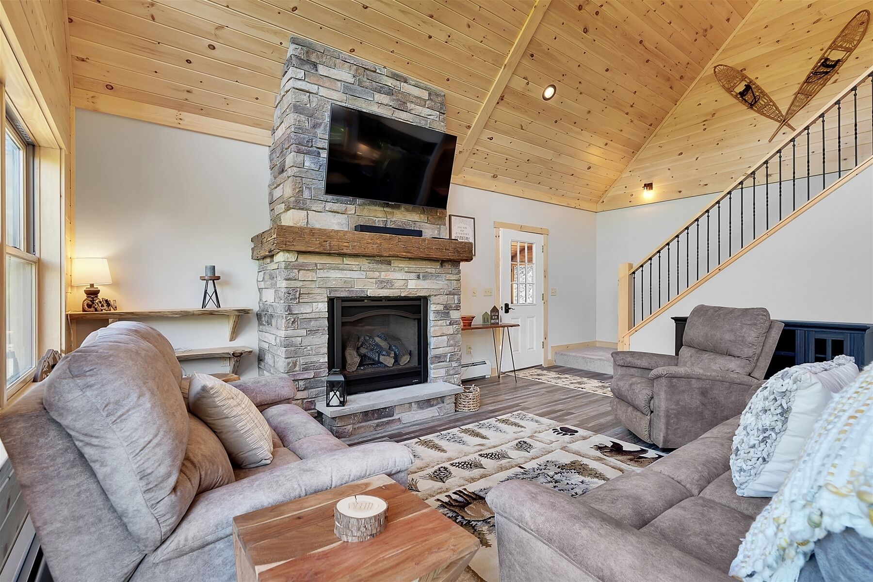 Winter Park Lodge | 4 Bed, 3 Bath Unwind at the Winer Park Lodge after a day on the slopes or exploring the mountains of Maine. Located 15 minutes from Sunday River Resort and convenient to snowmobile trails and many popular restaurants and shops, this chalet style home offers four bedrooms and three bathrooms on three spacious floors of living space. Enter through a large screened porch with plenty of space to store your gear. Featuring a beautiful kitchen with stainless appliances, granite countertops and plenty of space for cooking, dining and entertaining. Spend time with family and friends in the open first floor great room with a gas fireplace to warm up around. Relax and unwind in the large primary bedroom with a private en-suite bathroom. End the day soaking outside in the Hot tub. The lower level offers additional living space with pool table for family and friends to create memories that will last a lifetime!To enjoy your trip to this mountainside property, 4WD may be required during snowy months.Linens / ToiletriesLinens, towels, pillows and bedding are provided. Personal toiletries such as bath soap, shampoo/conditioner, toothpaste etc are not provided.Coffee / Coffee MakerCombination drip/K-Cup coffee maker is provided. A startup supply of coffee/filters are provided. Bringing additional coffee/filters is recommended.Air ConditioningUnit(s) operational from Memorial Day Weekend - Labor Day WeekendPetsRenters may not have pets, including emotional support animals. No exceptions can be made.TVSmart TV for streaming your favorite apps, with traditional cable / satellite tvProperty is equipped with exterior security camera(s) that record audio and video. Camera(s) are installed primarily as a theft deterrent but may be used to verify compliance with rental policies. Security camera(s) are not continuously monitored and should not be relied on for personal safety. No cameras are placed inside, or with any view of the interior of the property.Camera Location(s): On the front screen porch facing the driveway.