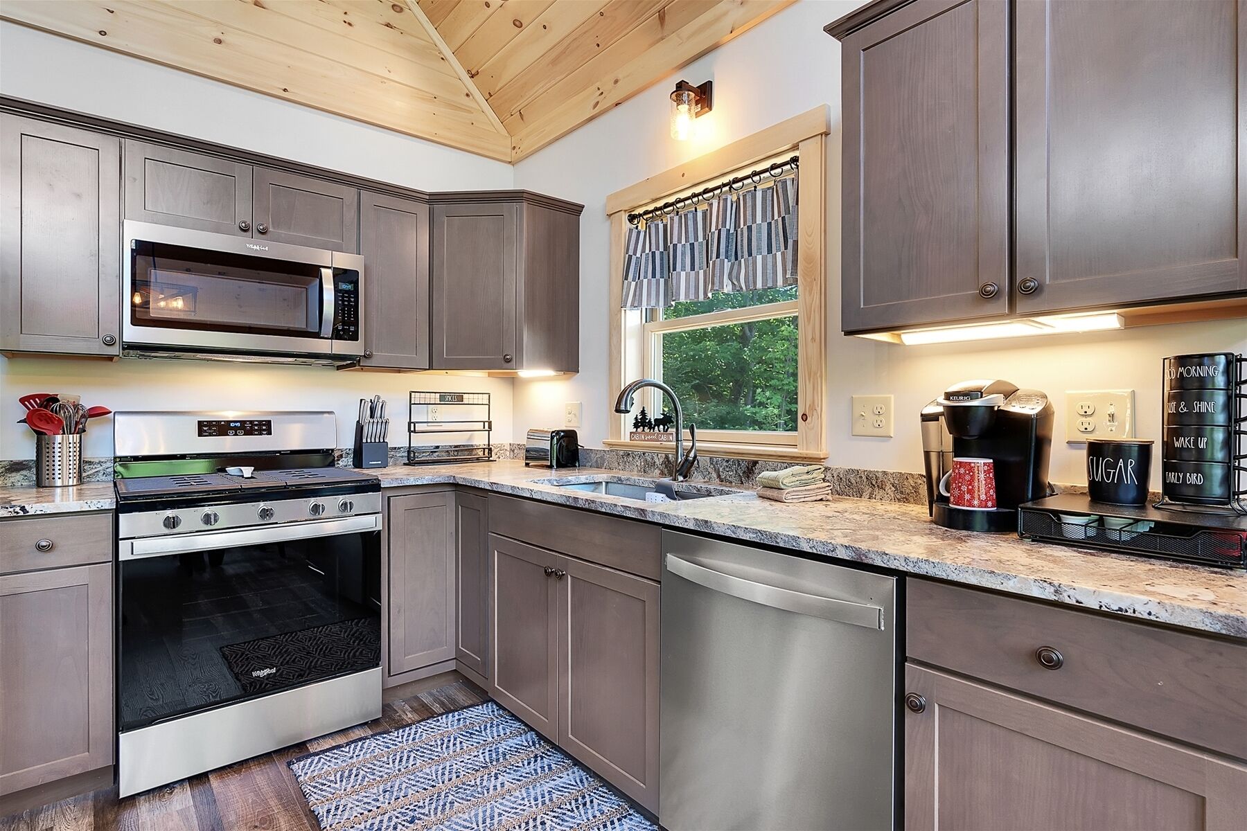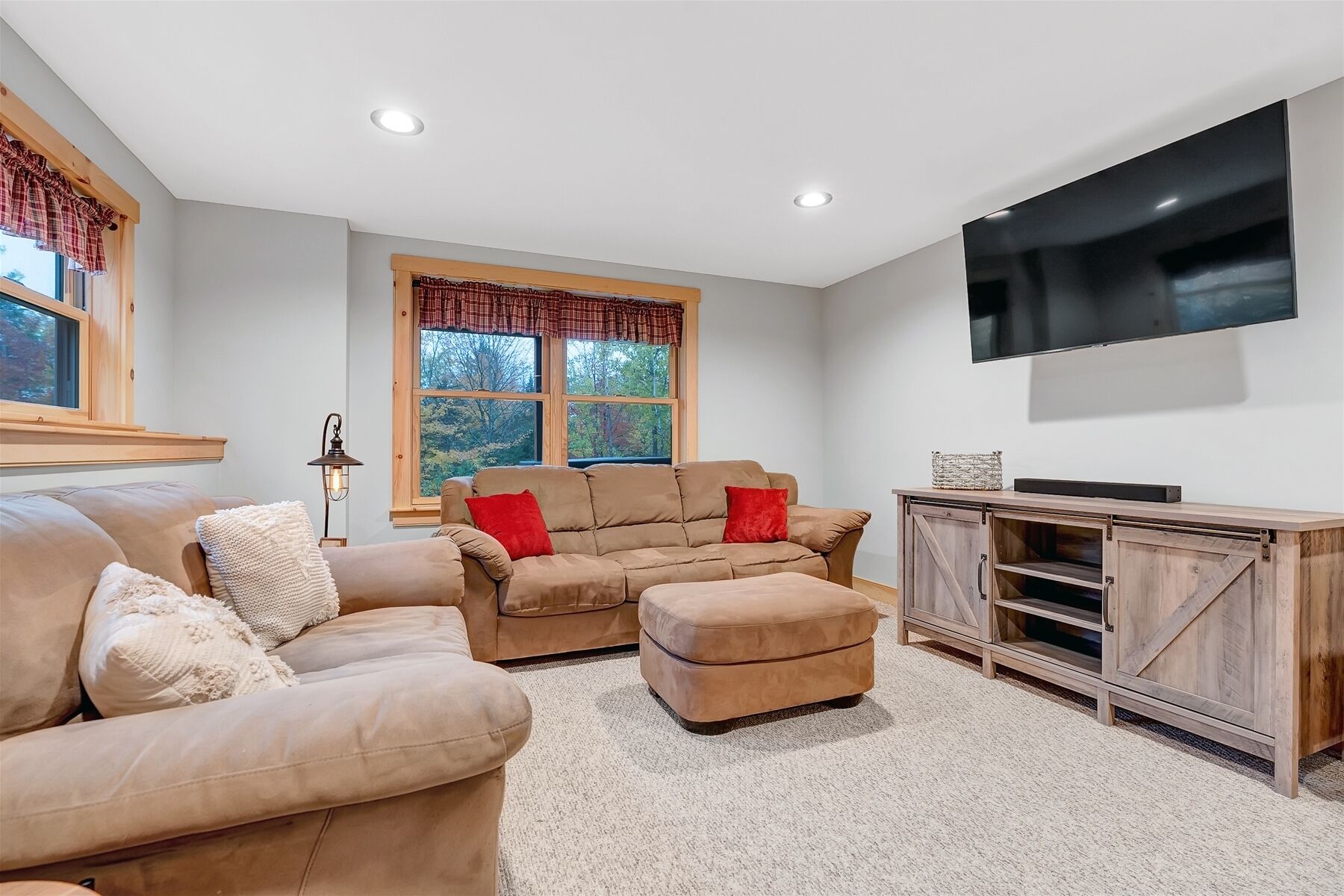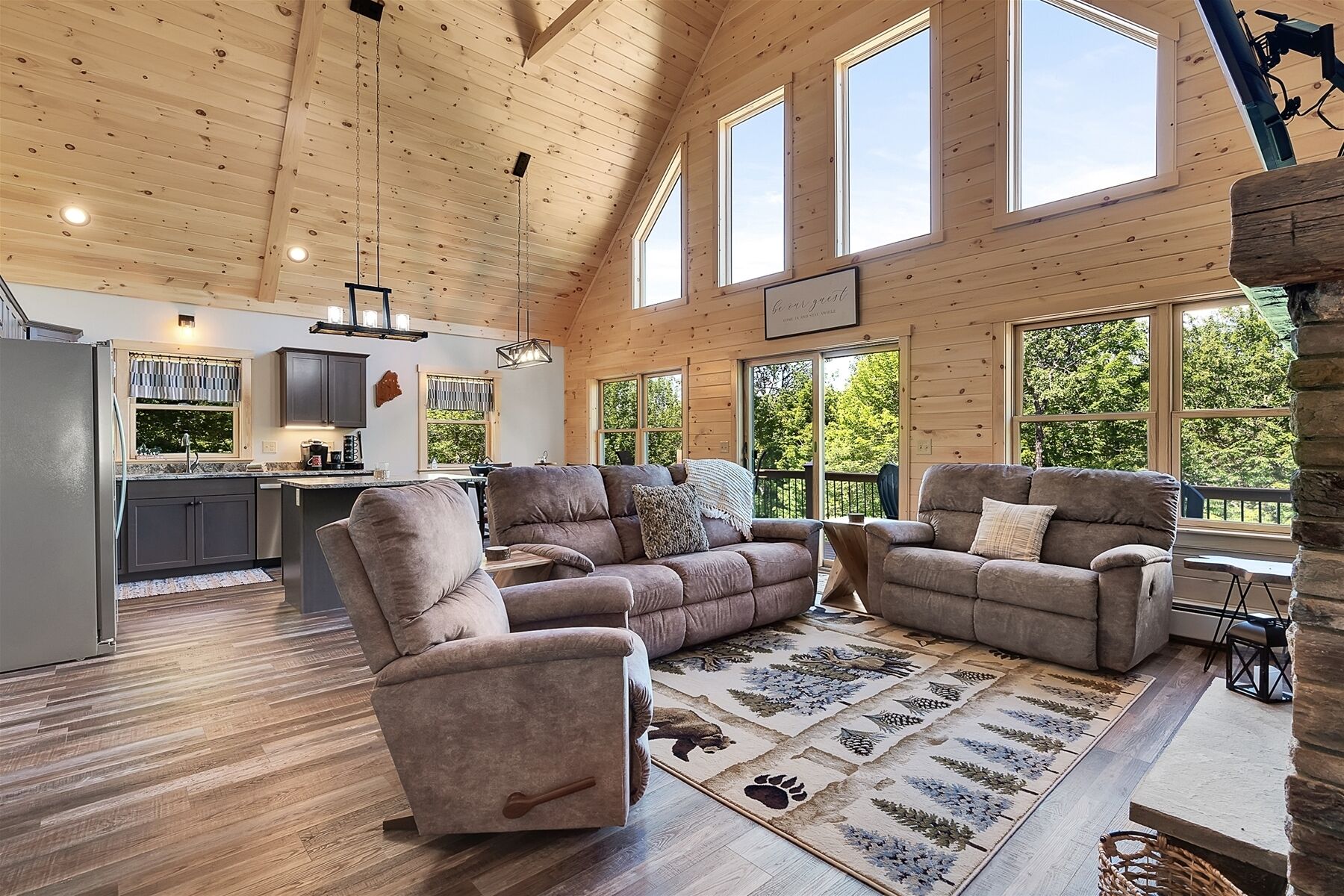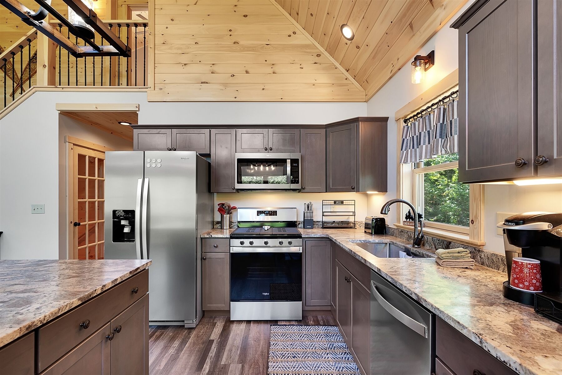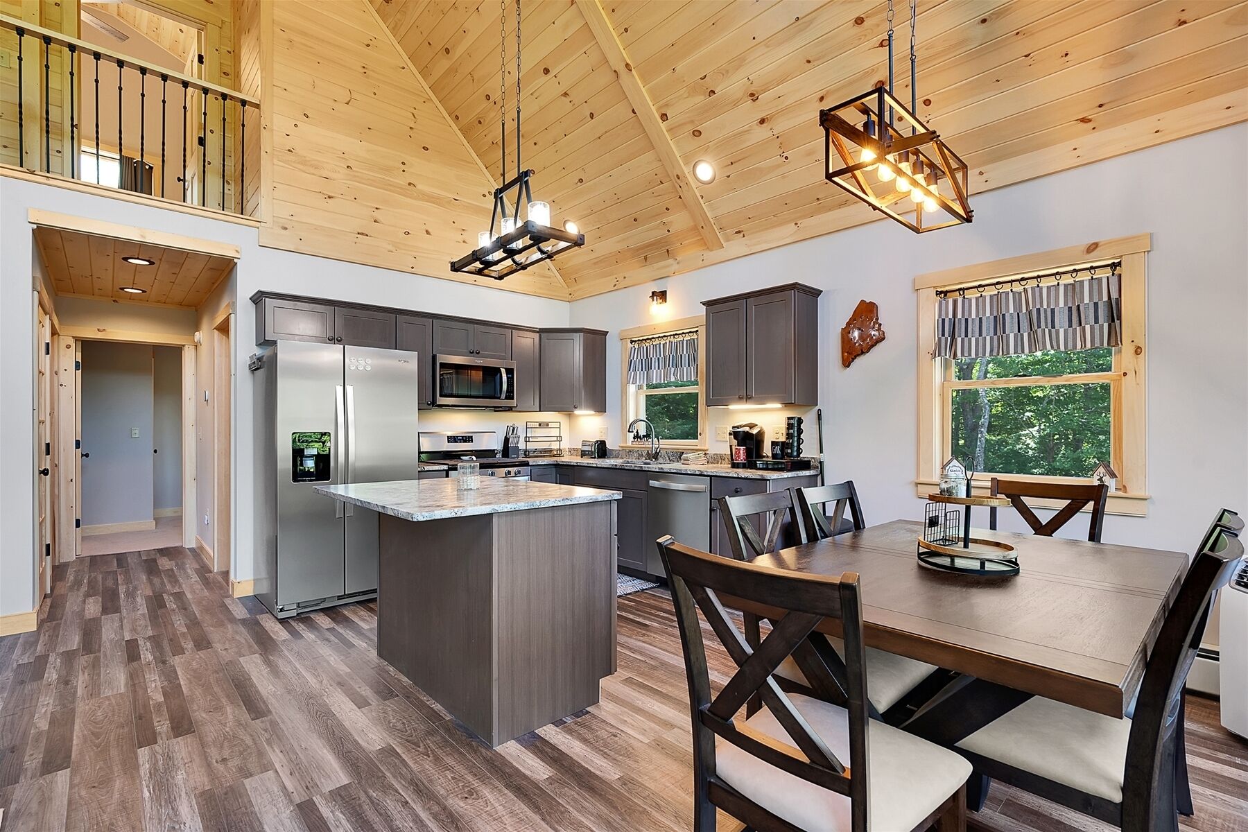 Winter Park Lodge | 4 Bed, 3 Bath Unwind at the Winer Park Lodge after a day on the slopes or exploring the mountains of Maine. Located 15 minutes from Sunday River Resort and convenient to snowmobile trails and many popular restaurants and shops, this chalet style home offers four bedrooms and three bathrooms on three spacious floors of living space. Enter through a large screened porch with plenty of space to store your gear. Featuring a beautiful kitchen with stainless appliances, granite countertops and plenty of space for cooking, dining and entertaining. Spend time with family and friends in the open first floor great room with a gas fireplace to warm up around. Relax and unwind in the large primary bedroom with a private en-suite bathroom. End the day soaking outside in the Hot tub. The lower level offers additional living space with pool table for family and friends to create memories that will last a lifetime!To enjoy your trip to this mountainside property, 4WD may be required during snowy months.Linens / ToiletriesLinens, towels, pillows and bedding are provided. Personal toiletries such as bath soap, shampoo/conditioner, toothpaste etc are not provided.Coffee / Coffee MakerCombination drip/K-Cup coffee maker is provided. A startup supply of coffee/filters are provided. Bringing additional coffee/filters is recommended.Air ConditioningUnit(s) operational from Memorial Day Weekend - Labor Day WeekendPetsRenters may not have pets, including emotional support animals. No exceptions can be made.TVSmart TV for streaming your favorite apps, with traditional cable / satellite tvProperty is equipped with exterior security camera(s) that record audio and video. Camera(s) are installed primarily as a theft deterrent but may be used to verify compliance with rental policies. Security camera(s) are not continuously monitored and should not be relied on for personal safety. No cameras are placed inside, or with any view of the interior of the property.Camera Location(s): On the front screen porch facing the driveway.