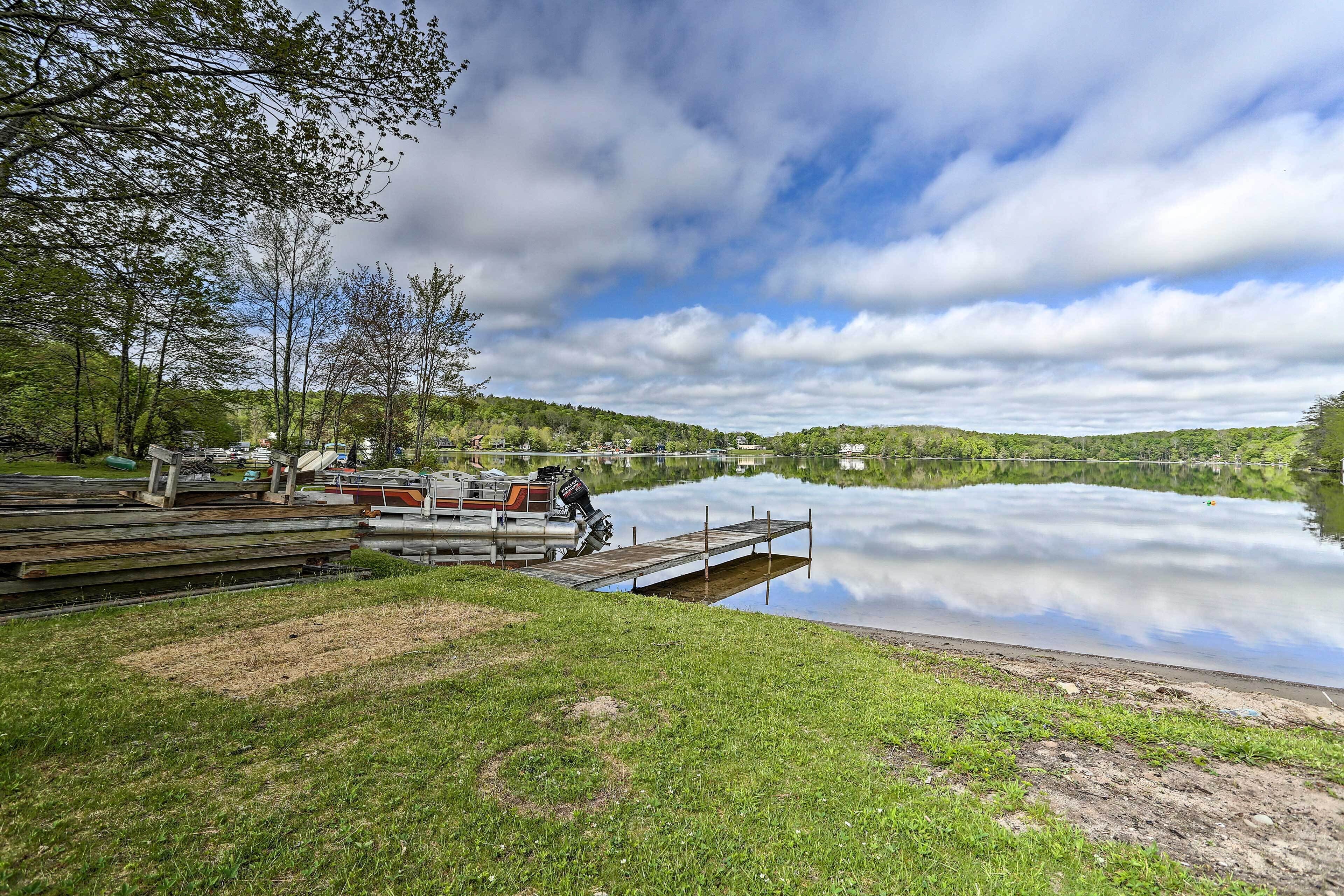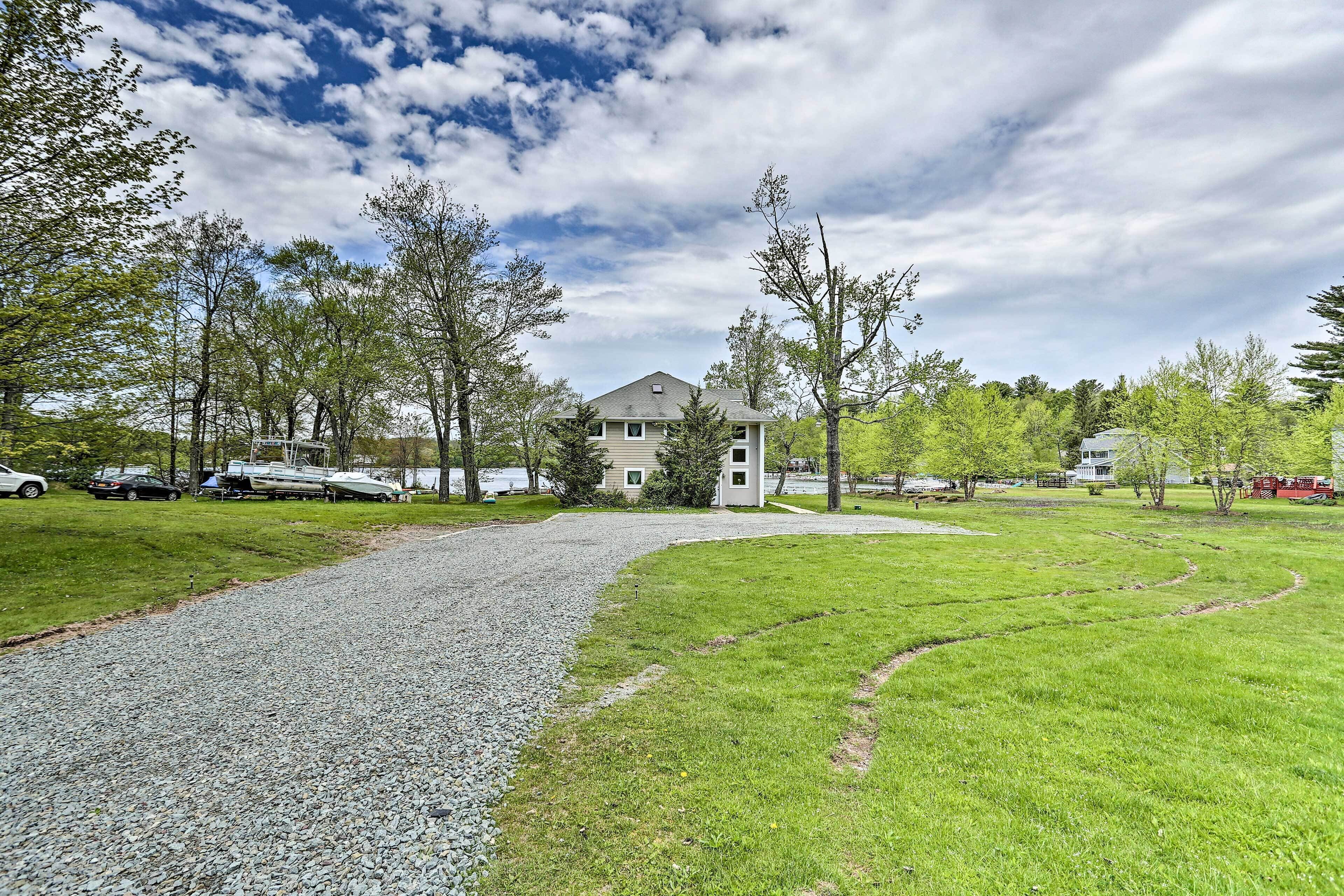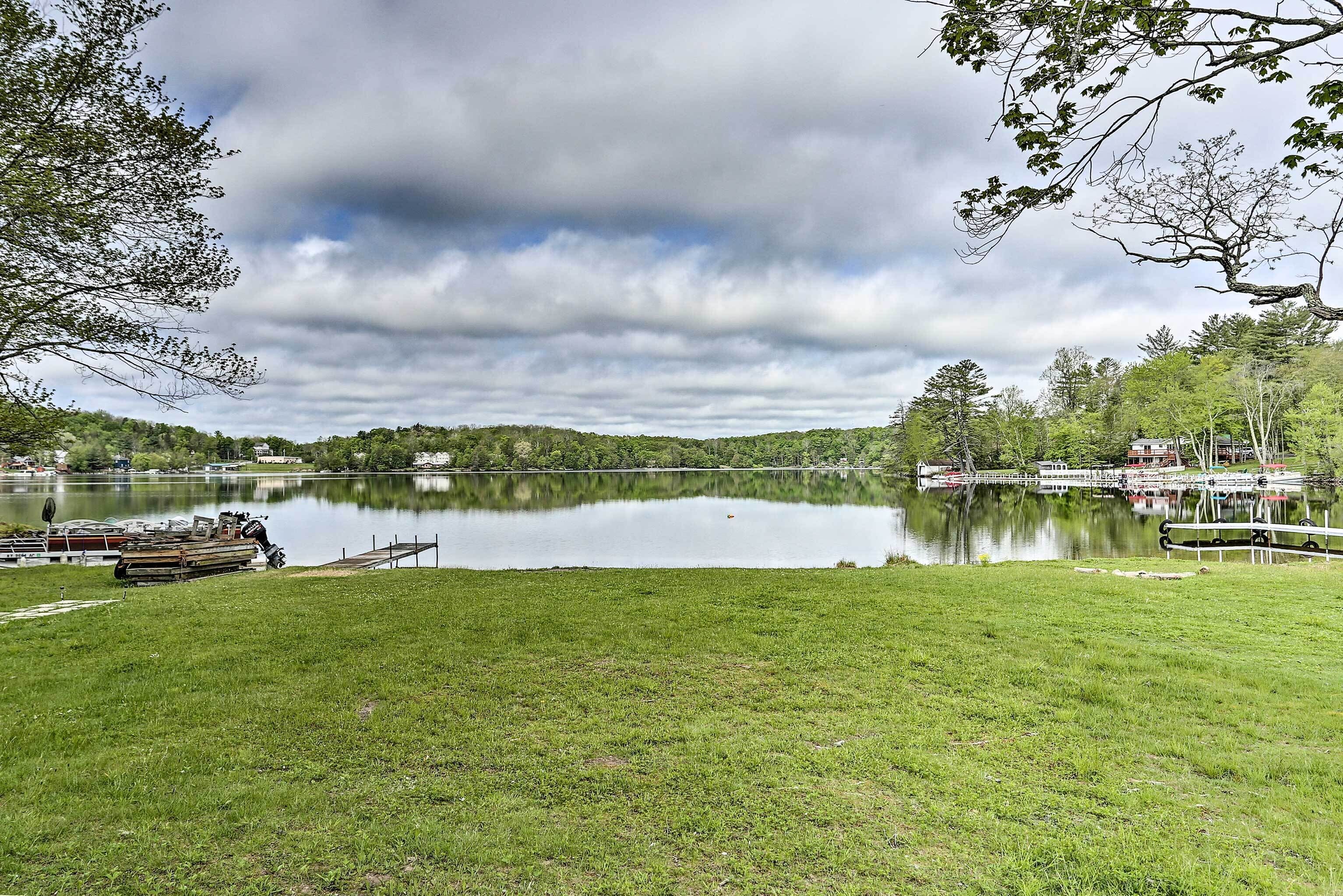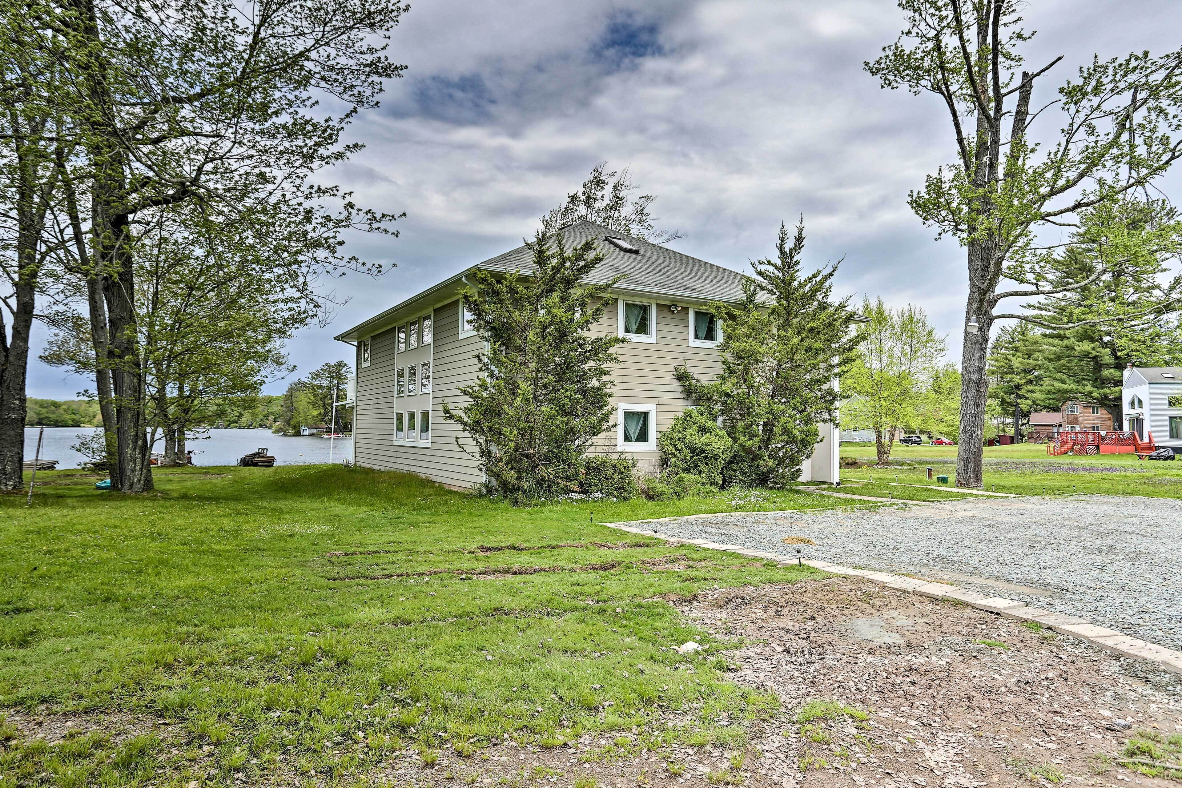 Luxe Lakefront Family Cottage: Private Beach, Dock Family-friendly fun abounds in the Catskills region of Upstate New York, where you’ll find this spectacular lakefront cottage! Boasting 8 bedrooms, 4 baths, a game room, gourmet kitchen, and fantastic outdoor space, this luxe vacation rental is the ideal home base for your large-group retreat. Choose to spend your days paddling the shores of White Lake and swimming off the private dock or drive 4 miles to explore the Bethel Woods Center for the Arts - home to the iconic 1969 Woodstock Festival!-- THE PROPERTY --Direct Lake Access | Outdoor Entertainment Space | 2 Bedroom Suites | 2,750 Sq FtThis Catskills cottage offers ample entertaining space both inside and out plus all the modern essentials of home, so you can seamlessly host your next family reunion, friend-group gathering, or peaceful Upstate retreat!Bedroom Suite 1: King Bed | Bedroom Suite 2: Queen Bed | Bedroom 3: 2 Full Beds | Bedroom 4: Twin Bed | Bedroom 5: Twin Bed | Bedroom 6: Full Bed | Bedroom 7: Twin Bunk Bed | Bedroom 8: Queen Bed | Game Room: Sleeper Sofa | Additional Sleeping: Pack 'n PlayOUTDOOR LIVING: Paved patio w/ dining table, gas grill, lounge area, hammock, hanging swings & lights, spacious lawn w/ private lake frontage, swimming/boating dockINDOOR LIVING: Open floor plan, high vaulted ceilings, Smart TV, fireplace, high-top bar, ample seating, foosball table, ping pong table, board games, decorative piano, dining tableKITCHEN: Cooking basics & spices, full-sized fridge, stove/oven, dishwasher, microwave, drip coffee maker, toaster, island countertopGENERAL: Free WiFi, central A/C & heat, washer & dryer, fresh linens, bath & beach towels, toiletries, hair dryersSUITABILITY: Step-free entry, bed/bath on first floor, grab rails in bathroom/shower, kids toysPARKING: Driveway (8 vehicles)-- THE LOCATION --WHITE LAKE (on-site): Boating, fishing, swimming, kayaking, canoeing, paddleboarding, Gene’s Boats (279 feet), Kauneonga Lake Boat Launch (0.6 miles), Benji & Jakes Pizza Restaurant (0.7 miles)OUTDOOR ACTIVITY: Lake Superior State Park (4.1 miles), Walnut Mountain Park (9.7 miles), Holiday Mountain Ski & Fun (13.2 miles), Upper Delaware Scenic and Recreational River (19.3 miles)ATTRACTIONS: Museum at Bethel Woods (3.9 miles), Bethel Woods Center for the Arts (4.0 miles), Resorts World Casino Catskills (12.2 miles), Costa’s Family Fun Park (31.3 miles)AIRPORT: New York Stewart International Airport (51.8 miles)-- REST EASY WITH US --Evolve makes it easy to find and book properties you'll never want to leave. You can relax knowing that our properties will always be ready for you and that we'll answer the phone 24/7. Even better, if anything is off about your stay, we'll make it right. You can count on our homes and our people to make you feel welcome — because we know what vacation means to you.-- POLICIES --- No smoking- No pets allowed- No events, parties, or large gatherings- Must be at least 25 years old to book- Additional fees and taxes may apply- Photo ID may be required upon check-in- NOTE: Your safety matters. This property features 4 exterior security cameras, located at each corner of the house, all facing outward. They do not look into interior spaces- NOTE: We care about your safety when entering the water. Parental supervision as well as the use of life jackets is strongly recommended for children and adults that choose to swim in the deep lake. Guests enter at their own risk