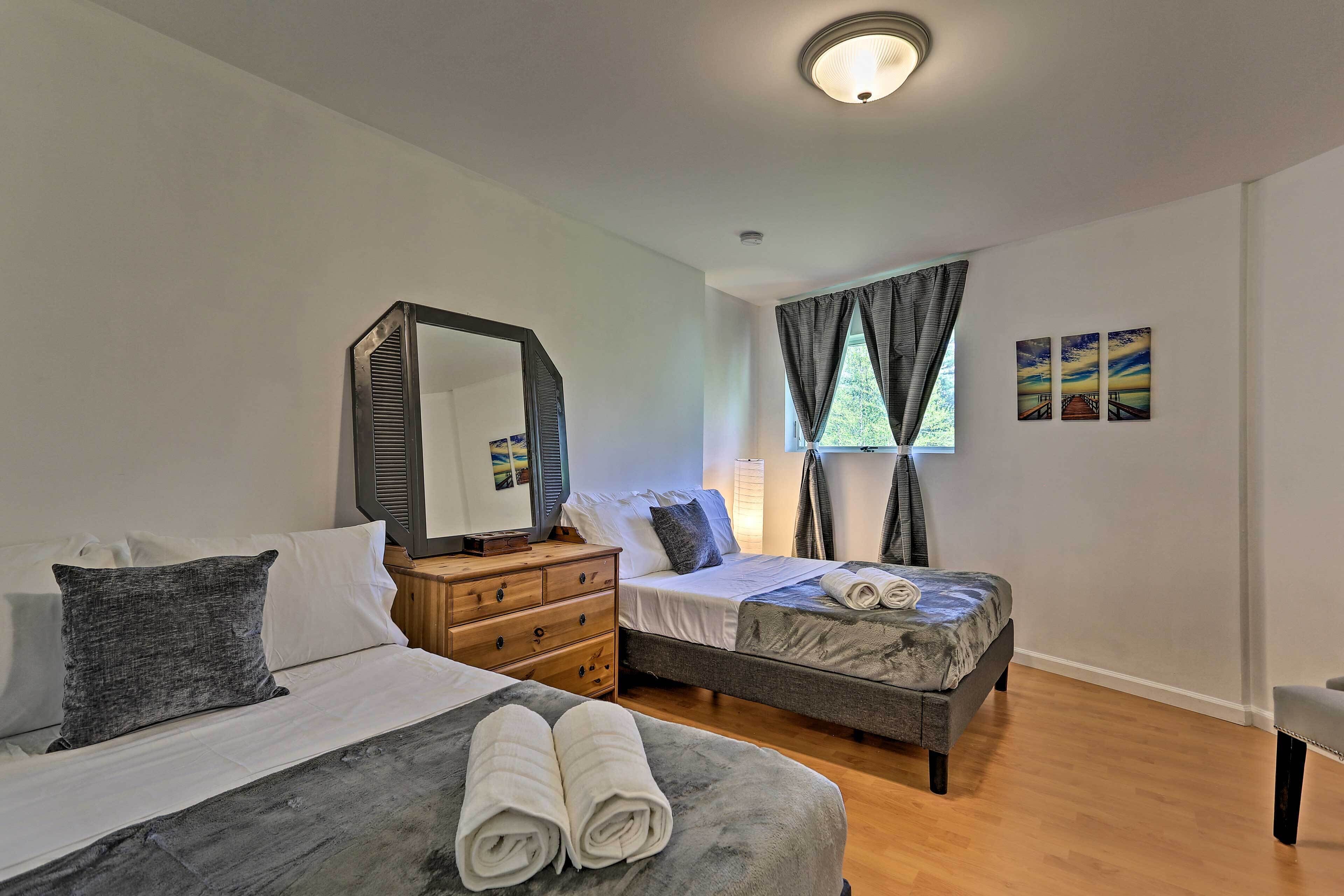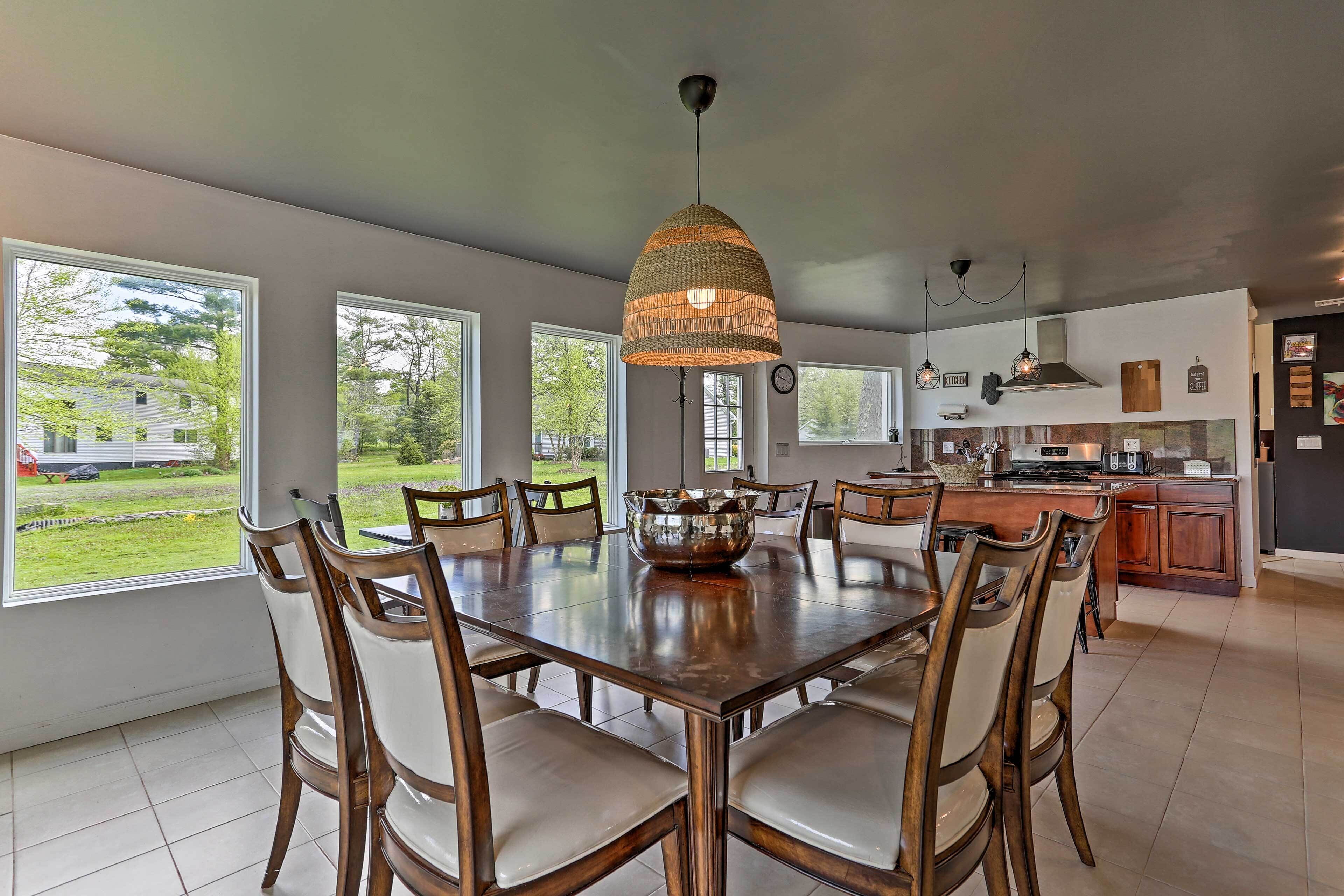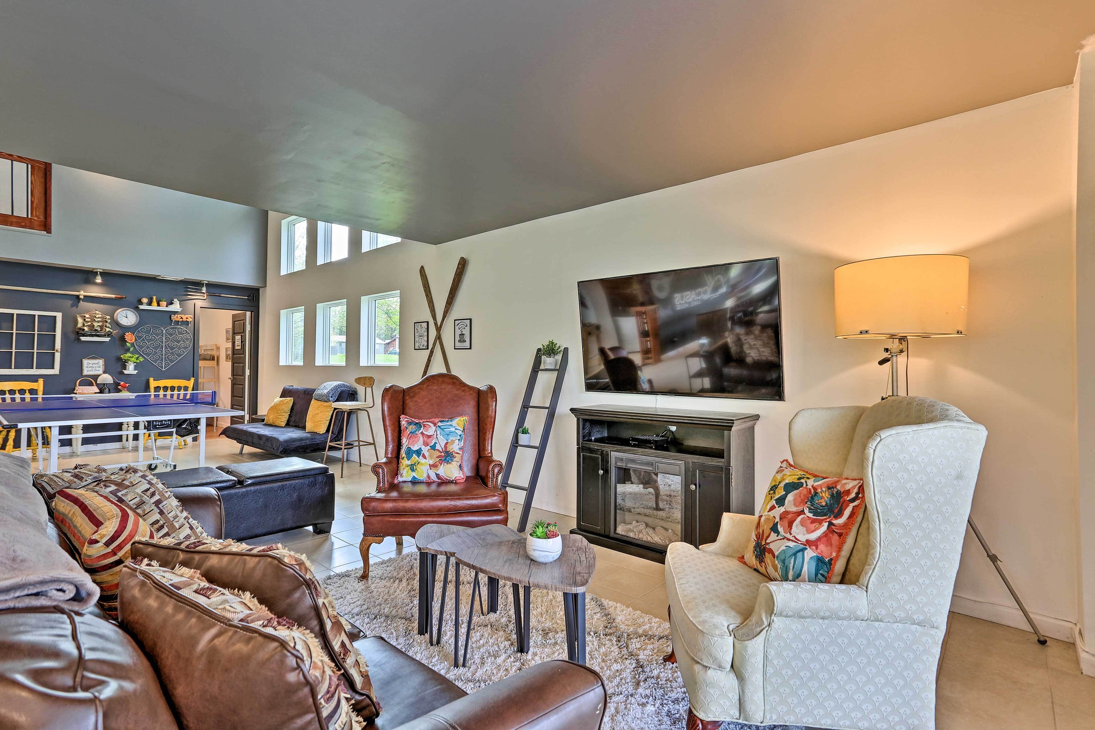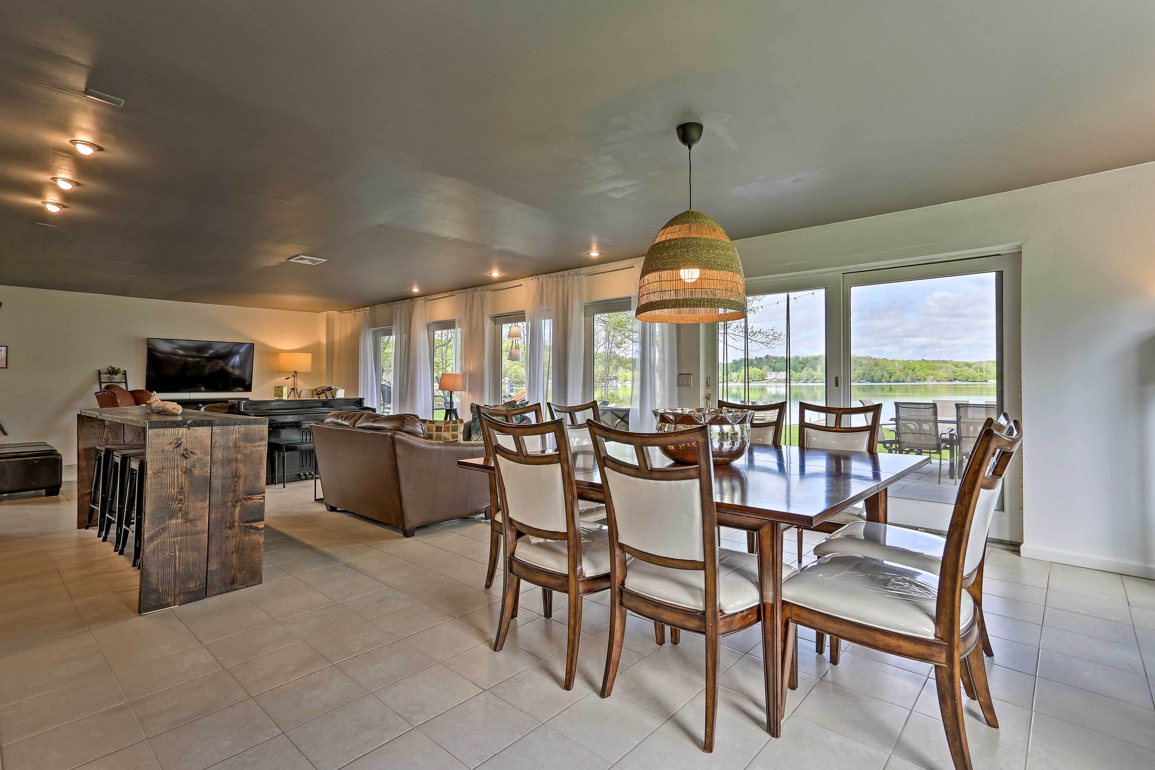 Luxe Lakefront Family Cottage: Private Beach, Dock Family-friendly fun abounds in the Catskills region of Upstate New York, where you’ll find this spectacular lakefront cottage! Boasting 8 bedrooms, 4 baths, a game room, gourmet kitchen, and fantastic outdoor space, this luxe vacation rental is the ideal home base for your large-group retreat. Choose to spend your days paddling the shores of White Lake and swimming off the private dock or drive 4 miles to explore the Bethel Woods Center for the Arts - home to the iconic 1969 Woodstock Festival!-- THE PROPERTY --Direct Lake Access | Outdoor Entertainment Space | 2 Bedroom Suites | 2,750 Sq FtThis Catskills cottage offers ample entertaining space both inside and out plus all the modern essentials of home, so you can seamlessly host your next family reunion, friend-group gathering, or peaceful Upstate retreat!Bedroom Suite 1: King Bed | Bedroom Suite 2: Queen Bed | Bedroom 3: 2 Full Beds | Bedroom 4: Twin Bed | Bedroom 5: Twin Bed | Bedroom 6: Full Bed | Bedroom 7: Twin Bunk Bed | Bedroom 8: Queen Bed | Game Room: Sleeper Sofa | Additional Sleeping: Pack 'n PlayOUTDOOR LIVING: Paved patio w/ dining table, gas grill, lounge area, hammock, hanging swings & lights, spacious lawn w/ private lake frontage, swimming/boating dockINDOOR LIVING: Open floor plan, high vaulted ceilings, Smart TV, fireplace, high-top bar, ample seating, foosball table, ping pong table, board games, decorative piano, dining tableKITCHEN: Cooking basics & spices, full-sized fridge, stove/oven, dishwasher, microwave, drip coffee maker, toaster, island countertopGENERAL: Free WiFi, central A/C & heat, washer & dryer, fresh linens, bath & beach towels, toiletries, hair dryersSUITABILITY: Step-free entry, bed/bath on first floor, grab rails in bathroom/shower, kids toysPARKING: Driveway (8 vehicles)-- THE LOCATION --WHITE LAKE (on-site): Boating, fishing, swimming, kayaking, canoeing, paddleboarding, Gene’s Boats (279 feet), Kauneonga Lake Boat Launch (0.6 miles), Benji & Jakes Pizza Restaurant (0.7 miles)OUTDOOR ACTIVITY: Lake Superior State Park (4.1 miles), Walnut Mountain Park (9.7 miles), Holiday Mountain Ski & Fun (13.2 miles), Upper Delaware Scenic and Recreational River (19.3 miles)ATTRACTIONS: Museum at Bethel Woods (3.9 miles), Bethel Woods Center for the Arts (4.0 miles), Resorts World Casino Catskills (12.2 miles), Costa’s Family Fun Park (31.3 miles)AIRPORT: New York Stewart International Airport (51.8 miles)-- REST EASY WITH US --Evolve makes it easy to find and book properties you'll never want to leave. You can relax knowing that our properties will always be ready for you and that we'll answer the phone 24/7. Even better, if anything is off about your stay, we'll make it right. You can count on our homes and our people to make you feel welcome — because we know what vacation means to you.-- POLICIES --- No smoking- No pets allowed- No events, parties, or large gatherings- Must be at least 25 years old to book- Additional fees and taxes may apply- Photo ID may be required upon check-in- NOTE: Your safety matters. This property features 4 exterior security cameras, located at each corner of the house, all facing outward. They do not look into interior spaces- NOTE: We care about your safety when entering the water. Parental supervision as well as the use of life jackets is strongly recommended for children and adults that choose to swim in the deep lake. Guests enter at their own risk