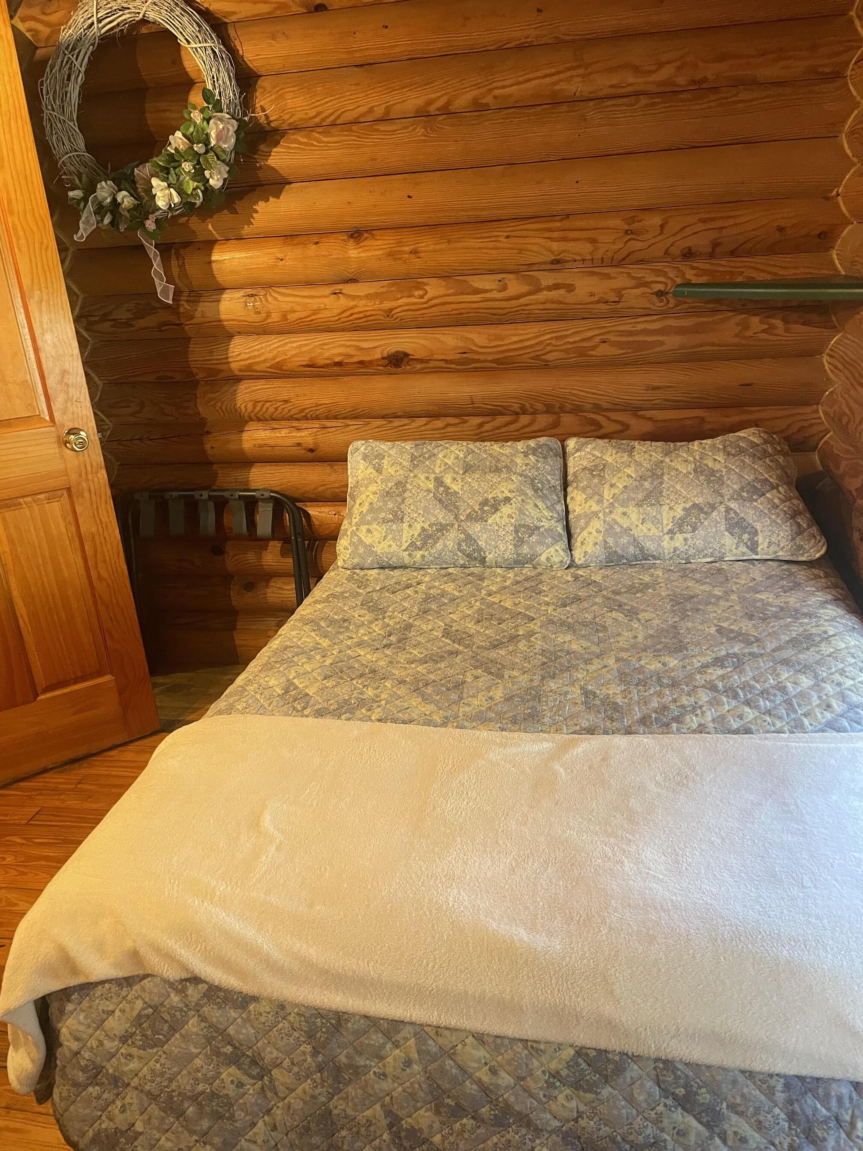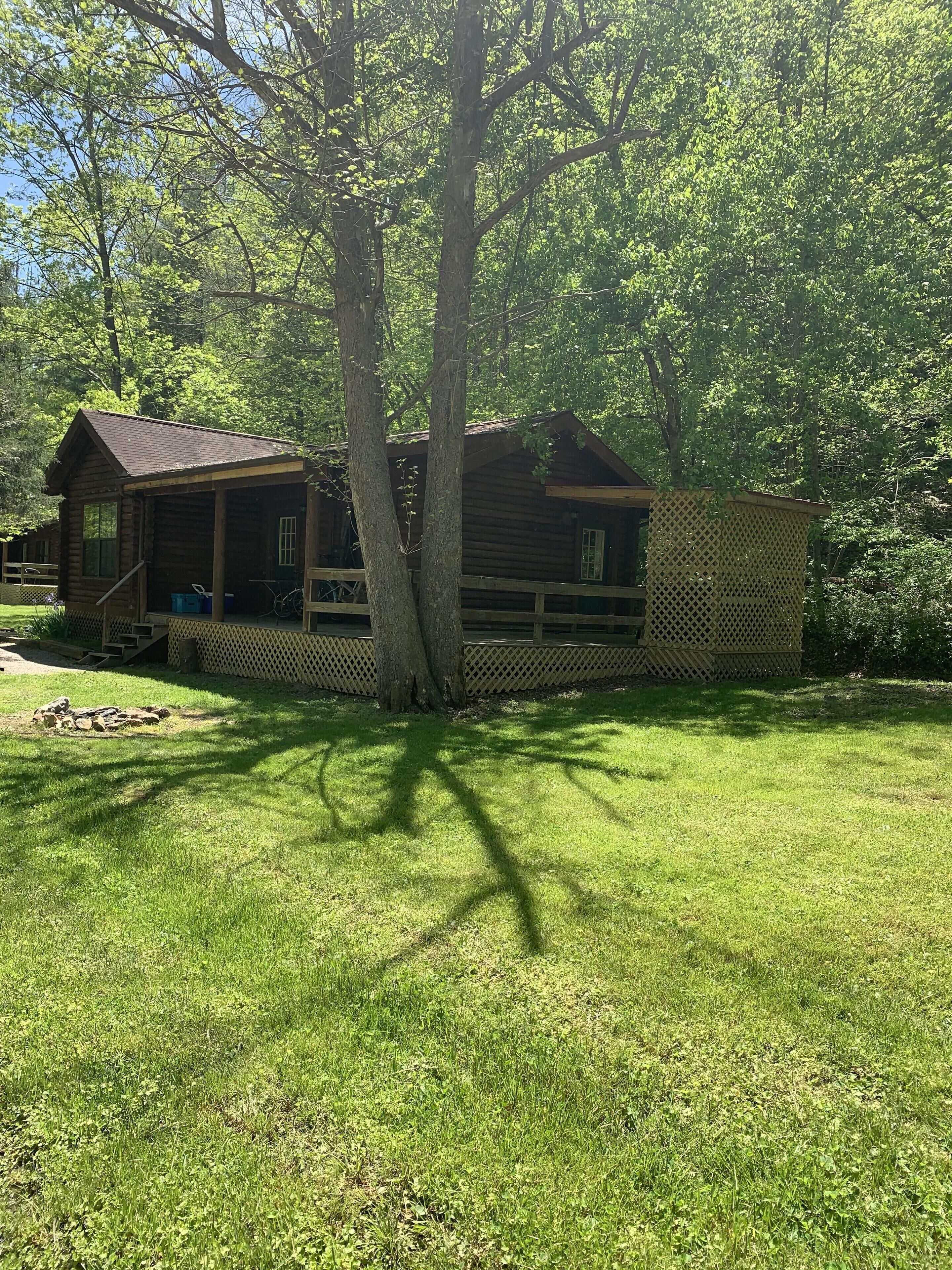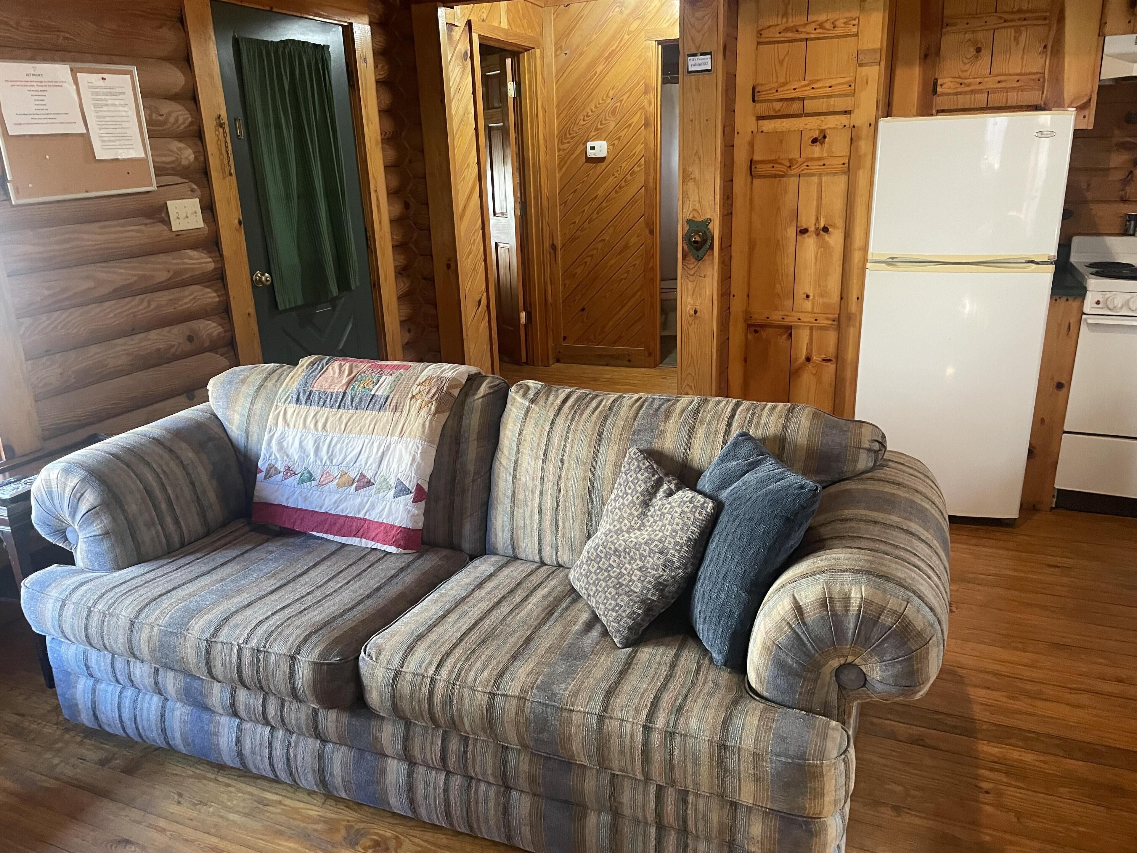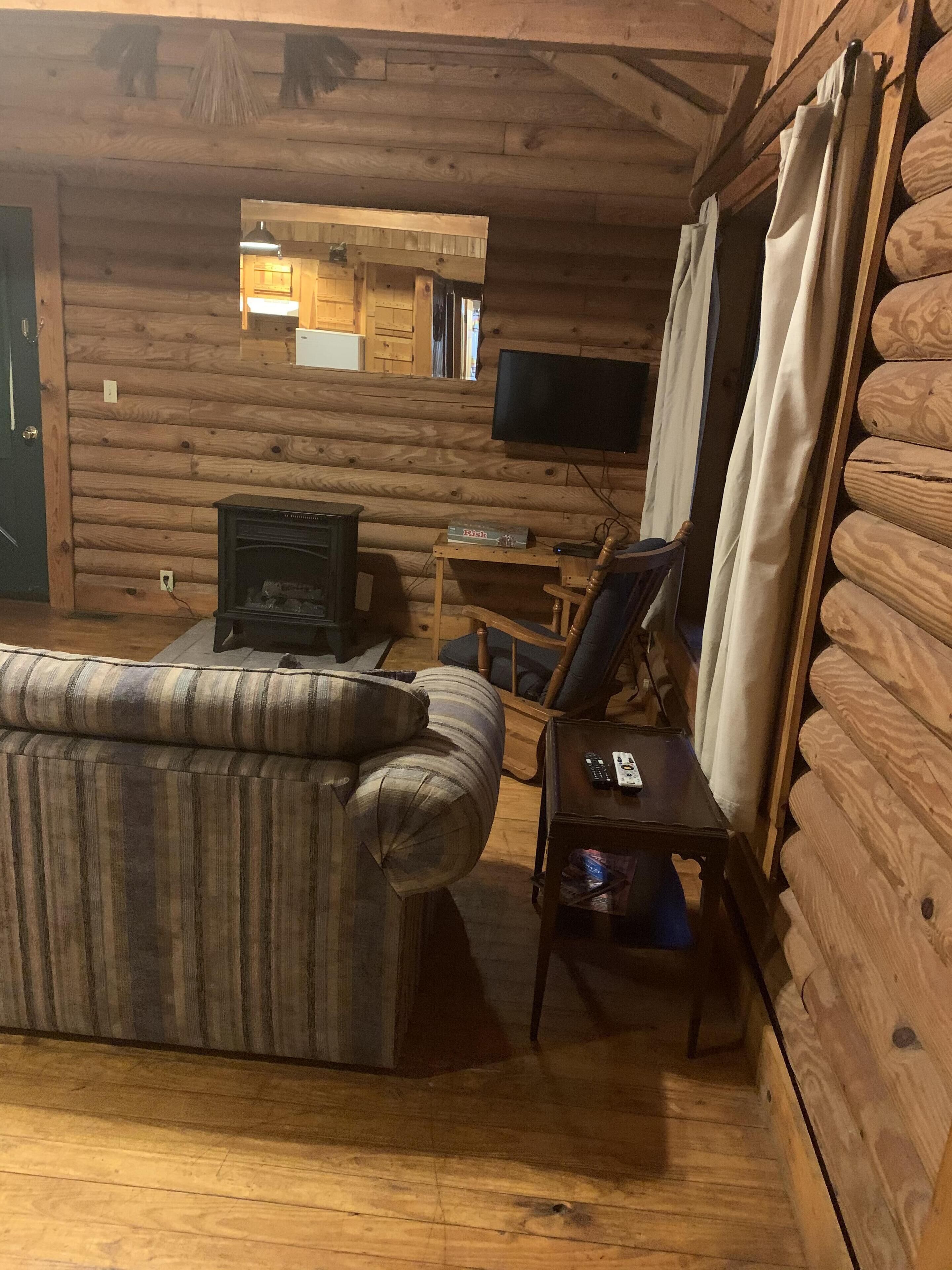 Cabin close to Natural Bridge State Park with Jhot tub and internet A great place for 2 to getaway but it can accommodate 4. The fire pit and a porch swing provide the ultimate setting for a relaxing evening. There is a queen bed and a full bed. There is a gas log fireplace for the winter but heat and AC also. Located close to Natural Bridge State Park gives you close access to all the restaurants and the Natural Bridge Sky Lift. There are 3 other cabins close by making this area great for reunion getaways. Allows one pet. An outside hot tub has been added on the deck. Wi-FiPLEASE NOTE THAT CHECK IN IS AT OUR OFFICE AND DIRECTIONS WILL BE SENT WITH YOUR CONFIRMATION.