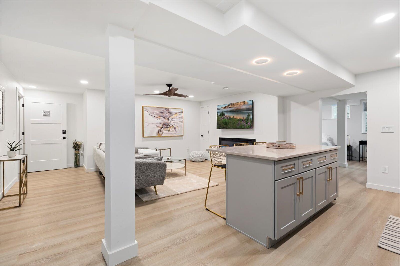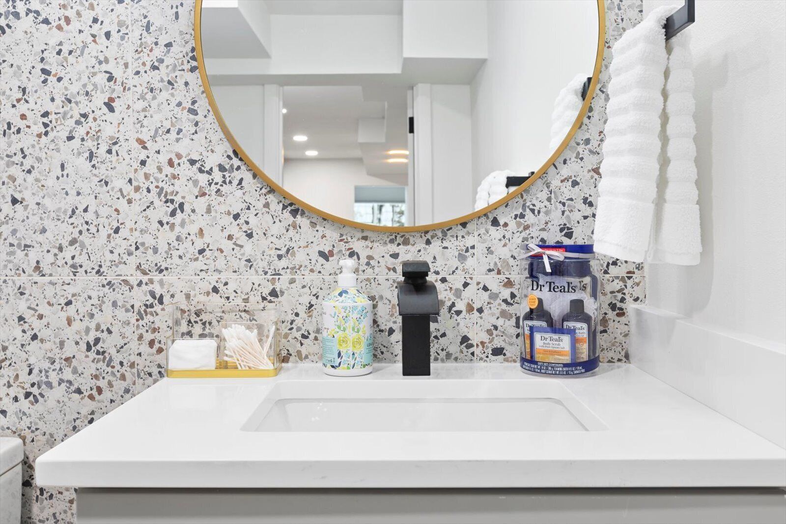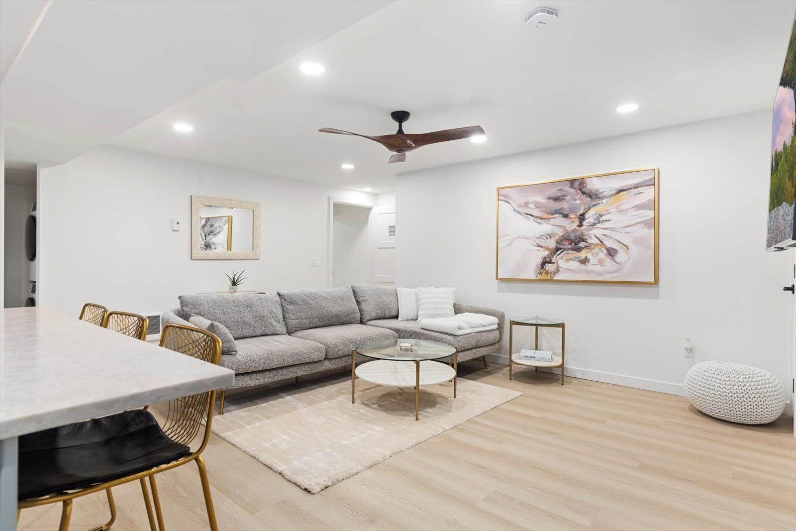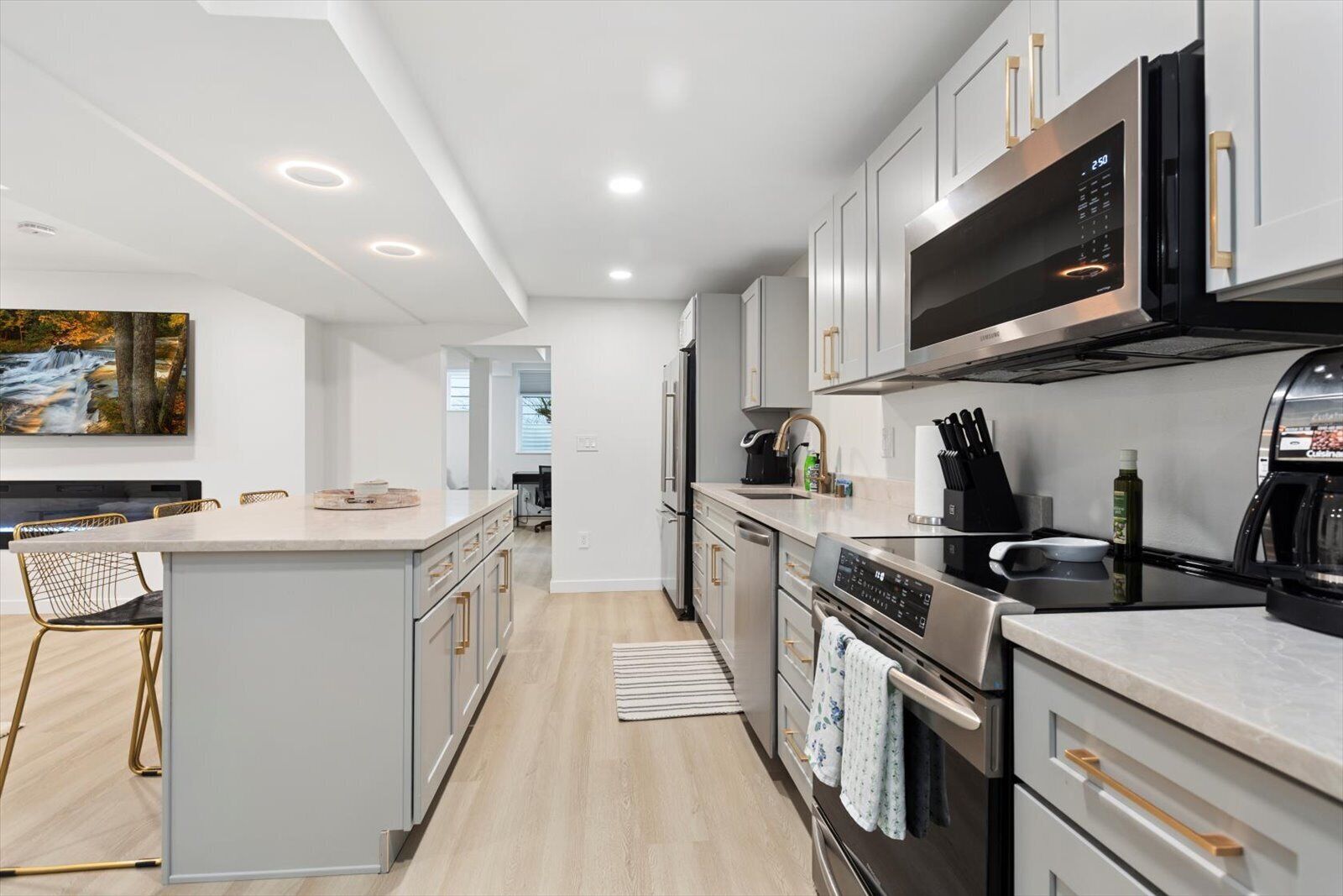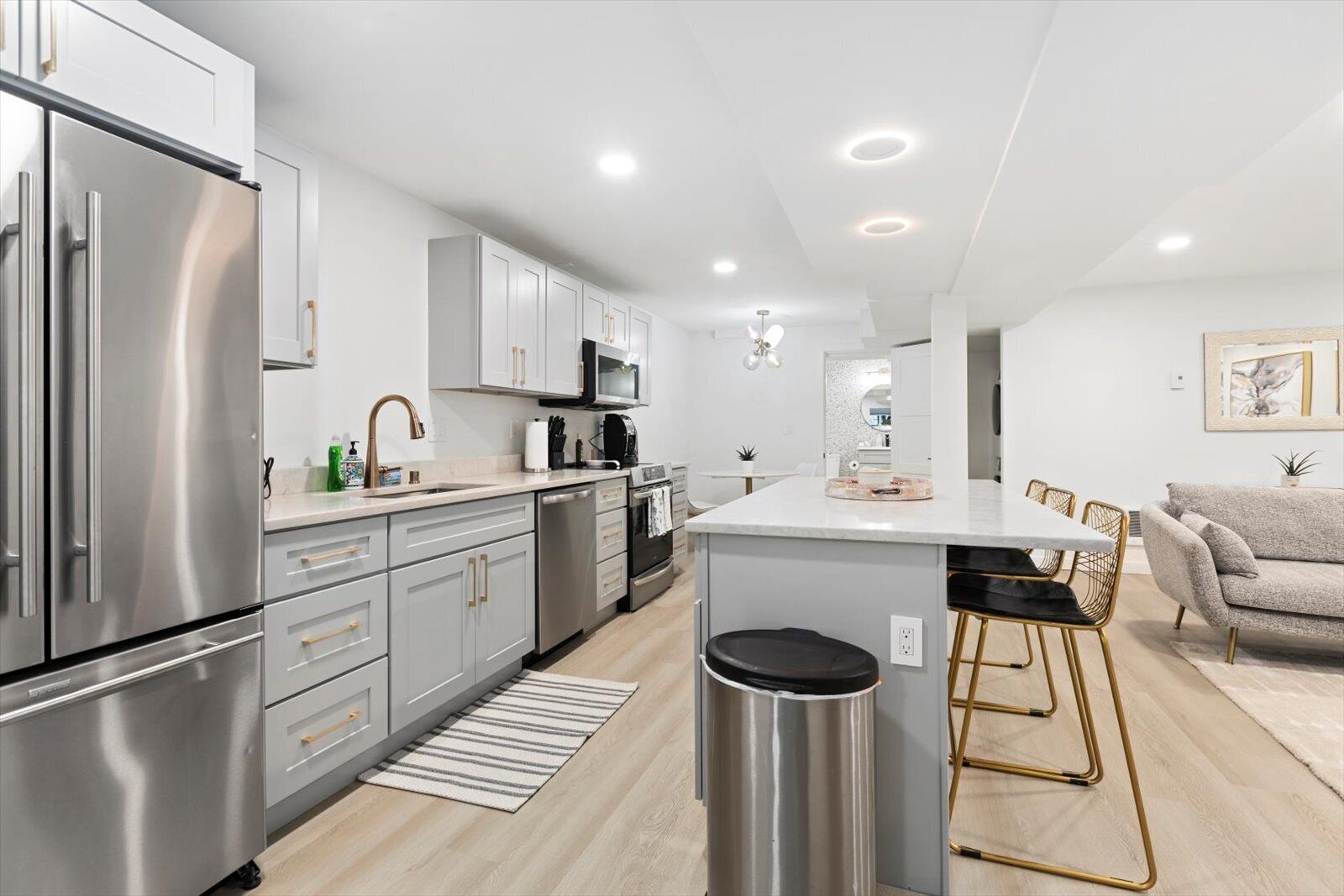 Step Into Retro Chic: Luxurious Suite King Bed Deluxe guest suite in Shoreline, just 11 miles from Downtown Seattle's Space Needle and close to major hospitals. Enjoy the luxury of a fully equipped apartment w/ modern amenities, including stainless steel appliances, washer/dryer, a 65-inch smart TV & King Purple mattress. Lower-level guest suite features a chic kitchen island w/ gold hardware & custom tile bathroom. Ideal for business travelers or individuals relocating to the area.