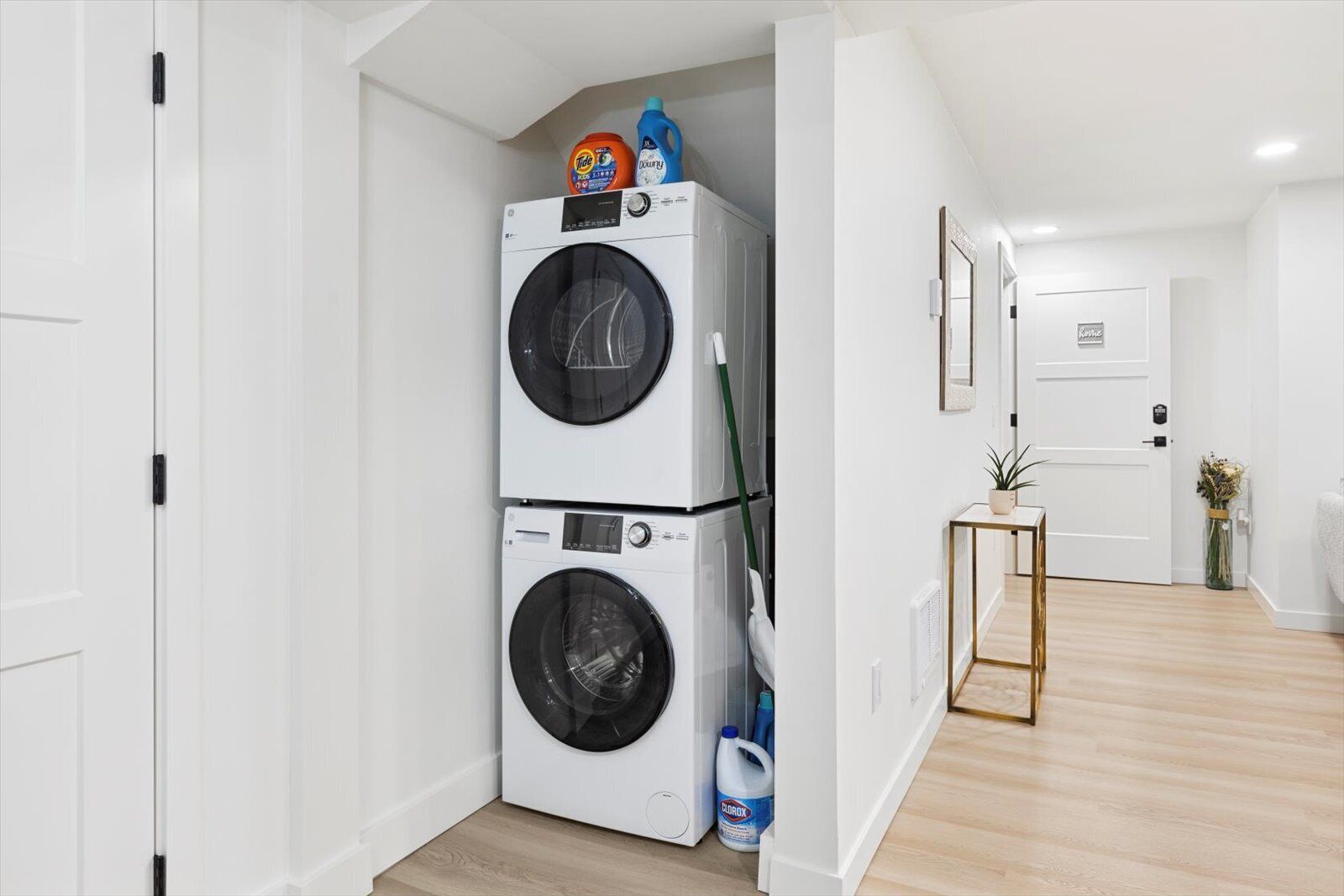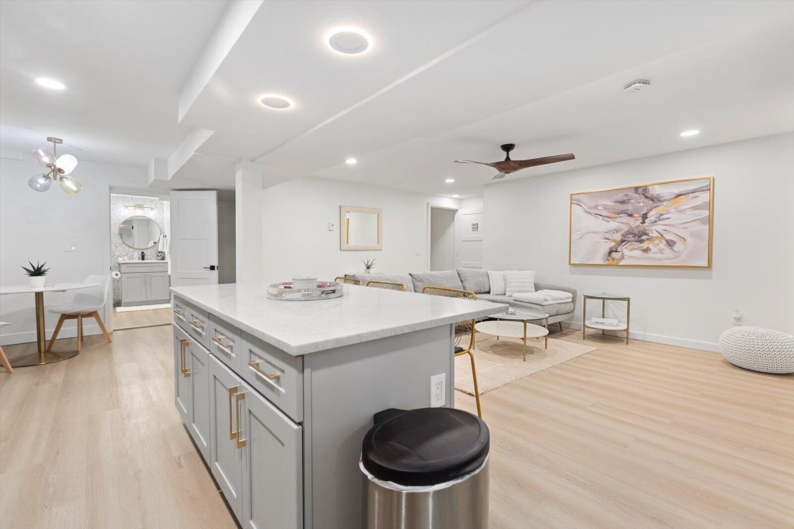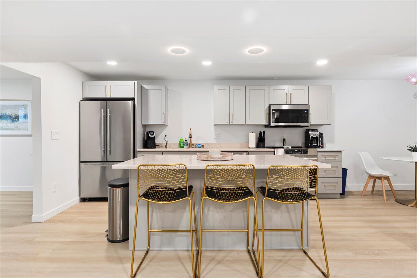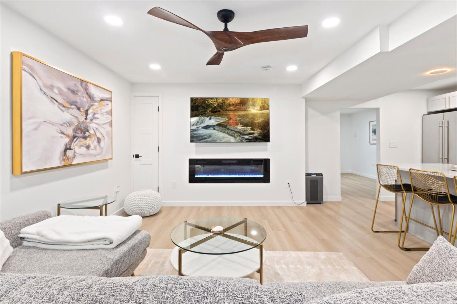Step Into Retro Chic: Luxurious Suite King Bed Deluxe guest suite in Shoreline, just 11 miles from Downtown Seattle's Space Needle and close to major hospitals. Enjoy the luxury of a fully equipped apartment w/ modern amenities, including stainless steel appliances, washer/dryer, a 65-inch smart TV & King Purple mattress. Lower-level guest suite features a chic kitchen island w/ gold hardware & custom tile bathroom. Ideal for business travelers or individuals relocating to the area.