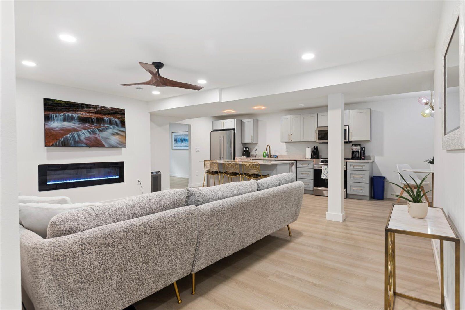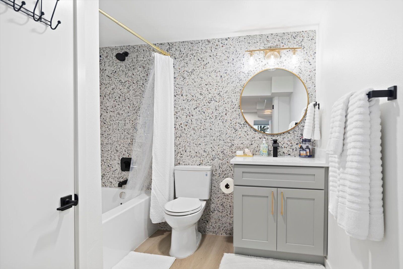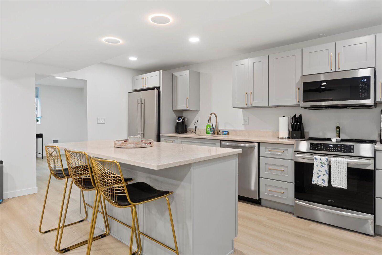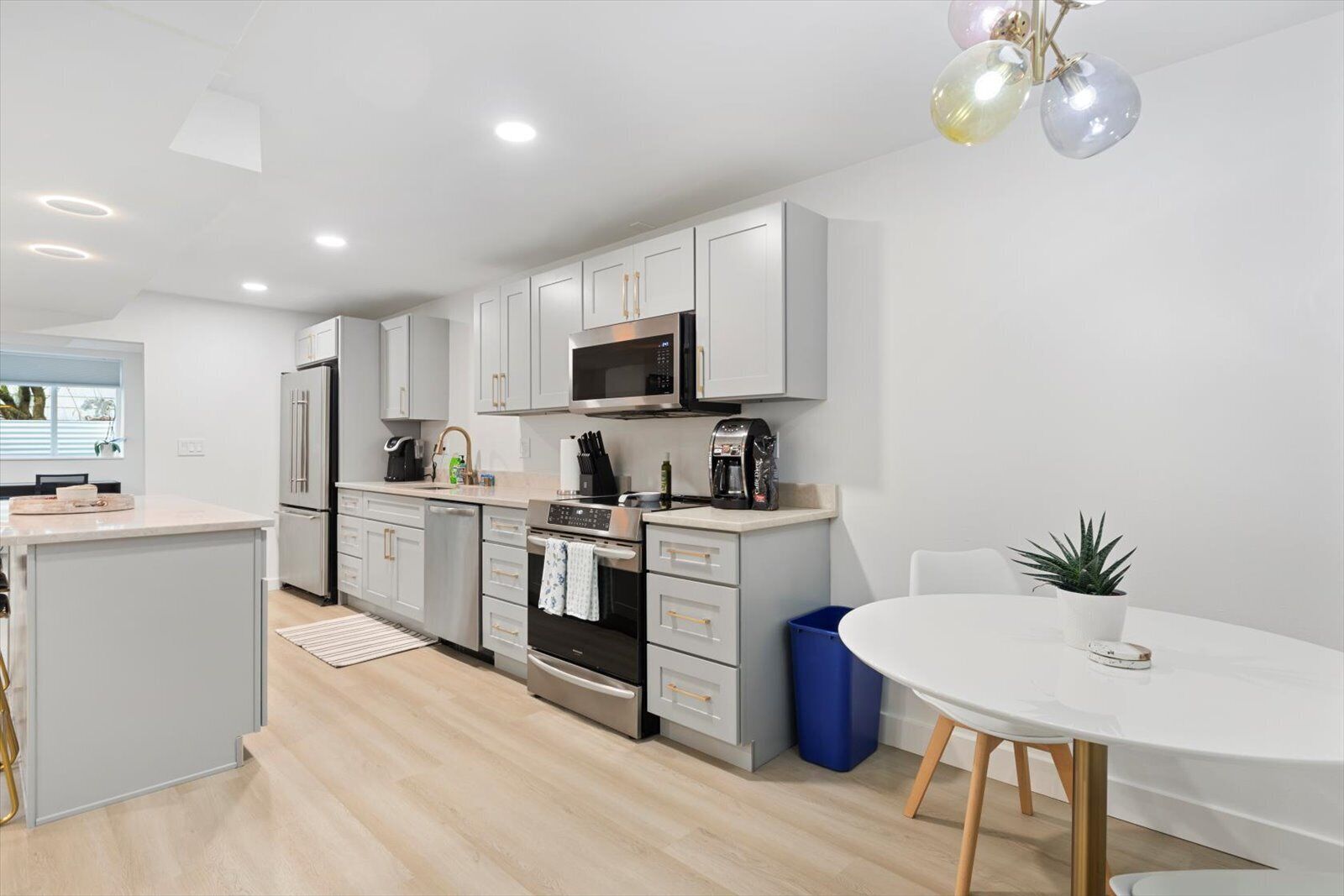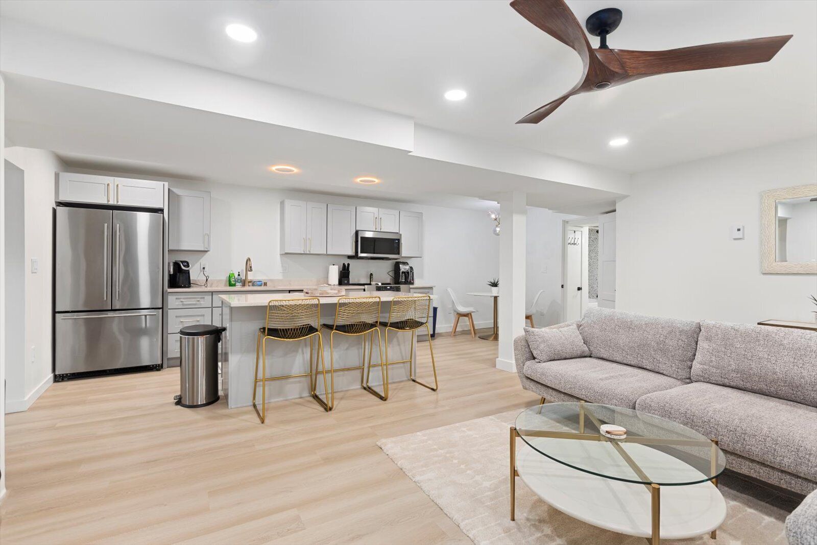 Step Into Retro Chic: Luxurious Suite King Bed Deluxe guest suite in Shoreline, just 11 miles from Downtown Seattle's Space Needle and close to major hospitals. Enjoy the luxury of a fully equipped apartment w/ modern amenities, including stainless steel appliances, washer/dryer, a 65-inch smart TV & King Purple mattress. Lower-level guest suite features a chic kitchen island w/ gold hardware & custom tile bathroom. Ideal for business travelers or individuals relocating to the area.