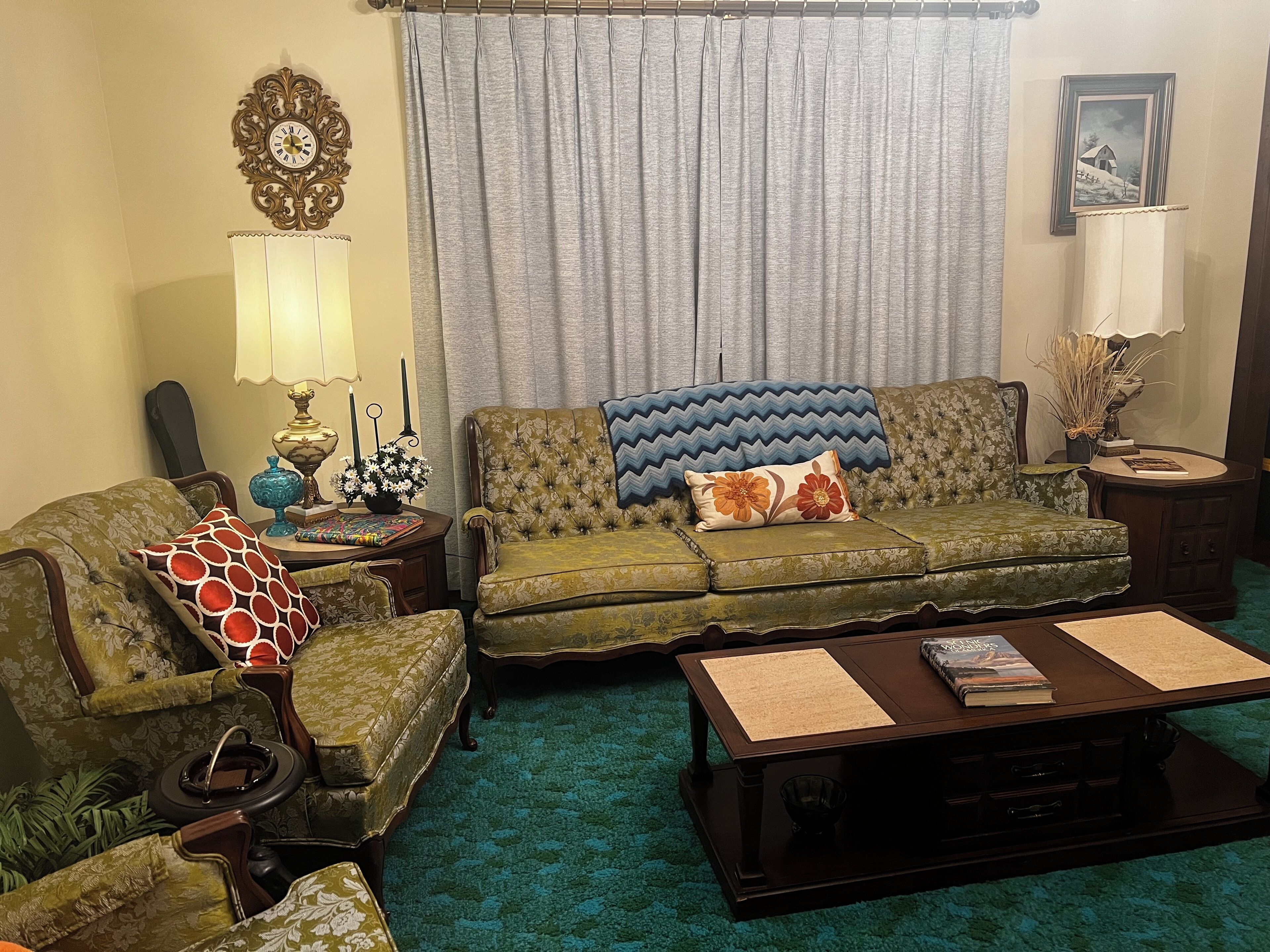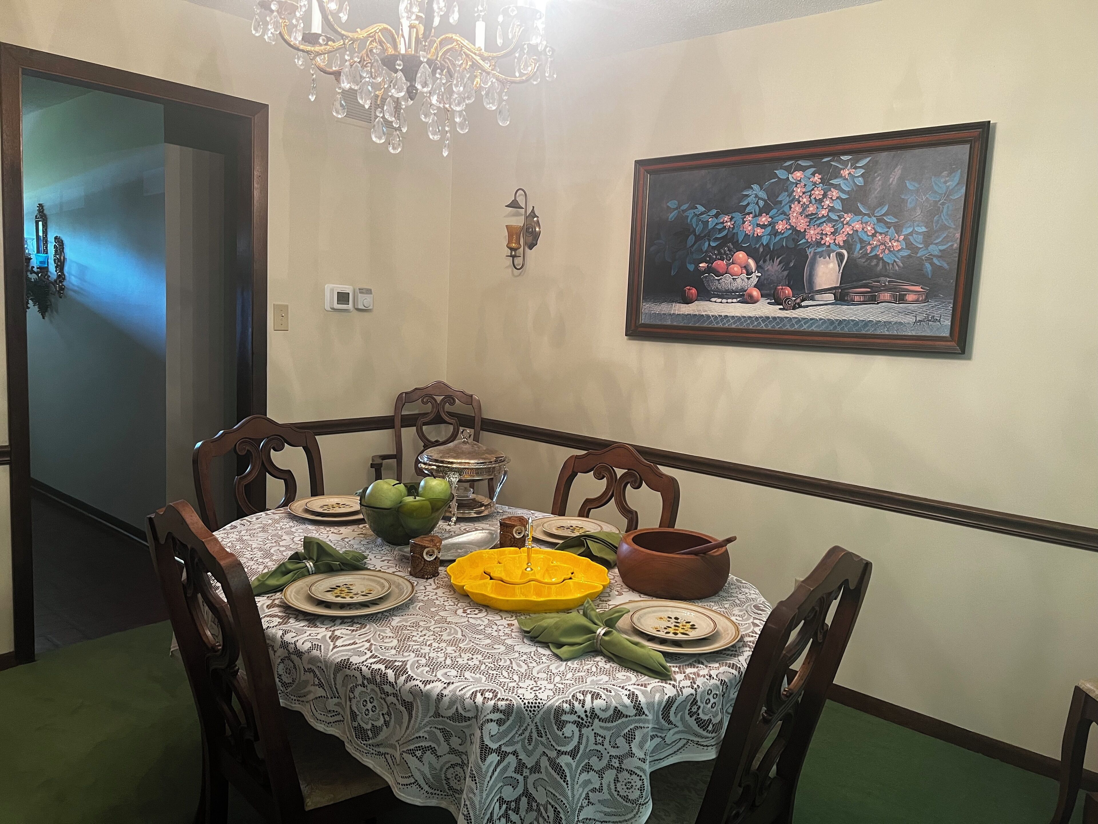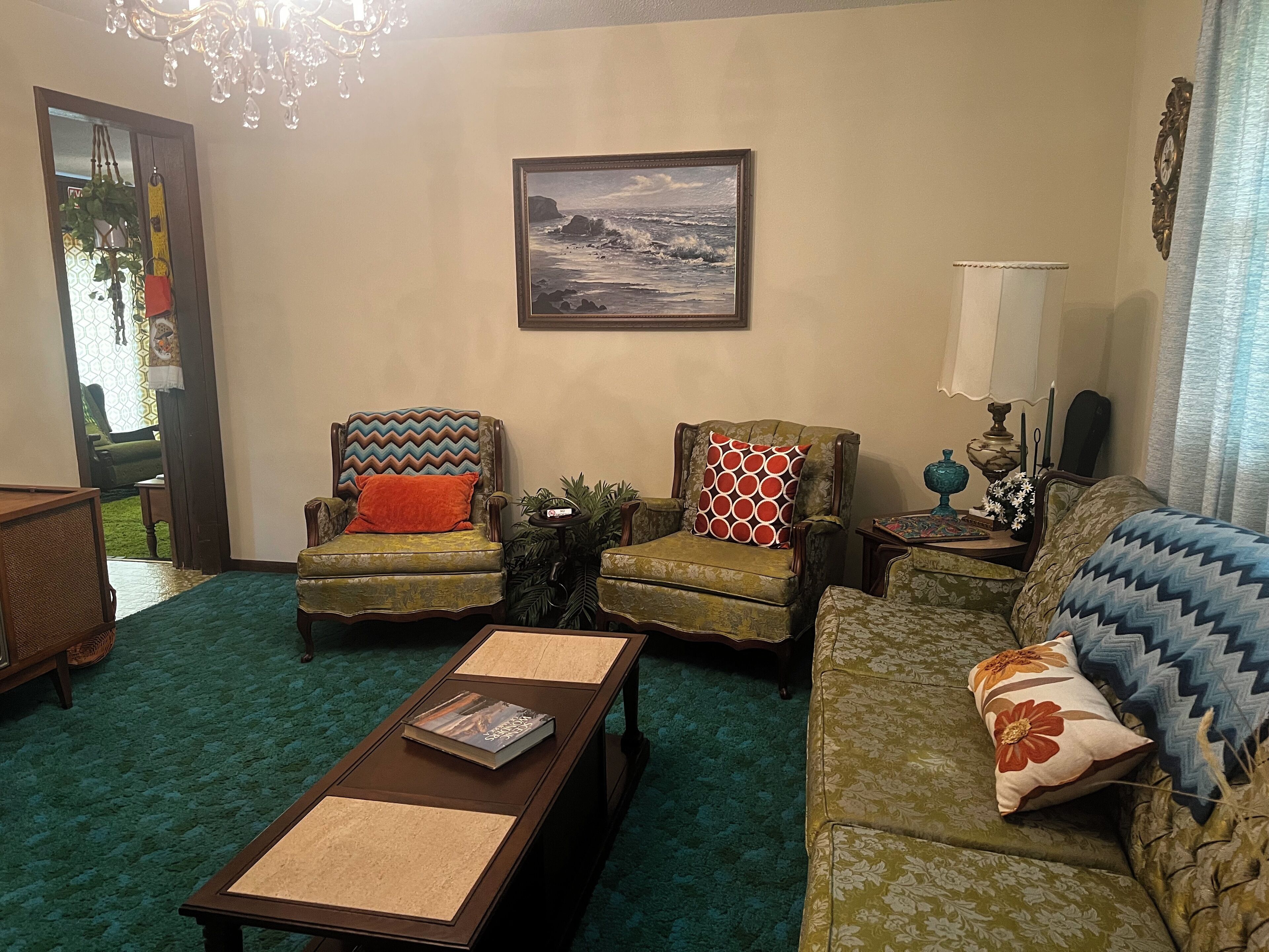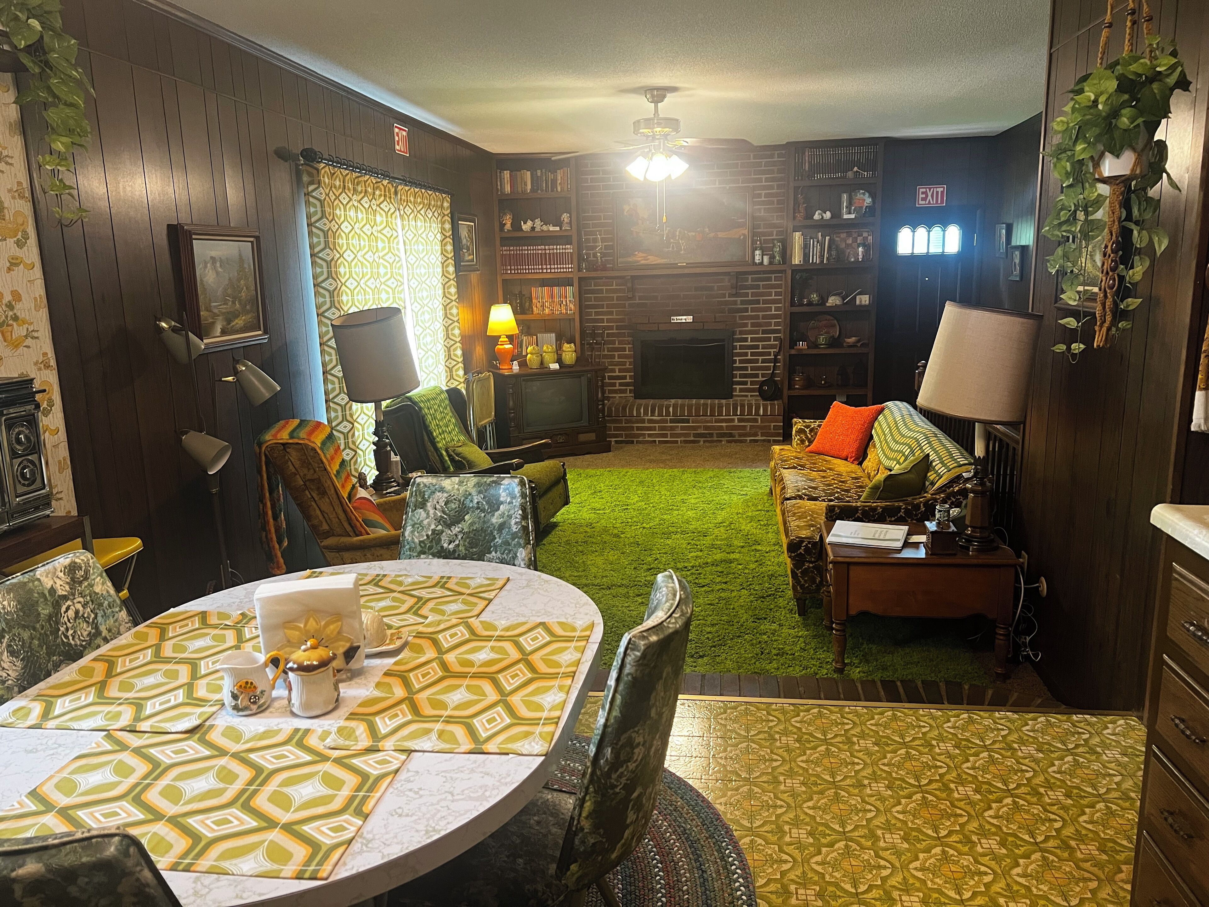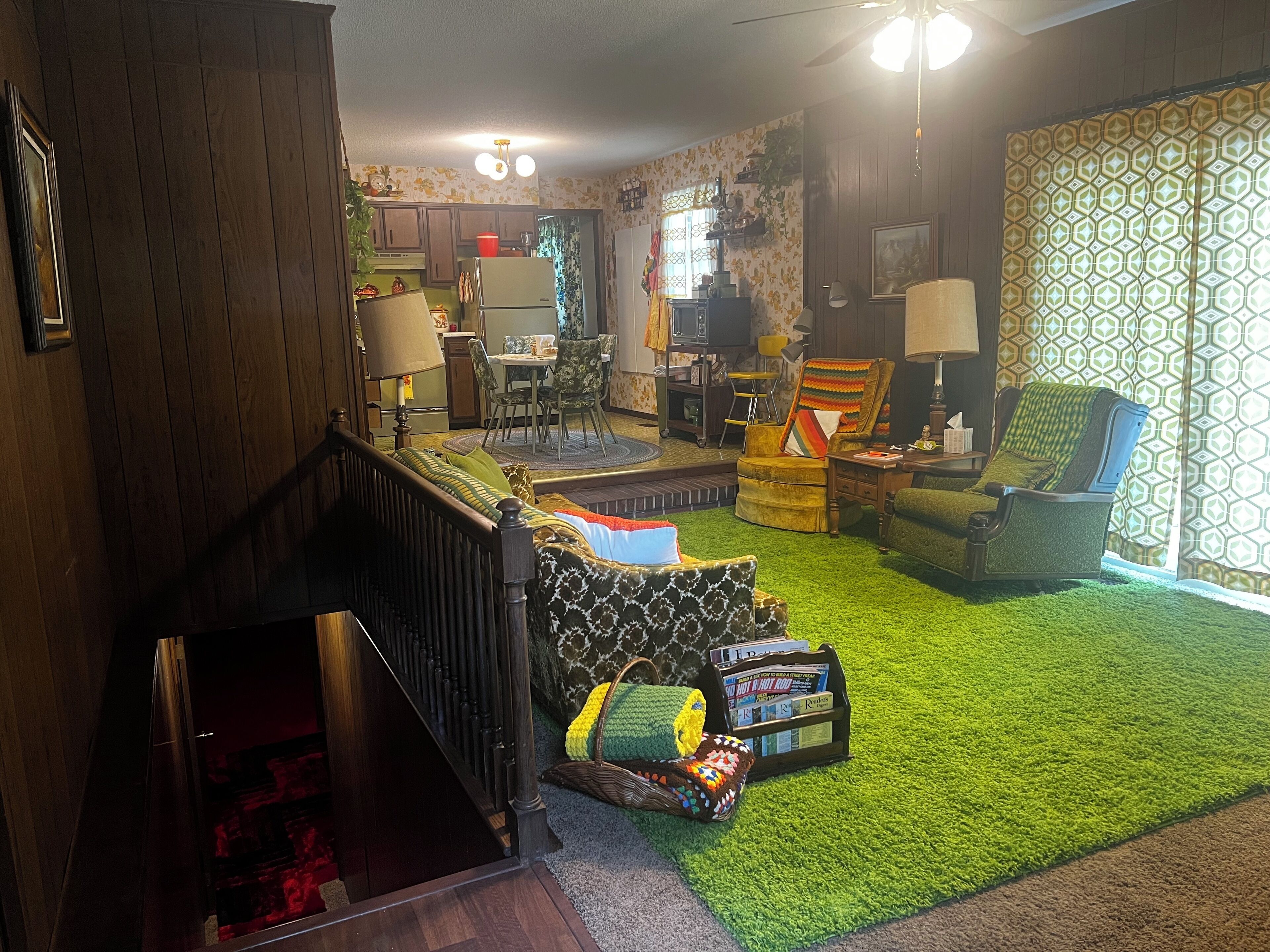 Groovy 1970s Home in central Indiana with basement full of entertainment! Take it easy at this unique and tranquil getaway. Decked out in 1970's style, just like the house your parents or grandparents had! You'll have plenty to do in the home, situated on 1-acre in the heart of central Indiana, with a fully finished basement complete with arcade games and a dance floor! Let this home take you back while you reminisce about your childhood and enjoy all the retro decor.Each room has been meticulously decorated with authentic 1970s decor, much of it original to the home:Master bedroom - includes all the original furniture and original royal blue curtains, a new Sealy mattress, high thread-count sheets, and has an attached master bathroom with beautiful original baby-blue fixtures. Includes plush bath towels and soaps.Second bedroom - decked out in purple to match the original purple shag carpet and purple curtains, includes a queen bed and vintage furniture and decor from Florida.We have even included some vintage 1970s clothing in the closet, if you want to dress up and do your own photo session!Third bedroom - with a custom painted mushroom mural on the focal wall, this bedroom includes 2 twin beds, which could be moved together for a king bed, if that better fits your needs. This room includes the original yellow and green shag carpet.Down the hall, you will find a linen closet, stocked with toilet paper and extra towels, as well as the hall bath, which includes the original avacado green fixtures.The formal dining room is decorated with the original floral curtains and all original dining room furniture, along with vintage dishes. Furniture in the formal living room is original and includes a vintage TV/Radio/Record player, along with an organ and the original curtains and sculpted carpeting.The kitchen is fully stocked with everything you would need to cook a meal, and boasts an avacado green refrigerator and stove, along with a matching sink. (note: dishwasher is non-functioning). There is a crockpot, functional vintage microwave, and booster seat for the little one.Family room is cozy and retro, including a console TV, which works and is hooked to satellite service. There is a sliding patio door which opens up to the back patio with retro patio furniture, and a peaceful and large back yard.Basement includes the original red shag carpet, and in addition to a bar area and a cozy sitting area, there is a dance floor which has a table for a gaming area, a cabinet full of retro games, a ping-pong table, fooseball table, air hockey table, vintage bowling machine, pool table, skee-ball machine and an arcade game. There is also a laundry room in the basement, which includes a vintage harvest gold washer and dryer.Guests who stay here will be taken back to the 1970s, to a simpler time. Please note, many of the items in this home are original to the home, and most items are vintage, therefore guests should understand items in the home are not always in new condition.ABOUT THE AREA:-7 minutes (4 miles) to Carmel Arts & Design District (restaurants, shopping, Monon trail)-7 minutes (3.8 miles) to Spencer Farm & Winery (u-pick and farm store and winery)-7 minutes (3.8 miles) to Midland Trace Trail-8 minutes (4.9 miles) to White River Canoe Company (canoe, kayak and tube rentals)-11 minutes (5 miles) to Connor Prairie-12 minutes (6.3 miles) to the Noblesville Square (ghost tours, restaurants, shopping)-16 minutes (9 miles) to Morse Lake Marina (pontoon rentals)-18 minutes (10 miles) to Grand Park-22 minutes (12 miles) to Geist Lake Marina (pontoon rentals)-25 minutes (17 miles) to Fort Harrison State Park-34 minutes (28 miles) to the Indianapolis Motor Speedway-34 minutes (26 miles) to downtown Indianapolis-36 minutes (35 miles) to Indianapolis International AirportWithin a 1.5 mile radius of the home, there is a grocery store, gas station, Starbucks, Rose & Lois, and at least 9 restaurants.Don't forget to visit the local Farmer's Markets in Noblesville, Fishers and Carmel on Saturdays, and in Westfield on Thursday evenings!