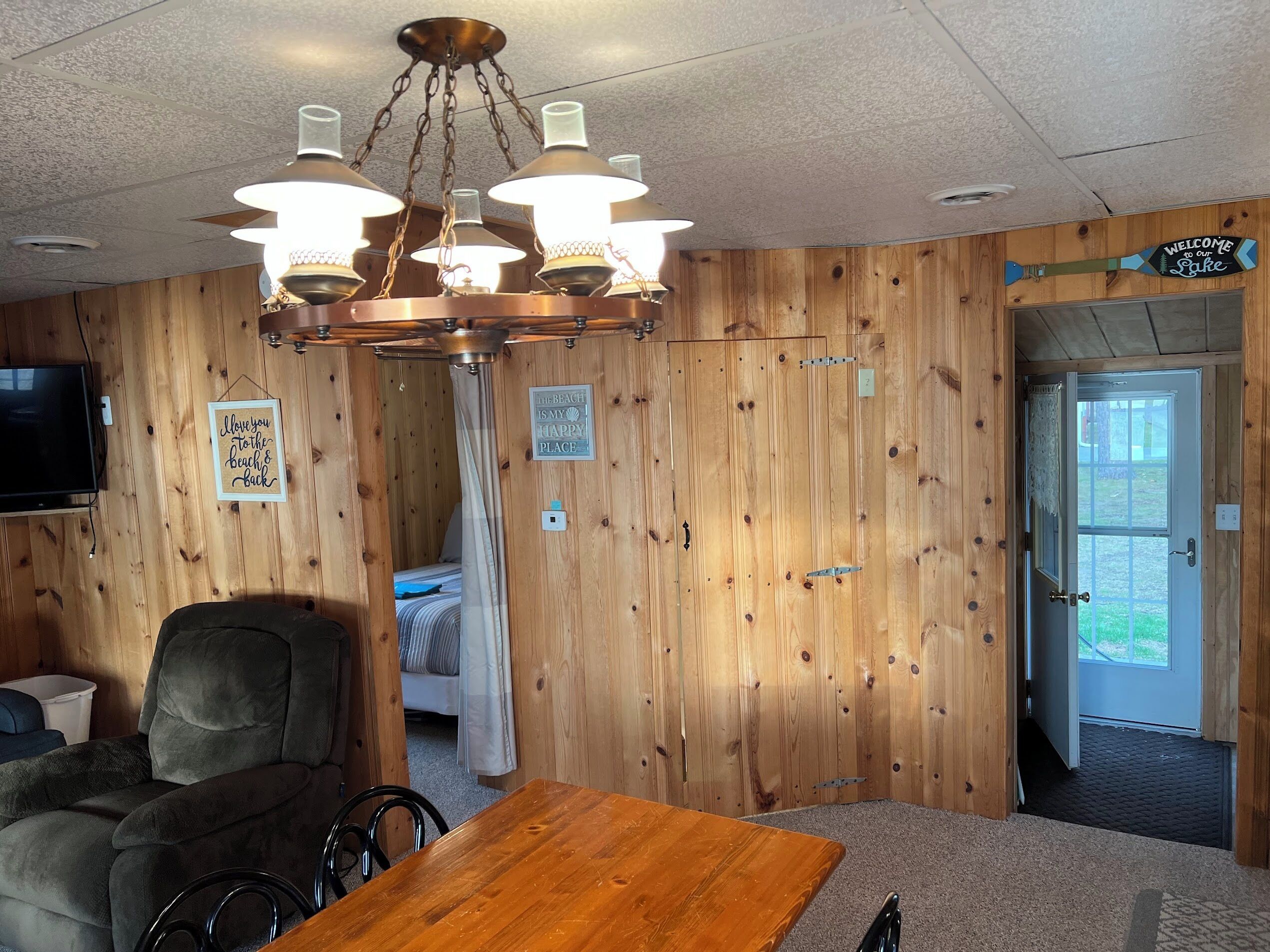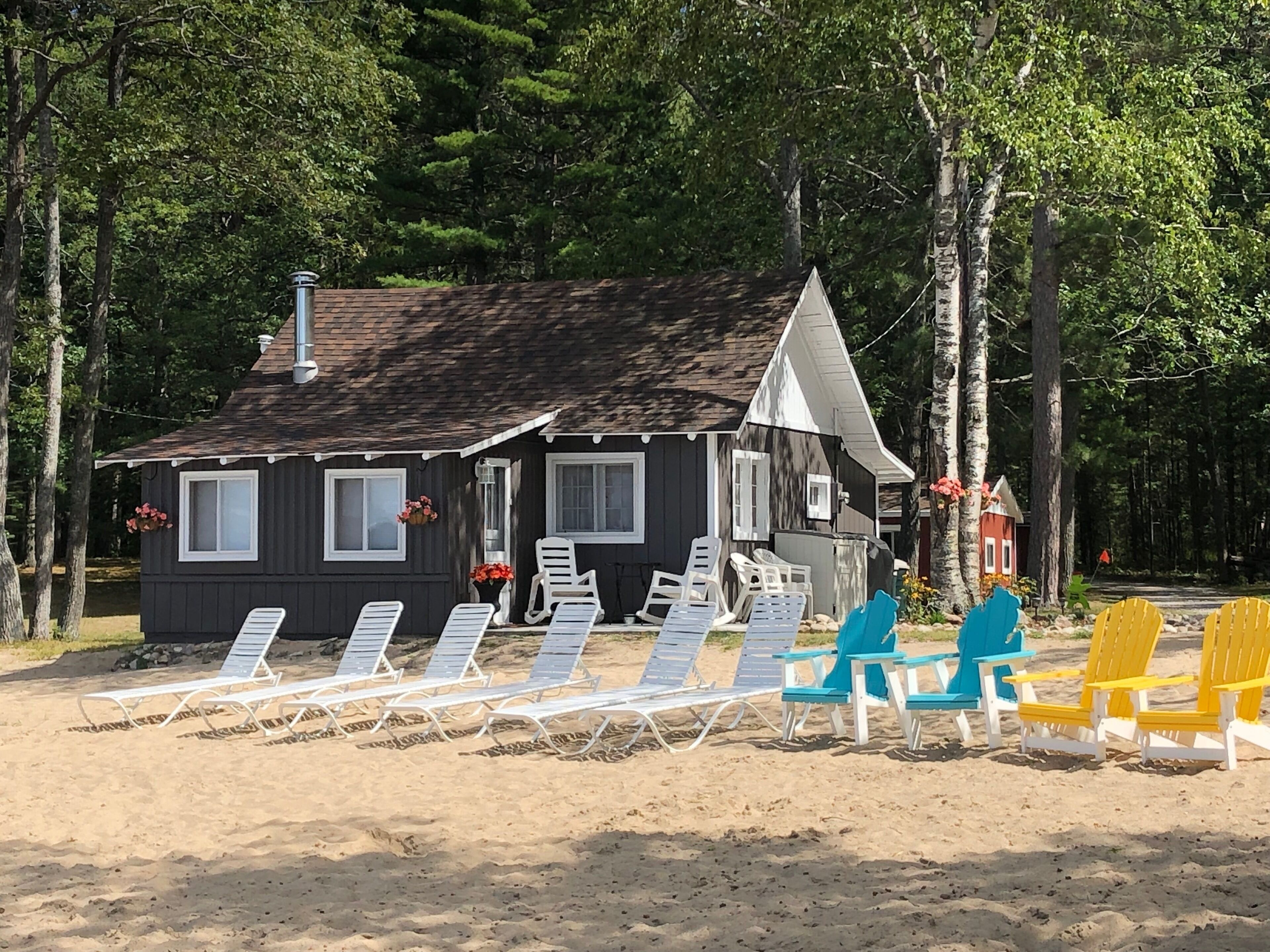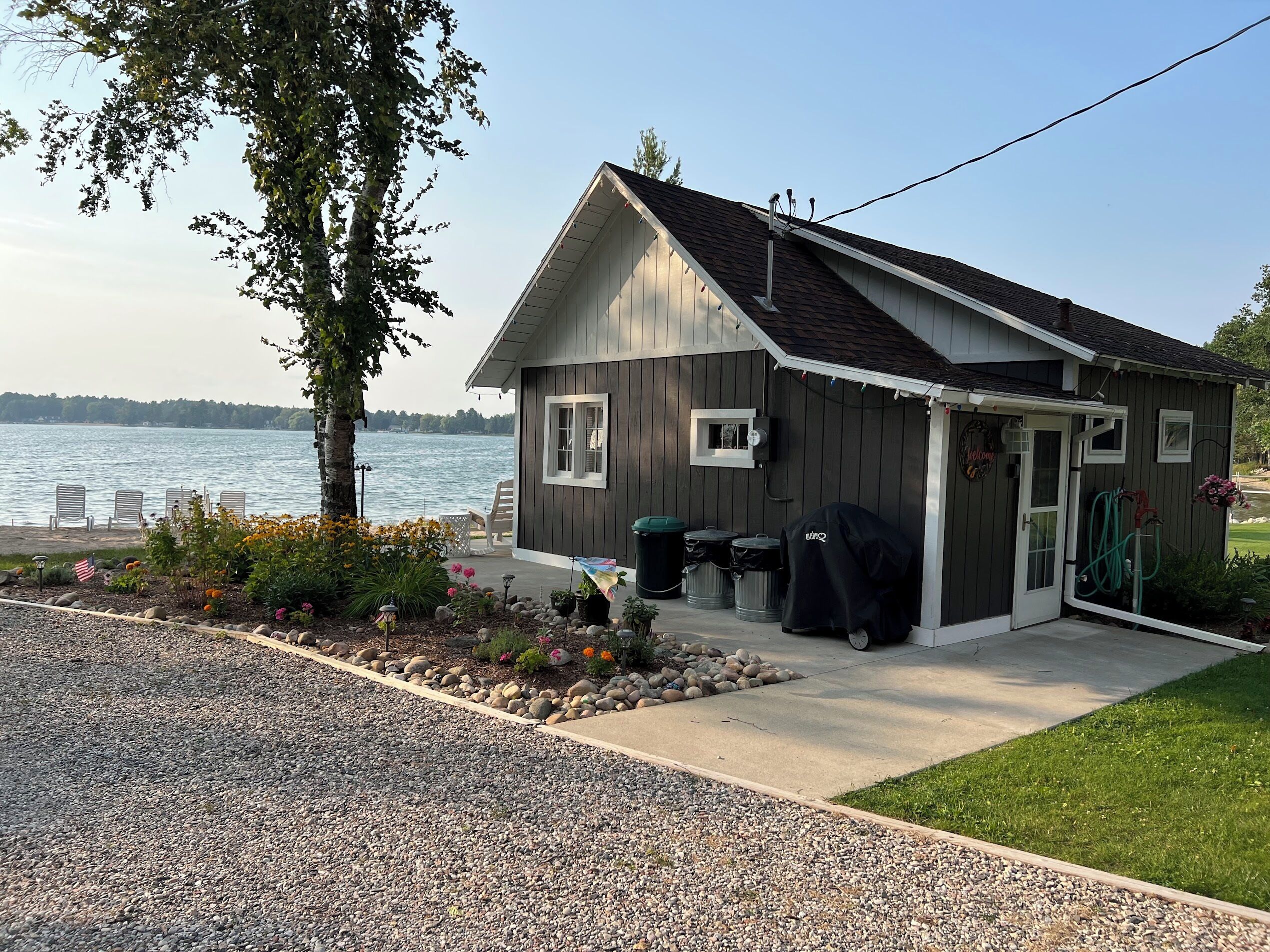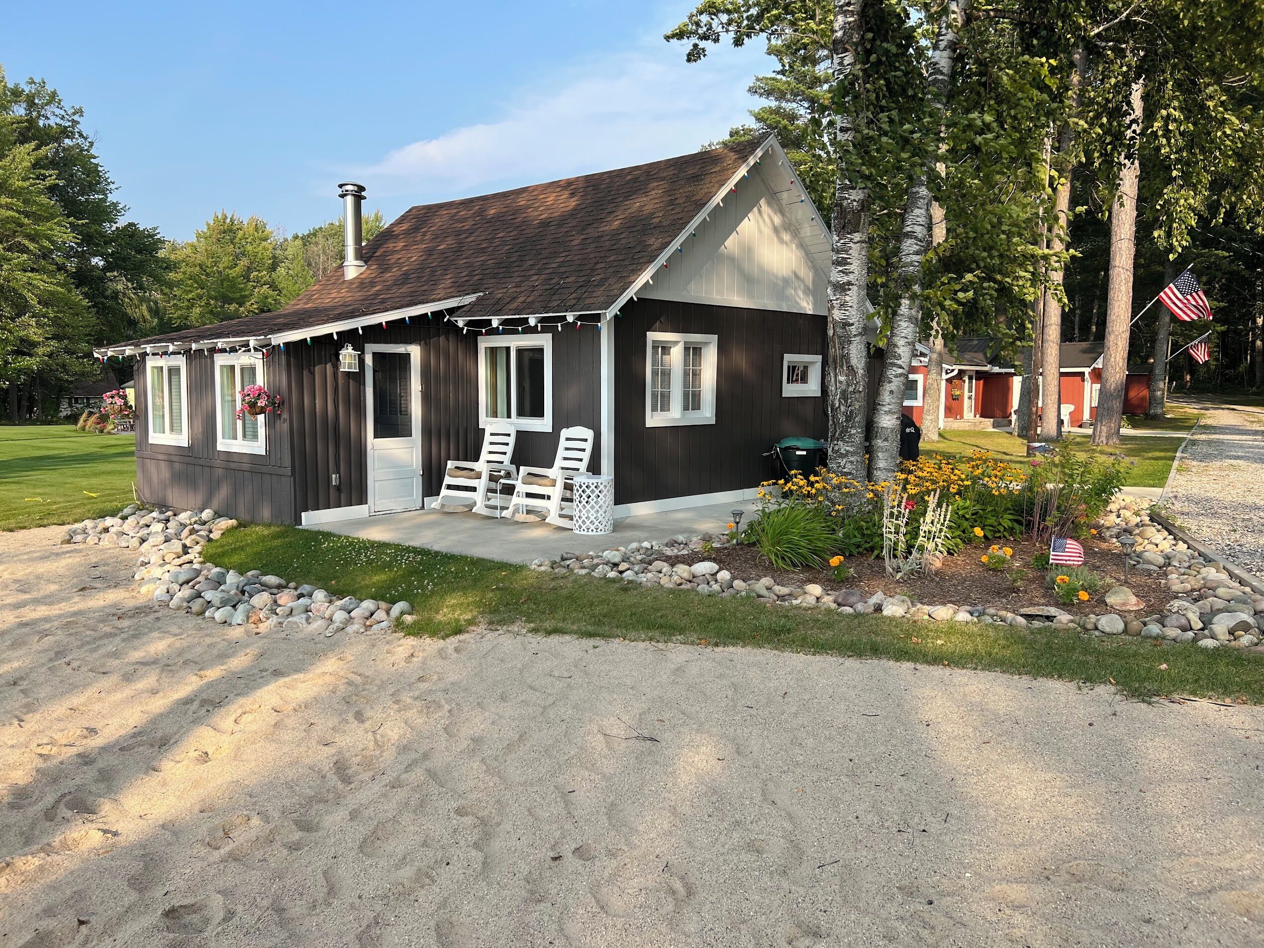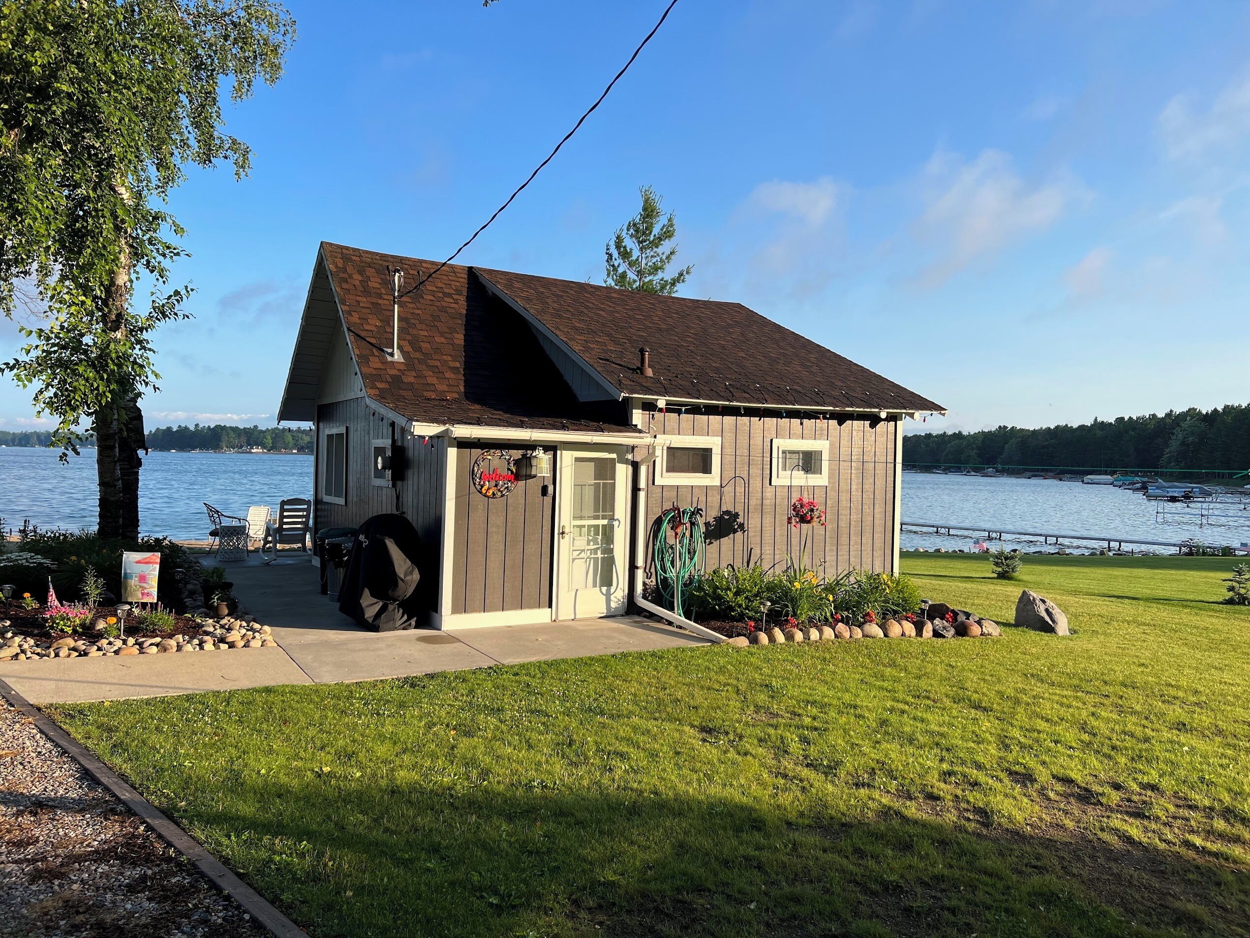Escape to Paradise! Holiday House is located on the East side of East Twin Lake ( all sports lake) in Northern Michigan. Stay in a charming cabin just steps away from the lake. The cabin is decorated with warmth & charm. Sun bathe on the sandy beach, fish off the dock or bring your own boat. Sink a line and catch perch, bass, walleye, pike or blue gill. Most stunning sunsets you will ever enjoy, sitting around your private bon fire pit or private cement patio.1Bedroom full bed & 32" Led Smart TV ceiling fan. Living room: With sofa that coverts to a queen air mattress, love seat turns into a single memory foam bed 50" LED Smart TV and DVD player. Kitchen: Refrig., stove, microwave, toaster over, Keurig coffee maker, dishes, pots & pans - Propane gas grille. Bathroom: Stand up shower.Outside grounds: Bistro table and chairs, private patio, private fire ring, lounge chairs and beach toys for the kids.We have strict safety and cleaning practices at the Holiday House.