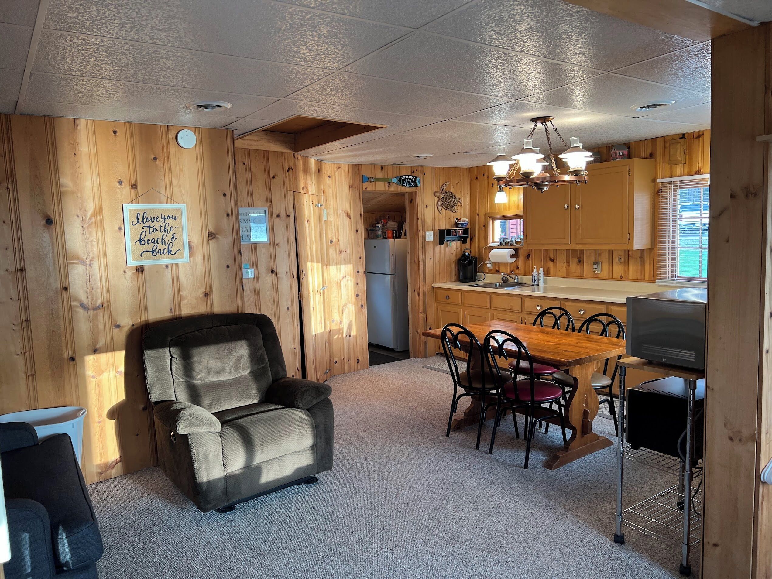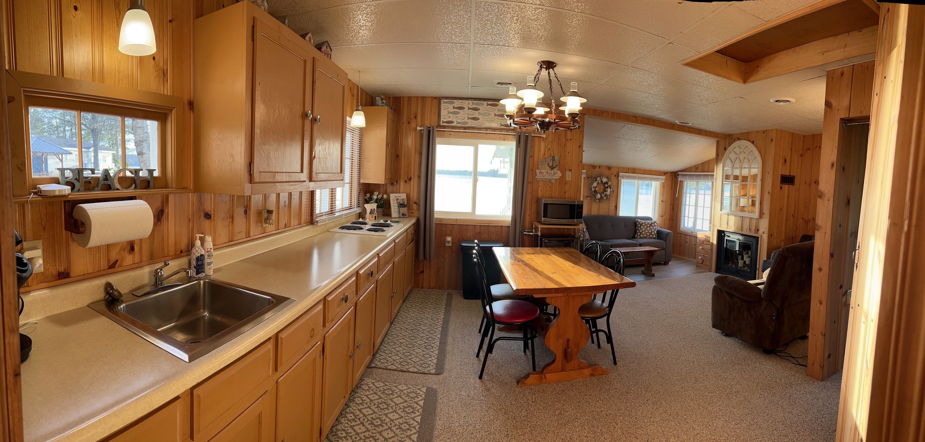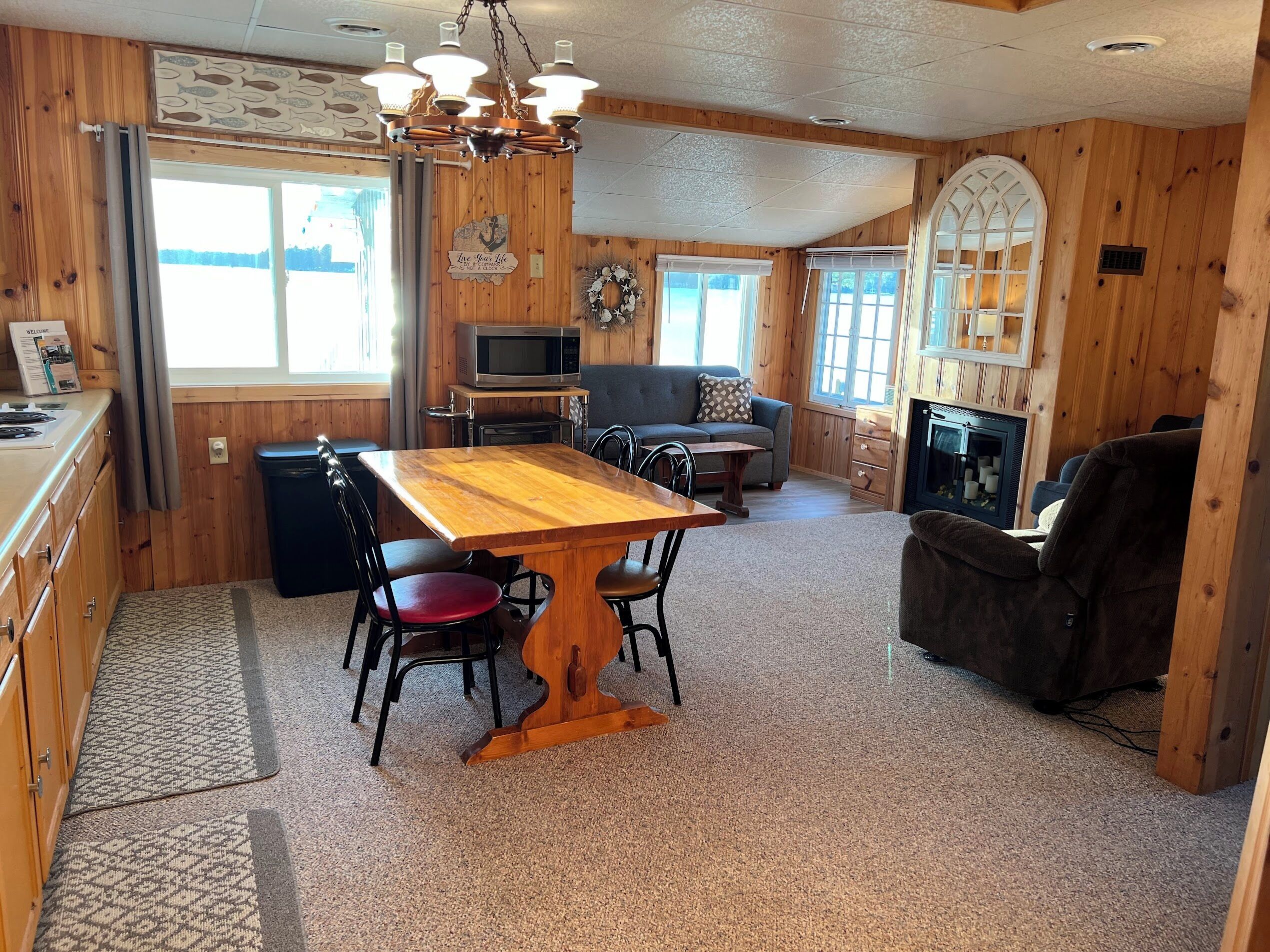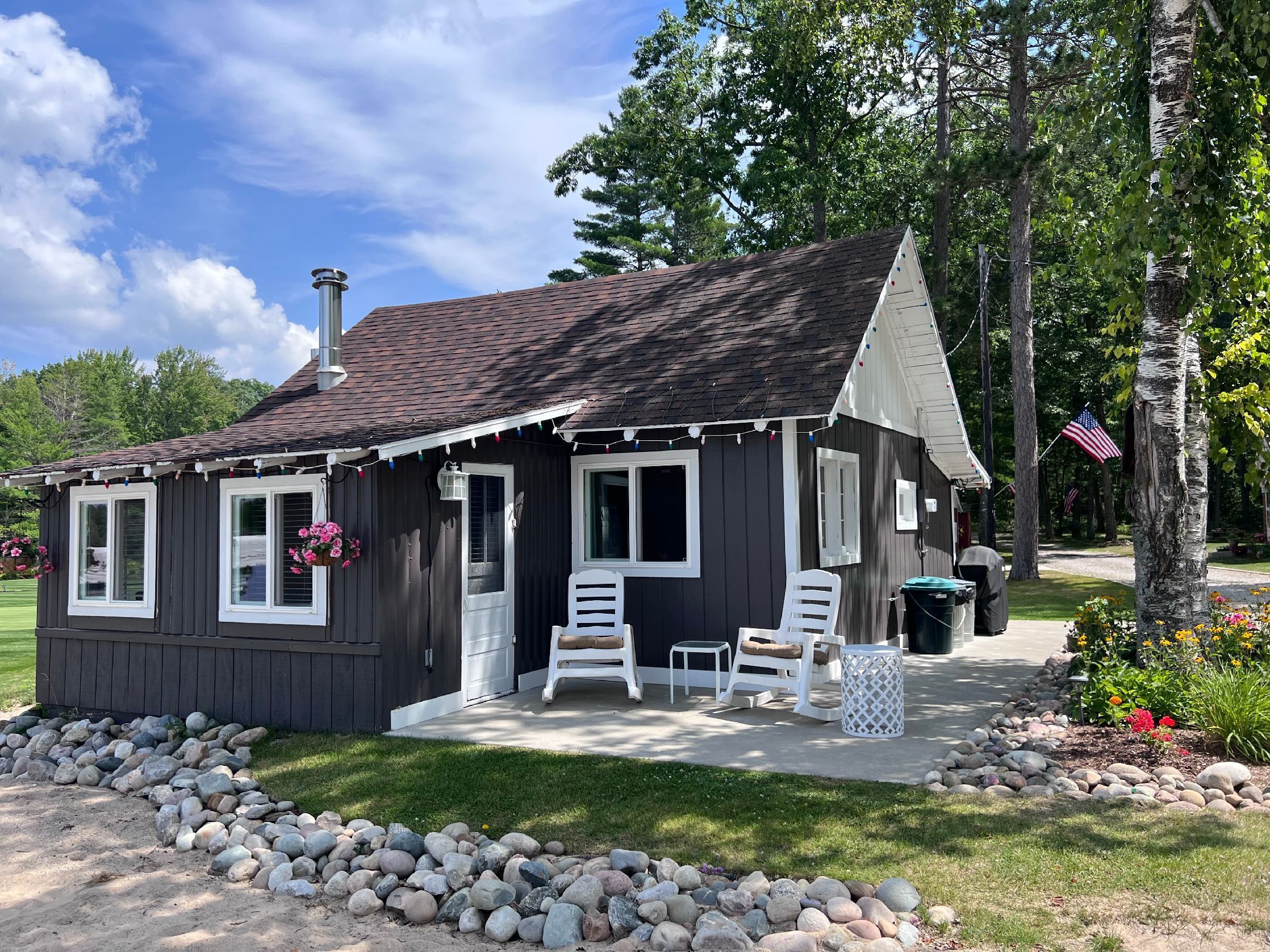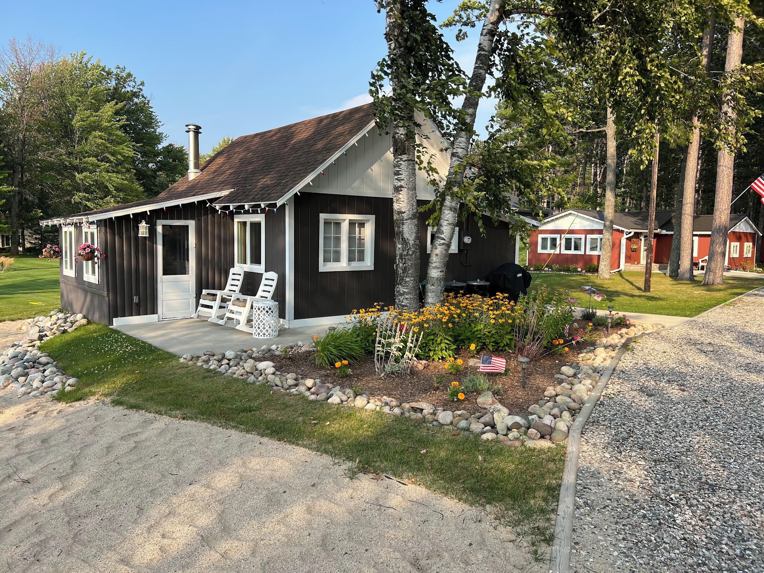 Escape to Paradise! Holiday House is located on the East side of East Twin Lake ( all sports lake) in Northern Michigan. Stay in a charming cabin just steps away from the lake. The cabin is decorated with warmth & charm. Sun bathe on the sandy beach, fish off the dock or bring your own boat. Sink a line and catch perch, bass, walleye, pike or blue gill. Most stunning sunsets you will ever enjoy, sitting around your private bon fire pit or private cement patio.1Bedroom full bed & 32" Led Smart TV ceiling fan. Living room: With sofa that coverts to a queen air mattress, love seat turns into a single memory foam bed 50" LED Smart TV and DVD player. Kitchen: Refrig., stove, microwave, toaster over, Keurig coffee maker, dishes, pots & pans - Propane gas grille. Bathroom: Stand up shower.Outside grounds: Bistro table and chairs, private patio, private fire ring, lounge chairs and beach toys for the kids.We have strict safety and cleaning practices at the Holiday House.