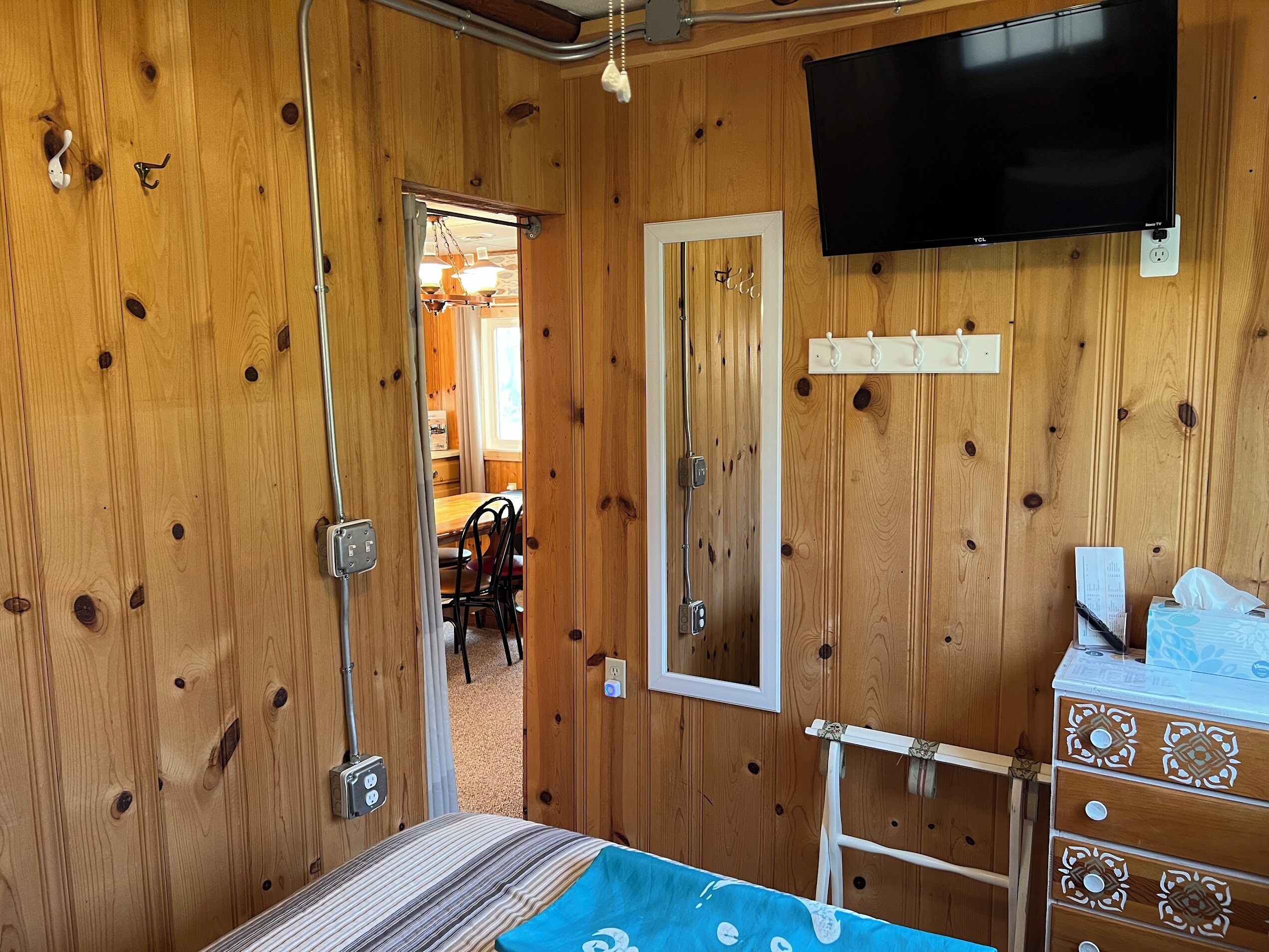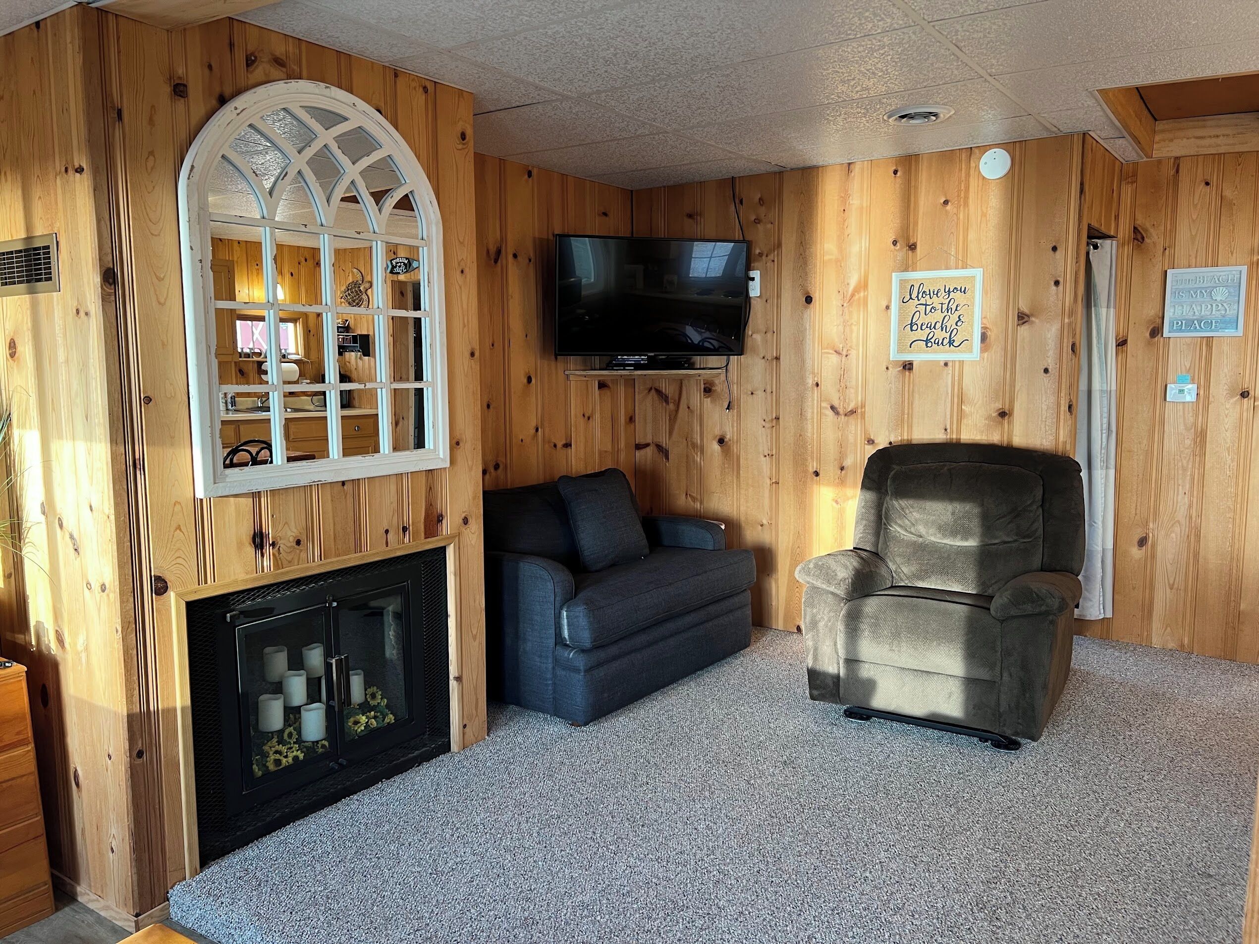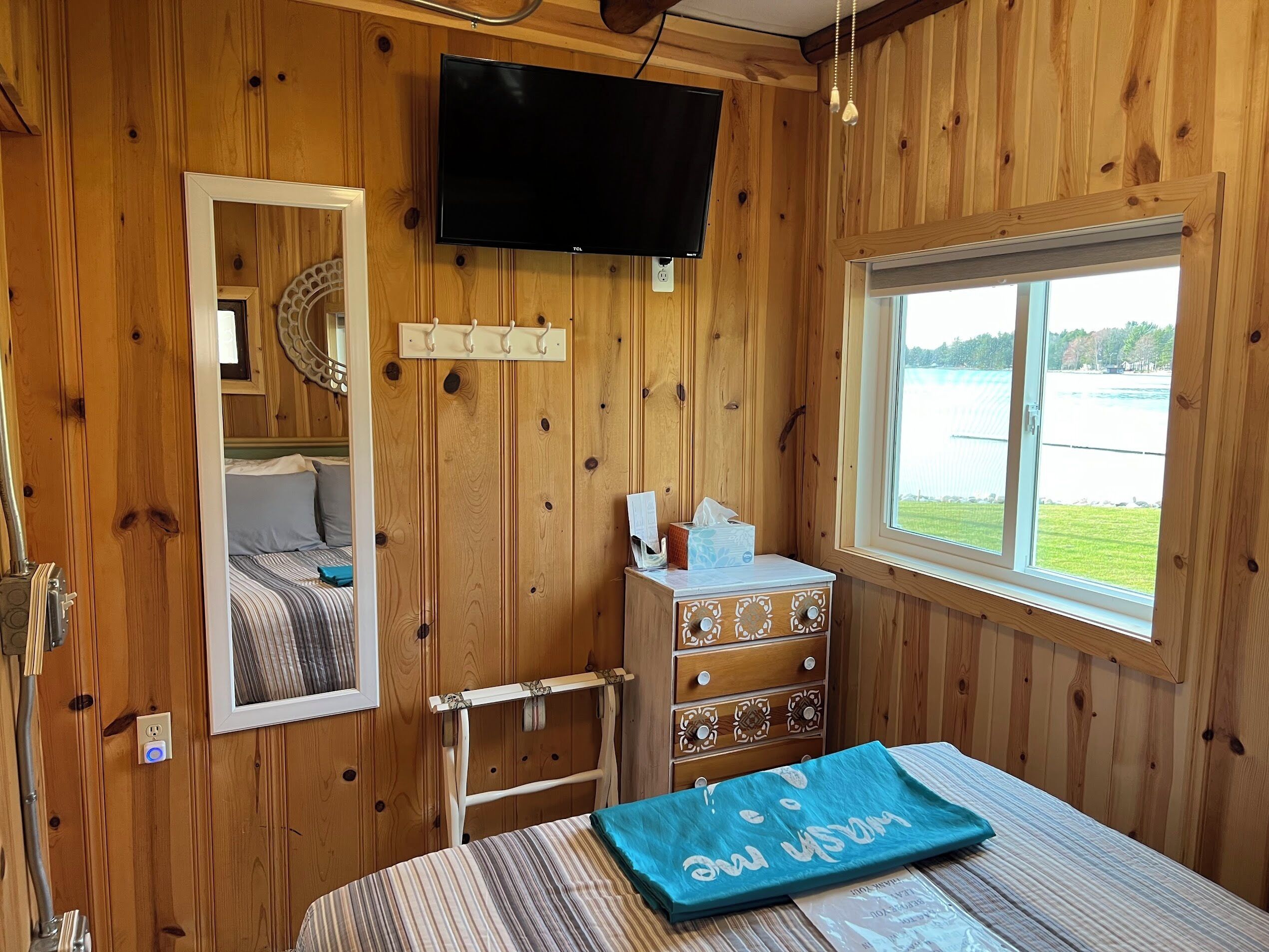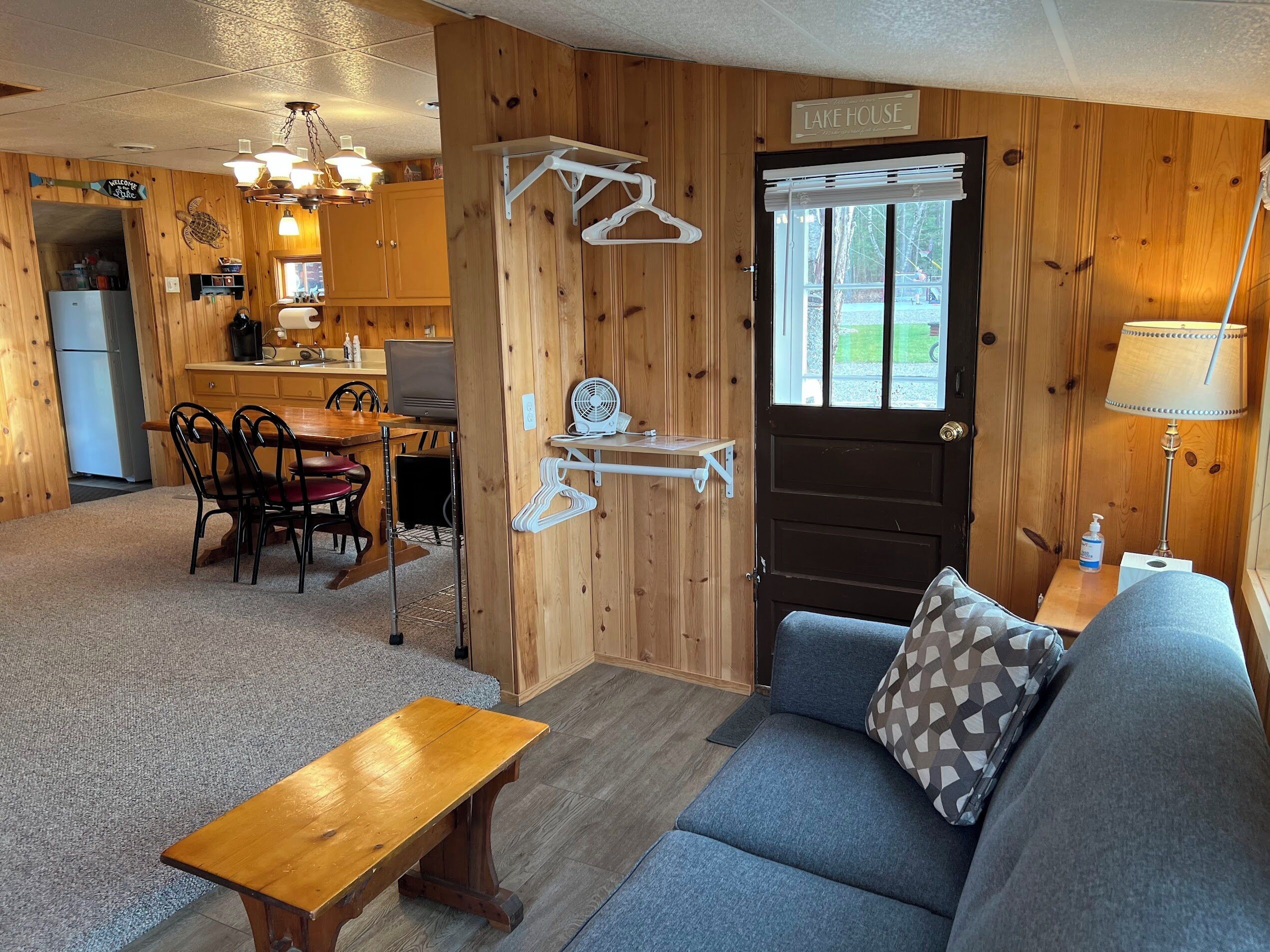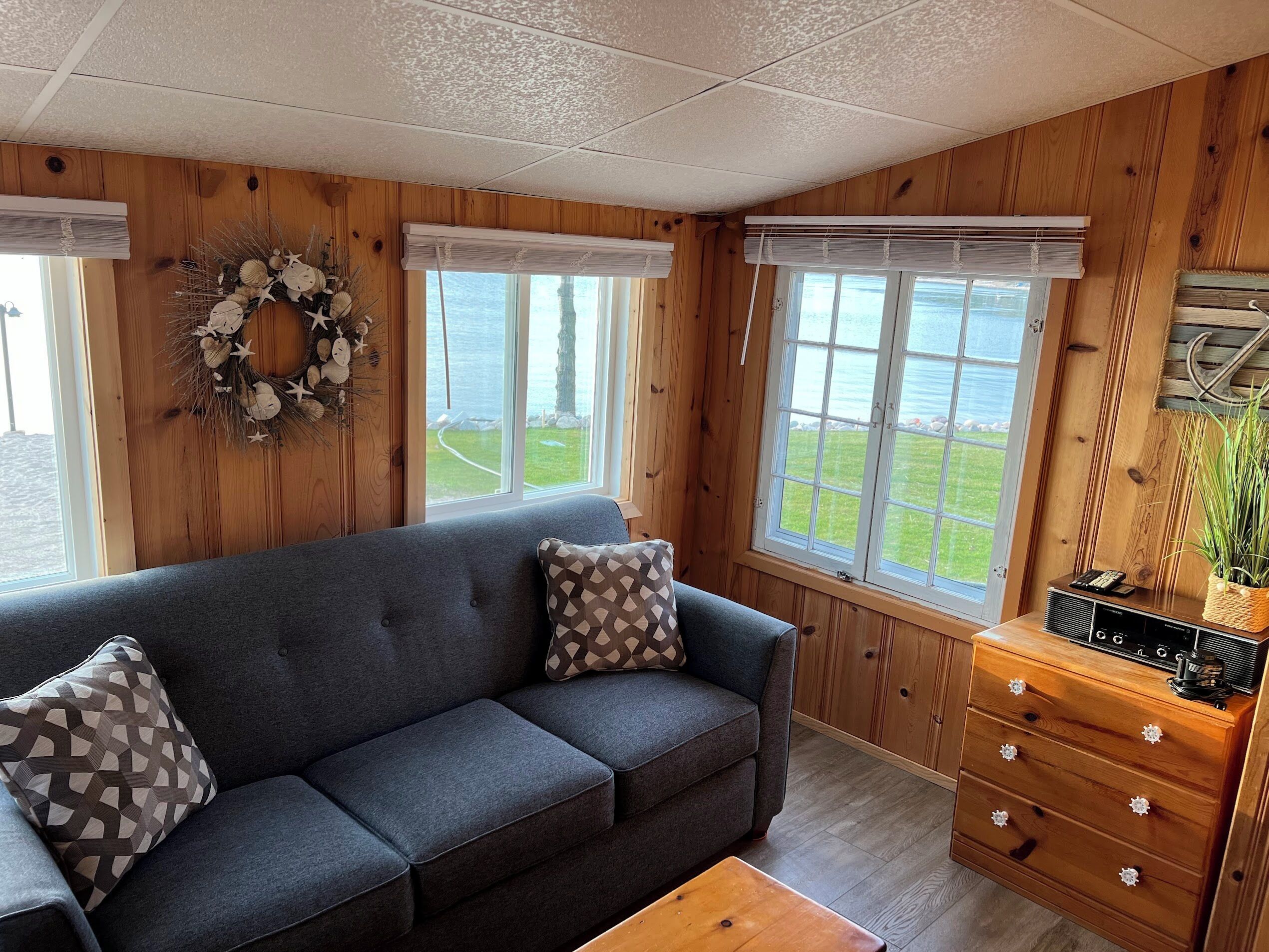 Escape to Paradise! Holiday House is located on the East side of East Twin Lake ( all sports lake) in Northern Michigan. Stay in a charming cabin just steps away from the lake. The cabin is decorated with warmth & charm. Sun bathe on the sandy beach, fish off the dock or bring your own boat. Sink a line and catch perch, bass, walleye, pike or blue gill. Most stunning sunsets you will ever enjoy, sitting around your private bon fire pit or private cement patio.1Bedroom full bed & 32" Led Smart TV ceiling fan. Living room: With sofa that coverts to a queen air mattress, love seat turns into a single memory foam bed 50" LED Smart TV and DVD player. Kitchen: Refrig., stove, microwave, toaster over, Keurig coffee maker, dishes, pots & pans - Propane gas grille. Bathroom: Stand up shower.Outside grounds: Bistro table and chairs, private patio, private fire ring, lounge chairs and beach toys for the kids.We have strict safety and cleaning practices at the Holiday House.