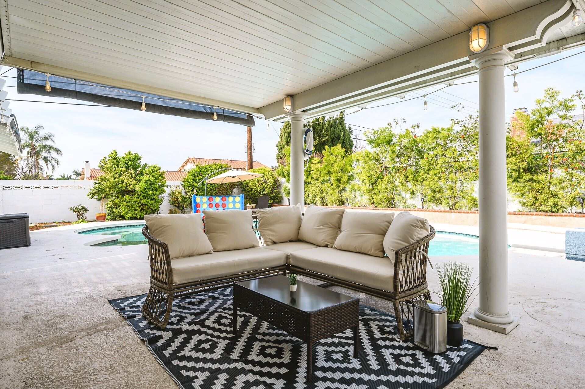 4BR Mins to Disney, Pool & Arcade Lux Retreat Centrally located just minutes from Disney, Knotts Berry Farm, and many restaurants waiting for you to enjoy!The open living spaces are made for entertaining with a pool table, a fun Insta wall, many board games, a foosball table, and an arcade machine – then step outside into the yard with a huge pool, alfresco dining, a BBQ, and even a basketball court.★15 mins to Disney★10 mins to Knotts Berry Farm★17 mins from the airport★3 mins to lots of restaurants★3 mins from the freeway