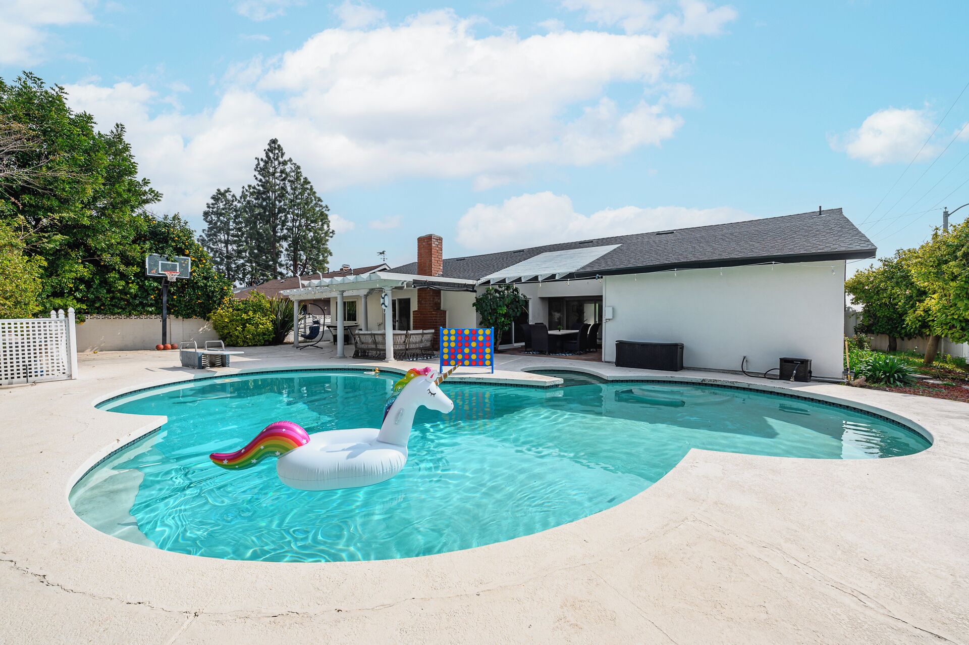 4BR Mins to Disney, Pool & Arcade Lux Retreat Centrally located just minutes from Disney, Knotts Berry Farm, and many restaurants waiting for you to enjoy!The open living spaces are made for entertaining with a pool table, a fun Insta wall, many board games, a foosball table, and an arcade machine – then step outside into the yard with a huge pool, alfresco dining, a BBQ, and even a basketball cou...