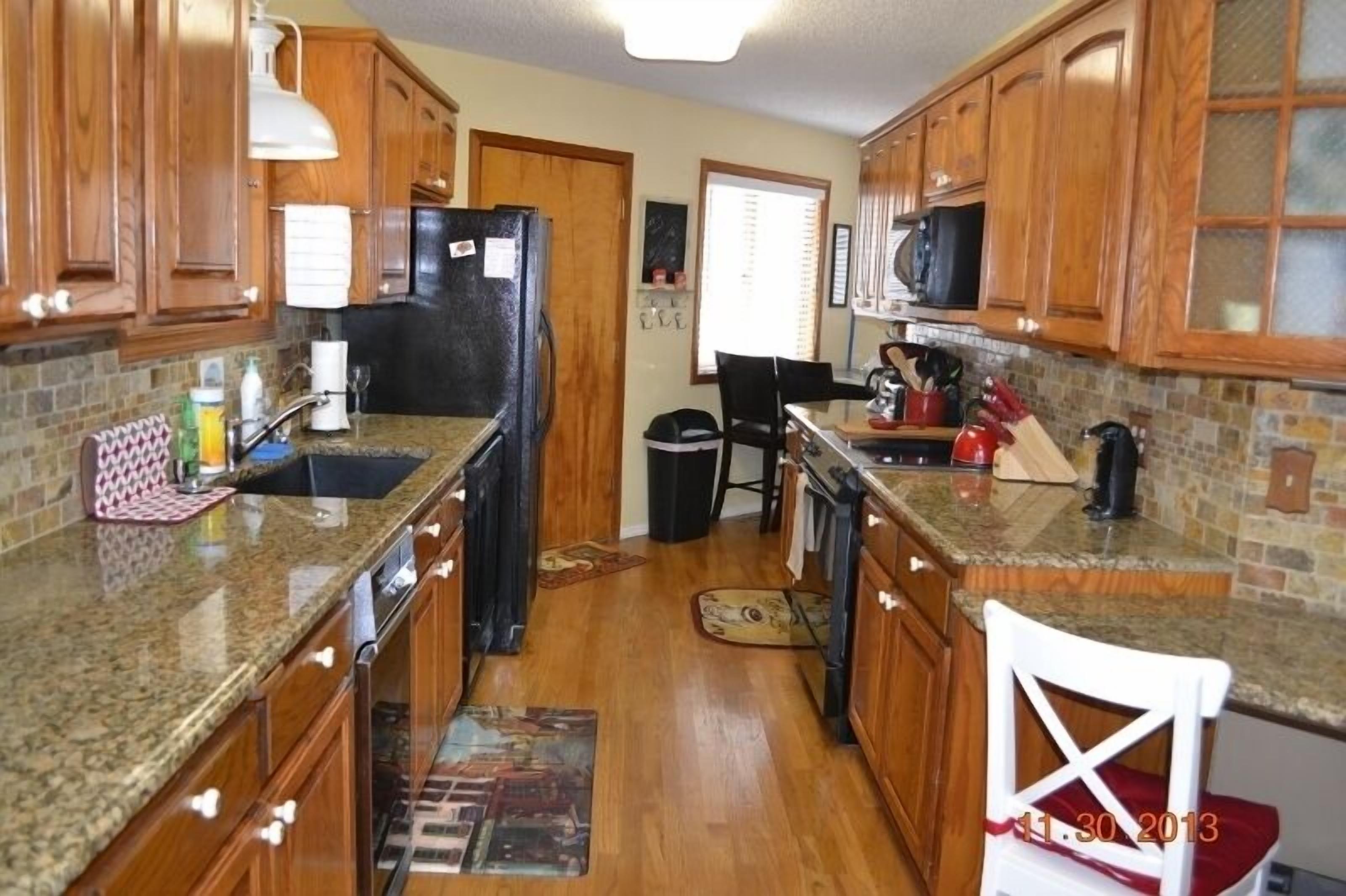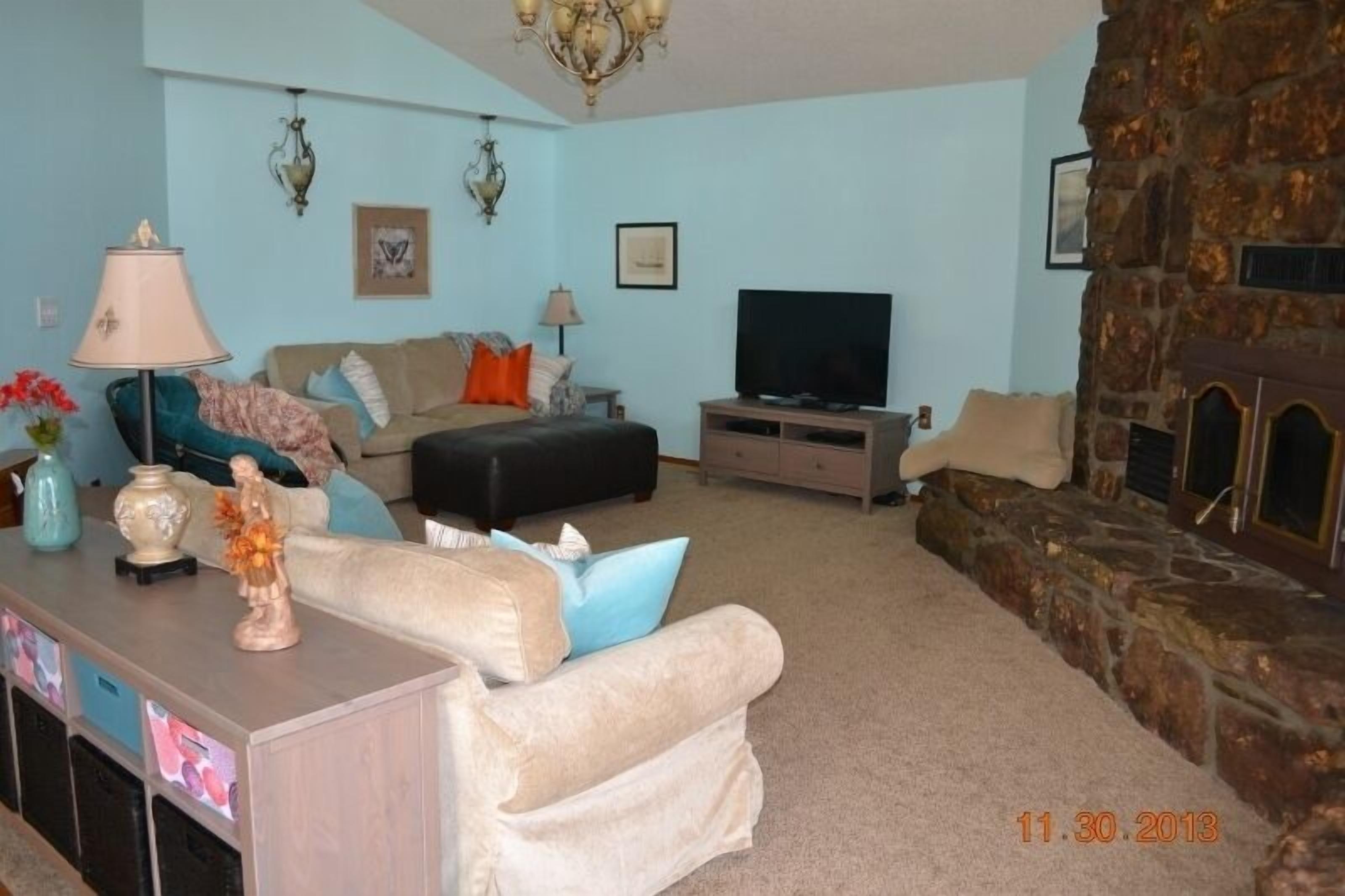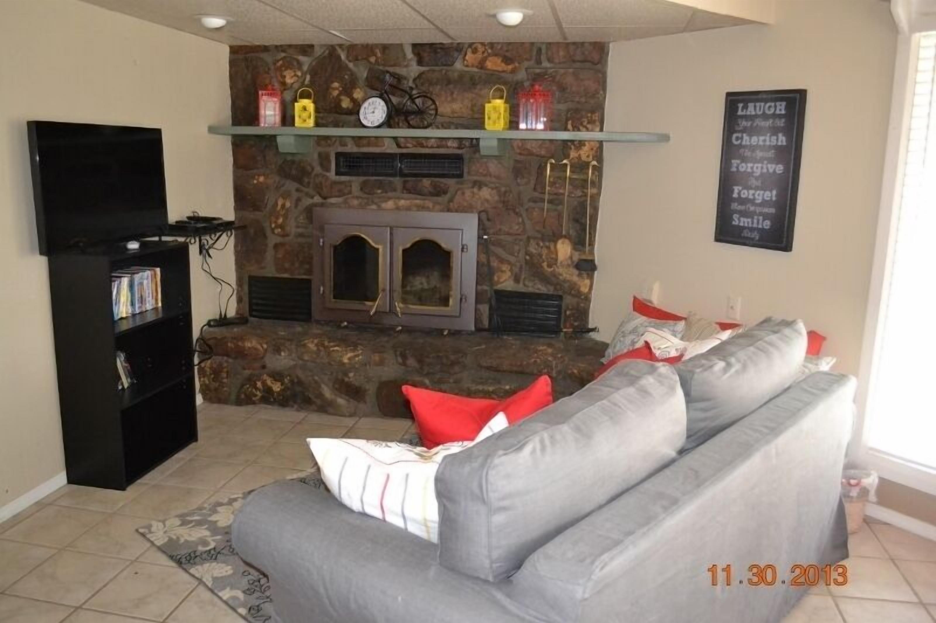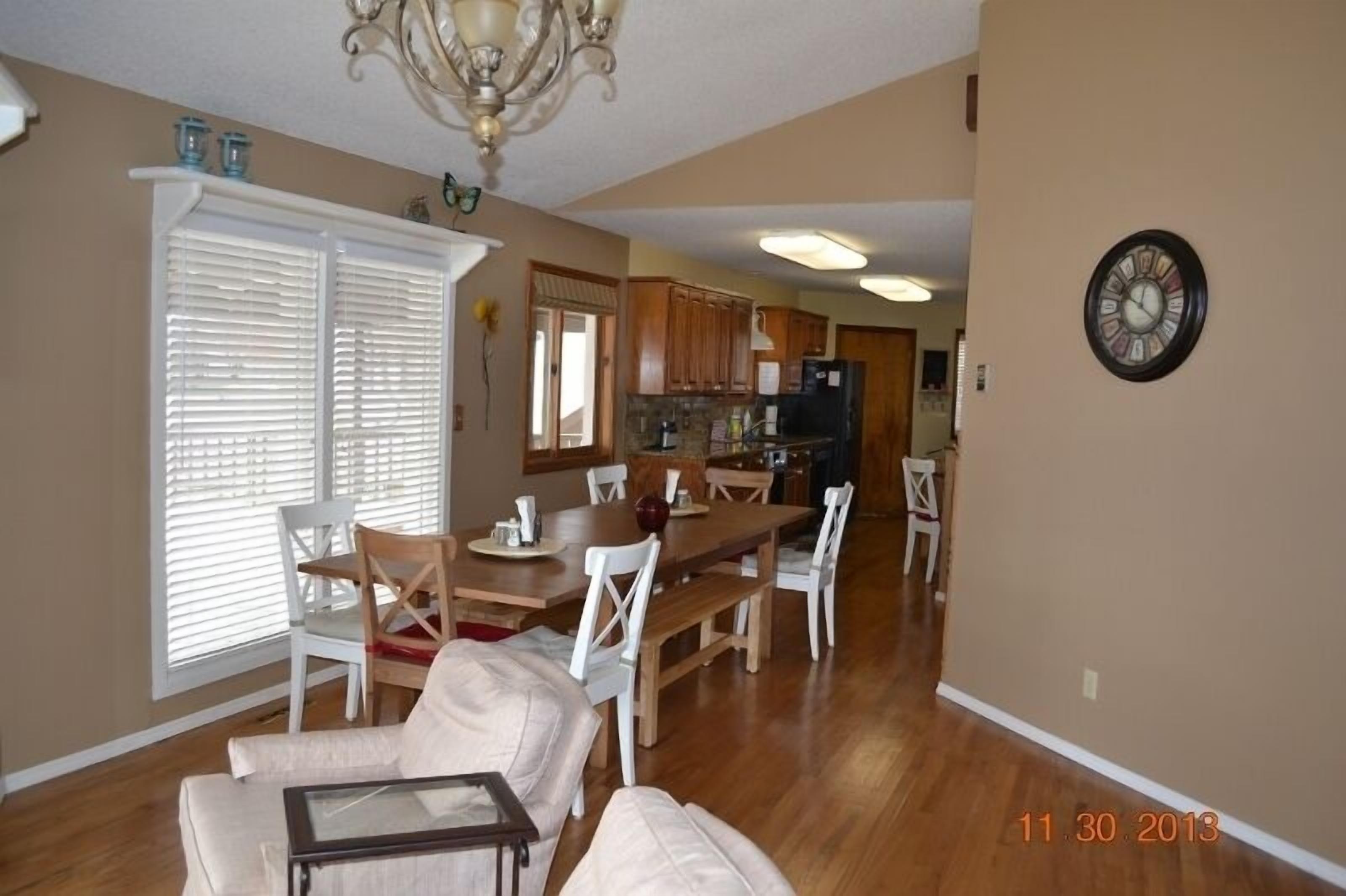 Family-Friendly Lakefront Home w/ Large Yard & Boat Dock-Sleeps 14+kids under 6 City of Grove VRH Permit 15-202. Freshly updated, cozy and friendly 5 bedroom 4.5 bathroom lakefront home. This beautiful home is on a large lot with parking available for 5-6 cars. Perfect large yard for family games of volleyball and badminton with a gentle slope to the water. Basketball hoop and outdoor ping pong table are included for guest use. Massive deck area outside of kitchen with picnic tables and separate sitting area with gorgeous lake views. There is a grill available on the downstairs patio. Right across from the downstairs patio is a shed to store all of your water toys and fishing gear. Easy access lighted boat dock with fish cleaning station and one slip available to all renters, second slip available with prior arrangements. Swim dock with ladder and cleats to tie off an additional boat or jet ski. Picture yourself entering from the expansive deck through double glass doors into a large living room with vaulted ceilings and huge windows all around. There is plenty of seating for you and your family or friends to enjoy a movie night on a smart tv (dvd library available) or just a casual evening in front of the fireplace. The dining area easily seats 12, with additional seating in the breakfast nook. Wonderful kitchen with granite countertops and all the necessary conveniences, including dishes and cookware. The pantry area provides additional food storage. Convenient half bath located off of the upstairs hallway. Also, there is an inviting master bedroom with a king bed and a large 3/4 bath and private deck. In addition to the master bedroom there is a cozy suite above the garage just across a covered breezeway. There is a queen bed and a twin size day bed as well as a full bathroom. It is the perfect space for someone who is looking for a little quiet time. Head downstairs to another family room with a tv entertainment area and pool table. Downstairs you will find 3 more bedrooms, each with their own unique decor. As well as 2 full bathrooms. Off of the family room is a large laundry room with brand new, multi-function washer and dryer, and an additional refrigerator. Our home is 5-10 minutes away from Super Wal-mart and all of the other conveniences offered in Grove. Including the Sports Center on Main street, several restaurants, liquor stores, gas stations, marinas, and grocery stores. It is truly an ideal location both by water and by car.