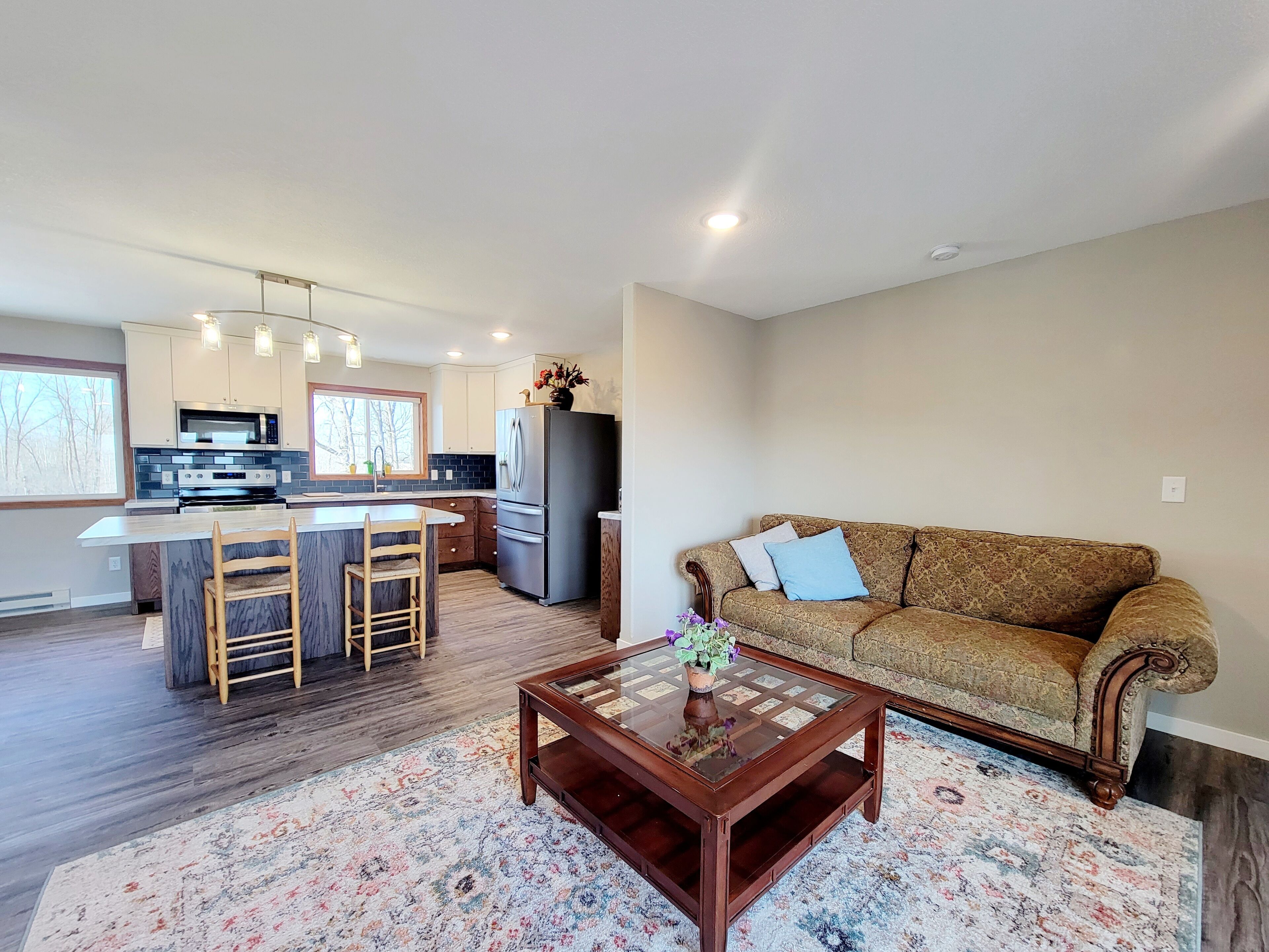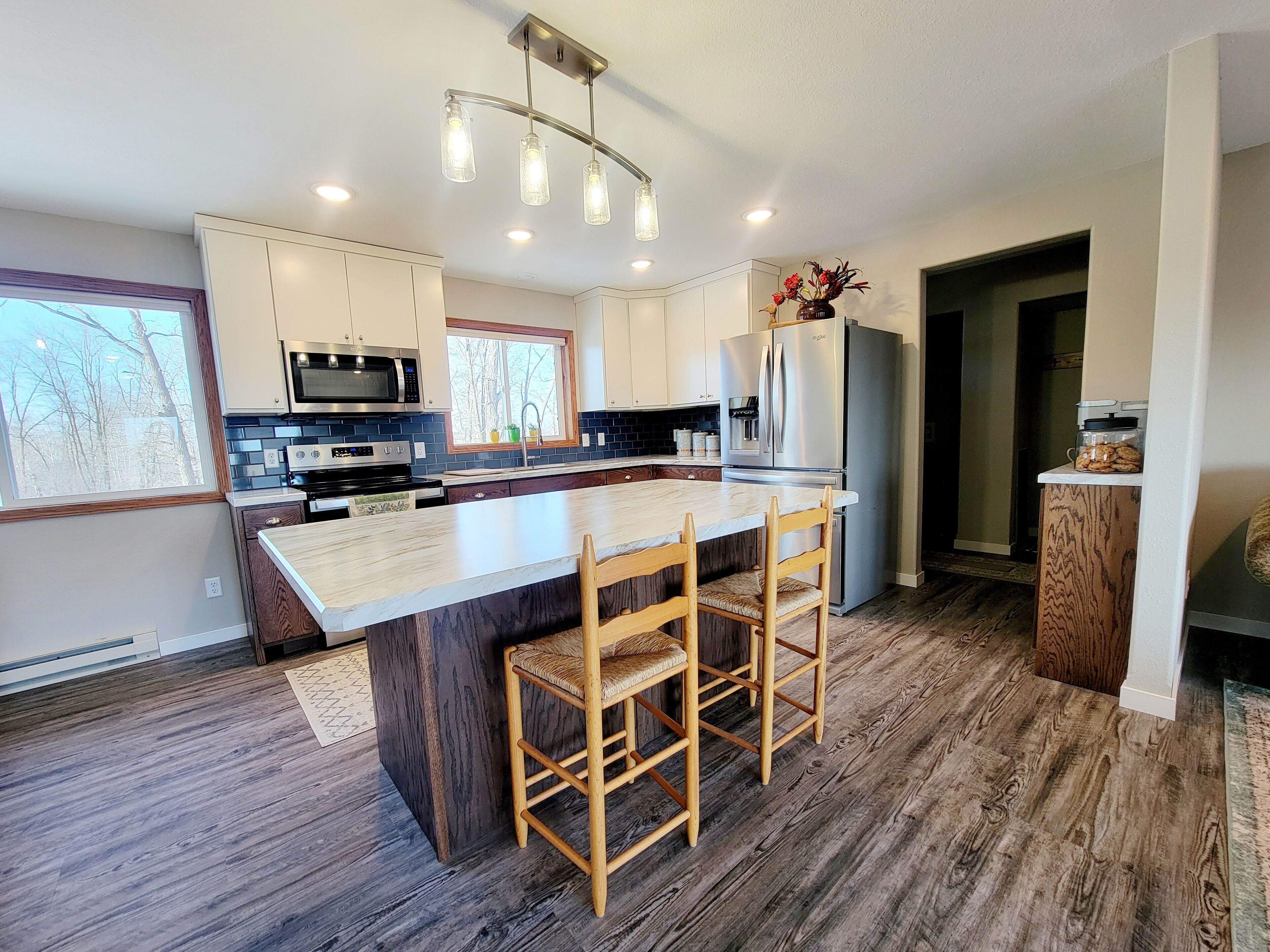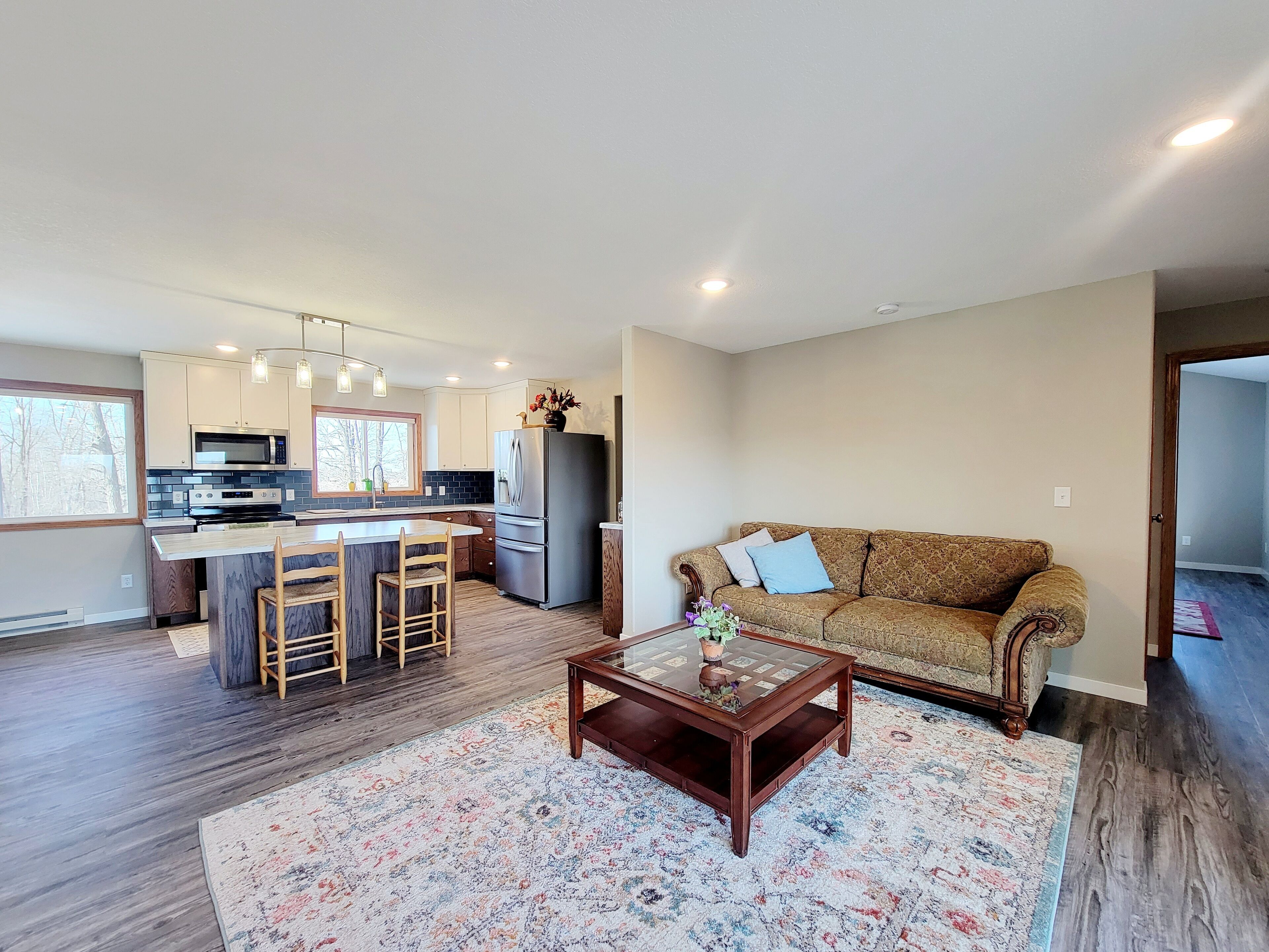 Rush Lake, Lake View retreat. Family size house, spacious parking. Bright and beautiful large house with great lake views, .7 miles to public access, serene country setting with spacious parking. Close to restaurants, churches, lakes and main highways. Open floor plan, new kitchen, 3 bedrooms, 2 bathrooms on main floor, 1 finished bathroom in an unfinished basement with lots of space to play, st...