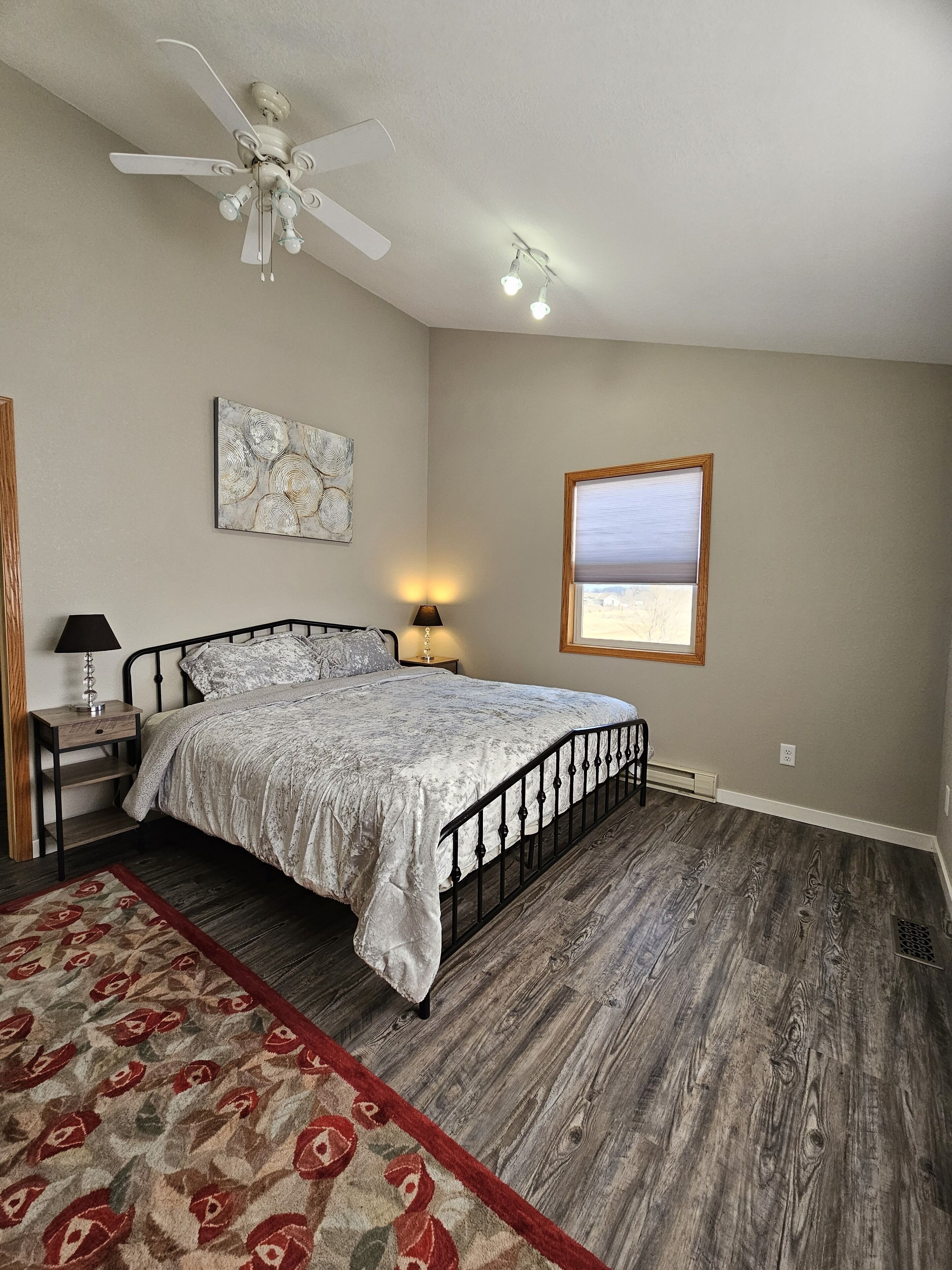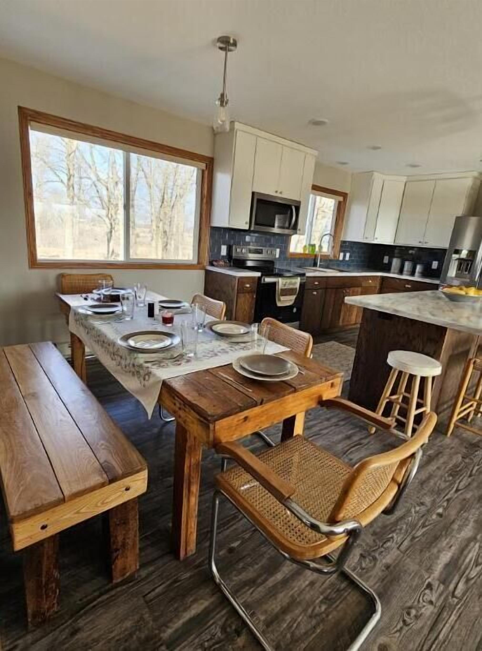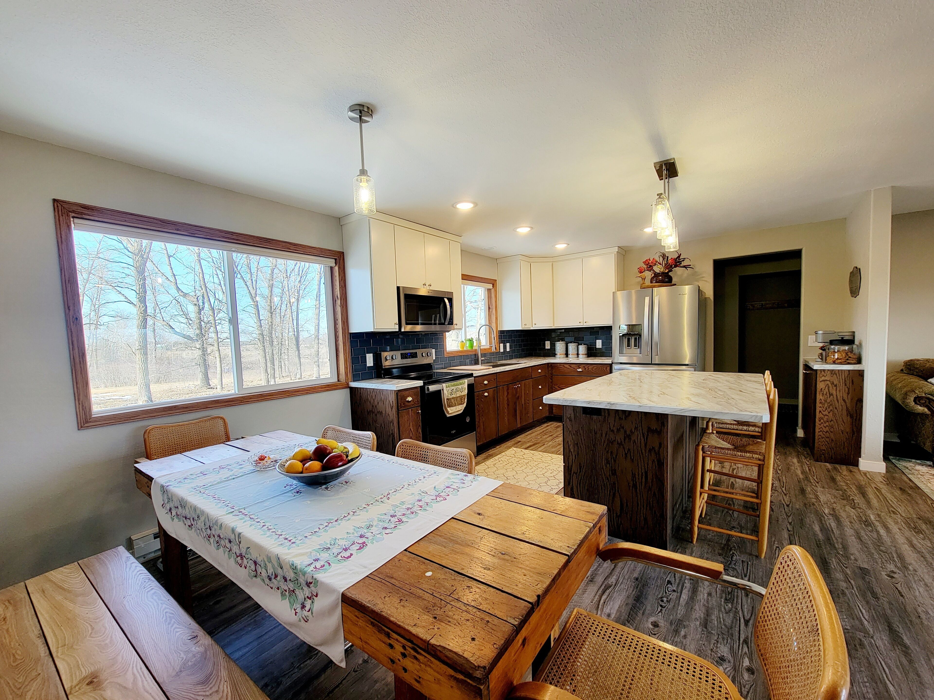Rush Lake, Lake View retreat. Family size house, spacious parking. Bright and beautiful large house with great lake views, .7 miles to public access, serene country setting with spacious parking. Close to restaurants, churches, lakes and main highways. Open floor plan, new kitchen, 3 bedrooms, 2 bathrooms on main floor, 1 finished bathroom in an unfinished basement with lots of space to play, store equipment, or even sleep by adding air beds or mattresses. The master suite is fresh and updated and has a great lake view! Simple, clean and comfortable Close to snowmobile trails and golf courses. Large tv on main floor w WiFi. Seating for 8 for dining. Great area for taking a walk, or launching your boat on Rush Lake or any of the many lakes in this area. We have excellent choices for dining and entertainment in this area. This property is not lakeside but set back with great views!