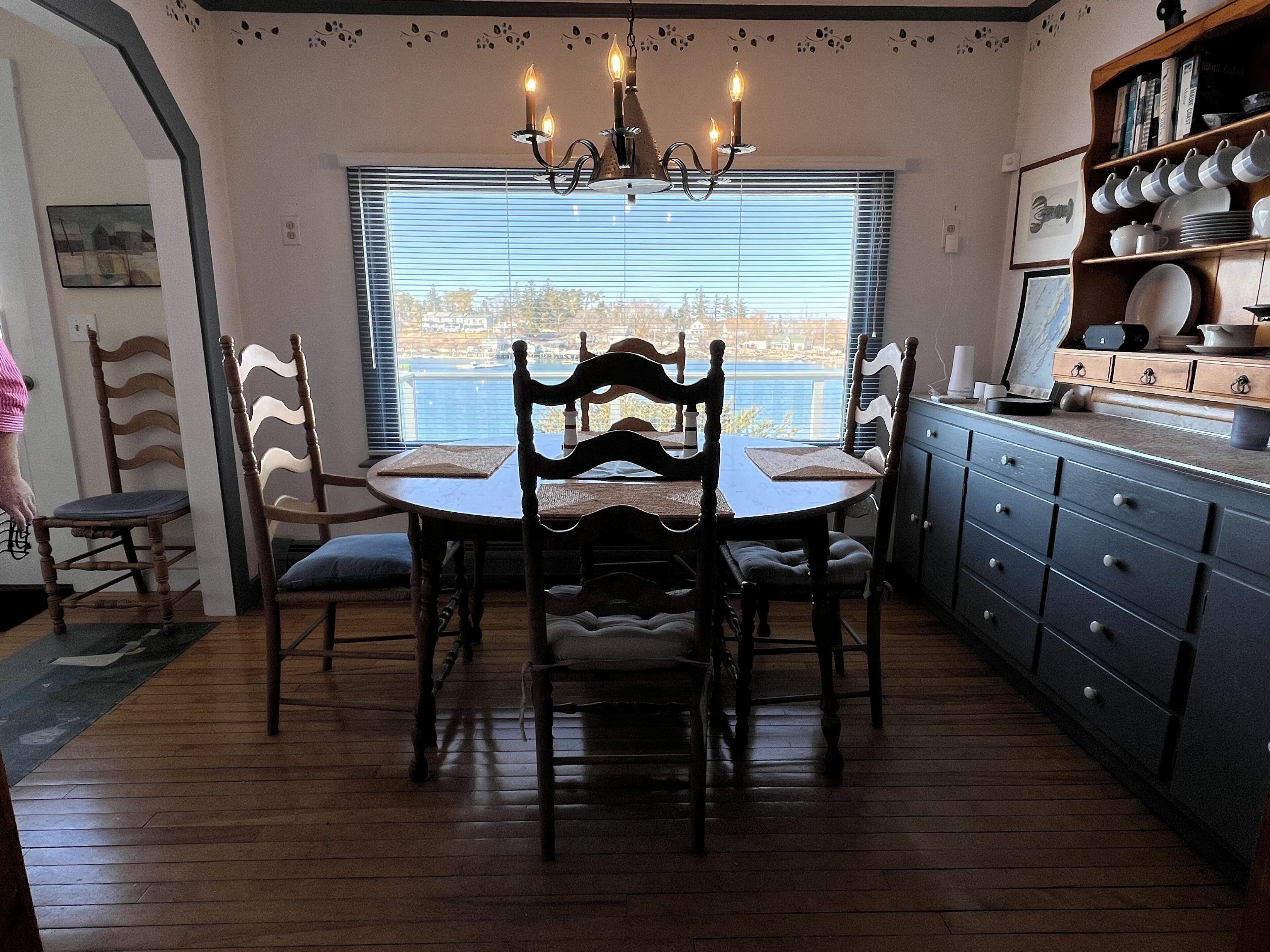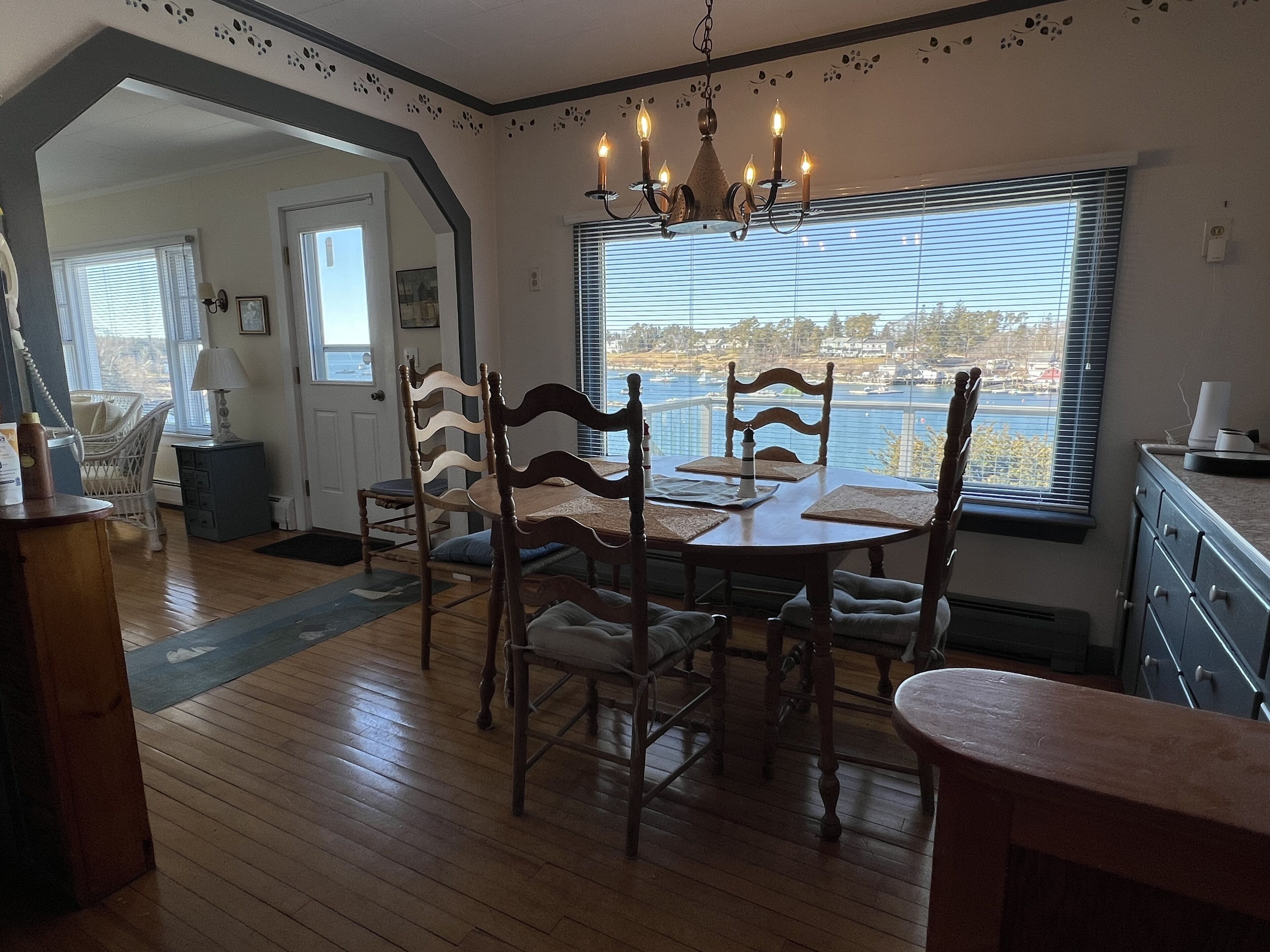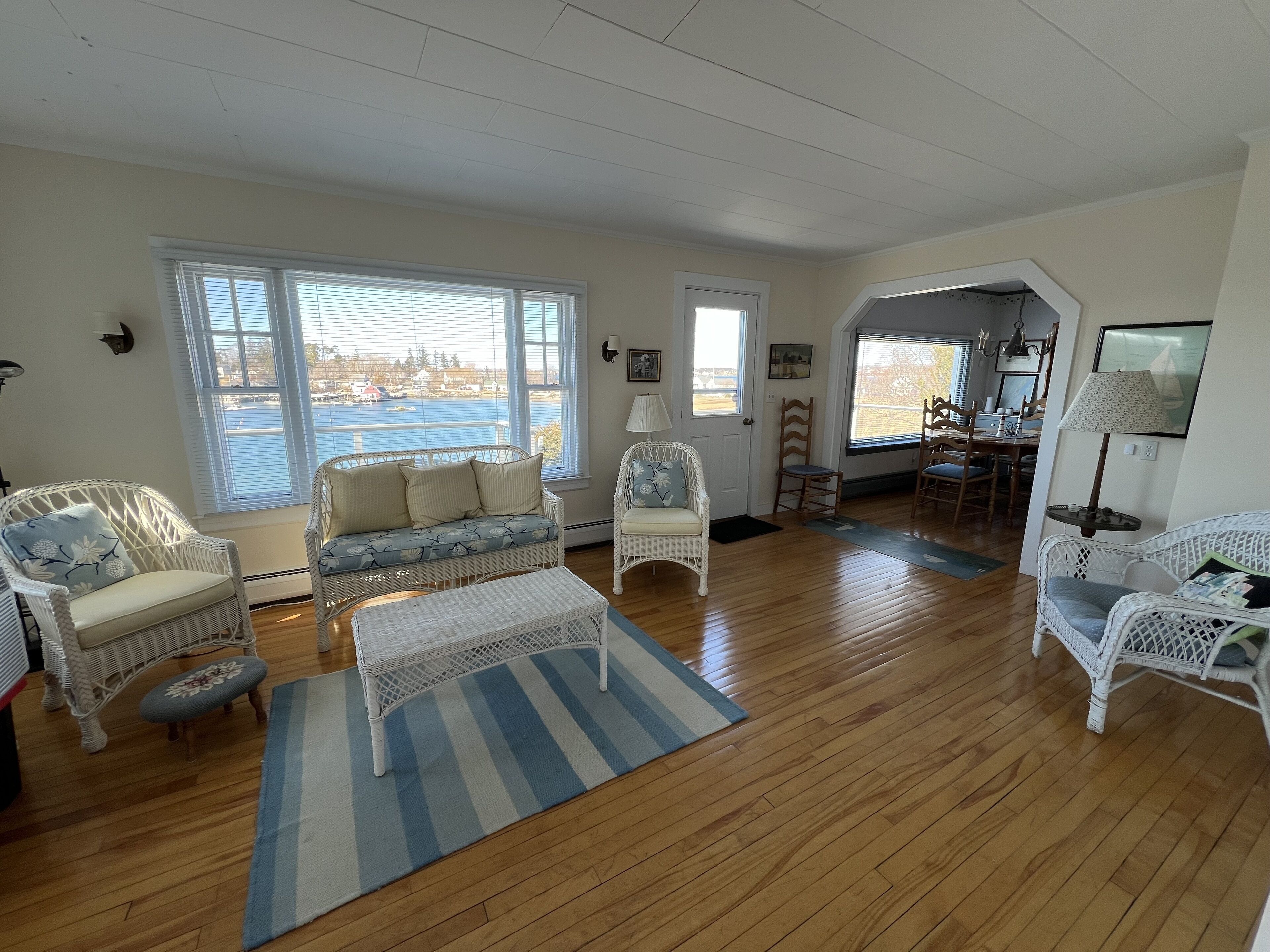A perfectly placed cottage overlooking Mackerel Cove! Welcome to Elroy Johnson Cottage!This perfectly placed cottage sits right on top of Bailey Island s Mackerel Cove! With 180 degree views of the cove we encourage you to make a cup of coffee, go sit on the deck and watch the lobstermen set sail out into the open ocean. Although technically considered a 2 bedroom cottage, Elroy Johnson Cottage can sleep up to 8 people. Upon walking through the house you will enter from the road side and work your way down the hall and into the kitchen. Off of the kitchen you will see the dining area, living area with views of Mackerel Cove, the den with a flat screen tv and sofa with a pullout full size bed, another bathroom with a shower/tub combo and the large primary bedroom with cathedral ceilings and a queen size bed. Working your way upstairs is a large second floor bedroom with a queen size bed and two twin beds. The second level also has it's own bathroom with a stand-up shower.Have a boat? Kayaks? Or just feel like going for a swim? Right off of the expansive deck feel free to work your way down to Johnson s very own private dock. Want to lay out and get some Vitamin D? The beach at Mackerel Cove is only a short walk down the hill from the house. Whatever you chose to do...this place is the perfect spot for you!BOOK TODAY!For more information on the history of Elroy Johnson please visit the website. https://harpswellanchor.org/2023/04/elroy-johnson-man-of-the-people/