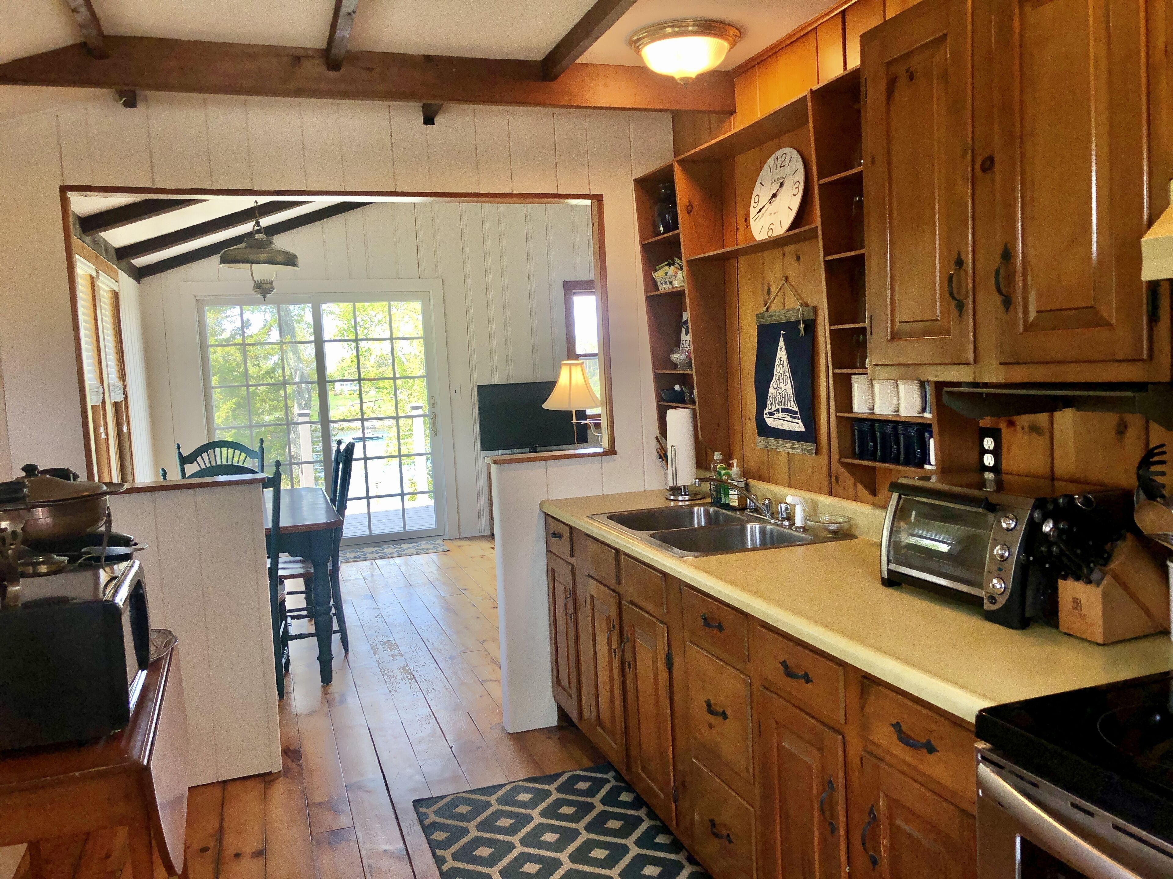 Cozy 2 bedroom cottage with beautiful views of Mackerel Cove! This sweet single story cottage sits on Tip-Top Hillside, with views into Mackerel Cove and beyond. Enjoy sitting on the spacious deck and watching the lobstermen go in and out of the cove or walk down the wooded path to the shared dock and space near the water's edge. With handicap accessibility, this cottage is convenient for all. The kitchen area is right as you walk in and offers all you need while flowing nicely into the dining and living room area. Enjoy limited views of Mackerel Cove from a spacious living room while watching cable TV or utilizing the wireless internet. There are board games and playing cards for your use as well. The two bedrooms both offer nice sized closets for your luggage. One bedroom has a queen and the other has a twin and double-sized bed. There is also a full-sized bathroom off of the bedrooms.