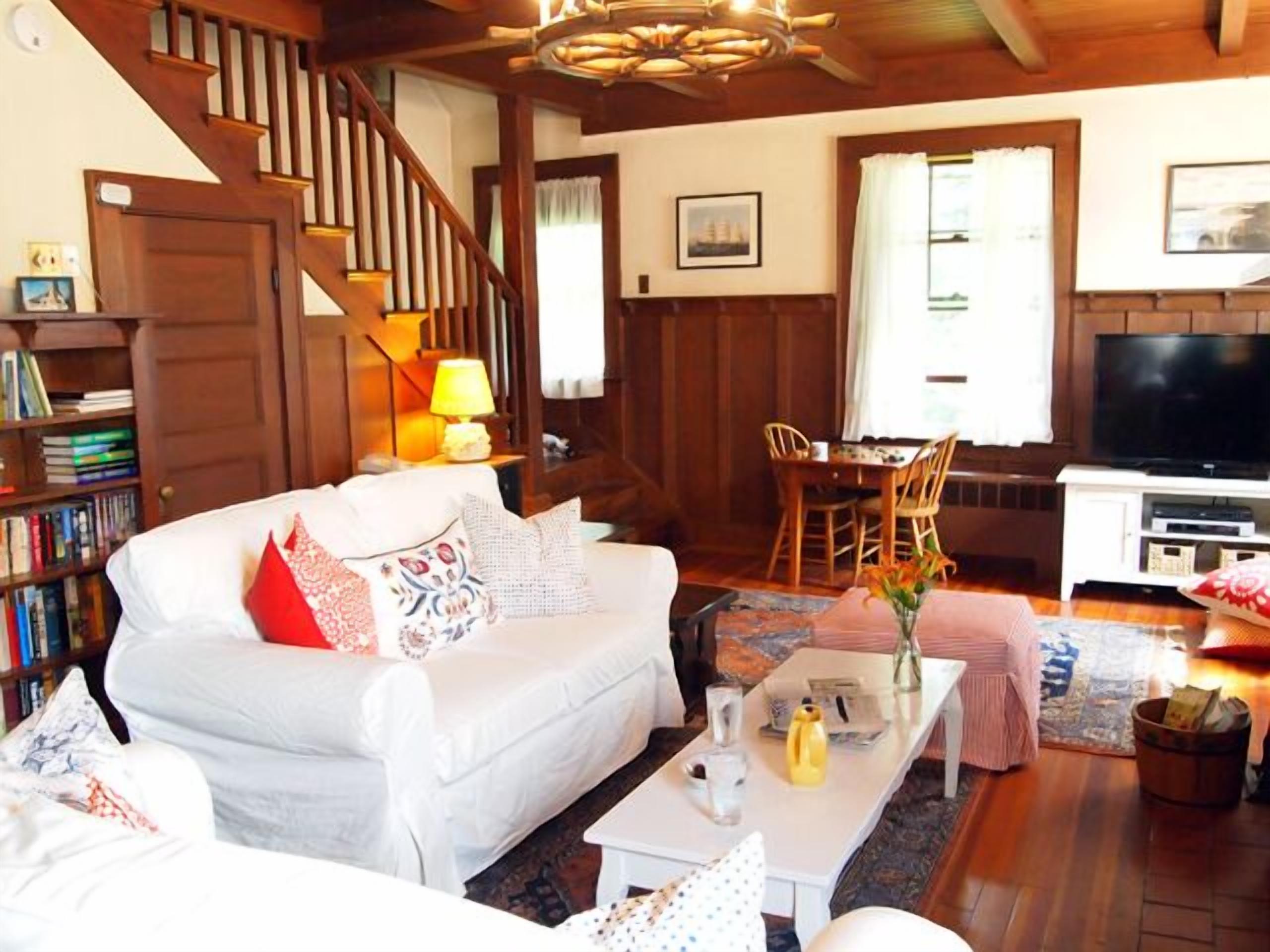 Walk To Ocean Or Village Of Southwest Harbor - Near Bar Harbor Singing Hill is a shingle style cottage on the corner of High Road and South Causeway Lane. The massive field-stone fireplace is the centerpiece of the large living room. Its original beamed ceiling and paneled walls are in the 1920’s Arts and Crafts style. The living room has a flat screen TV, DVR, Blue Ray DVD player, WiFi, books,...