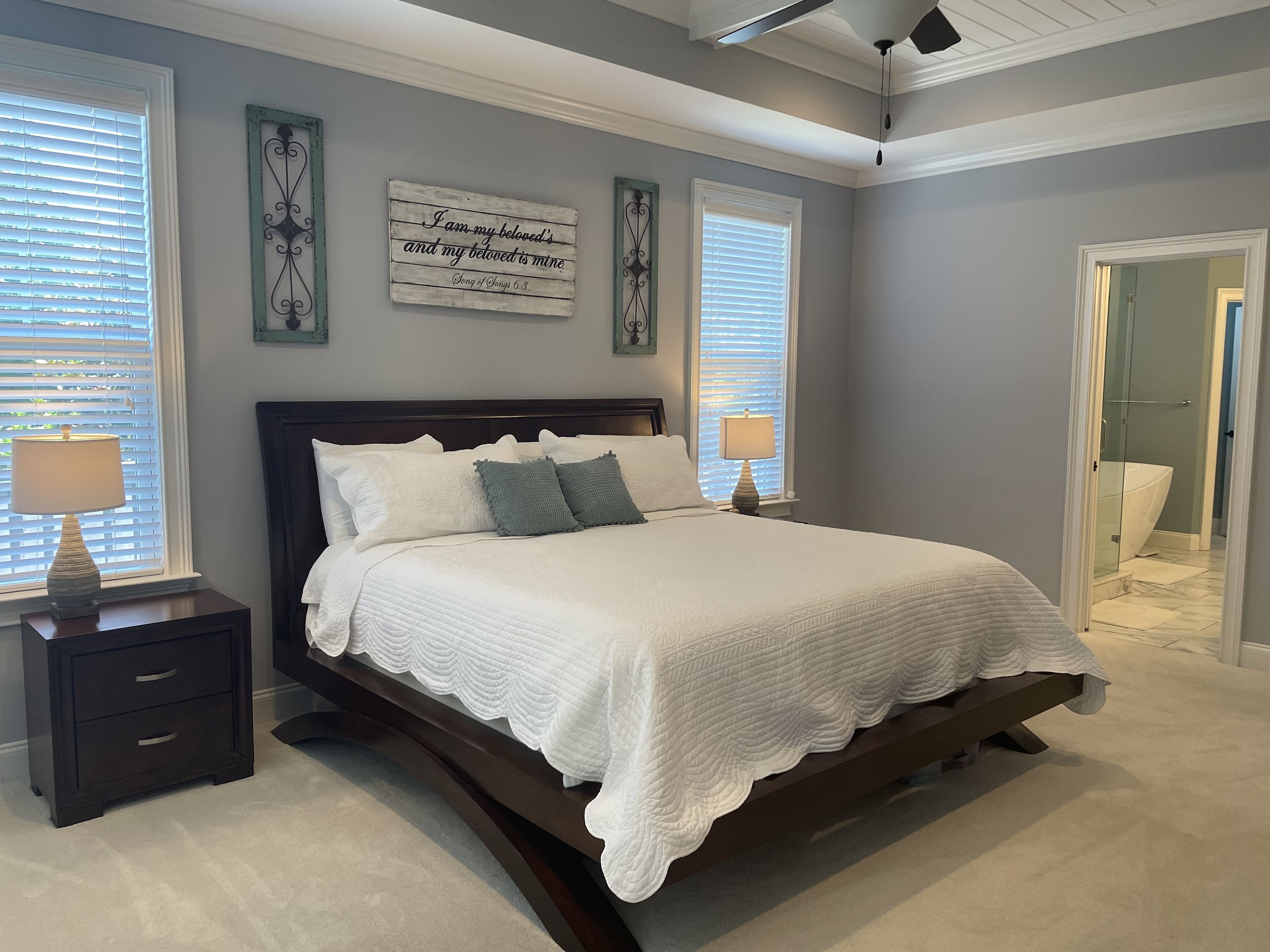 Perfect Masters Golf Rental Home - 12 miles from the Augusta National Beautiful 5 bedroom 3.5 bath home in North Augusta South Carolina is your perfect stop during Masters week. The home is just 8.2 miles from the Augusta National, situated in a quiet neighborhood just across the river. Plenty of room to entertain in this 3400 sq foot home with an open floor plan. The kitchen features a large island, large fridge and freezer, gas range with gas griddle, and outdoor kitchen. You and your guests are sure to feel at home. The master suite downstairs features a full bathroom with stand up shower, large soaking tub, and dual vanities. Upstairs you’ll find 4 more bedrooms and 2 full bathrooms with queen size beds in every room. The large backyard includes a fire pit and is perfect for entertaining. Our rental includes housekeeping services daily, so you can focus on enjoying all Augusta has to offer.