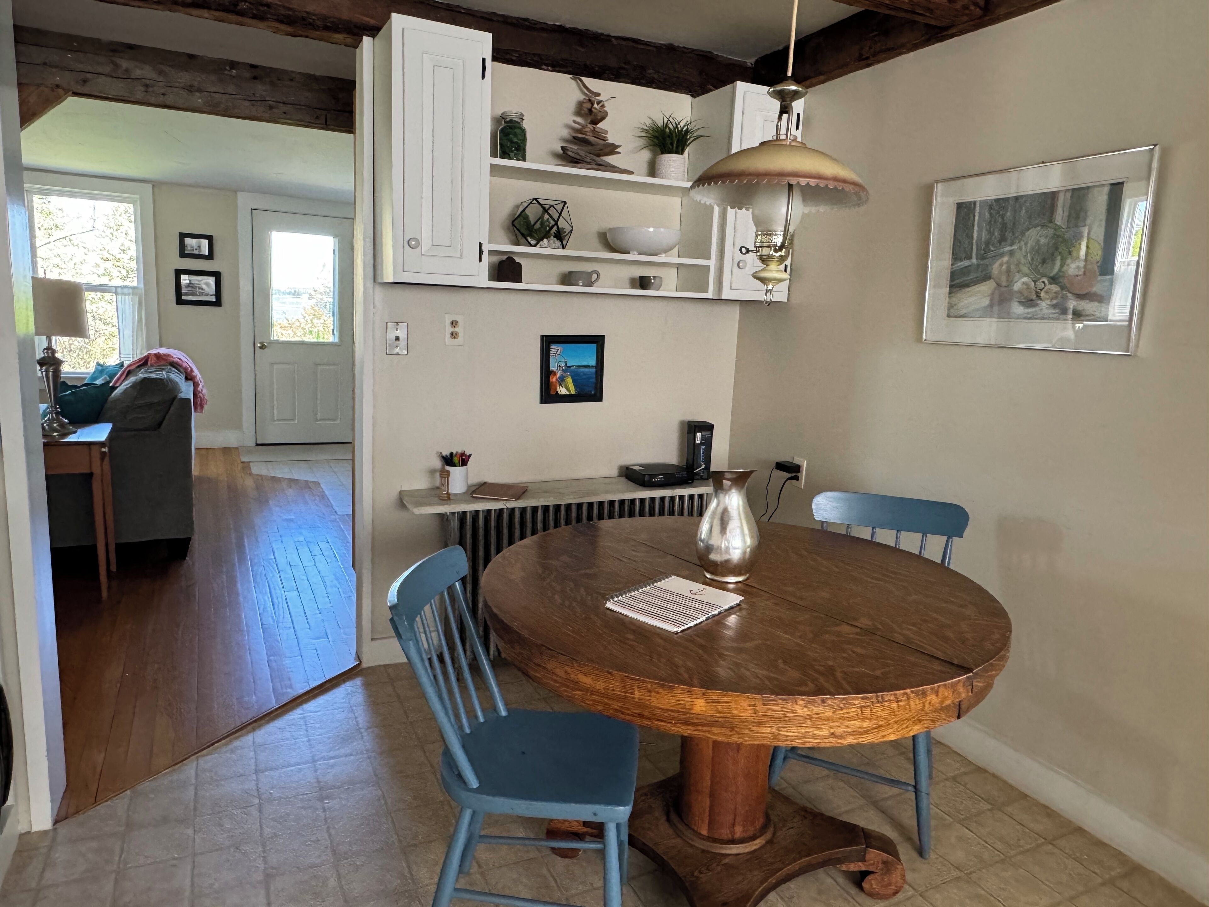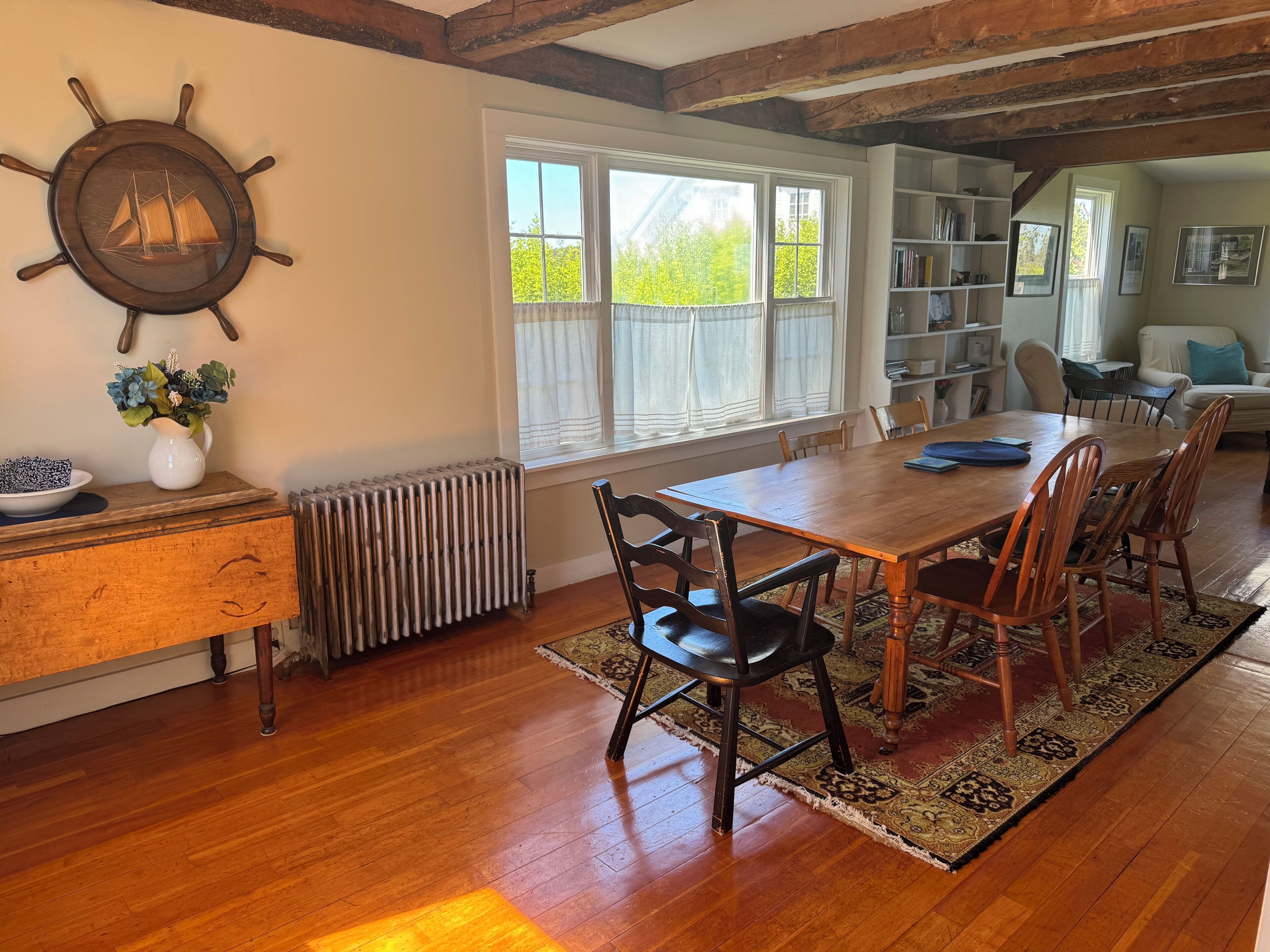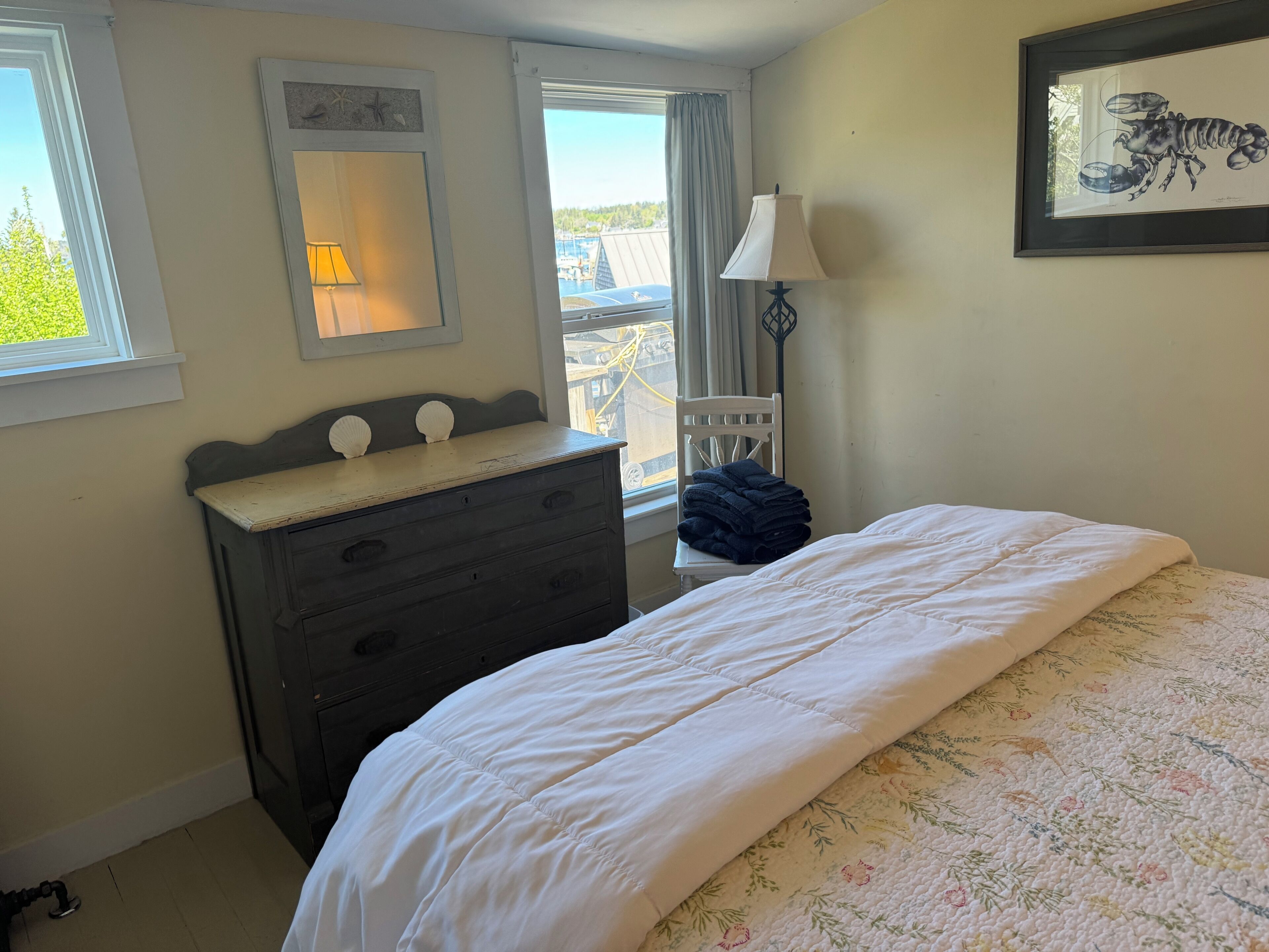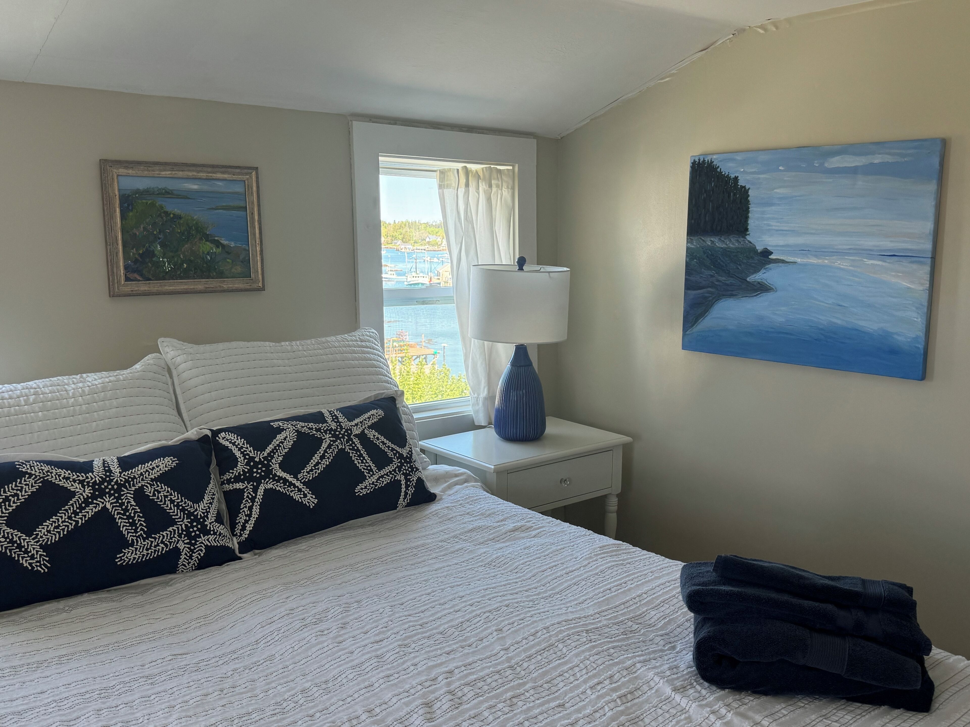 Historic Oceanfront Maine Village Year-Round Retreat, Gameroom + Water Access Many ocean views can be enjoyed from this peaceful 3-bedroom, 2-bath village paradise. Watch the sunset on the back deck with views of islands and fisherman unloading their catch in the distance. Relax in the private backyard under the shade of an apple tree or walk down to the shore and enjoy the activities of a working waterfront Maine village. Port Clyde Cottage, built in 1820, is one of the most historic homes in the village and full of New England charm. The interior is abundant with natural light encouraging visitors to enjoy the outdoors from the inside. Luxurious bedding and modern appliances combined with the charming features of a historic residence make Port Clyde Cottage the perfect summer, fall (even winter) time retreat! PLEASE NOTE: dock usage is limited to visitor owned kayak/paddleboard launches only. LOCATION AND PRIVACY are a unique combination in this Historic Cape Cottage set in the heart of Port Clyde Harbor. Enjoy a game of ping pong in the game room. Dine while the sun goes down on the back deck with views of islands and surrounding wharves and fisherman unloading their catch or working on gear. Relax in the backyard or launch your own paddleboard/kayak and enjoy the activities and view of a Maine fishing village. As a village property, you'll also enjoy the convenience of walking next door to the Village Ice Cream Shop, down the hill to the Monhegan Ferry, Dip Net restaurant, Public Landing, Port Clyde General Store, Wyeth art gallery, and the Barn Cafe/Gallery (famous for their Thursday night cocktails). Short walk to the playground and basketball courts as well. Lighthouse and Drift Inn Bean about 1 mile away.PROPERTY DETAILS:As owners of one of the most historic properties in Port Clyde we've worked hard to offer the perfect balance of history and modern amenities for our visiting friends. (Many come back year after year.) The interior a blend of vintage casual: antiques, original rough-sawn exposed beams, extensive and historic library, abundant natural light and a variety of village, backyard and waterfront views allow visitors to enjoy the outdoors from the inside. The large game room is complete with bar, ping-pong, TV, couches, kids toys and an ocean view picture window. It opens to back deck dining, grilling and a direct Port Clyde sun setting over the islands and working waterfront community. High-quality linens, modern appliances and wireless internet combine with the quaint features of a historic residence to make Port Clyde Cottage the perfect year-round retreat. From couples of two looking for a peaceful getaway and community, to groups of artists, and multi-generational families, we've hosted a variety of guests over the past ten years. Just check out the reviews!IDEAL LOCATION: Port Clyde Cottage is located on Main Street in the quaint fishing village of Port Clyde, Maine. A short walk from the Cottage takes you past Village Ice Cream, the ferry to Monhegan Island, and the Port Clyde General Store where the freshest seafood can be enjoyed on the Dip Net outdoor deck -- live entertainment some nights. Take a beautiful one-mile walk to Marshall Point lighthouse for a picnic and be sure to visit the historic museum. The eclectic Barn Cafe, Antique stores, art galleries and gift shops are all within a short walk. Drift Inn Beach, about one mile away, is a beautiful sandy beach overlooking several islands and a great place to swim, build a sand castle or savor a good book. The area has several great restaurants including the Harpoon which features a unique pub atmosphere abundant with local flavor. Monhegan Island is a nice day trip by ferry. Here, you can visit local artists' galleries and hike along the east coast's tallest cliffs for a spectacular bird's-eye view of Penobscot Bay.PORT CLYDE COTTAGE INTERIOR DETAILS: Upon entering the residence there is a foyer with ample closet storage to hang jackets and summer gear. The kitchen has a dining area and spacious pantry. The farmhouse-style dining table seats 8-10 and is set in front of a large picture window with views of the harbor and village activities. The living room has an adjoining sitting room and overlooks the backyard, apple trees and ocean, and also leads to the back deck. Shelves are well-stocked with books, and many games are available for guests as well.The downstairs bedroom has a queen bed and two window views out to the backyard and harbor. Upstairs is another queen bedroom with an adjoining reading room which is great for families with infants. (We have a pack n' play.) Two windows look out to the backyard and harbor with two more overlooking the village and harbor. The third bedroom is upstairs, has two twin beds and also enjoys a water view. The loft is located above the game room and has new staircase, a full-sized bed and futon, two club chairs and a great water view from a tall window. The loft is perfect for families with kiddos, or just kiddos, who want their own space.The downstairs bathroom has wonderful natural light through the skylight overhead. It has a combination shower/bath, linen closet, vanity and toilet. Upstairs the bathroom is located between the two bedrooms. It has a wonderfully private water view, standing shower, sink, and toilet.The game room is a large entertainment room complete with ping pong table, TV, stereo, wireless internet, and a picture window overlooking the back deck, yard and harbor. Lounging area includes a bar that seats four, sofa, overstuffed chair, and antique trunk with kids games. Port Clyde Cottage offers a variety of spaces so families can come together or spread out to enjoy individual activities at their own pace.Accessible from the living room or game room, the back deck has a gas grill, dining table for 6 with additional chairs + umbrella – perfect for enjoying a sunset lobster feast. The backyard features willowing apple trees with hand-crafted adironda