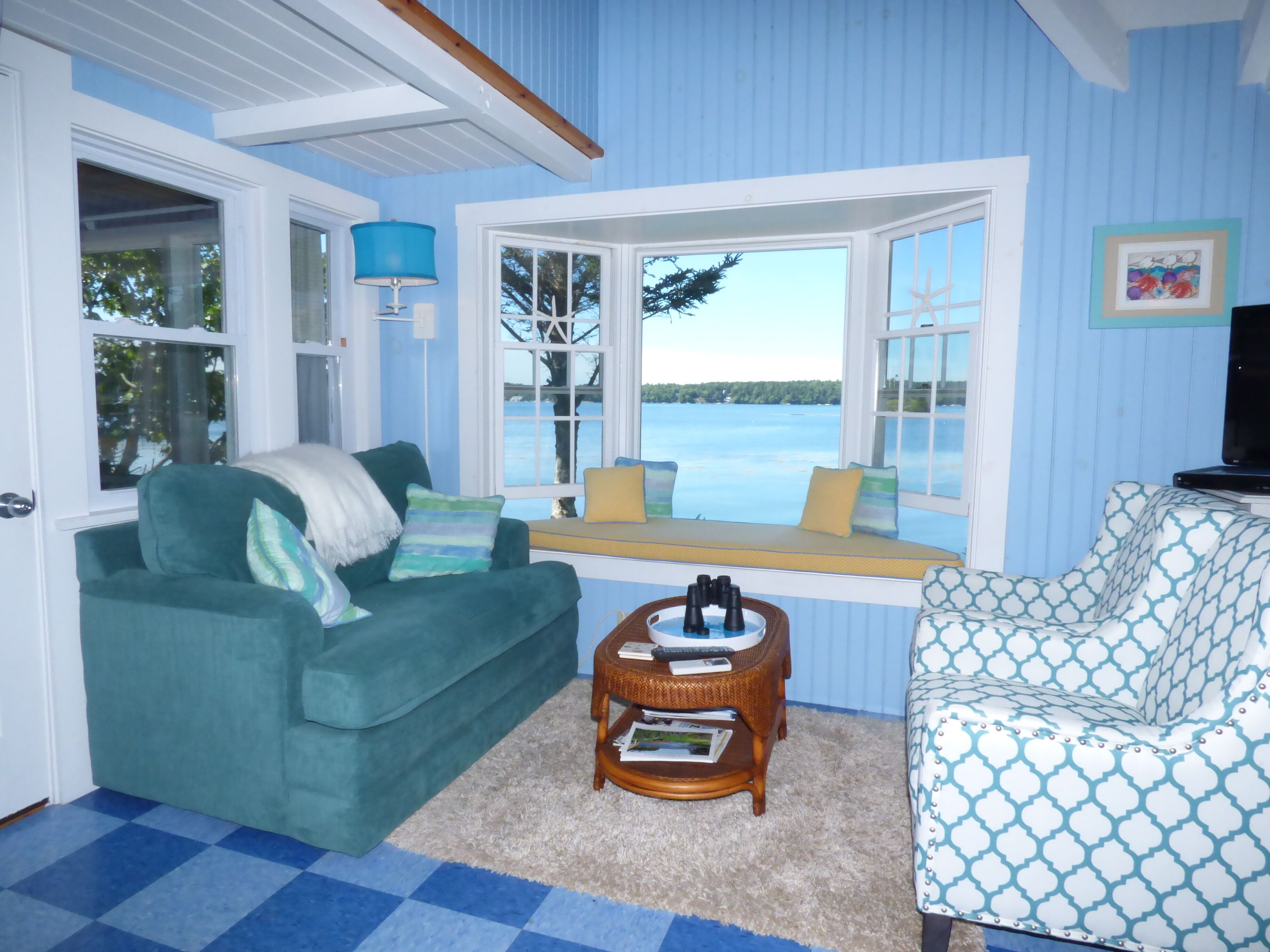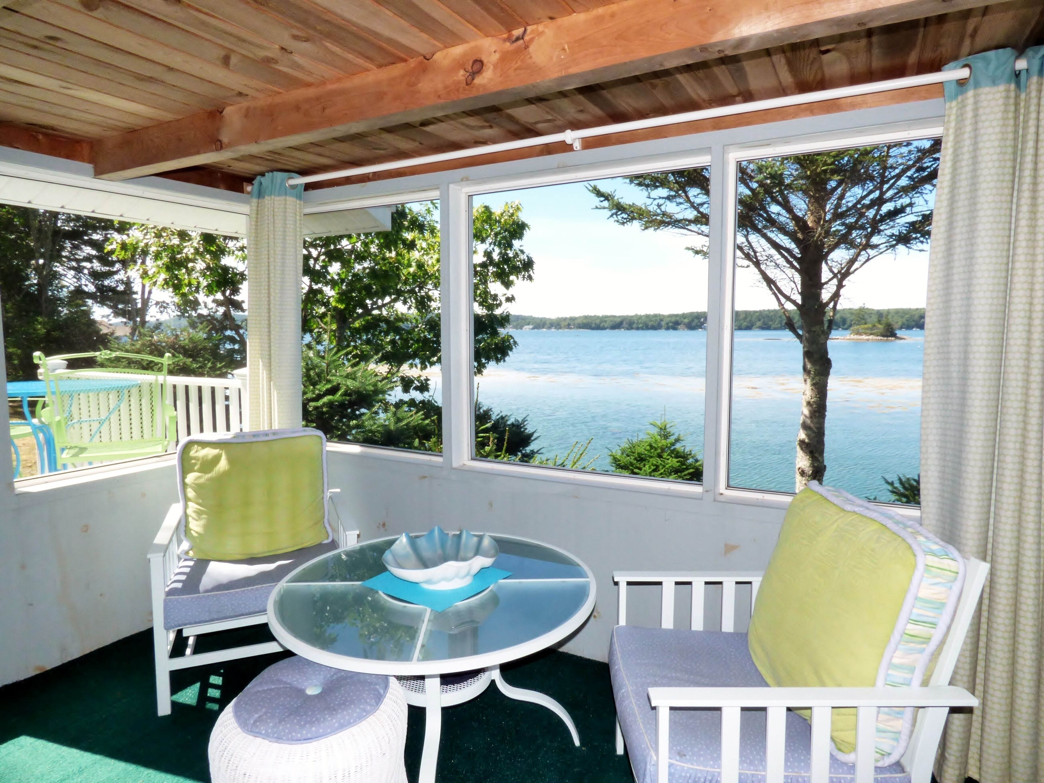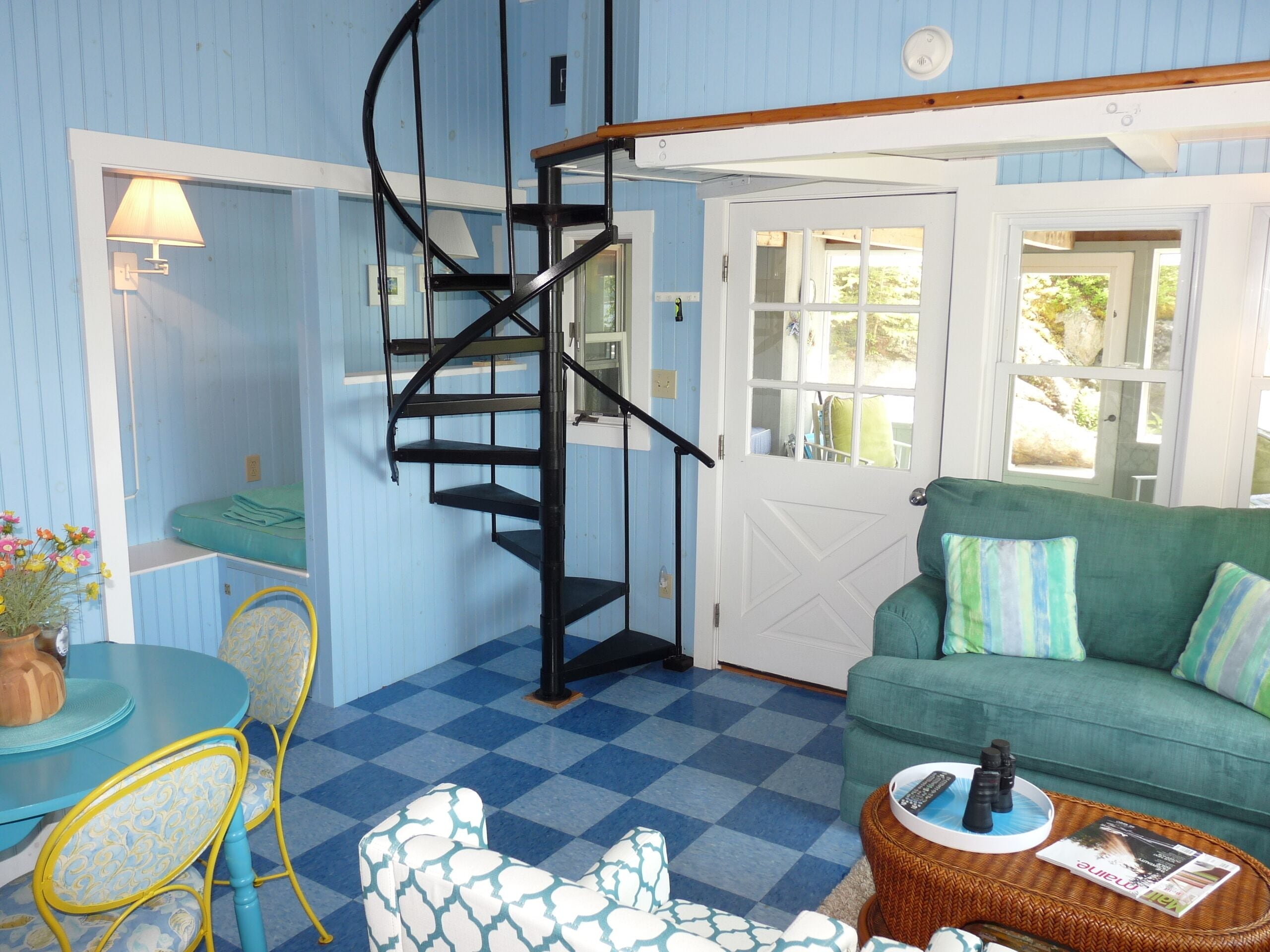 SeaGlass Cottage: Magical, Private Oceanfront Retreat in E. Boothbay! Dock & AC! Welcome to SeaGlass Cottage, a magical, secluded get-away in East Boothbay! ** Please read full description for access info**Sitting directly on the edge of Linekin Bay, at SeaGlass you will be surrounded by stunning beauty and immersed in nature. It is not unusual to see seals, osprey and eagles. You are so close to the water, it feels like being on a boat, and the western exposure provides you with absolutely breathtaking sunsets. There is an awesome 200' long deep-water dock with a large sundeck and sitting area that has a swim ladder. Bring your kayak! At low tide there is a large private rocky oceanfront area (this area is underwater at high tide so please don't think white sandy beach), that is great for beach combing, digging for clams or catching crabs. Bring your water shoes! The cottage itself loaded with charm and filled with nooks and crannies. It features an open floor plan with high pitched exposed beam ceilings, and is covered in wainscotting. SeaGlass was professionally decorated and features high quality cotton bed linens, with duvet covers. There is also high speed internet, WIFI and a 32' HD TV, and a heat pump/mini split AC system. The bedroom is on the second floor and is an open loft. It is accessed by a small spiral staircase. It has beautiful pumpkin pine floors, a high pitched ceiling and great water views. The bathroom is on the first floor. There is also a screened-in porch which provides another cozy spot to read a book or surf the web. This location provides an incredibly peaceful retreat to get away from it all and relax, surrounded by some of the most beautiful views anywhere. But, if you are looking for more action, it is only 4 miles to Boothbay Harbor, which is home to many fine dining and casual restaurants, shops and galleries. **Access - There is a walk of about 85 yards down a grassy hill from the parking area which is near the owner’s house. We have hand carts to assist with luggage and supplies. The cottage is not suitable for anyone with limited mobility.***There are mostly high ceilings, but the indoor shower and screened-in porch are a little low and may be uncomfortable for people over 6’3” tall.