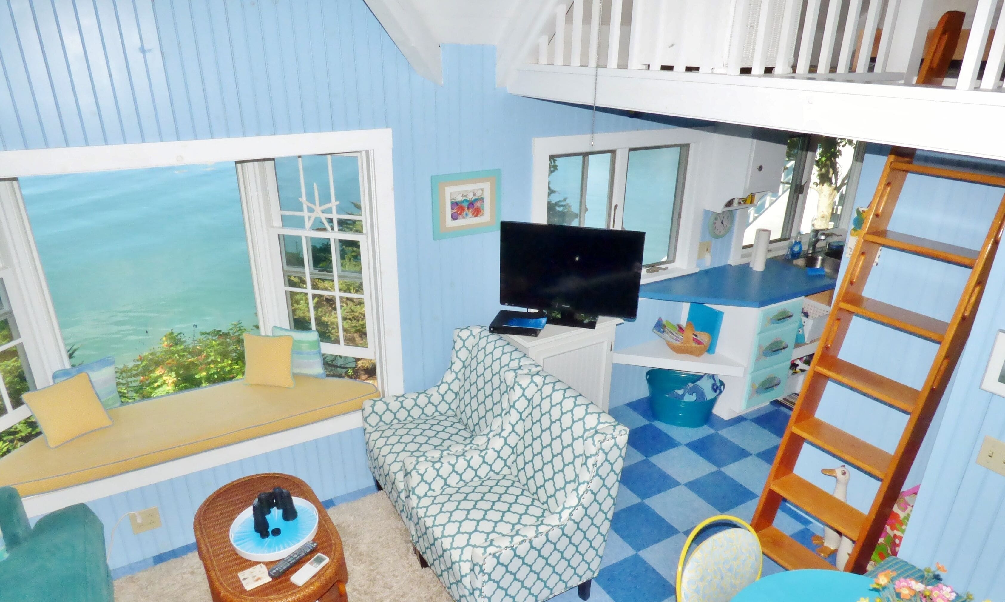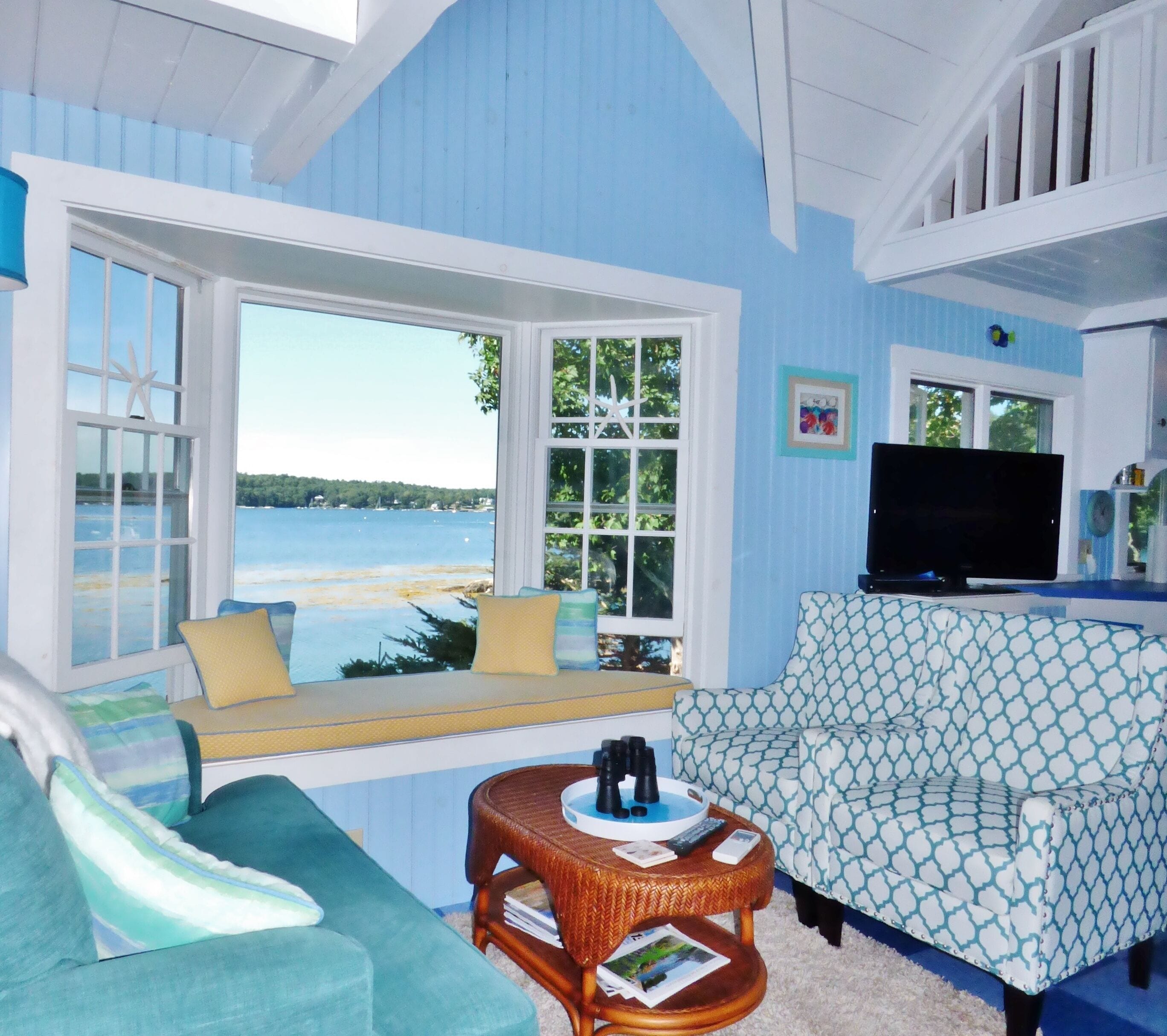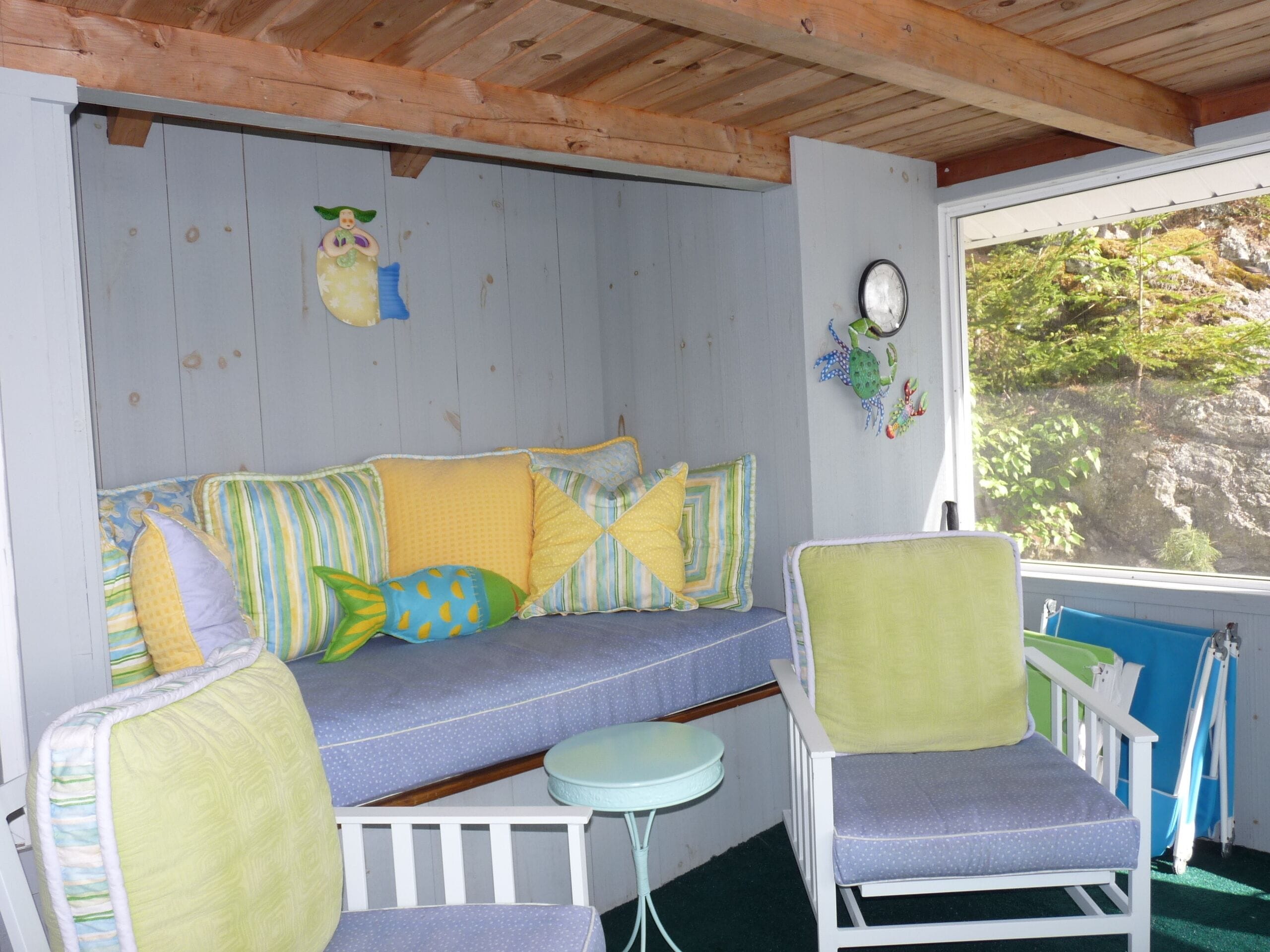 SeaGlass Cottage: Magical, Private Oceanfront Retreat in E. Boothbay! Dock & AC! Welcome to SeaGlass Cottage, a magical, secluded get-away in East Boothbay! ** Please read full description for access info**Sitting directly on the edge of Linekin Bay, at SeaGlass you will be surrounded by stunning beauty and immersed in nature. It is not unusual to see seals, osprey and eagles. You are so close to the water, it feels like being on a boat, and the western exposure provides you with absolutely breathtaking sunsets. There is an awesome 200' long deep-water dock with a large sundeck and sitting area that has a swim ladder. Bring your kayak! At low tide there is a large private rocky oceanfront area (this area is underwater at high tide so please don't think white sandy beach), that is great for beach combing, digging for clams or catching crabs. Bring your water shoes! The cottage itself loaded with charm and filled with nooks and crannies. It features an open floor plan with high pitched exposed beam ceilings, and is covered in wainscotting. SeaGlass was professionally decorated and features high quality cotton bed linens, with duvet covers. There is also high speed internet, WIFI and a 32' HD TV, and a heat pump/mini split AC system. The bedroom is on the second floor and is an open loft. It is accessed by a small spiral staircase. It has beautiful pumpkin pine floors, a high pitched ceiling and great water views. The bathroom is on the first floor. There is also a screened-in porch which provides another cozy spot to read a book or surf the web. This location provides an incredibly peaceful retreat to get away from it all and relax, surrounded by some of the most beautiful views anywhere. But, if you are looking for more action, it is only 4 miles to Boothbay Harbor, which is home to many fine dining and casual restaurants, shops and galleries. **Access - There is a walk of about 85 yards down a grassy hill from the parking area which is near the owner’s house. We have hand carts to assist with luggage and supplies. The cottage is not suitable for anyone with limited mobility.***There are mostly high ceilings, but the indoor shower and screened-in porch are a little low and may be uncomfortable for people over 6’3” tall.