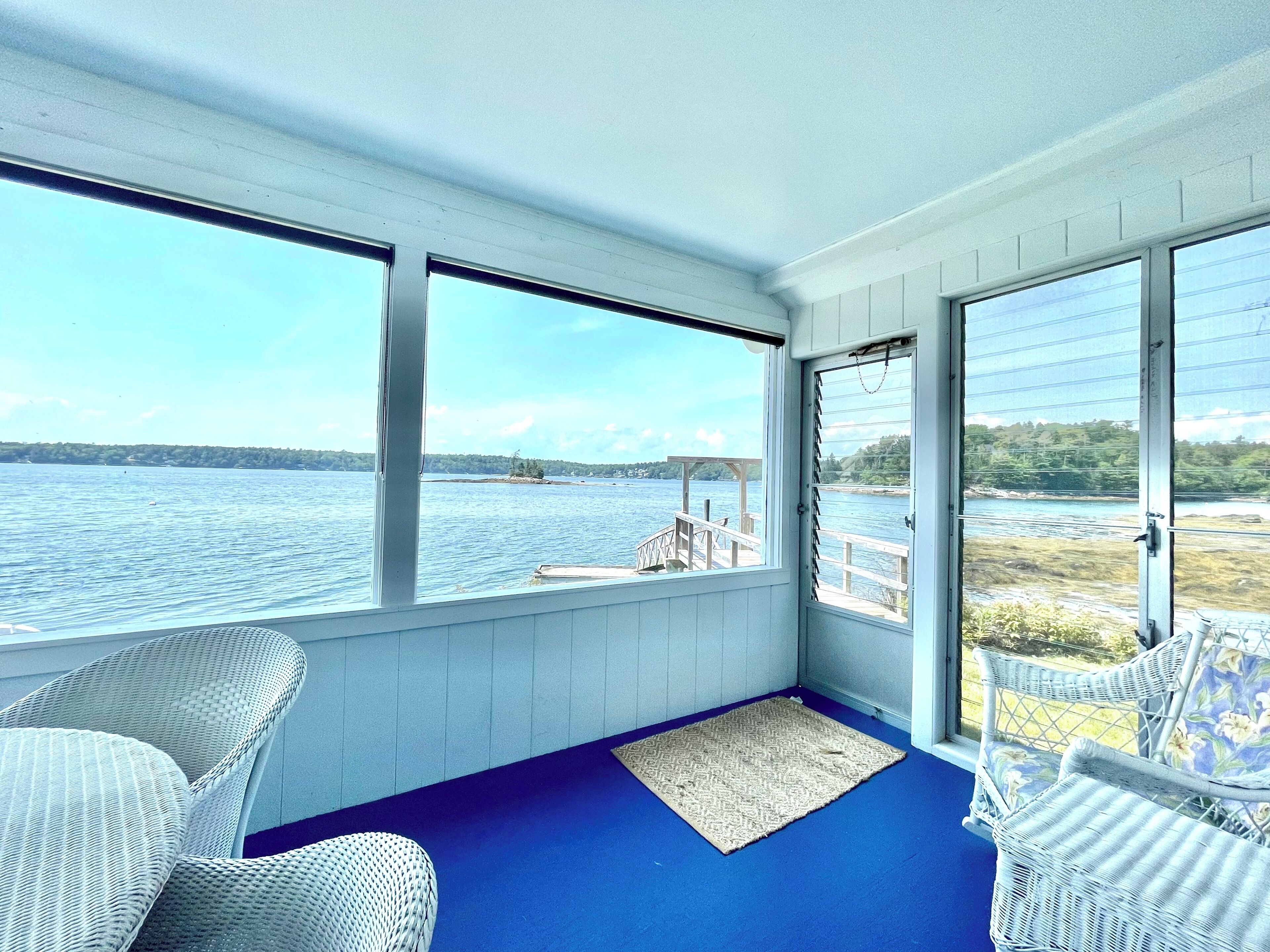 Breathtaking Bayfront Cottage perched on the edge of Linekin Bay! Dock! Views! Welcome to Rosewater Cottage! If you're looking for an incredible waterfront escape that has all the comforts of home combined with Maine charm, then look no further. Rosewater sits on the bay's edge and has breathtaking views of Perch Island and across the bay. Watch the Osprey, seals, and loons and marvel at the gorgeous sunsets and great light all day. The cottage sits out on a point and has water and views all around. There is a dock where you can swim and kayak on the calm bay water. A quiet location in East Boothbay near many attractions and all the action of downtown Boothbay Harbor completes the package.Inside is larger than you might imagine. The large living area has an awesome a gas fireplace and new furniture bought in 2023. There is also a cozy TV room with a smart TV and a desk. The sun room has incredible views and a dining area. Watch the sunset as you enjoy dinner! The full kitchen has everything you would expect and more including a dishwasher and a lobster pot. The large primary bedroom has an en-suite bathroom and french doors that lead out to a deck. Ther is another twin bedroom with a bathroom next to it. Rosewater is managed by Chill Vaction Rentals. We are a very small, local company who manages only high-end waterfront and water view properties. We have professional housekeepers and inspect the cottage after every cleaning to ensure that our high cleaning standards are maintained. We use high-quality, environmentally friendly California Design Den 100% cotton, 600 thread count sheets, and duvets with duvet covers. We live nearby in Boothbay and are happy to help and give recommendations about our favorite spots and local secrets.