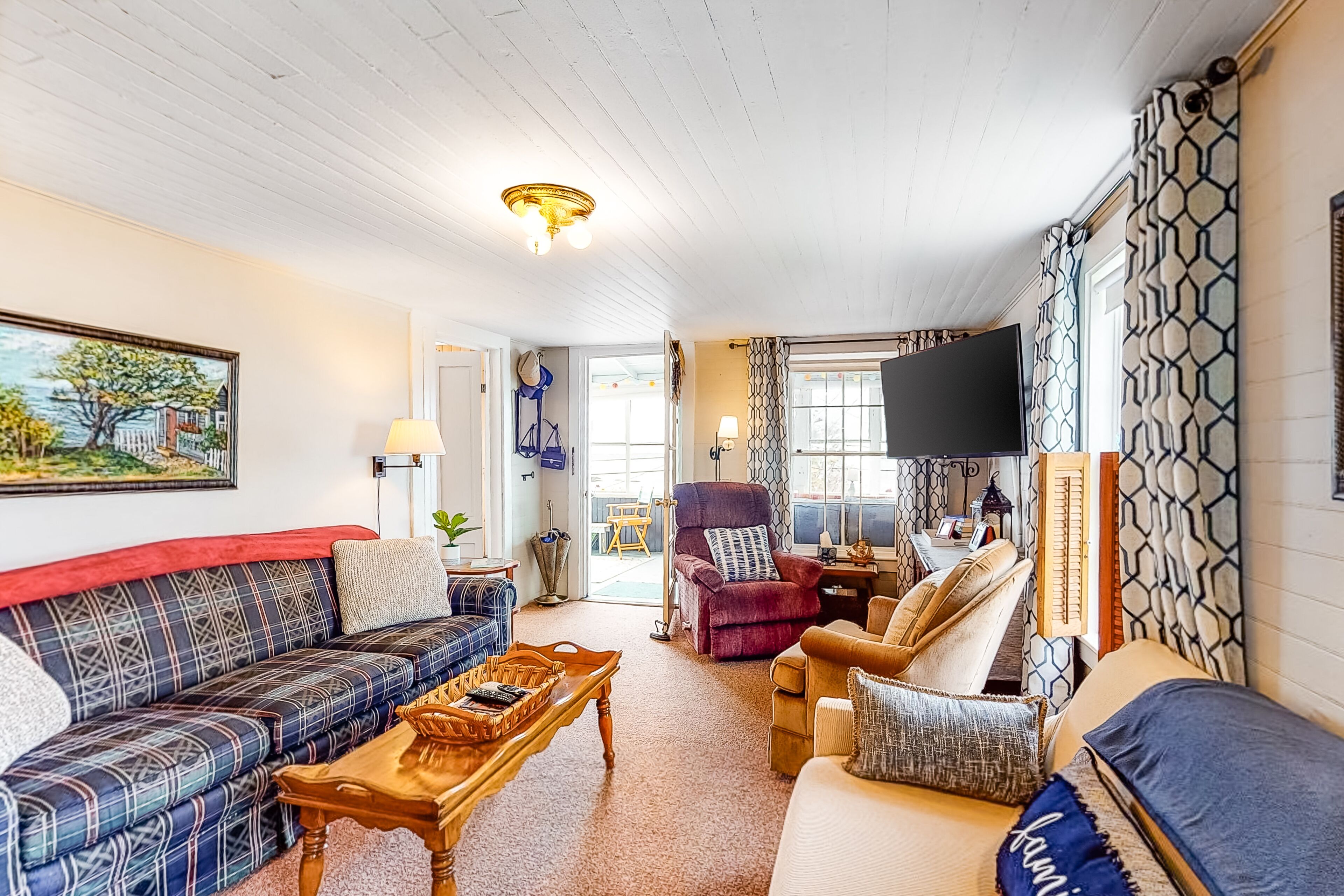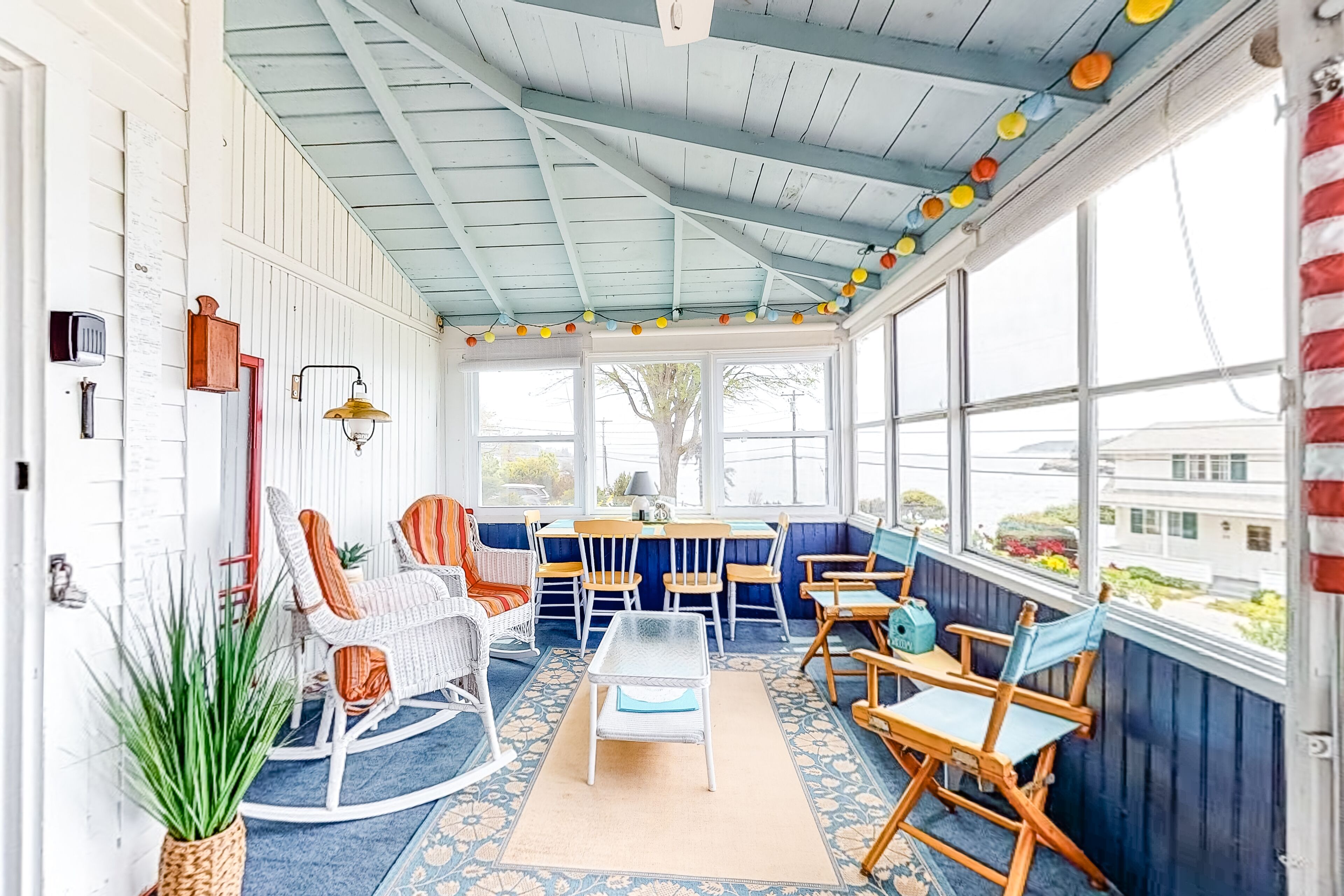 Boothbay - Ocean Point home w/ screened porch, amazing view & water access Best View in MEOur calendar is updated in real-time & our nightly rates are accurately displayed. Simply enter your desired dates and click 'Book Now!'Take in gorgeous oceanfront views from every bedroom and from the Adirondack chairs across the road at this cottage in East Boothbay - a serene escape that has been enjoyed by four generations of the same family. Witness spectacular sunsets from the spacious glassed/screened porch, and spend clear nights on a blanket watching shooting stars with the L.L. Bean telescope. Inside, you'll find a beautifully updated living space with new Simmons bed sets, high-quality linens, a kitchen with top-notch appliances, a new bath with a shower, and a Jotul gas stove to warm you as you play games, read books, watch TV, and catch up with your loved ones.What’s nearby:Here on the oceanfront Shore Road, you'll find two miles of Atlantic shoreline available for walking, biking, jogging, or driving. From the property itself, you can fish, launch a kayak or canoe, go for a swim, and find shells, snails, crabs, and starfish in the seaweed and tide pools. You'll also have a view of local lobstermen hauling in their catch of the day, windjammers, and passing seals and sea ducks. If you're looking to explore town for a bit, bustling Boothbay Harbor is less than seven miles northwest.Things to know:Free WiFiFull kitchenParking notes: There is free parking available for 3 vehicles.Damage waiver: The total cost of your reservation for this Property includes a nightly damage waiver fee, plus tax if applicable (the “Damage Waiver”). (A discount may be applied for stays of 28 nights or longer, if permitted.) The Damage Waiver covers you for up to $3,000 of accidental damage to the Property or its contents (such as furniture, fixtures, and appliances) as long as you report the incident to the host prior to checking out. The Damage Waiver fee eliminates the need for a traditional security deposit.More information can be downloaded from the "Rental Agreement" on the checkout page.Due to local laws or HOA requirements, guests must be at least 30 years of age to book. Guests under 30 must be accompanied by a parent or legal guardian for the duration of the reservation.
