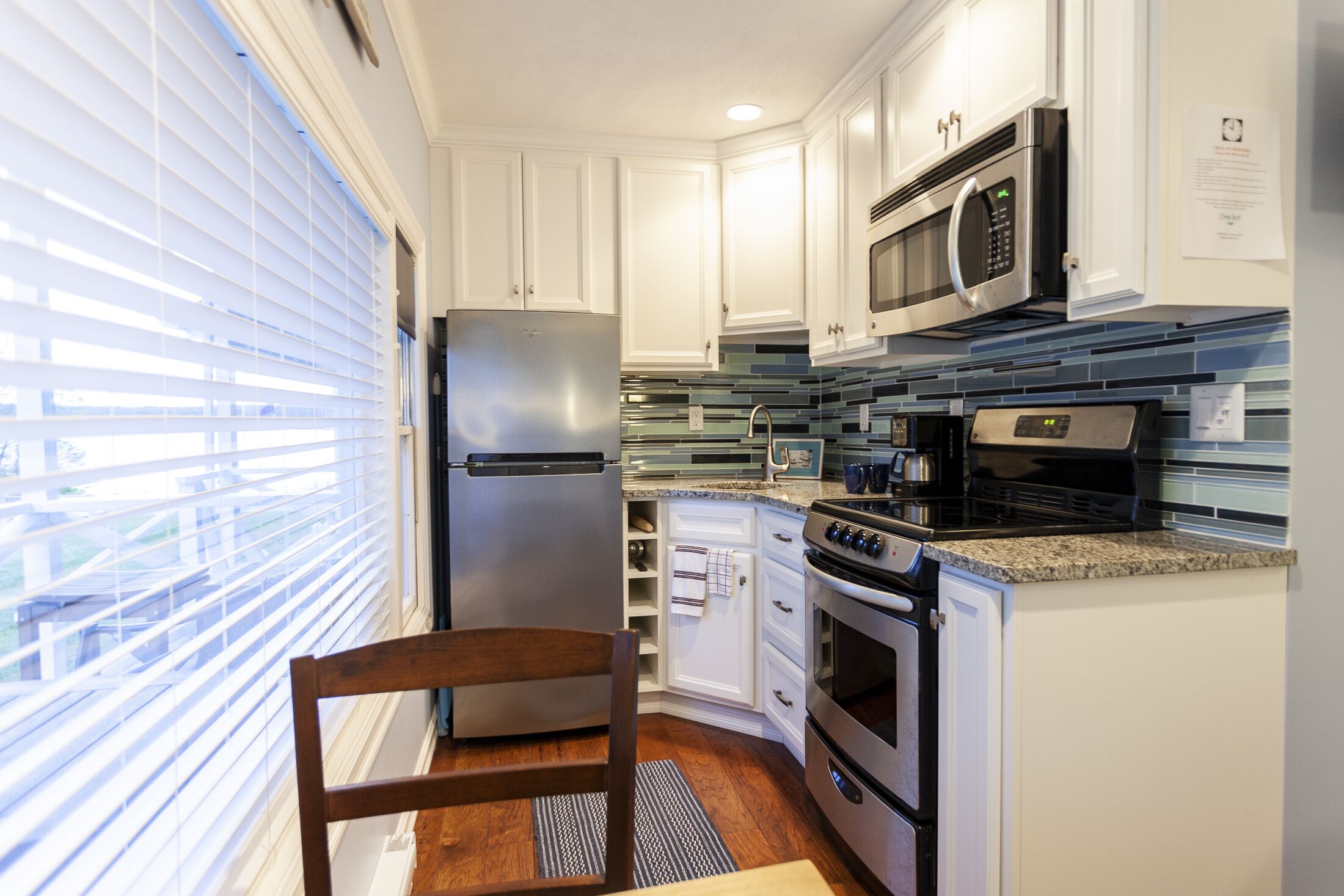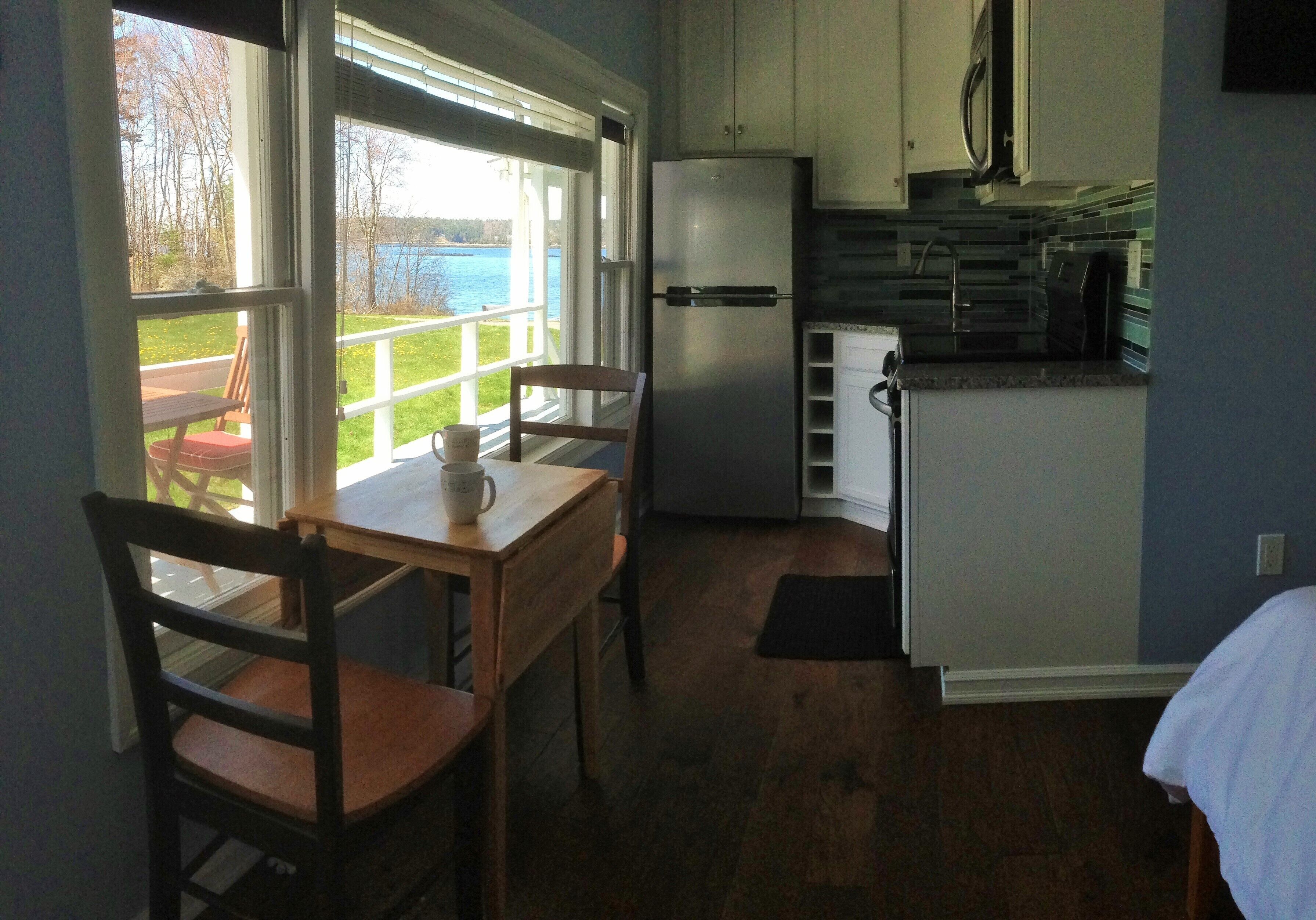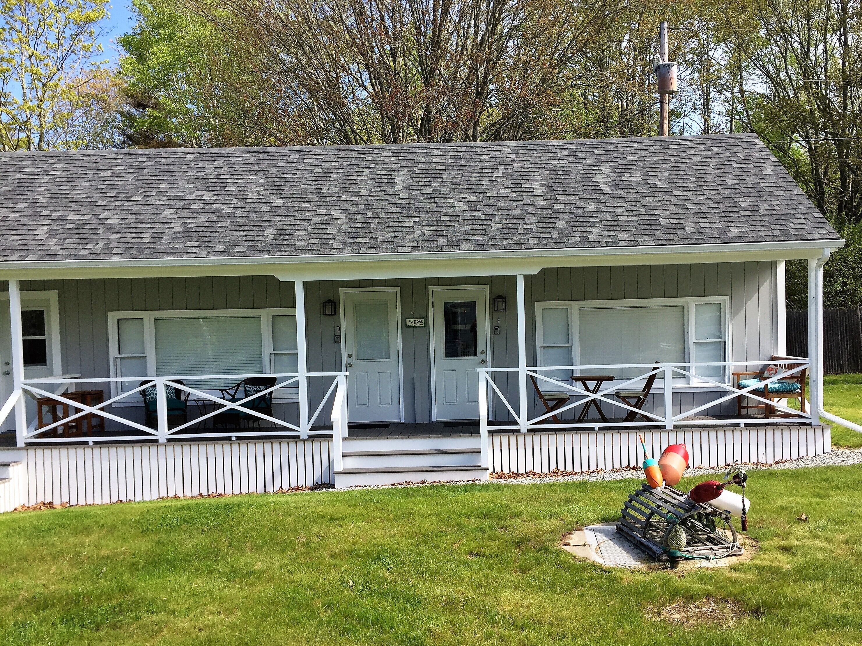 Peaceful! Oceanfront Sunsets With Beach And Dock The Sunfish #676319, Sloop #488351, and Mainsail/Jib #676320 are all located on the small property of Water's Edge Condominium and Cottages. These can be rented together for large groups allowing private accommodations, however, close proximity and common grounds and amenities. These are in a unique Waterfront Community. This condominium unit is on Linekin Bay in East Boothbay. Water's Edge has only 21 units, suites and cottages that are privately owned with access to the Association Dock and beach. This community is a short drive into Boothbay Harbor. Imagine sitting on the dock and watching the sunset with your first glass of wine after hiking the nearby forest preserves, sea kayaking or taking a brisk swim on the private beach. This is a laid back village that is very quiet and private. Cabbage island is just across the bay for famous clam bakes and the harbor town is a short drive away for night life and boating excursions for dancing, music and whale and seal and Puffin watching. Rent a kayak or boat and take advantage of seeing this area from the water. Camp Leott Sunfish is a fully renovated and beautifully maintained first floor unit very close to the water. Sunfish has a fully equipped kitchen with attractive granite counter tops and a glass tile back splash, microwave, coffeemaker, refrigerator, and more, a 3/4 bath with private dressing area, king bed, dining table and chairs, side chair and covered outdoor deck. Envision yourself collecting live lobster at the pound and preparing your delicious lobster meal in your own kitchen to be enjoyed outdoors on the deck!