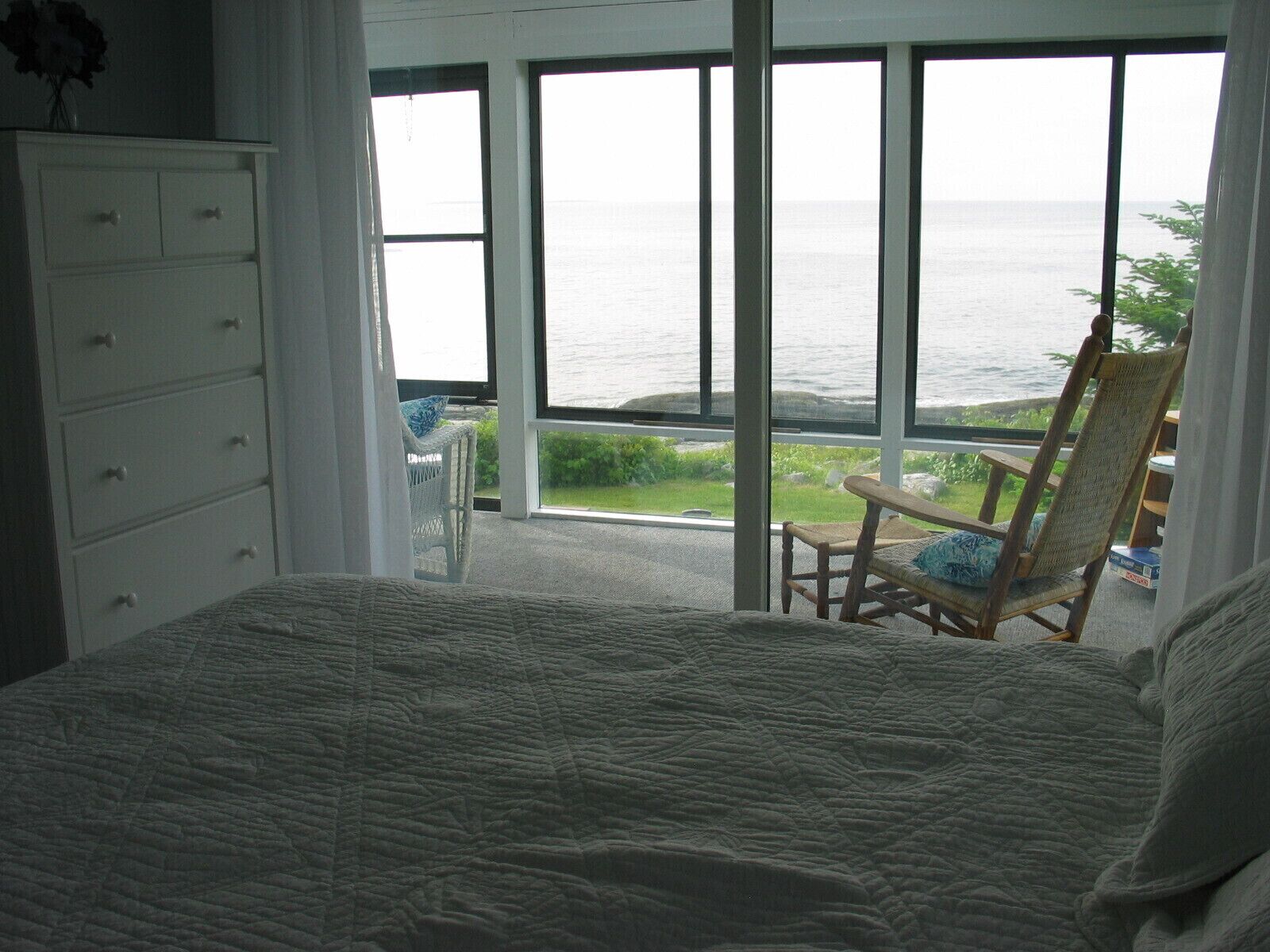 Adorable Oceanfront Cottage On Pemaquid Point The Artist's Box is a fabulous ocean-front property that was completely renovated in 2015. Everything is fresh and new, and the views looking across the Atlantic are magnificent. The master bedroom has a queen bed, another bedroom has 2 twin beds, and there is a twin in the third bedroom. The bathroom has a shower and a vanity with a double sink, and there is also a half bath. The brand-new kitchen has stainless steel appliances and an 8-foot island that seats 6 or more people. Towels and linens are provided, and there is a washer and dryer.You can enjoy ocean views from the enclosed porch, or sit outside on the Adirondack chairs and watch the lobster boats go by, as they pull in your dinner. A picnic table and charcoal grill are available for outdoor cooking and eating and 4 beach chairs to take to the beach.The cottage has a cozy gas fireplace, wireless internet access, TV and DVD.May through Oct. weekly rentals only with Saturday change over. Nov. and Dec. minimum 4 night stays available.*** This location is not safe for young children due to the dangerous rocks at the edge of the yard.