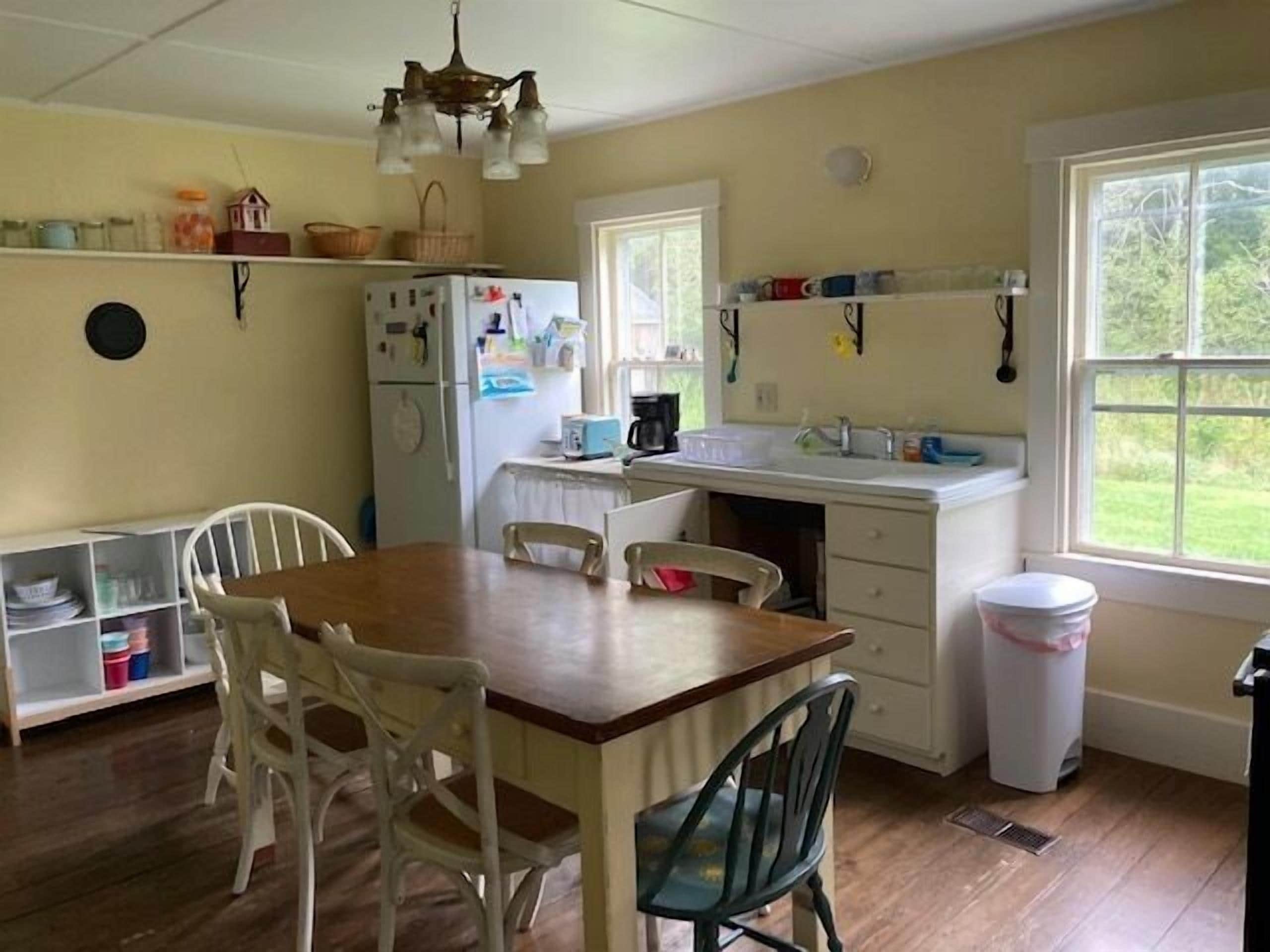 Charming 3br and 2b near the heart of New Harbor New to the rental market in 2022. 1850’s Farmhouse- charming 3 bedroom, 2 bath Victorian Farmhouse on 1 Acre with beautifulwrap around front porch complete with a swing! Plenty of room to lounge and chat with friendsover a cup of coffee.Enjoy the beauty of coastal Maine by walking to Pemaquid Beach or to the third-generationgrocery store, Reilly’s. Our children love walking to the crabbing bridge in Back Cove and fishingoff the Thompson Boat house- all within a one-mile radius. Enjoy the summer here or come forthe chiller months to watch the leaves change.The house has one master bedroom with a king bed, one bedroom with two twin beds and onebedroom with a trundle bed (1 twin + 1 twin) There are two full bathrooms. We even have alittle writing room with a custom writing table made by an artisan from Maine. Sheets and towels are also included.A short drive to the Pemaquid Point Lighthouse or several restaurants to experience local cuisine.