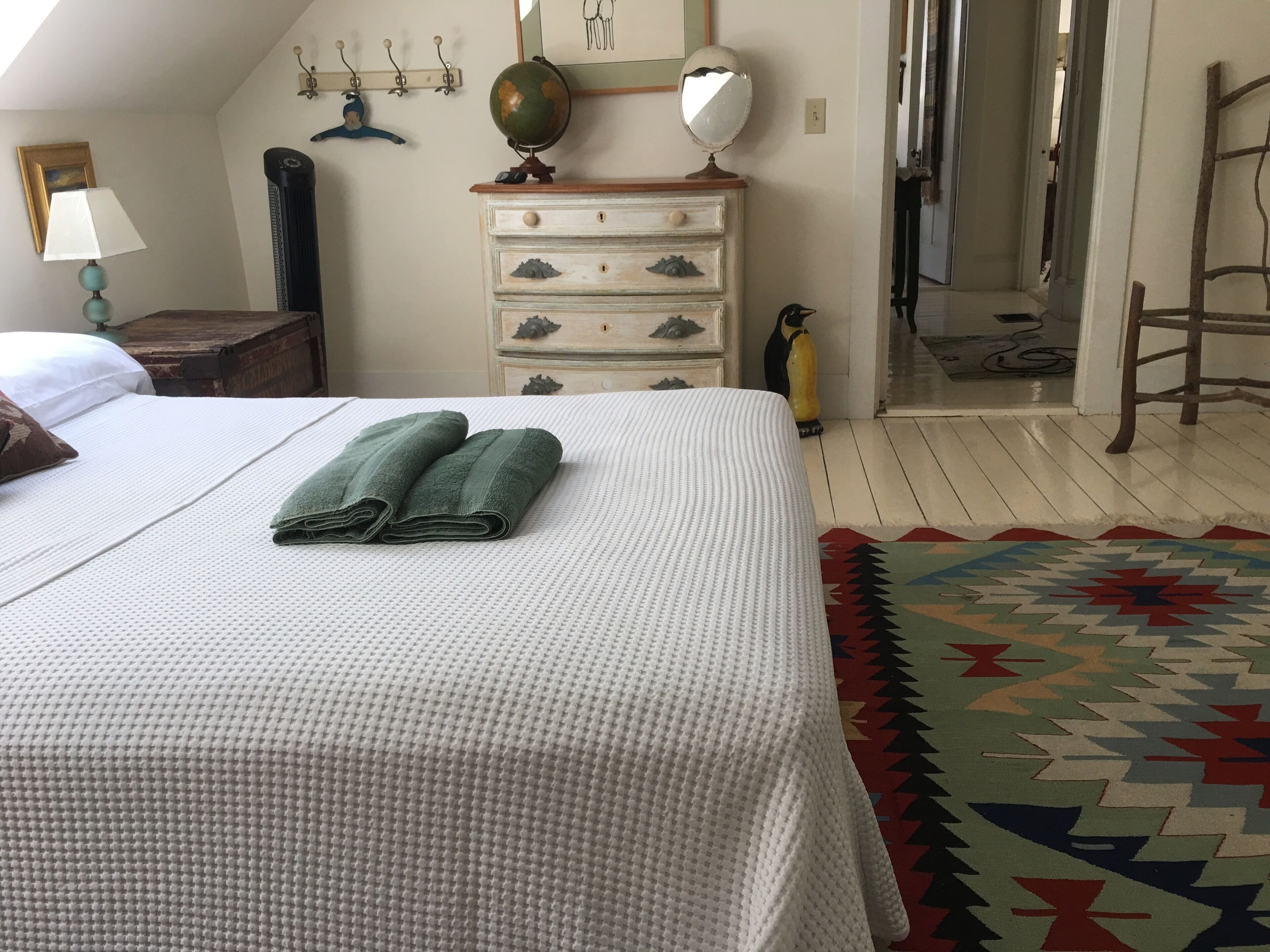 Spend the Coming Summer in a Private Home in Round Pond, Maine Built just after the Civil War, 6 Mollys Cove Road is an iconic Maine village house, once a parsonage, that has been carefully renovated to maintain its historical character while adding a level of modern comforts. The house is in the heart of the village, only a five minutes walk to the town landing, lobster shacks, harbor, public boat launch, shops, and restaurants. And yet we are tucked away on a quiet private lane, surrounded by tall pines that offer a rare sense of isolation so close to the harbor. There is a charming screened front porch just off the kitchen where you can enjoy coffee and the newspaper, or go online with our wifi connection. And at the back of the house, an enormous cedar deck is there for relaxing as you watch the lobster boats come and go. The main floor includes the kitchen, dining room, library, a full bath with laundry, and front parlor. Upstairs there are two full bedrooms, each with a queen-size bed. There is also a half bath off the upstairs hallway and a reading room. A doorway leads out to the second floor deck, for a full view of the harbor and Muscongus Bay. Sunrises from this vantage point are spectacular. Our home is filled with rare books, original artwork, and furniture, all reflecting our varied interests and passions. If this appeals to you, please email for further details, and to tell us more about yourselves.